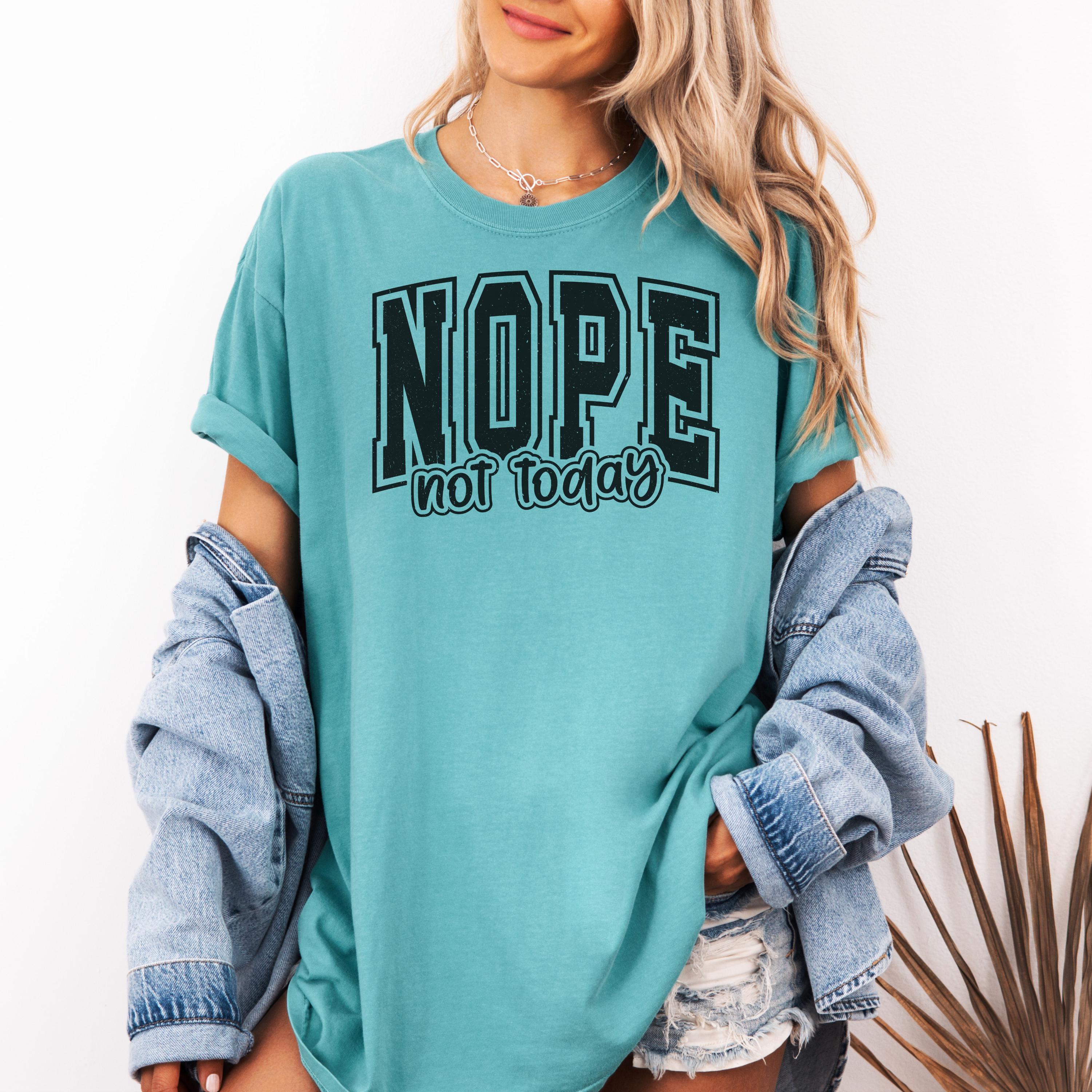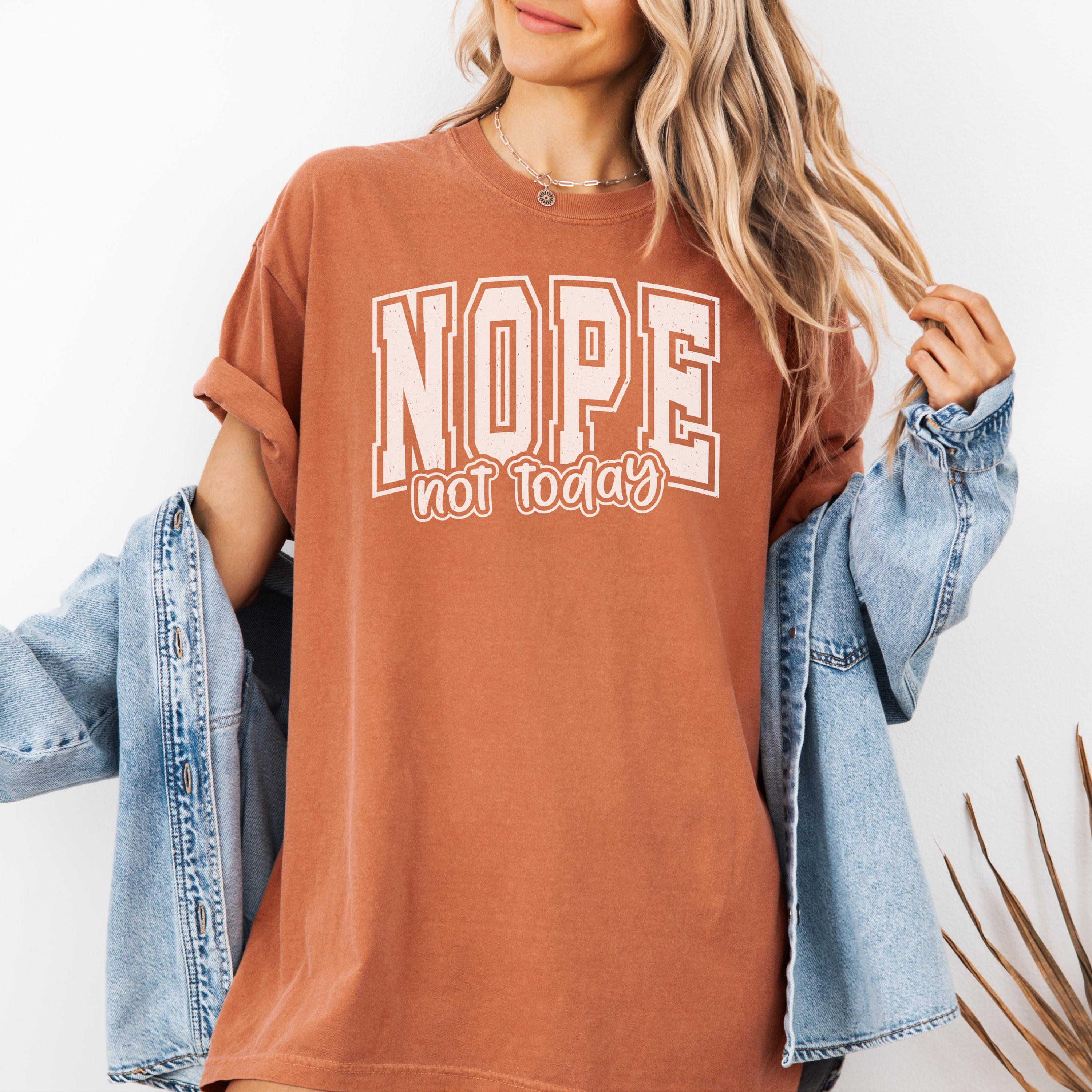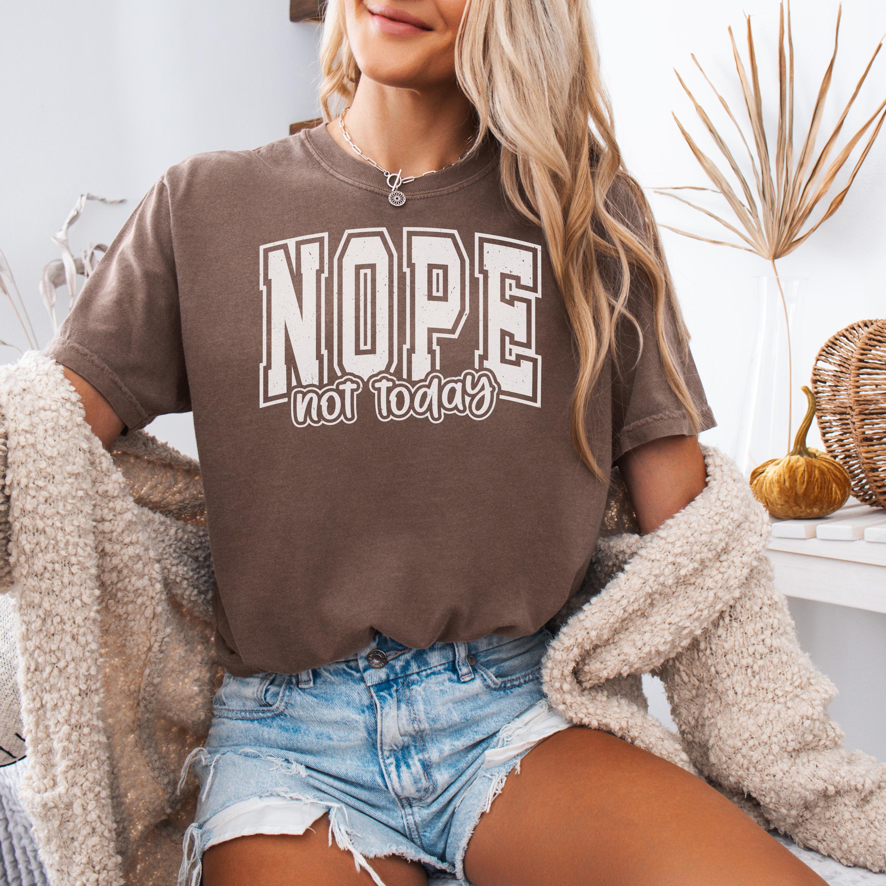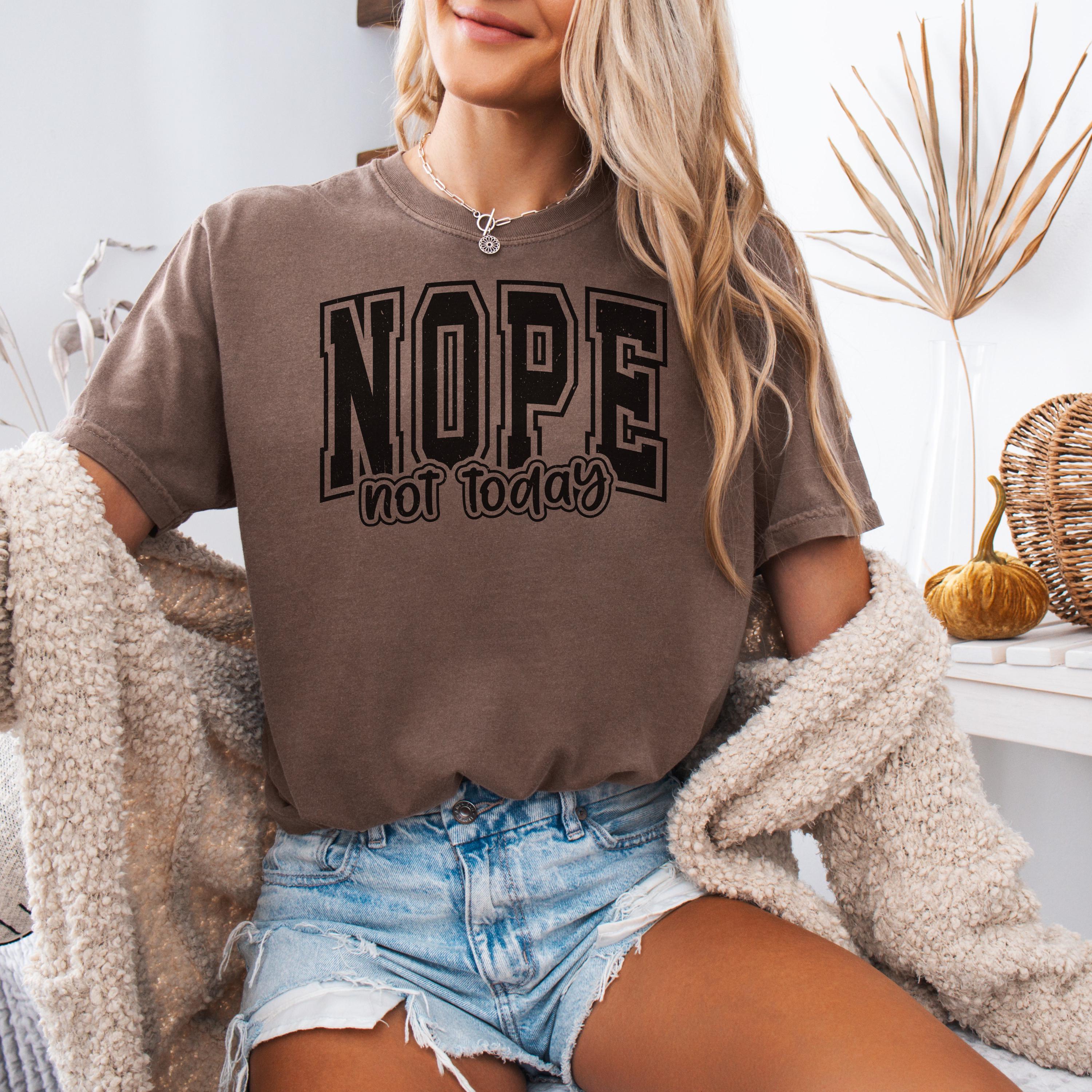 📏 Fit & Care • True-to-size unisex fit • Size up for oversized street look • Wash cold, inside out • Tumble dry low nope not today tee, statement tshirt, comfort colors tee, sarcastic tshirt, funny slogan tee, minimalist tshirt, graphic tee women, casual streetwear, introvert mood tee, lazy day tshirt, unisex funny tee, black white print, trendy slogan top