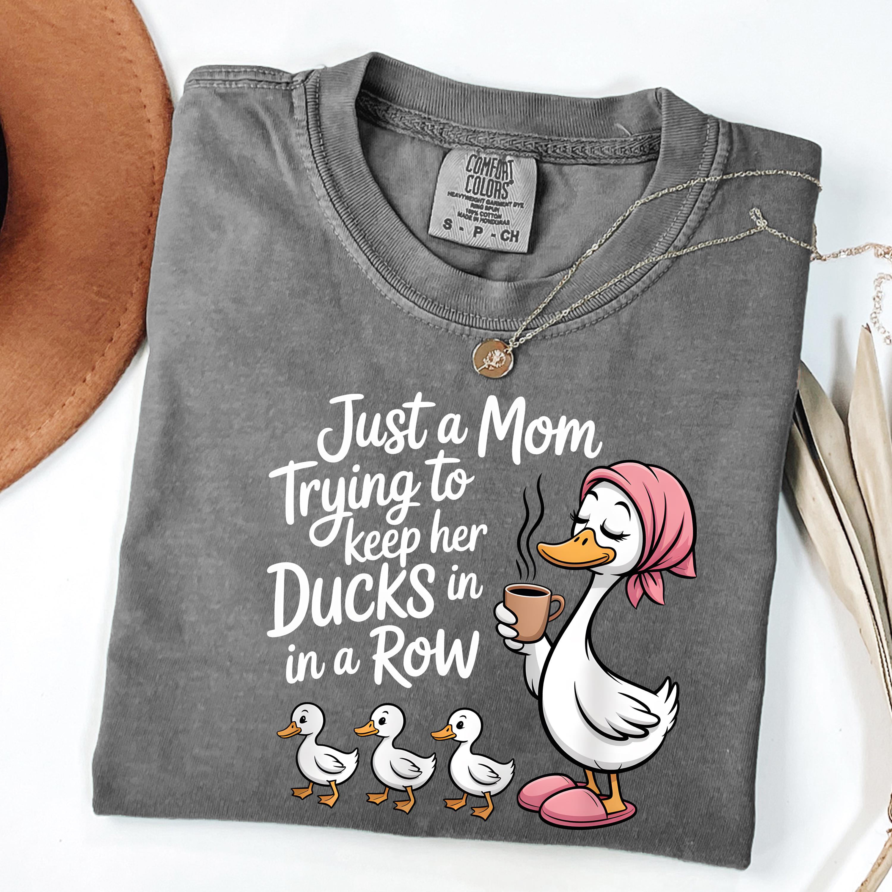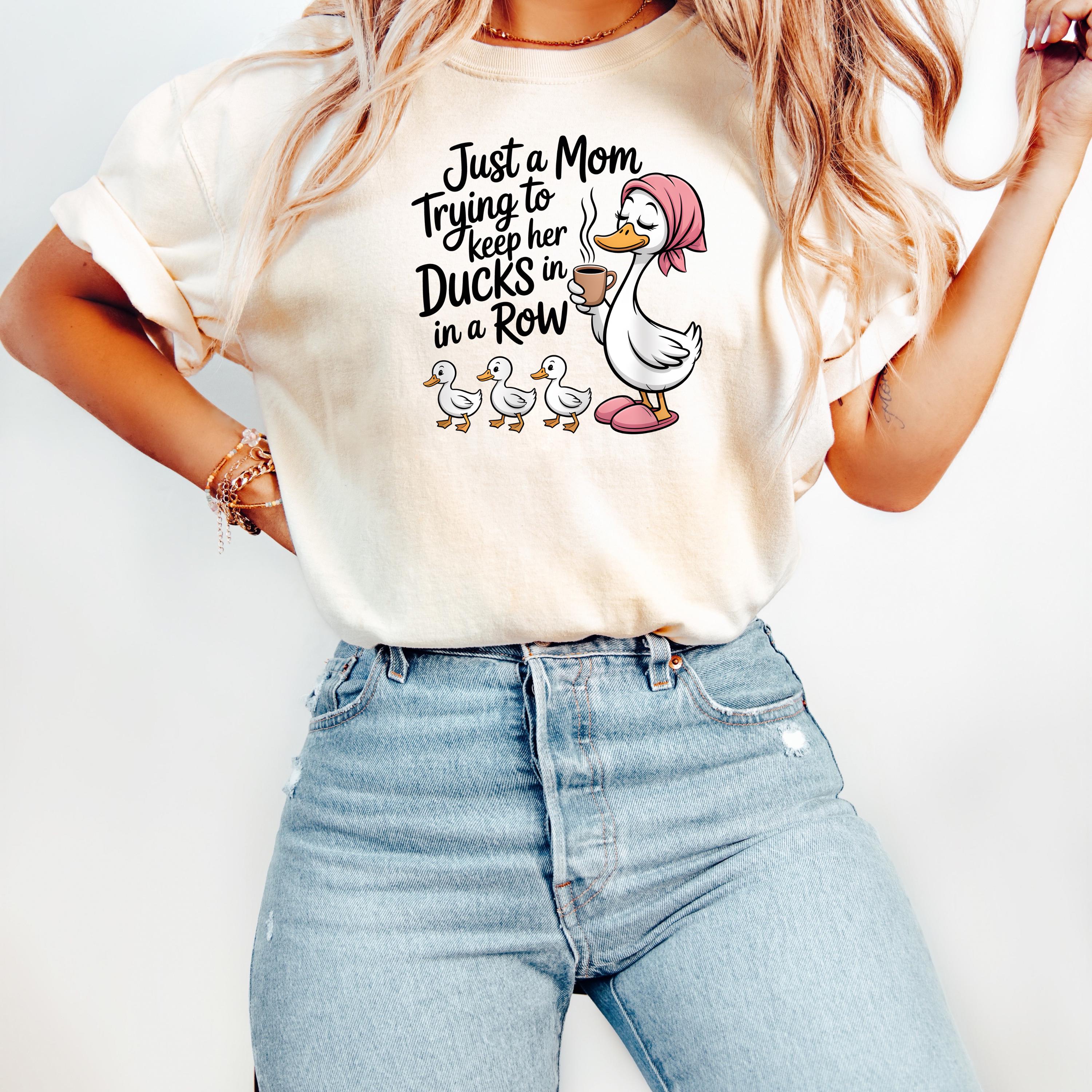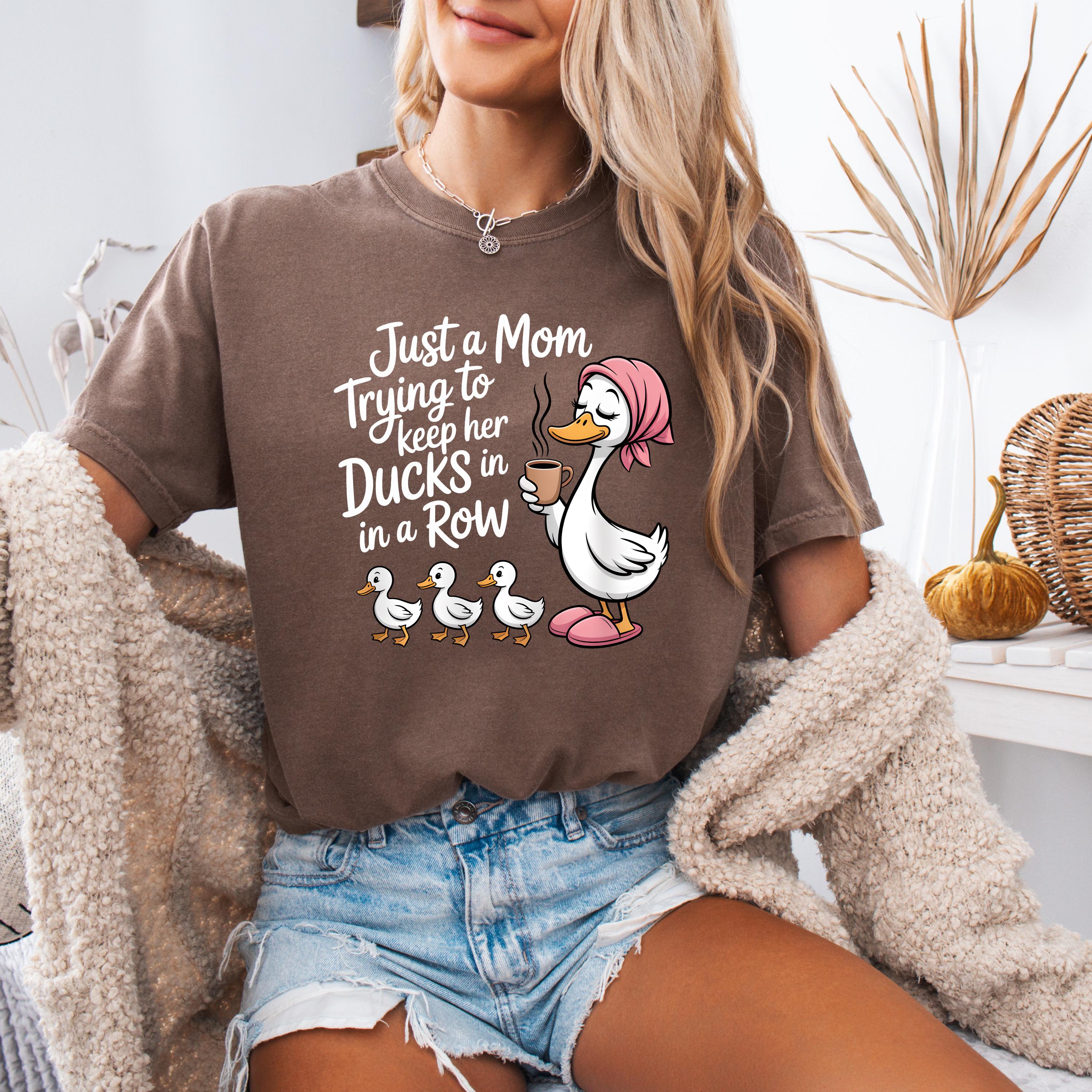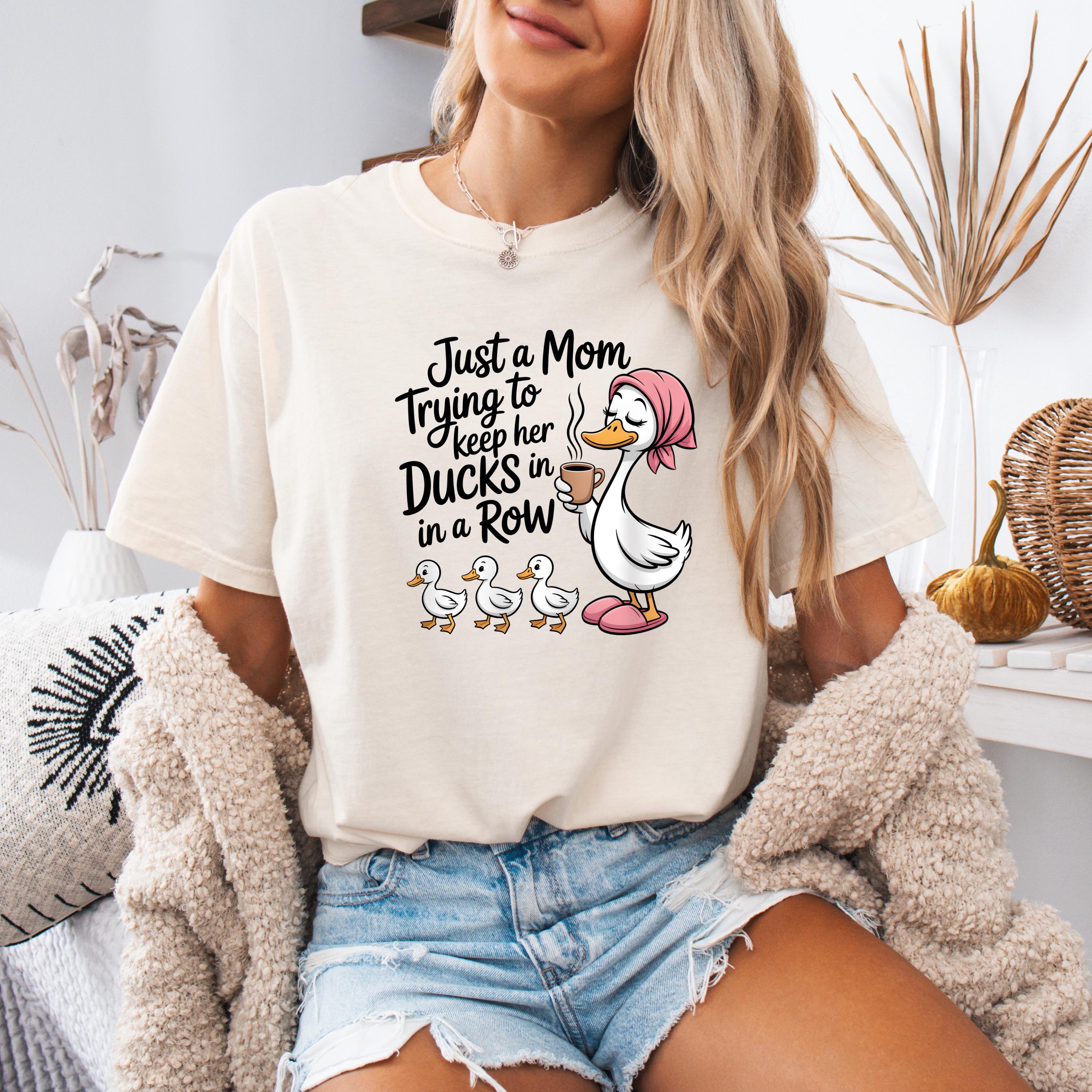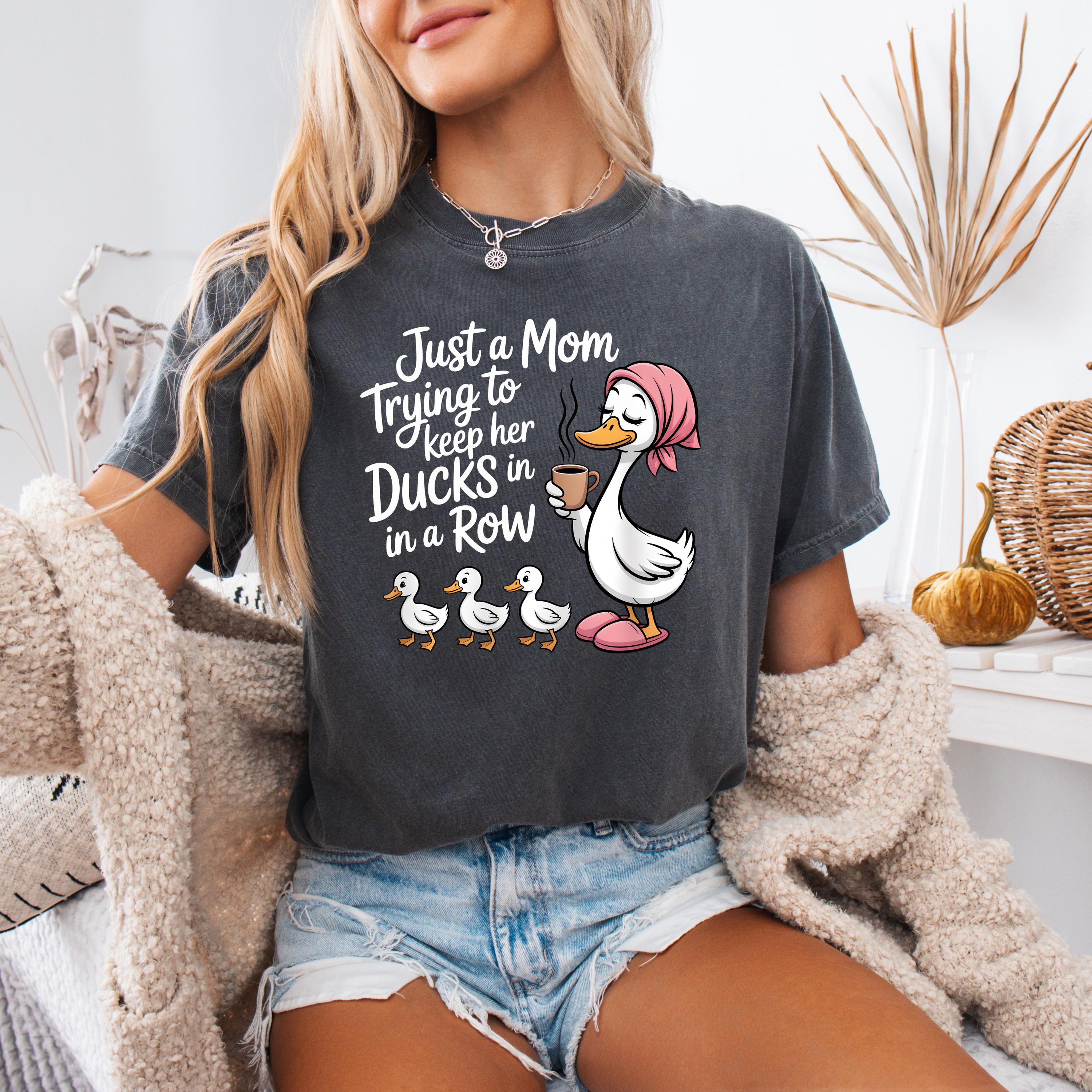 Comfort Colors Funny Duck Mom Shirt, Just A Mom Trying To Keep Her Ducks In A Row Shirt, Cute Mama Tee, Gift For Mom, Womens Casual Shirt đ Choose Your Style ⢠The Comfort Colors 1717 short sleeve t-shirt is made from soft, garment-dyed cotton for a vintage look and lived-in feel. It features a relaxed unisex fit, durable heavyweight fabric, and all-day comfort perfect for casual everyday wear. â˘The Comfort Colors 6014 long sleeve t-shirt is crafted from soft, garment-dyed cotton with a relaxed unisex fit and a classic vintage style. Its heavyweight fabric and ribbed cuffs provide lasting comfort and a cozy feel for everyday wear.
