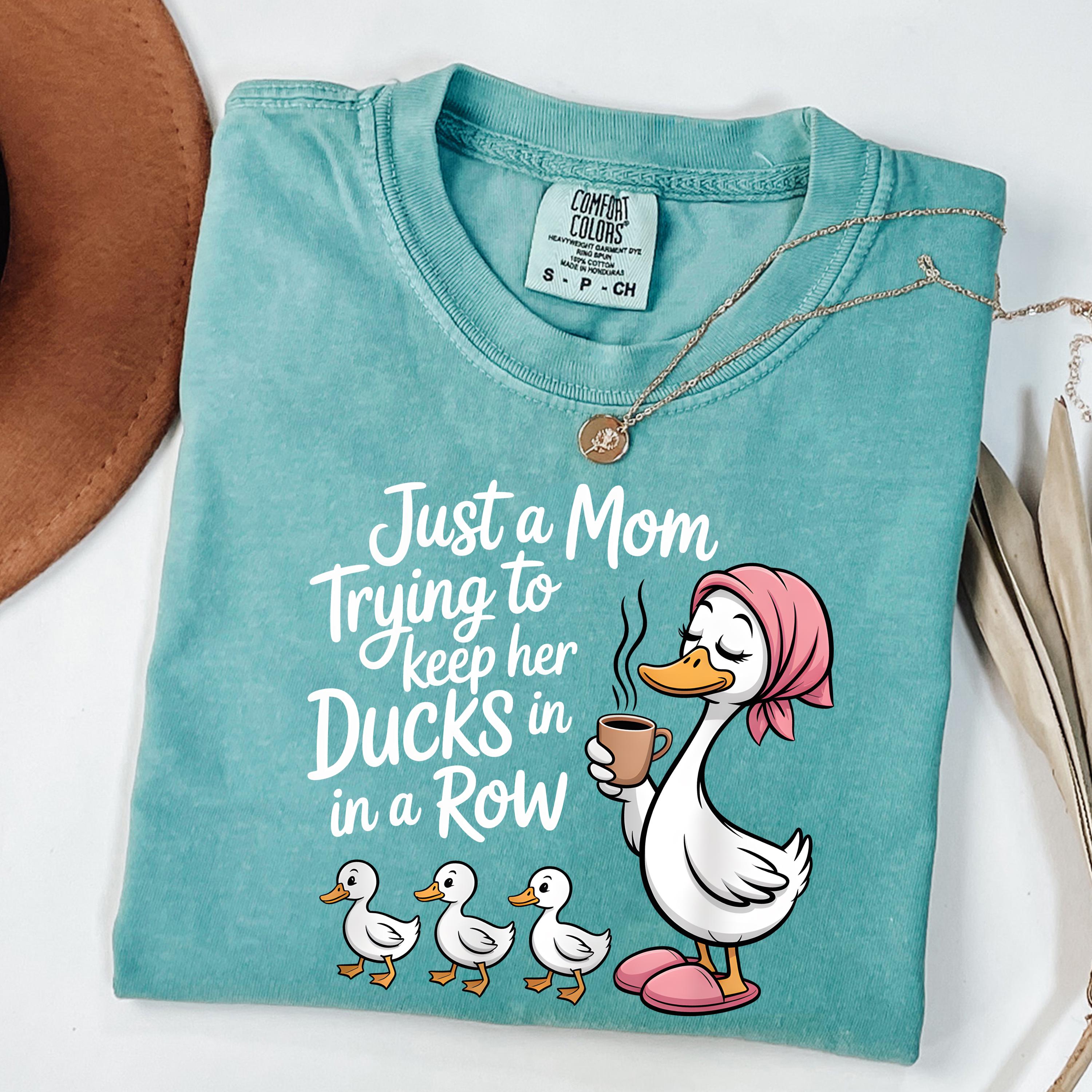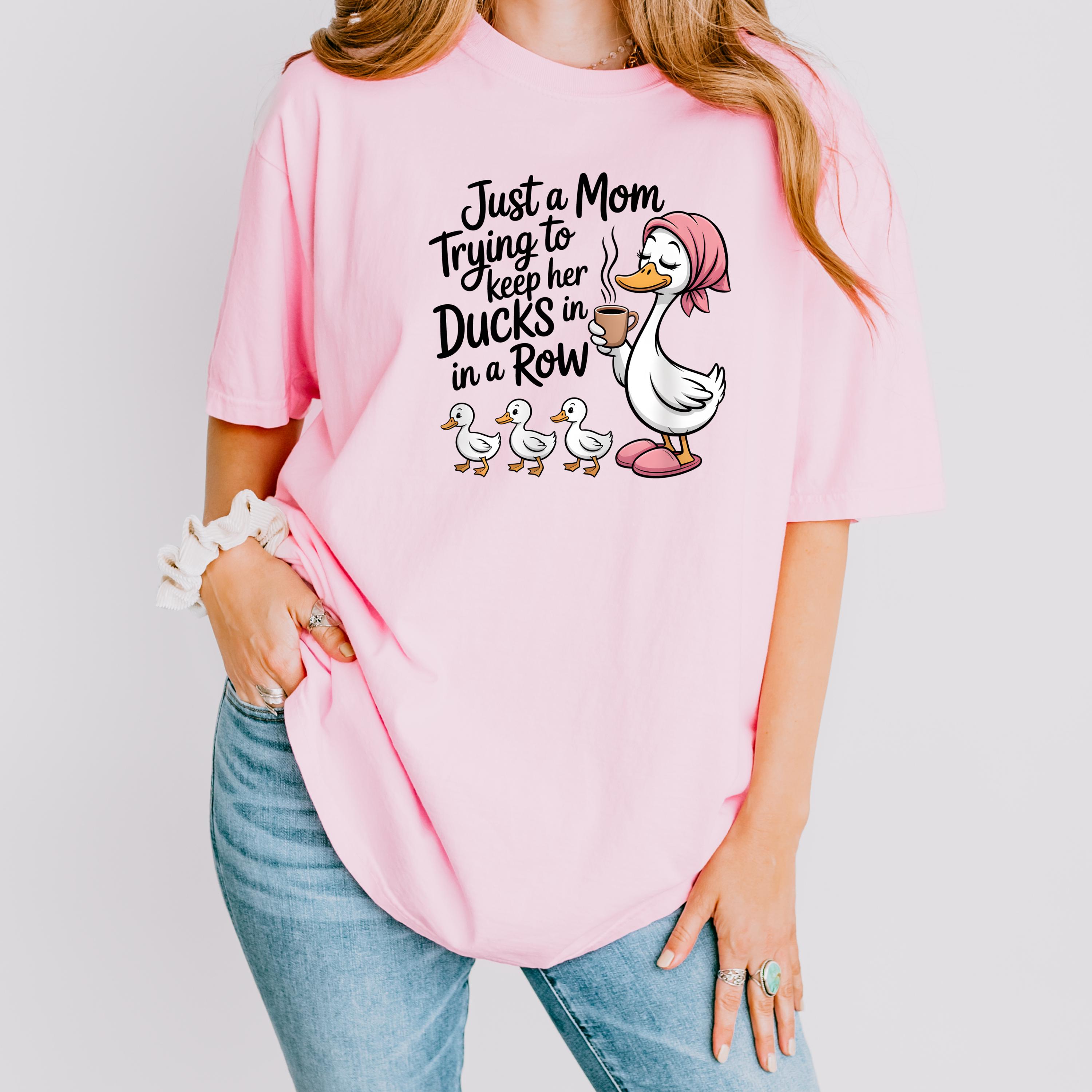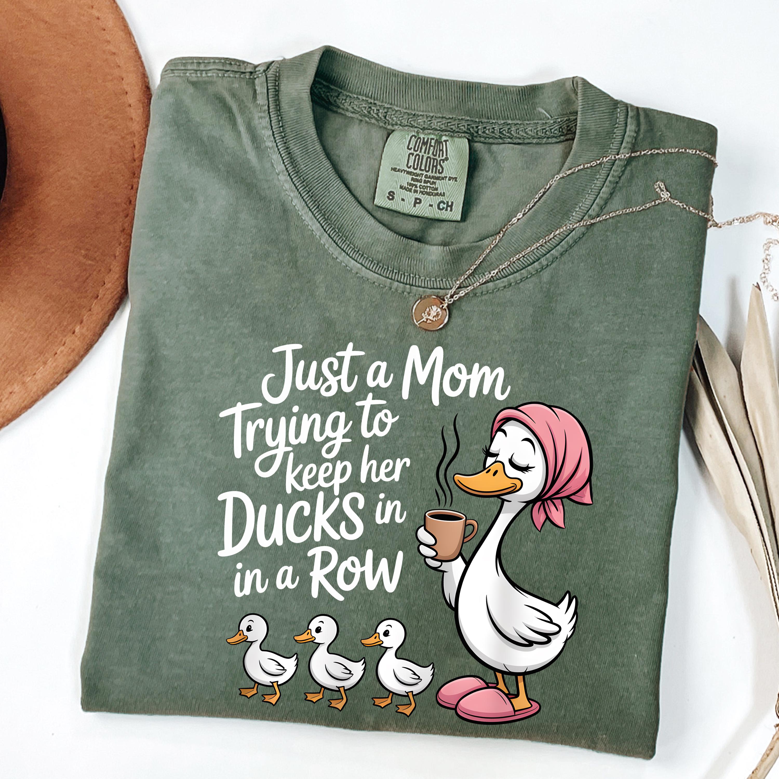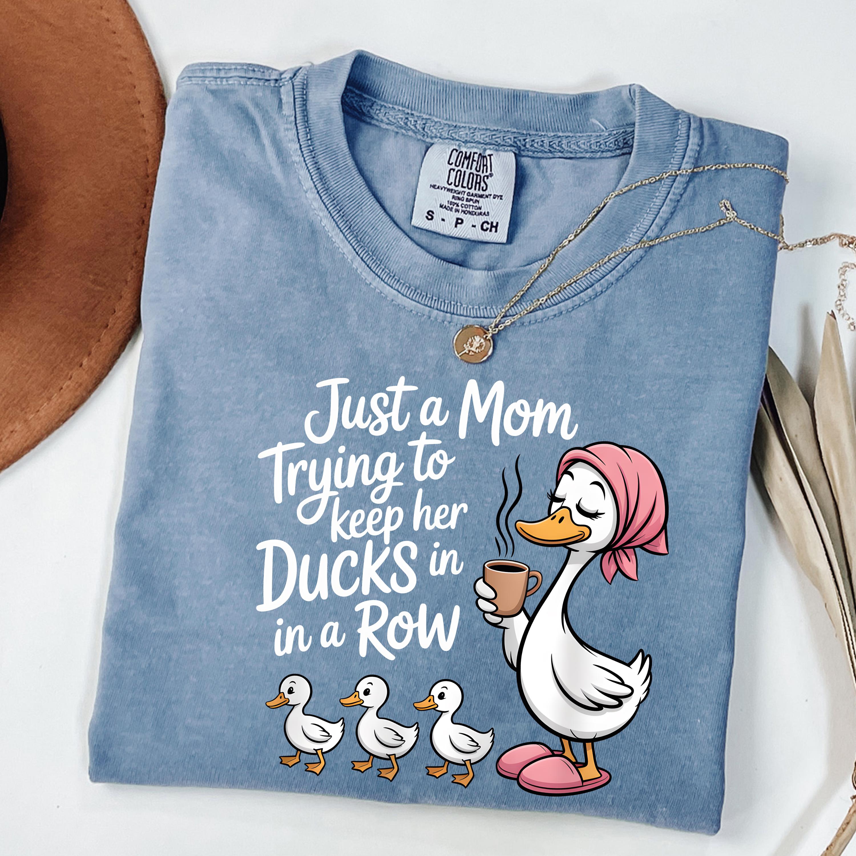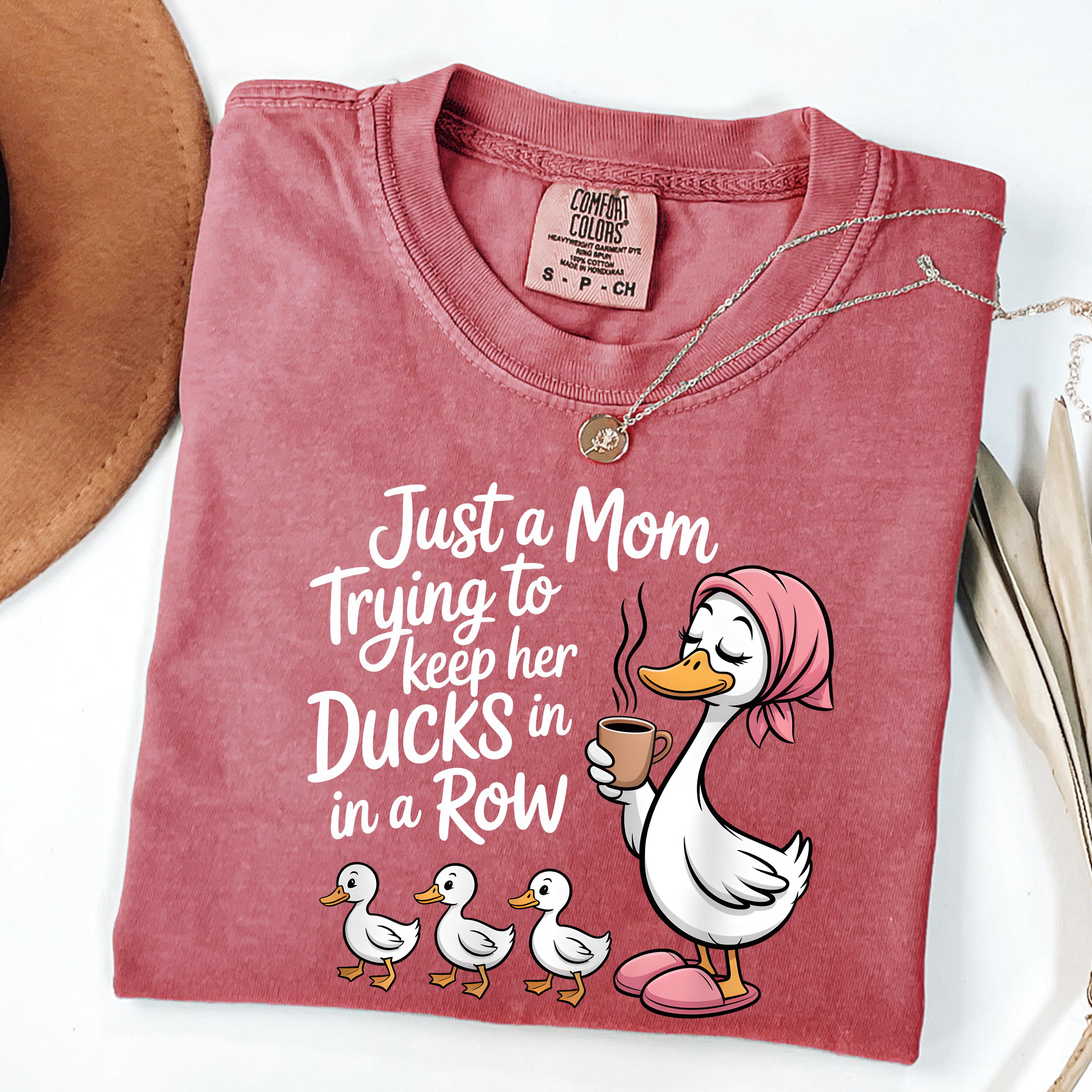 Comfort Colors Funny Duck Mom Shirt, Just A Mom Trying To Keep Her Ducks In A Row Shirt, Cute Mama Tee, Gift For Mom, Womens Casual Shirt đ Choose Your Style ⢠The Comfort Colors 1717 short sleeve t-shirt is made from soft, garment-dyed cotton for a vintage look and lived-in feel. It features a relaxed unisex fit, durable heavyweight fabric, and all-day comfort perfect for casual everyday wear. â˘The Comfort Colors 6014 long sleeve t-shirt is crafted from soft, garment-dyed cotton with a relaxed unisex fit and a classic vintage style. Its heavyweight fabric and ribbed cuffs provide lasting comfort and a cozy feel for everyday wear.