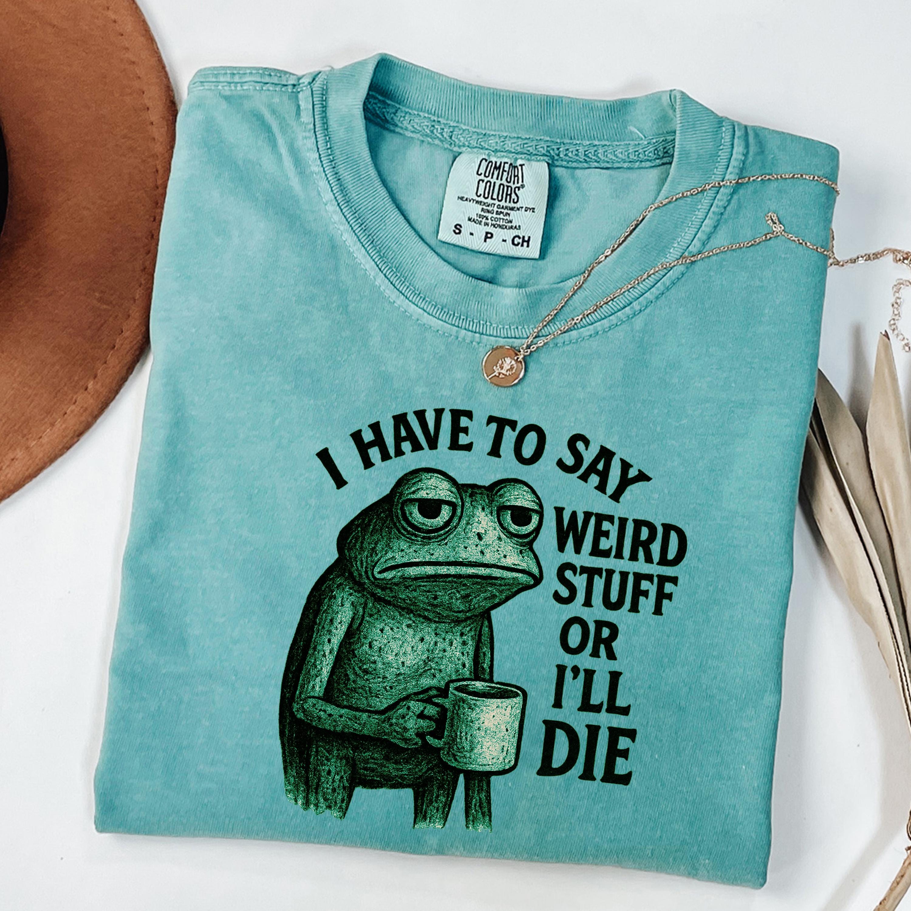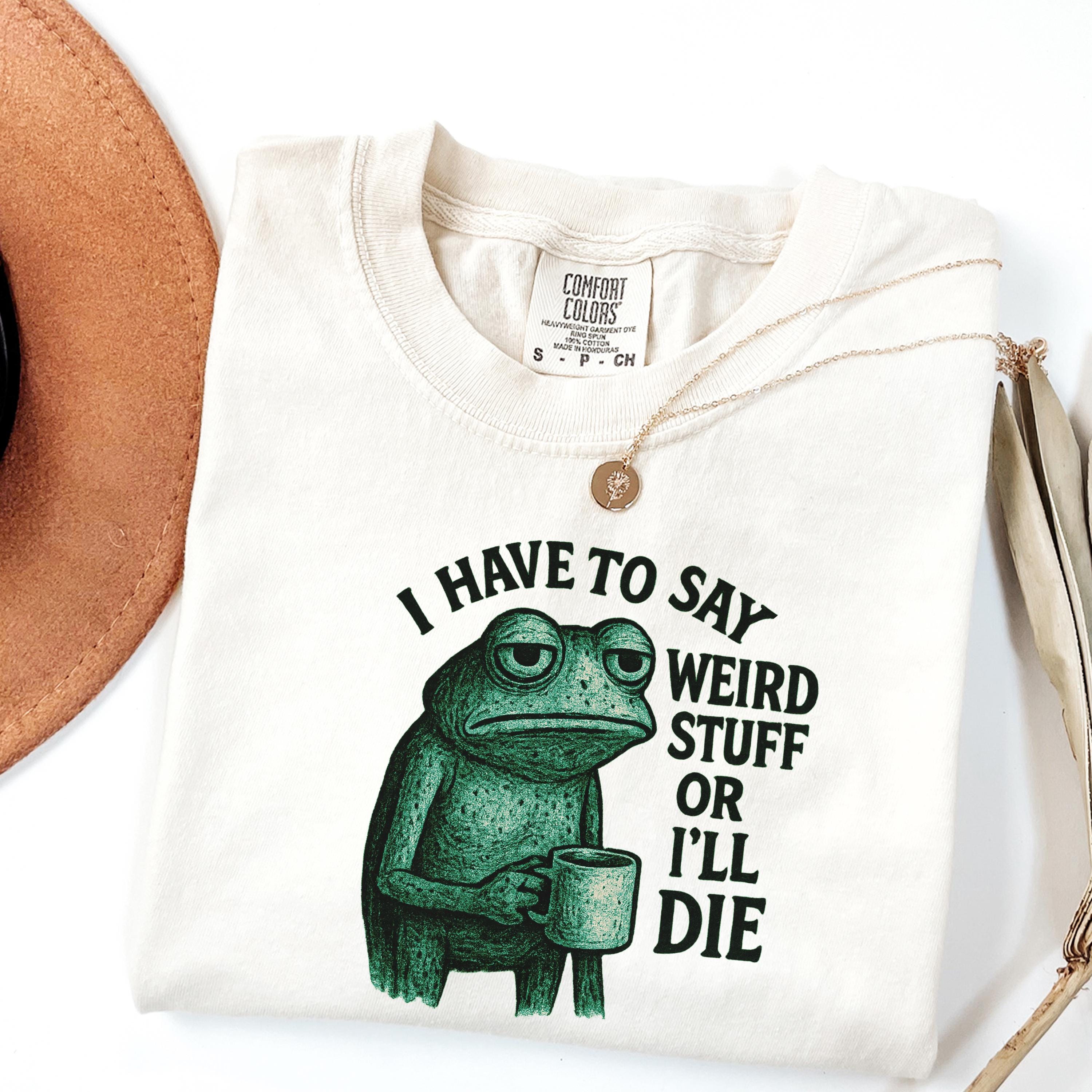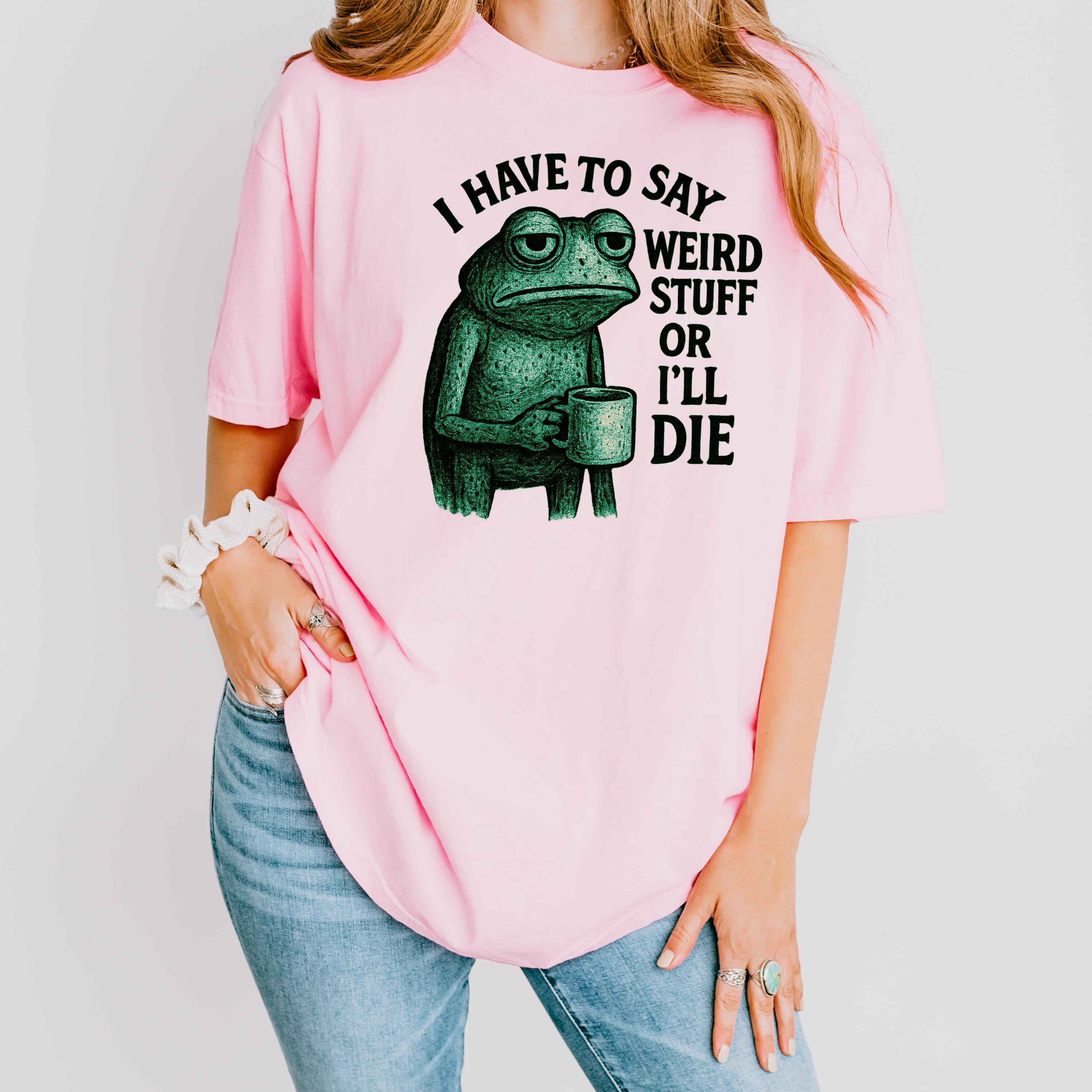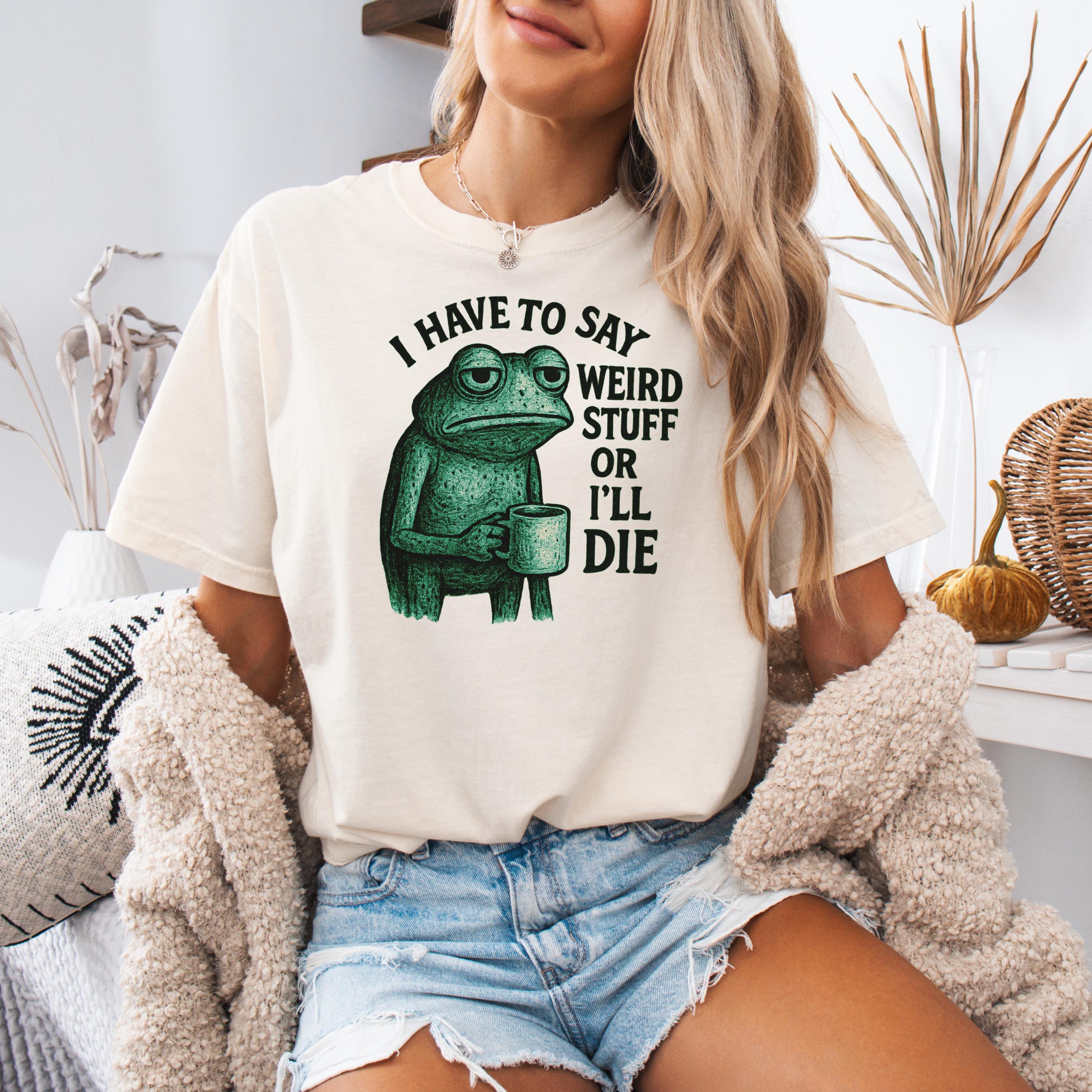 I Have to Say Weird Stuff or I’ll Die Shirt, Funny Quote Tee, Silly Humor Sweatshirt, Frog Meme T-shirt, Gift for Friends, Unhinged Shirt👕 Choose Your Style • The Comfort Colors 1717 short sleeve t-shirt is made from soft, garment-dyed cotton for a vintage look and lived-in feel. It features a relaxed unisex fit, durable heavyweight fabric, and all-day comfort perfect for casual everyday wear. •The Comfort Colors 6014 long sleeve t-shirt is crafted from soft, garment-dyed cotton with a relaxed unisex fit and a classic vintage style. Its heavyweight fabric and ribbed cuffs provide lasting comfort and a cozy feel for everyday wear.