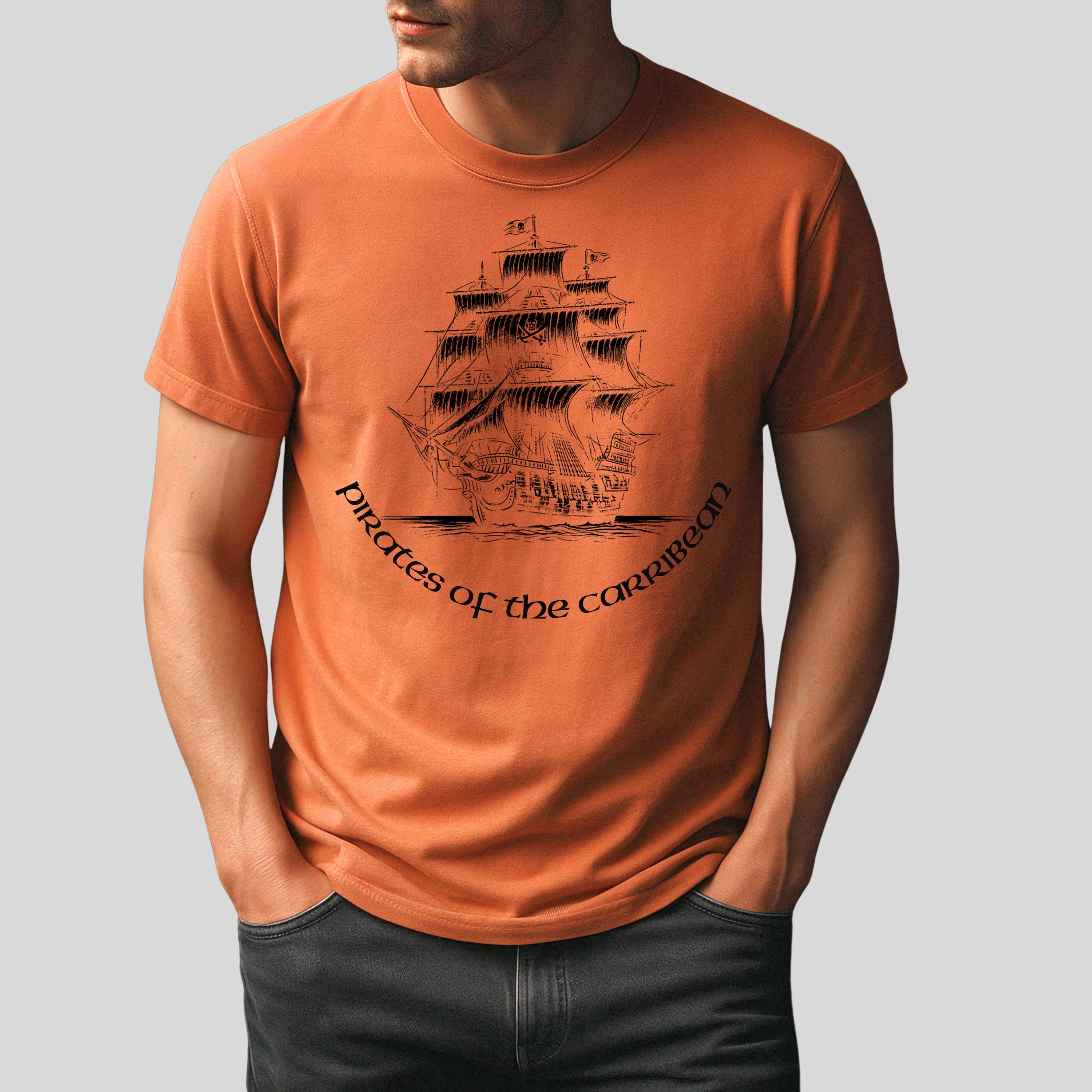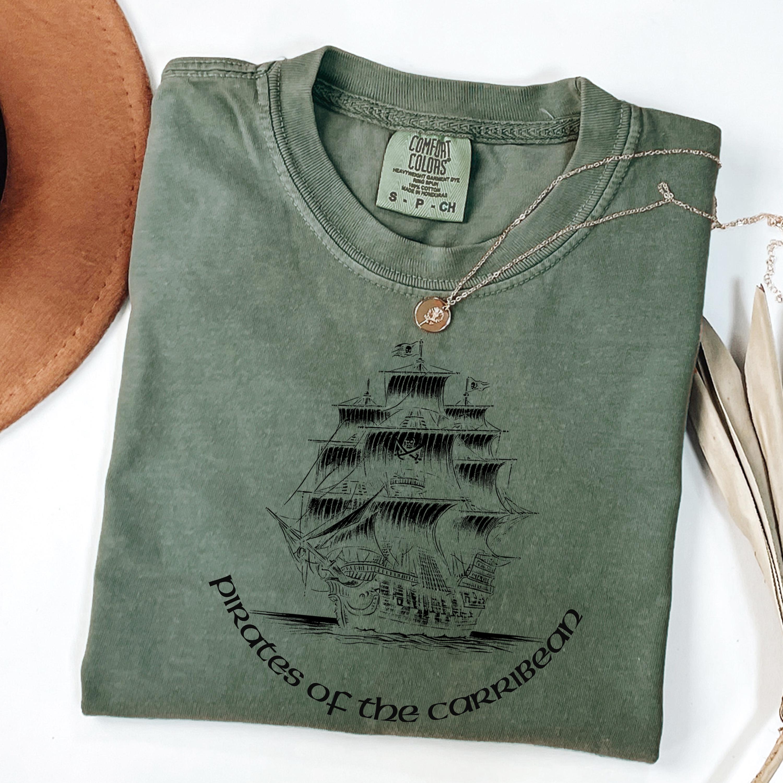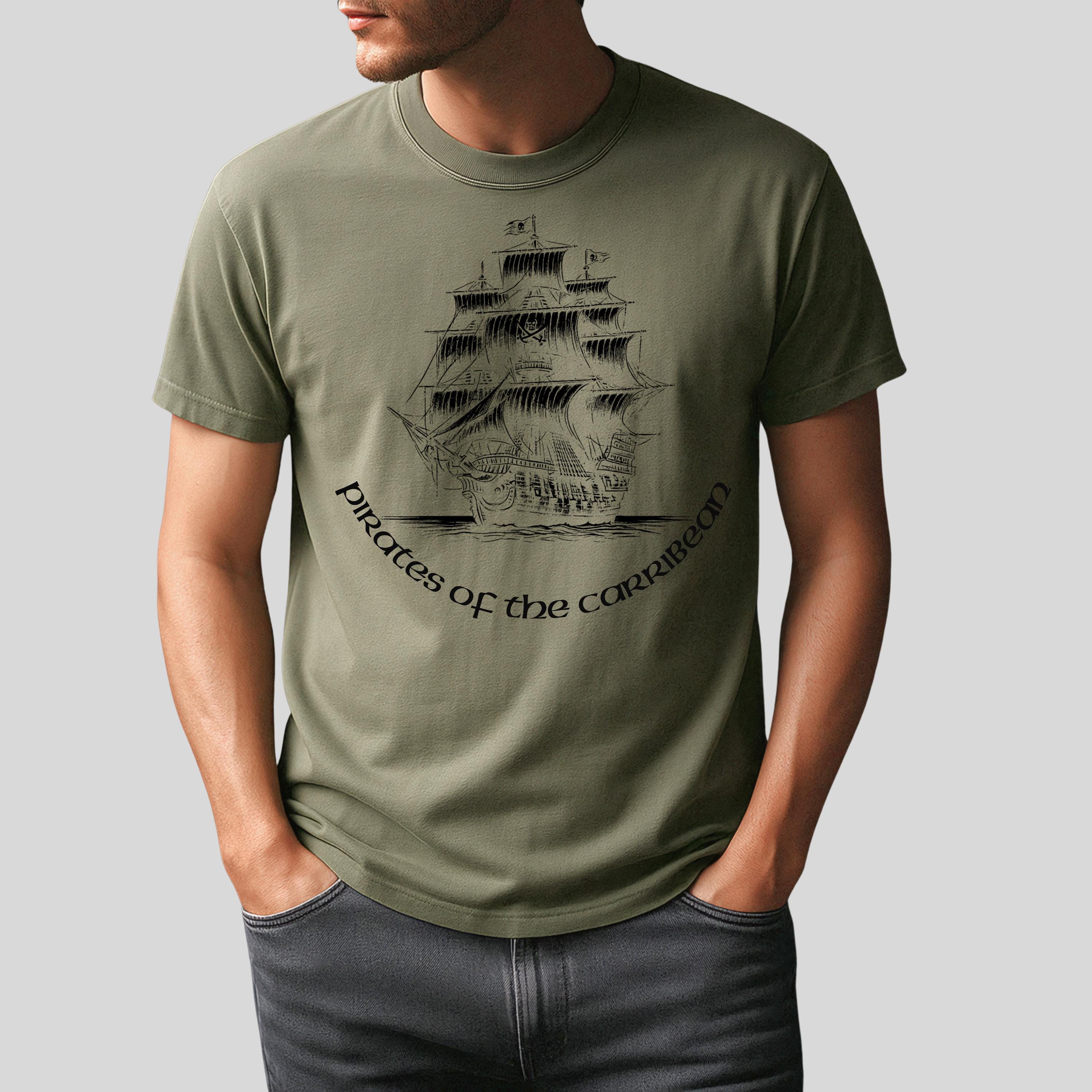 Comfort Colors, Pirate Ship Shirt, Caribbean Adventure Tee, Chinese Ink Illustration, Vintage Nautical Graphic T Shirt, Medieval Pirate TeeThis design features a pirate ship illustration inspired by classic Caribbean adventure themes, created using a unique Chinese ink (ink wash) technique.