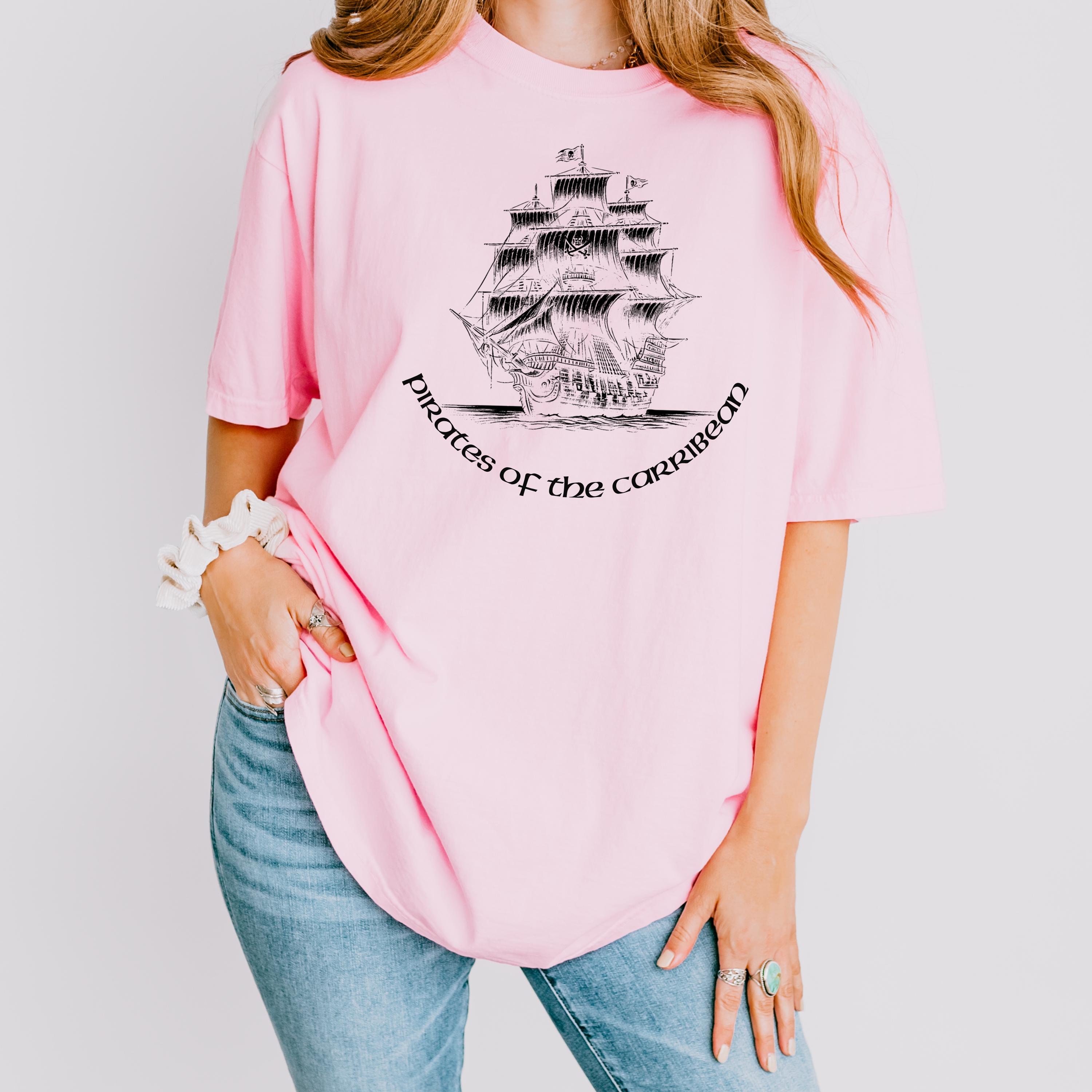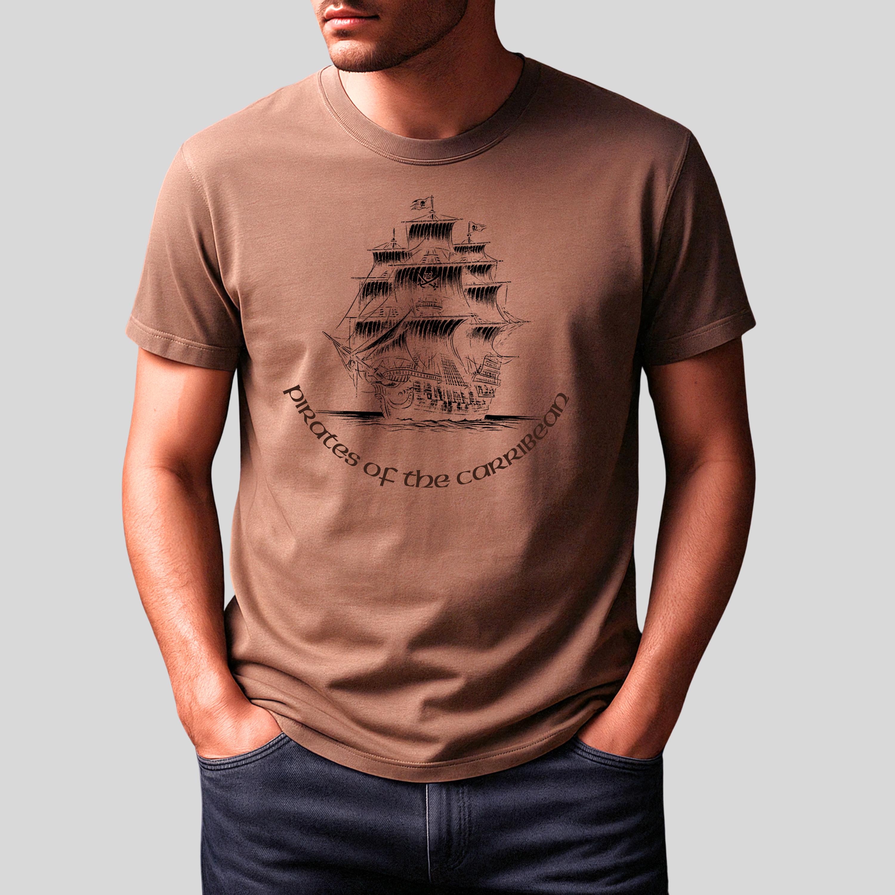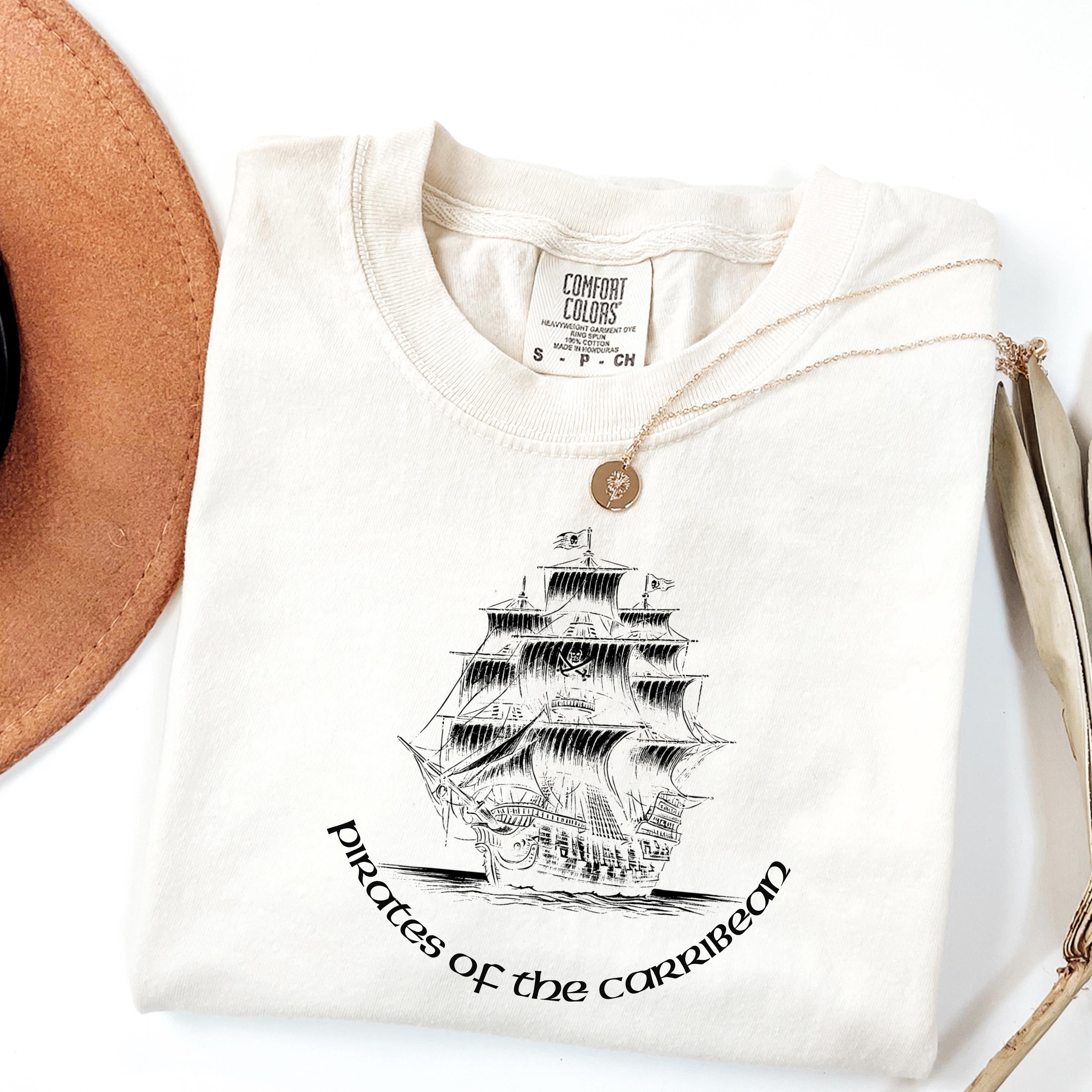 Comfort Colors, Pirate Ship Shirt, Caribbean Adventure Tee, Chinese Ink Illustration, Vintage Nautical Graphic T Shirt, Medieval Pirate TeeThis design features a pirate ship illustration inspired by classic Caribbean adventure themes, created using a unique Chinese ink (ink wash) technique.