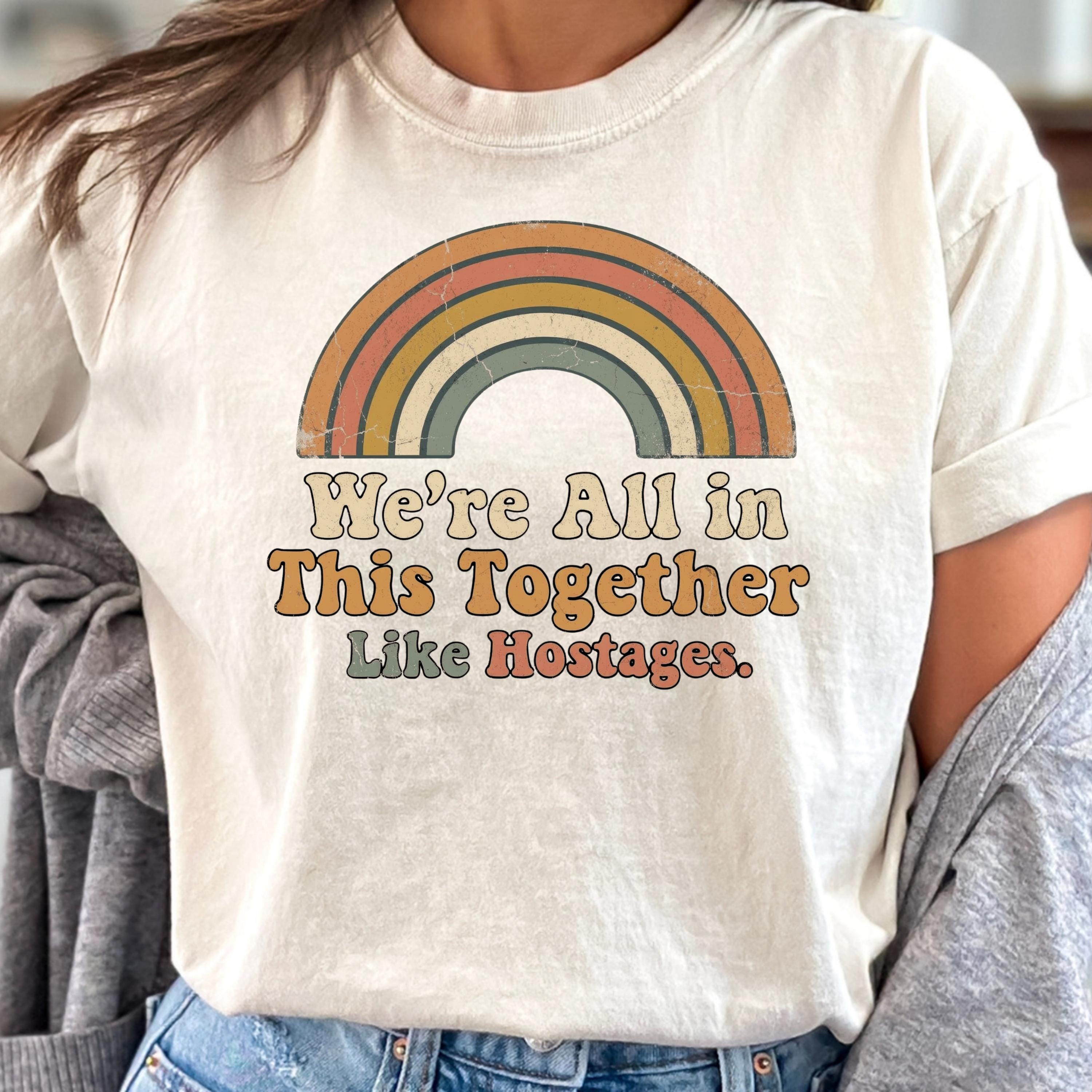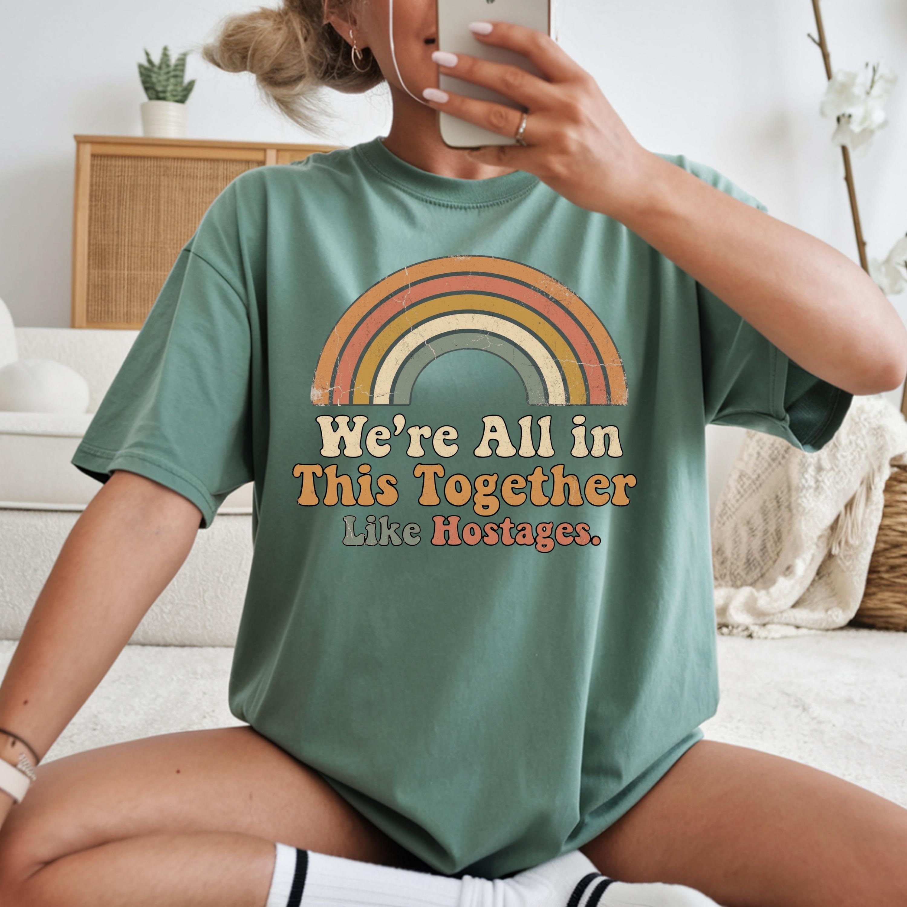 We're All in This Together Comfort Colors Shirt, Retro Funny Groovy Rainbow Tee, Sarcastic Shirt, Gift For Her, Gift For Him