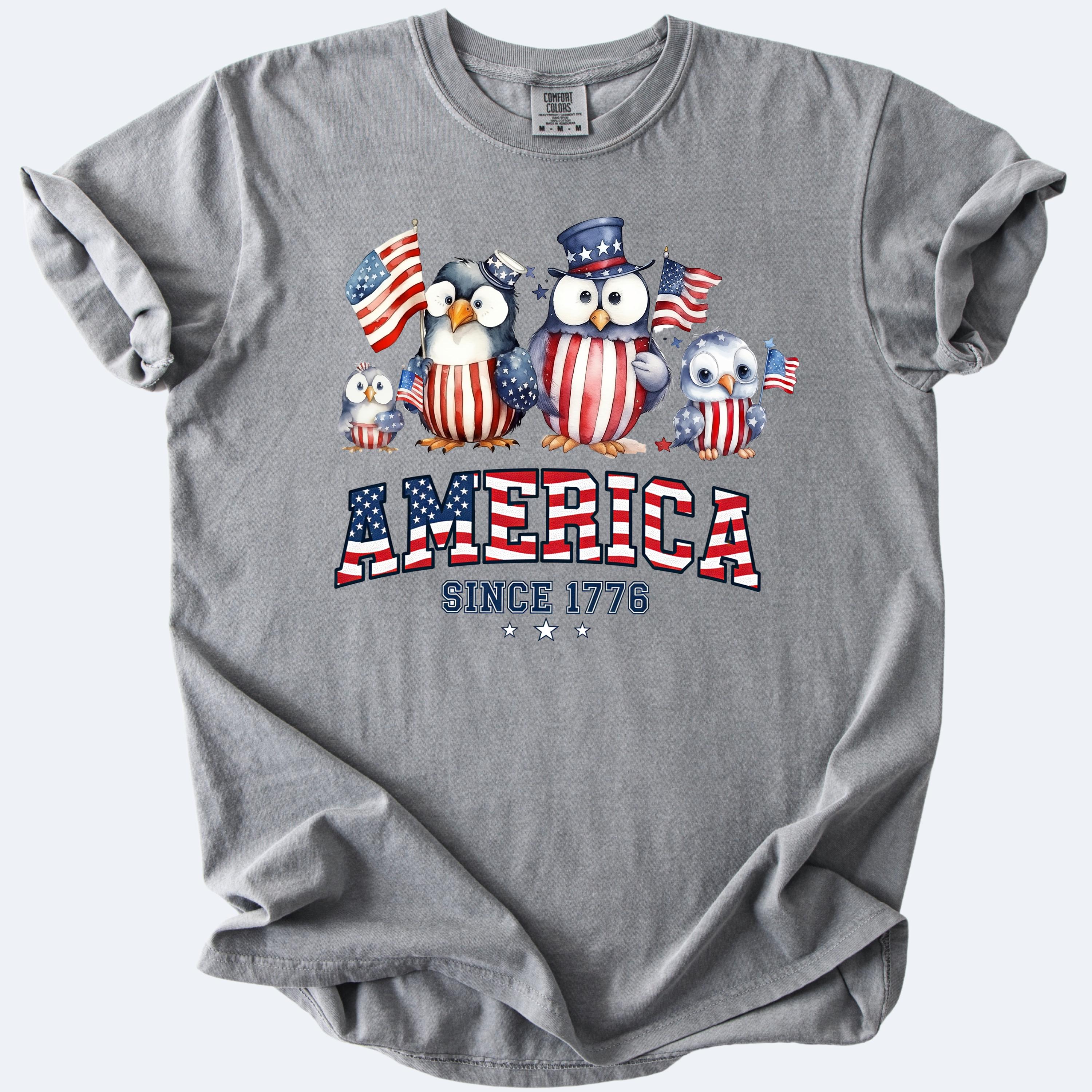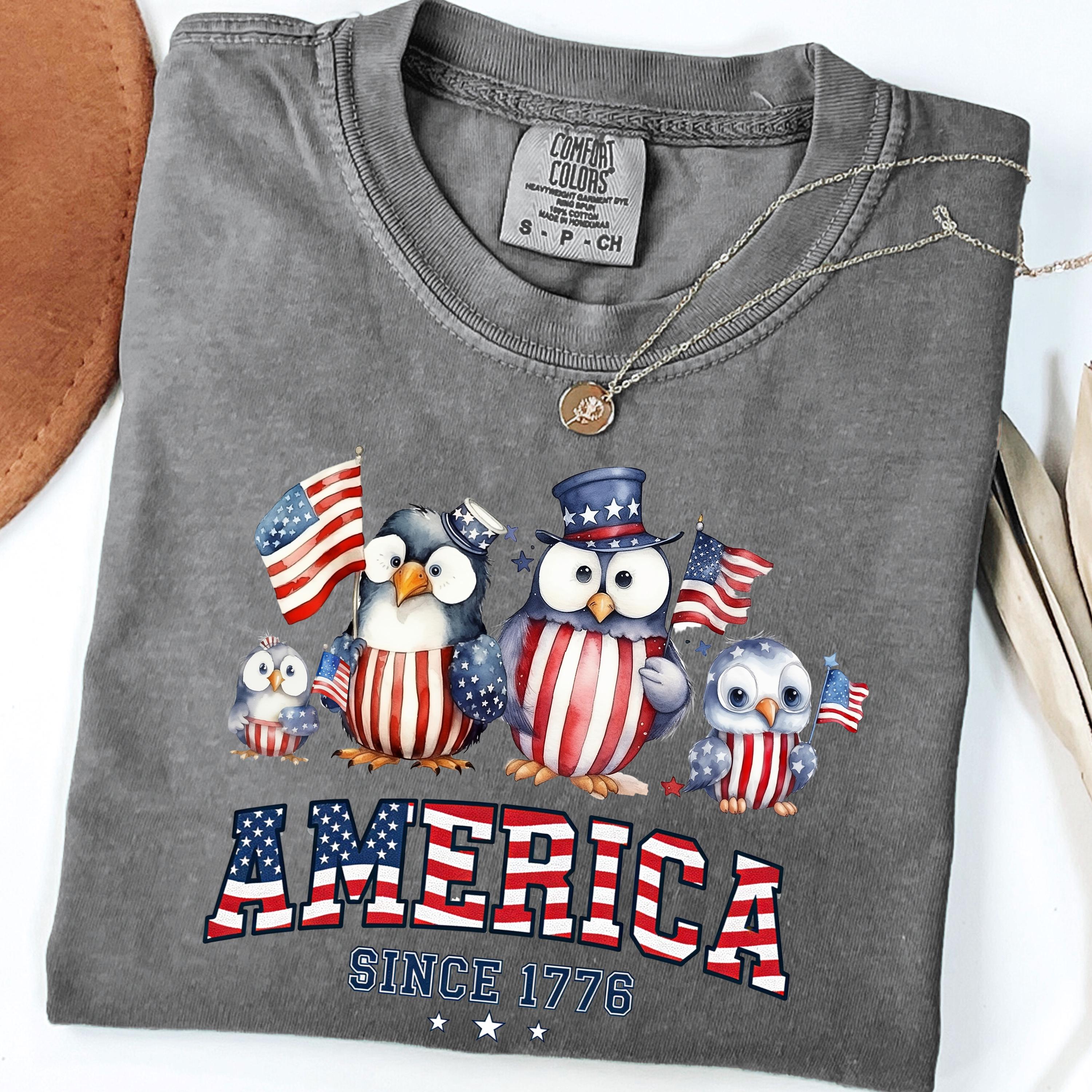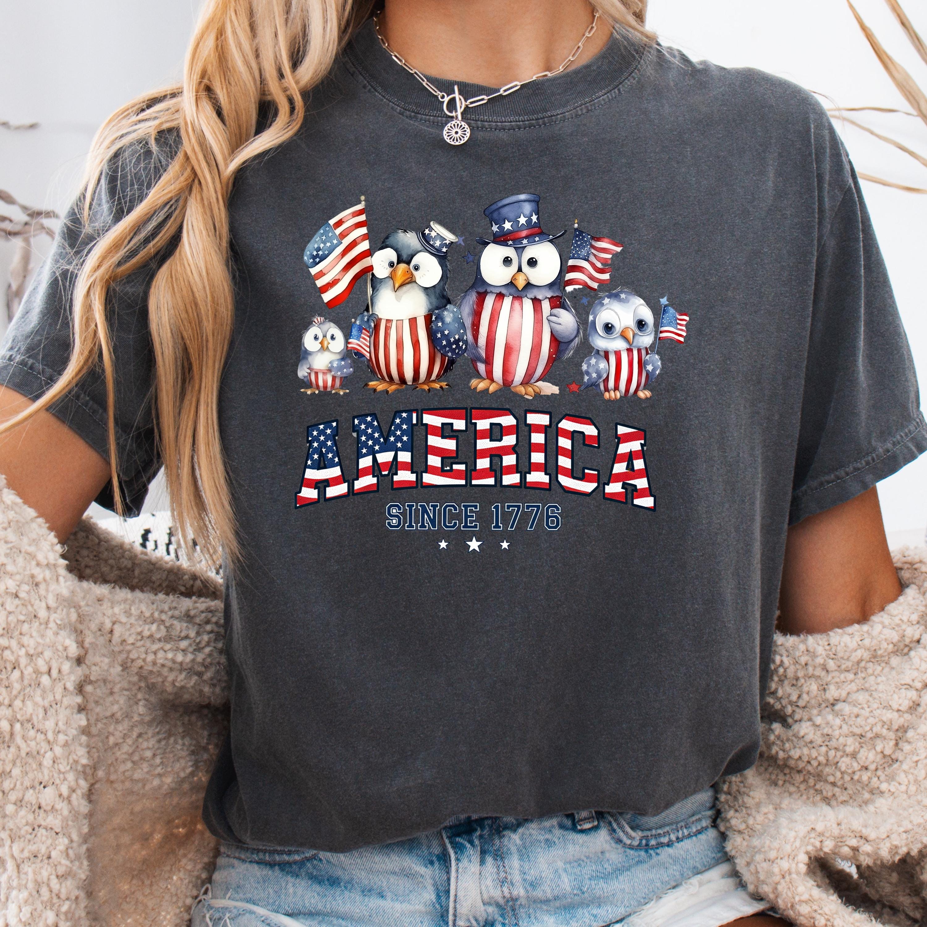 American Penguin Family Since 1776 Shirt, Comfort Colors Tee, Patriotic Penguin Graphic T Shirt, Funny USA Family Shirt 👕 Choose Your Style • The Comfort Colors 1717 short sleeve t-shirt is made from soft, garment-dyed cotton for a vintage look and lived-in feel. It features a relaxed unisex fit, durable heavyweight fabric, and all-day comfort perfect for casual everyday wear. •The Comfort Colors 6014 long sleeve t-shirt is crafted from soft, garment-dyed cotton with a relaxed unisex fit and a classic vintage style. Its heavyweight fabric and ribbed cuffs provide lasting comfort and a cozy feel for everyday wear.