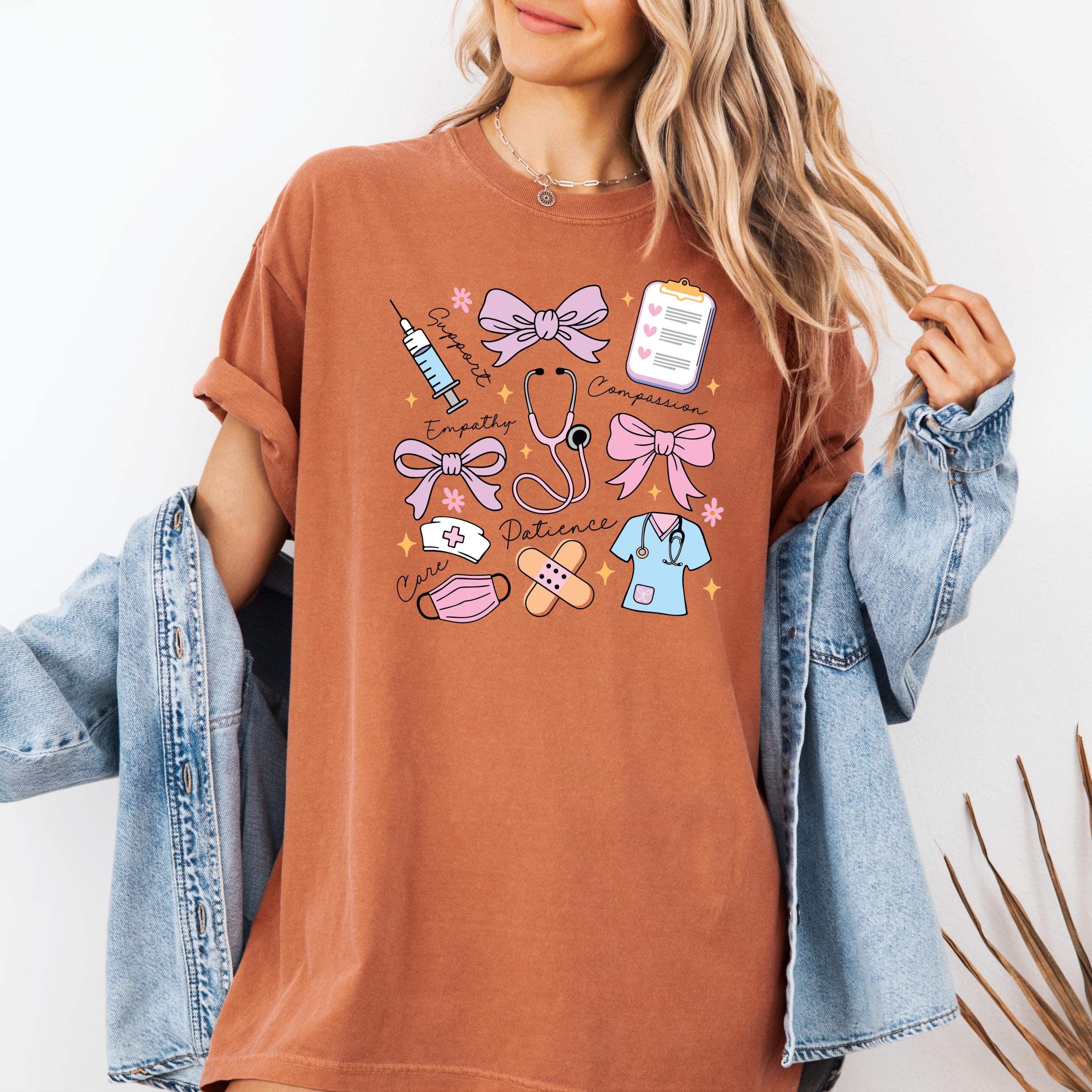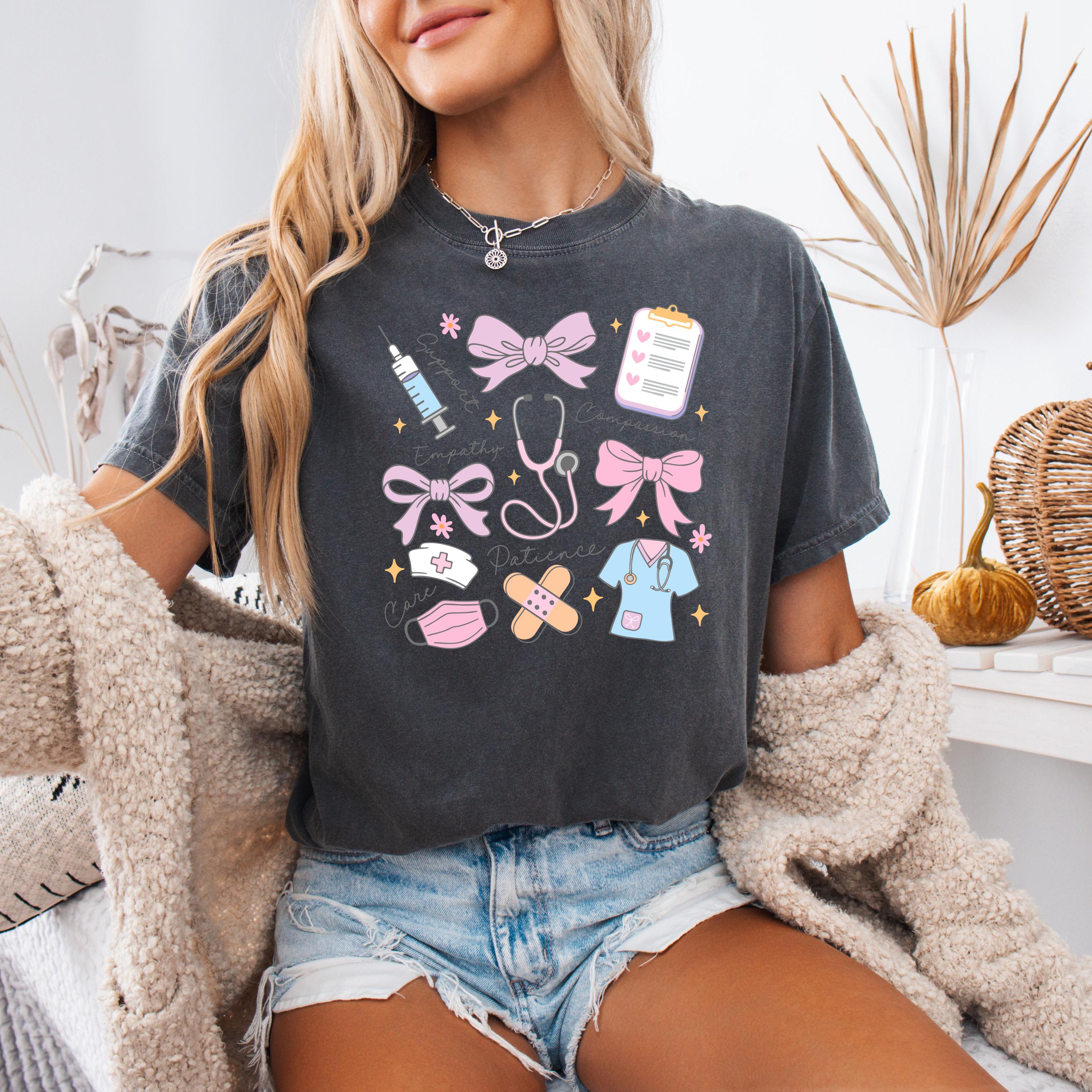Comfort Colors® Nurse Shirt, Nurse Gift, Nurse Gifts, Nurse Graduation Tees, Nursing School, Gift For Nurse, Gift For Her 👕 Choose Your Style • The Comfort Colors 1717 short sleeve t-shirt is made from soft, garment-dyed cotton for a vintage look and lived-in feel. It features a relaxed unisex fit, durable heavyweight fabric, and all-day comfort perfect for casual everyday wear. •The Comfort Colors 6014 long sleeve t-shirt is crafted from soft, garment-dyed cotton with a relaxed unisex fit and a classic vintage style. Its heavyweight fabric and ribbed cuffs provide lasting comfort and a cozy feel for everyday wear.