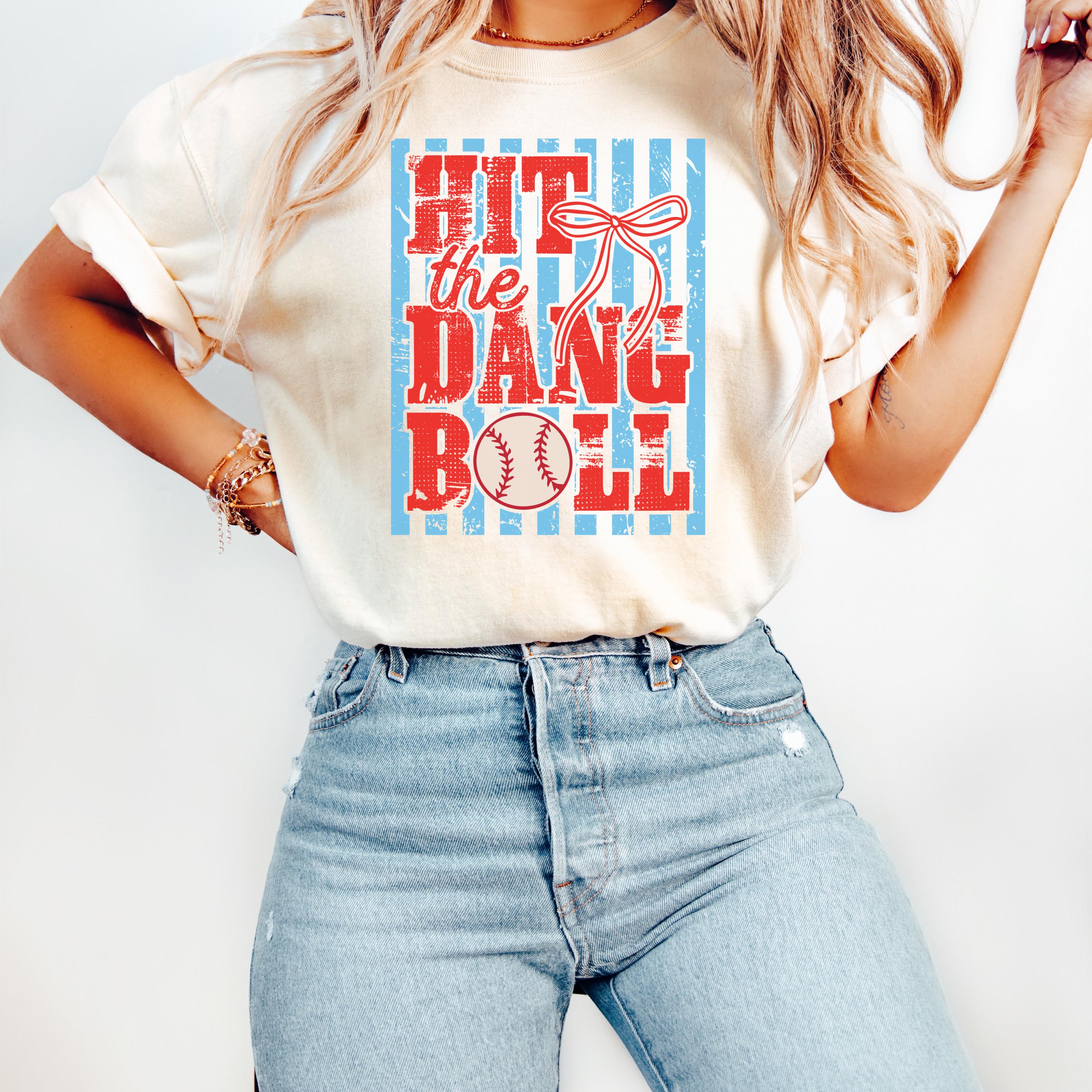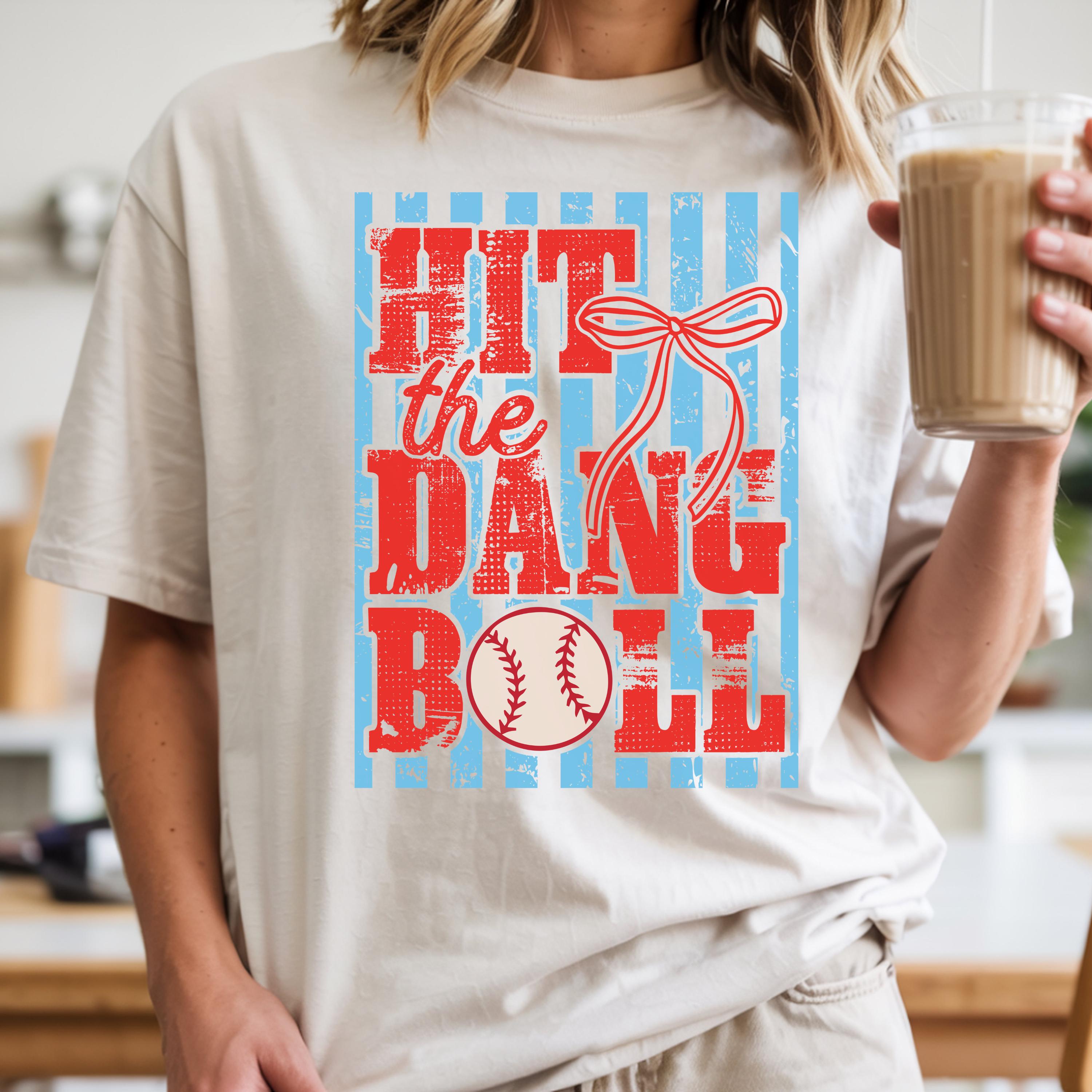 📏 Fit & Care • True-to-size unisex fit • Size up for oversized street look • Wash cold, inside out • Tumble dry low Softball T-Shirt,Hit the Dang Ball,Softball Mama,Game Day Shirt,Softball Stripes,Coquette Bow Shirt,Softball Sport Shirt,Game Day T-Shirt,Girly Baseball Gift,Southern Baseball,Swing Batter Tee,Baseball Mom Gift,Baseballer Apparel Made to order in the USA.🇺🇸