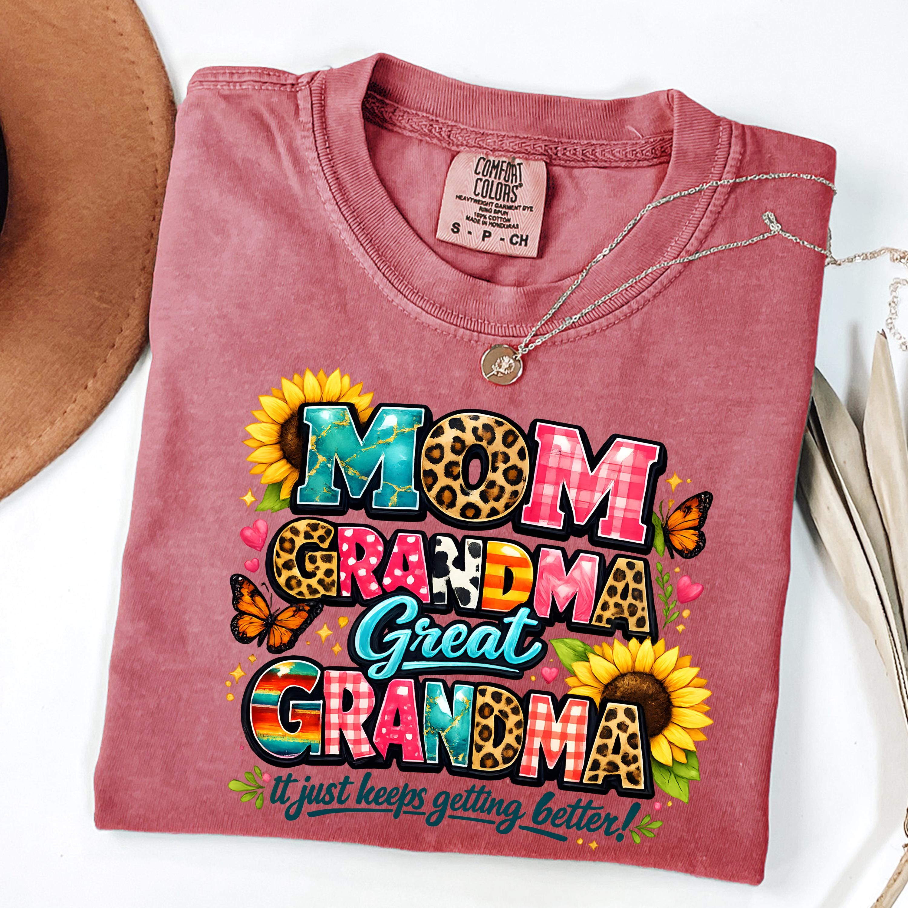 Comfort Colors®Mama, Mom Grandma Great Grandma Tee, It Just Keep Getting Better Shirt, Mothers Day Gift, Gift For Her 👕 Choose Your Style • The Comfort Colors 1717 short sleeve t-shirt is made from soft, garment-dyed cotton for a vintage look and lived-in feel. It features a relaxed unisex fit, durable heavyweight fabric, and all-day comfort perfect for casual everyday wear. •The Comfort Colors 6014 long sleeve t-shirt is crafted from soft, garment-dyed cotton with a relaxed unisex fit and a classic vintage style. Its heavyweight fabric and ribbed cuffs provide lasting comfort and a cozy feel for everyday wear.