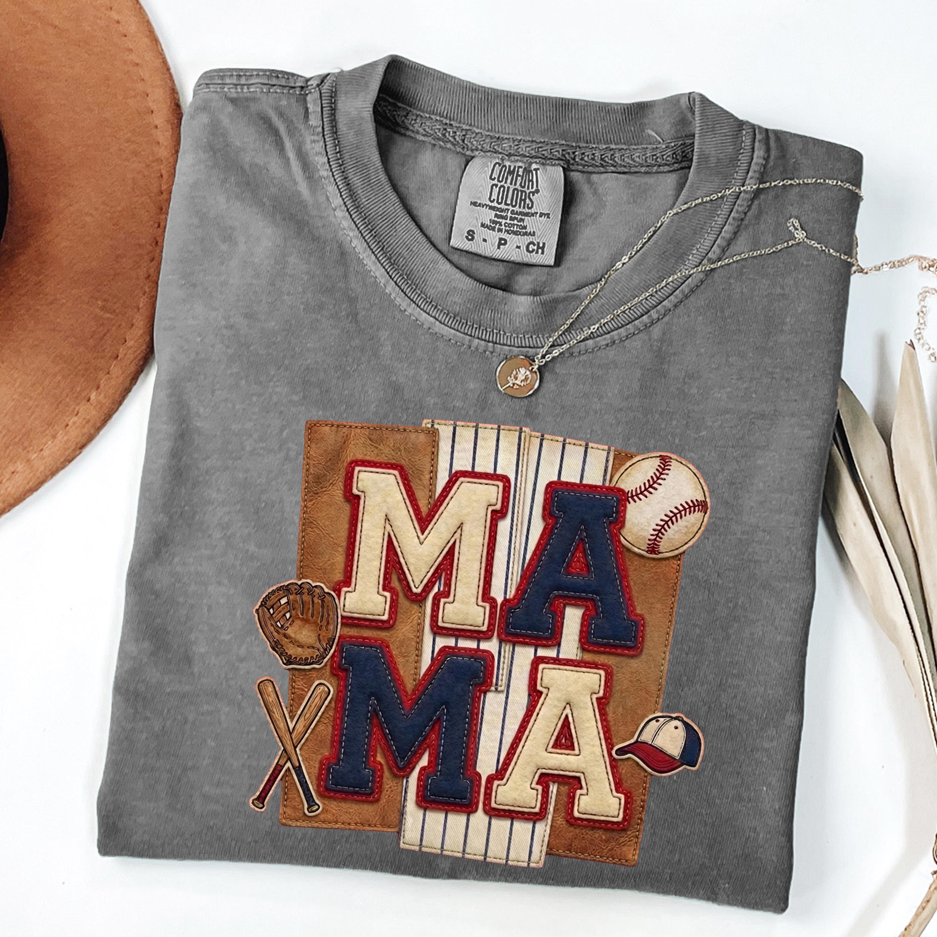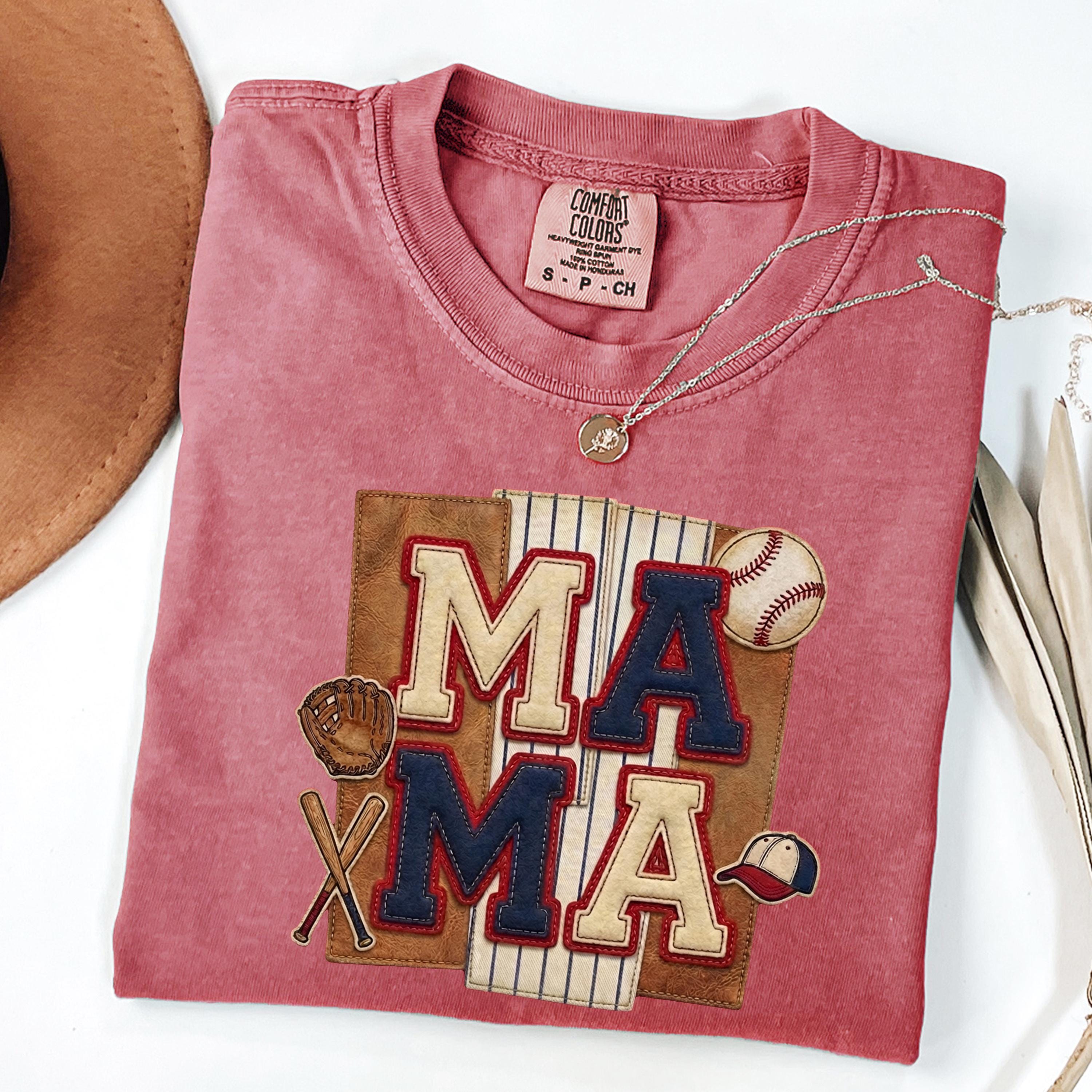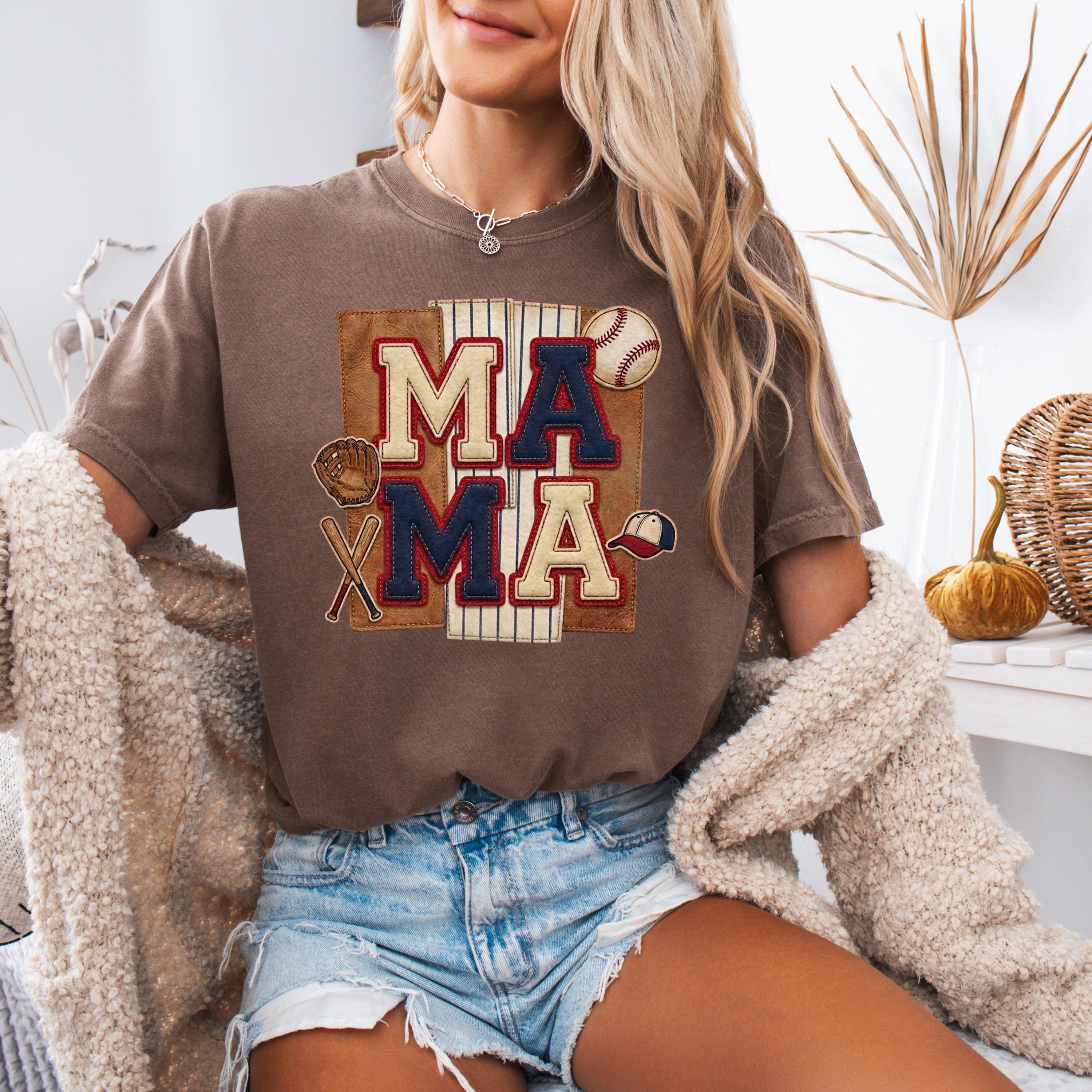 Baseball Mama Comfort Colors T-Shirt, Faux Patch Print Tee, Vintage Sports Mom Shirt, Game Day Graphic Gift for Her. This is not a patch but print shirt.
