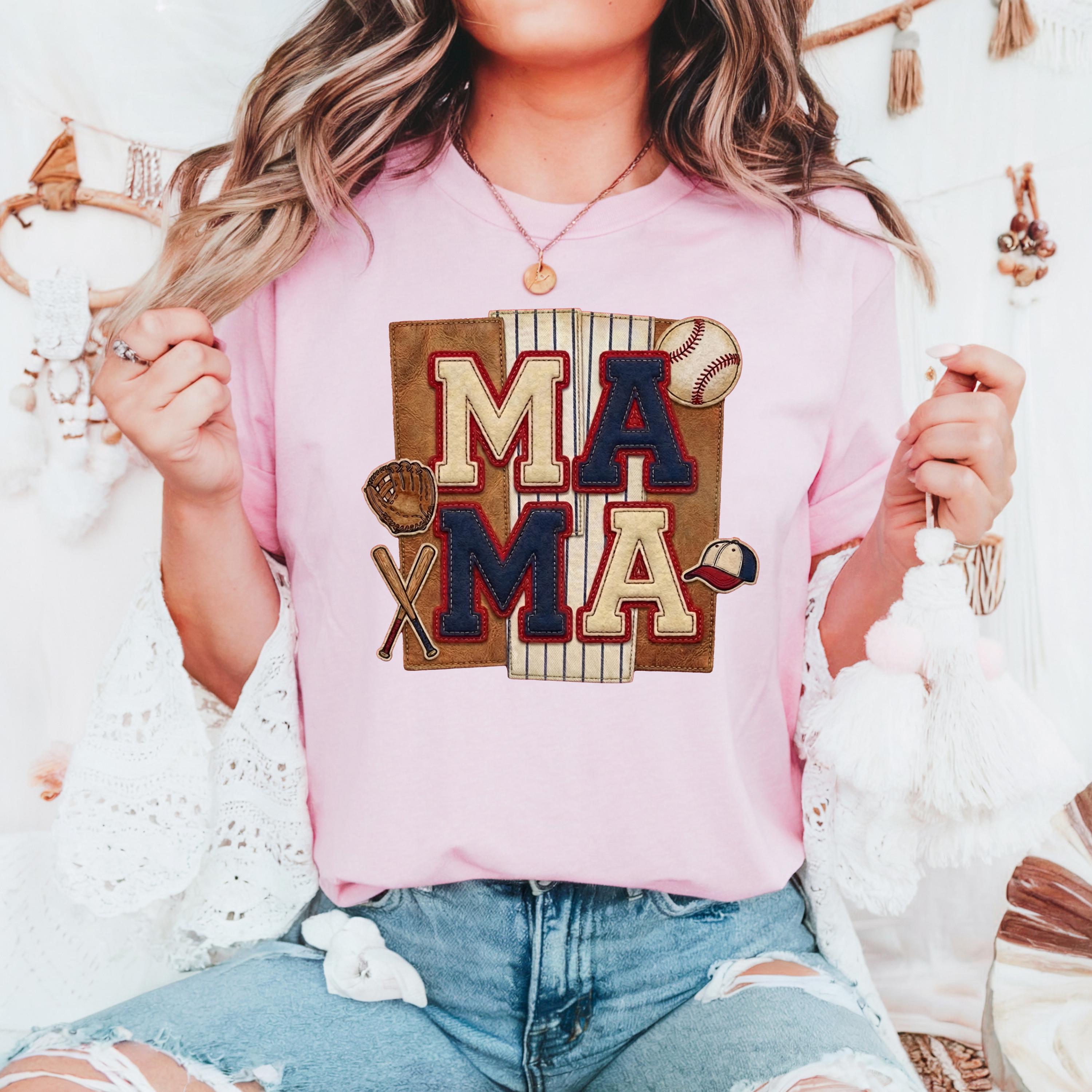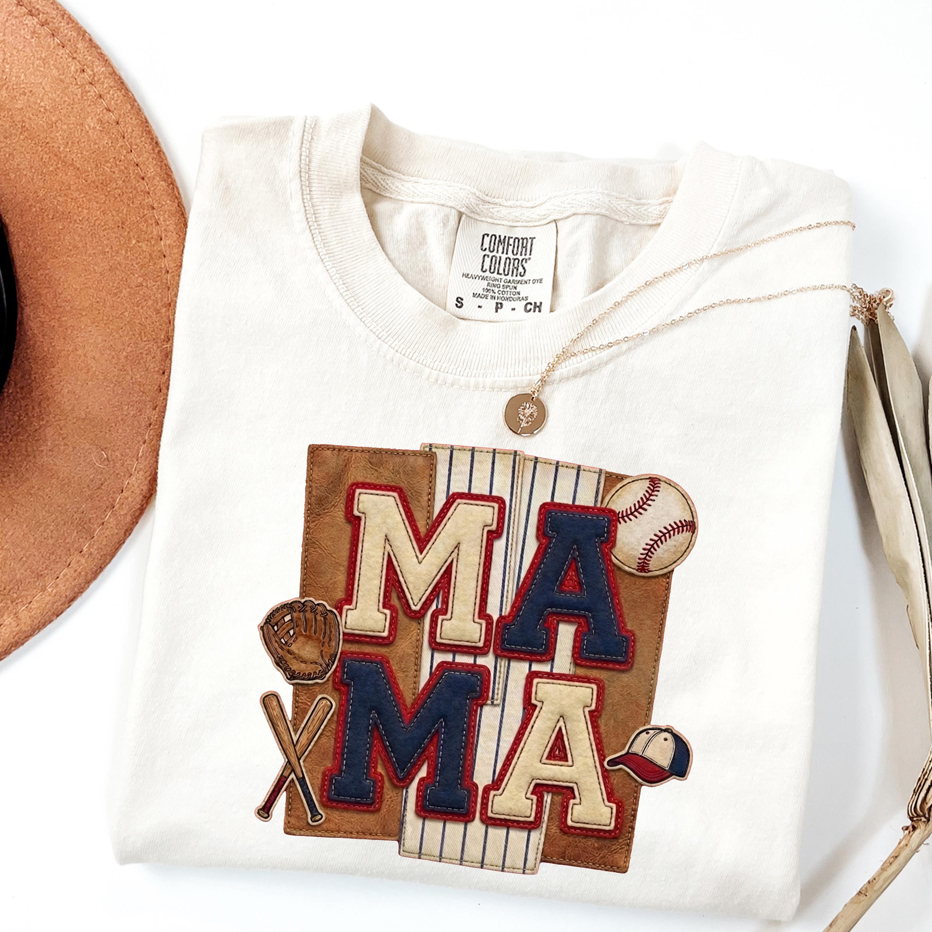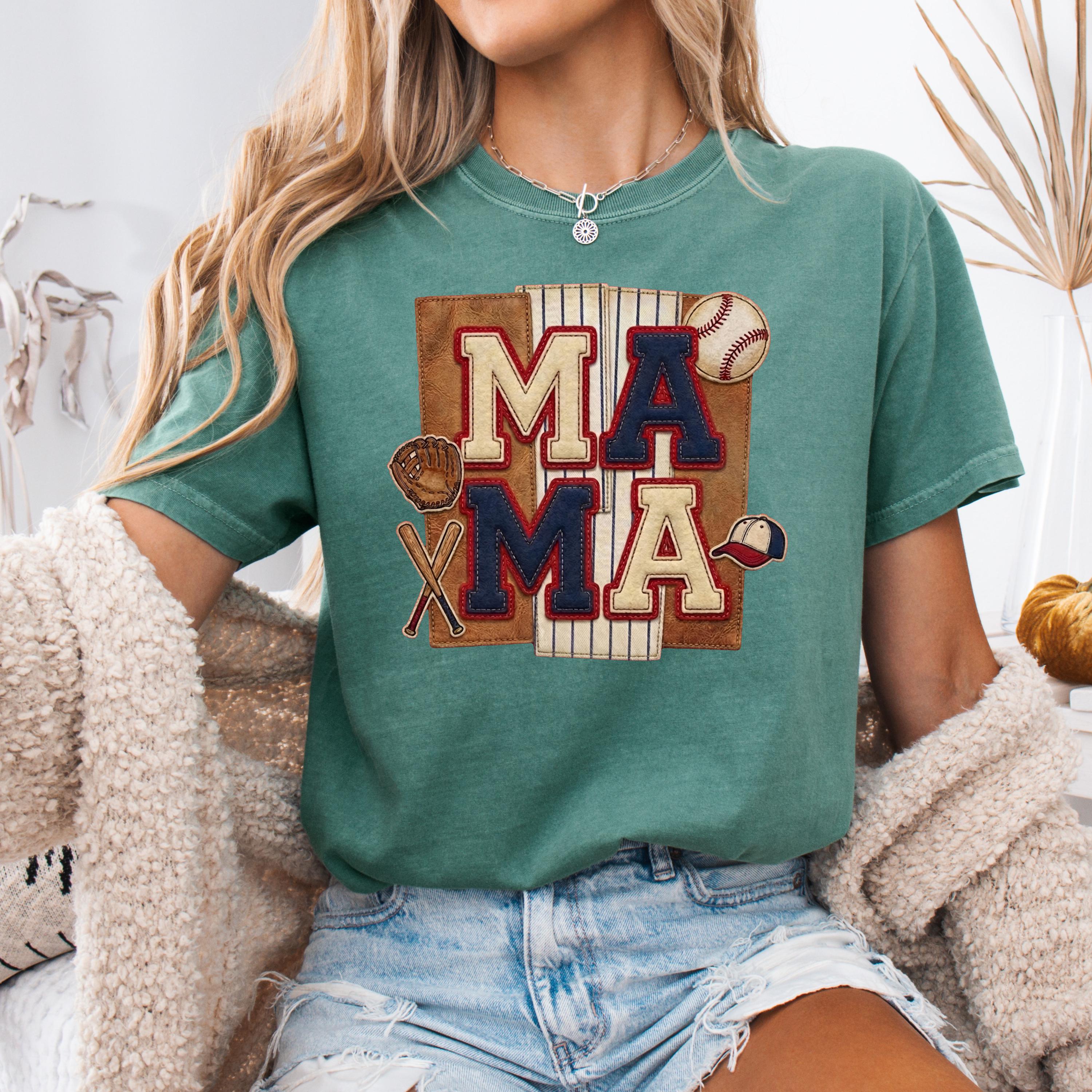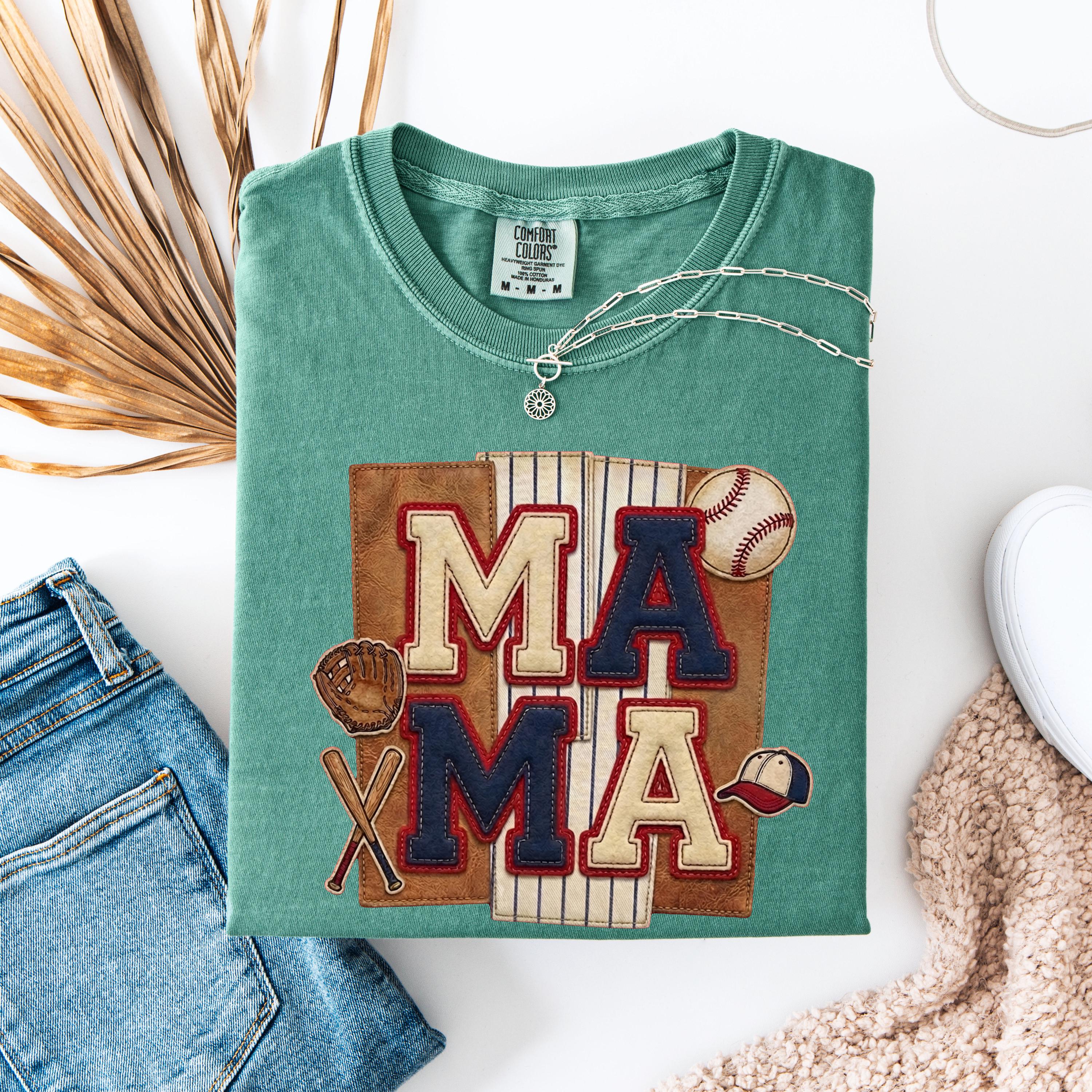 Baseball Mama Comfort Colors T-Shirt, Faux Patch Print Tee, Vintage Sports Mom Shirt, Game Day Graphic Gift for Her. This is not a patch but print shirt.