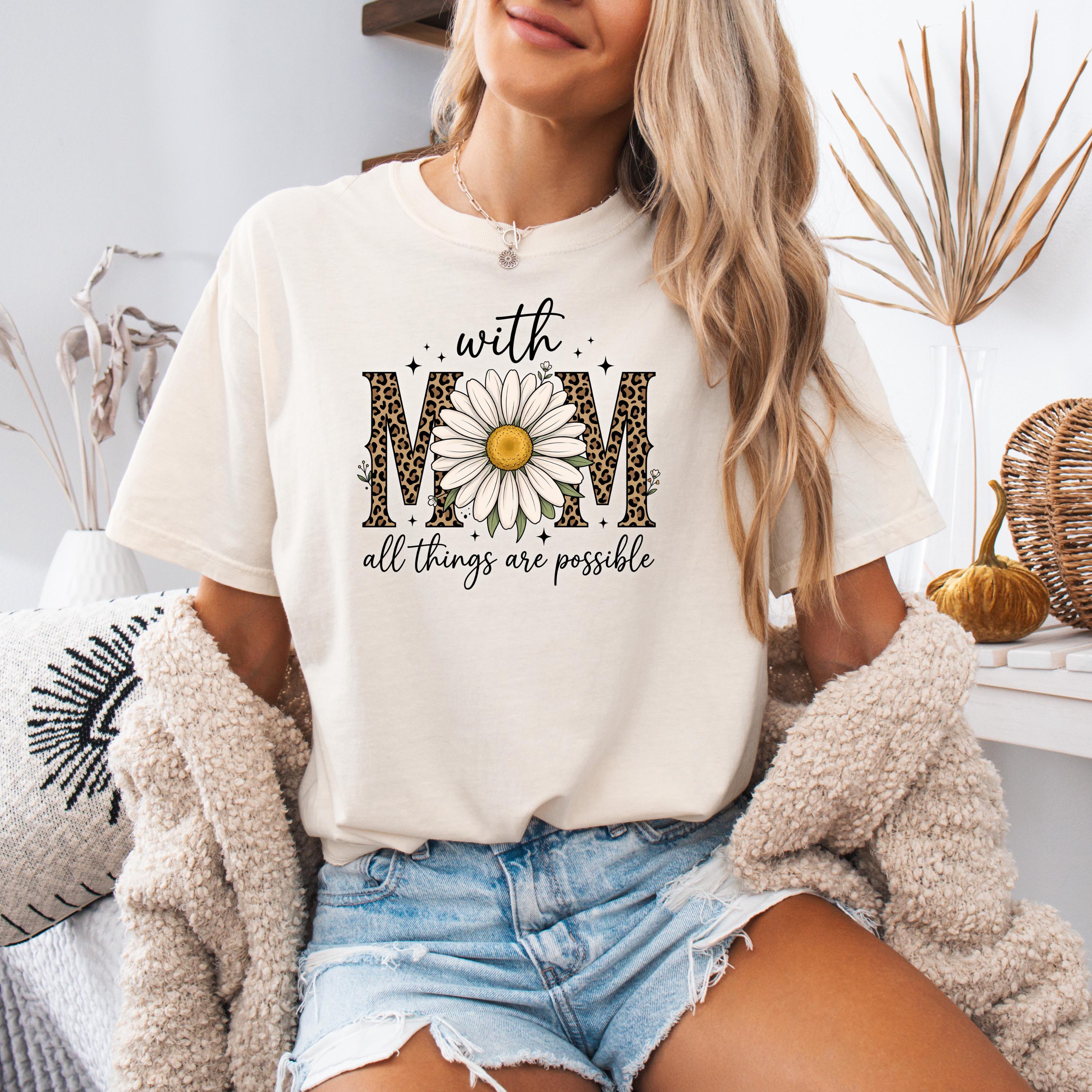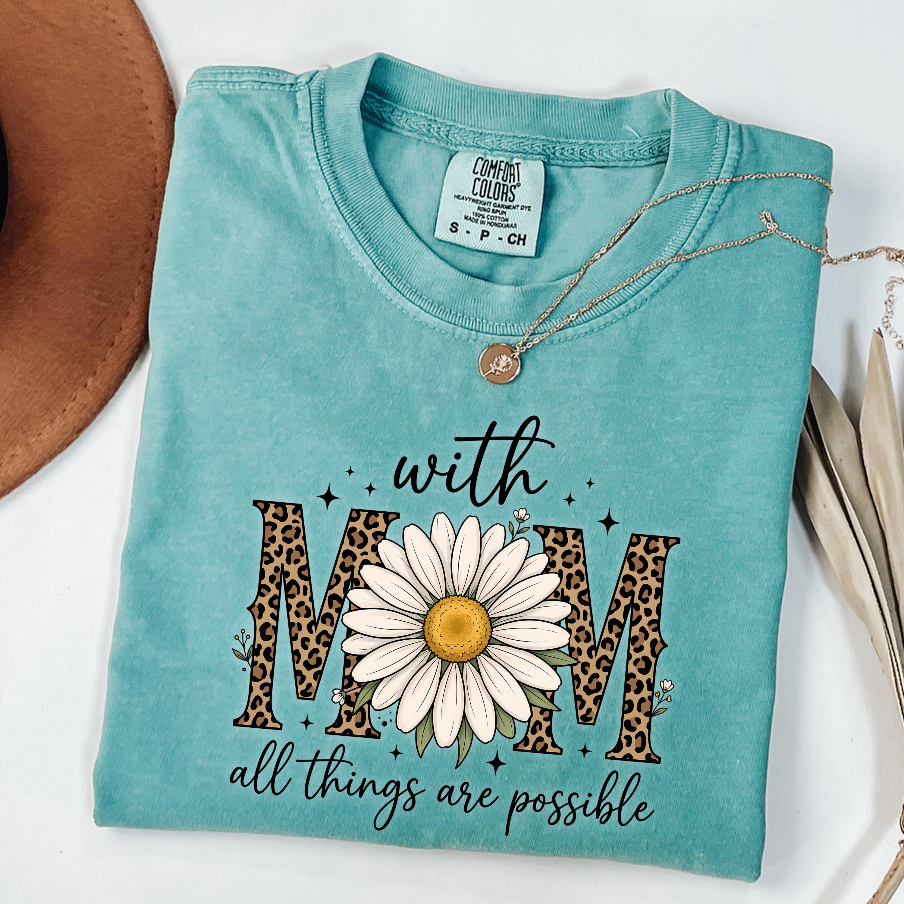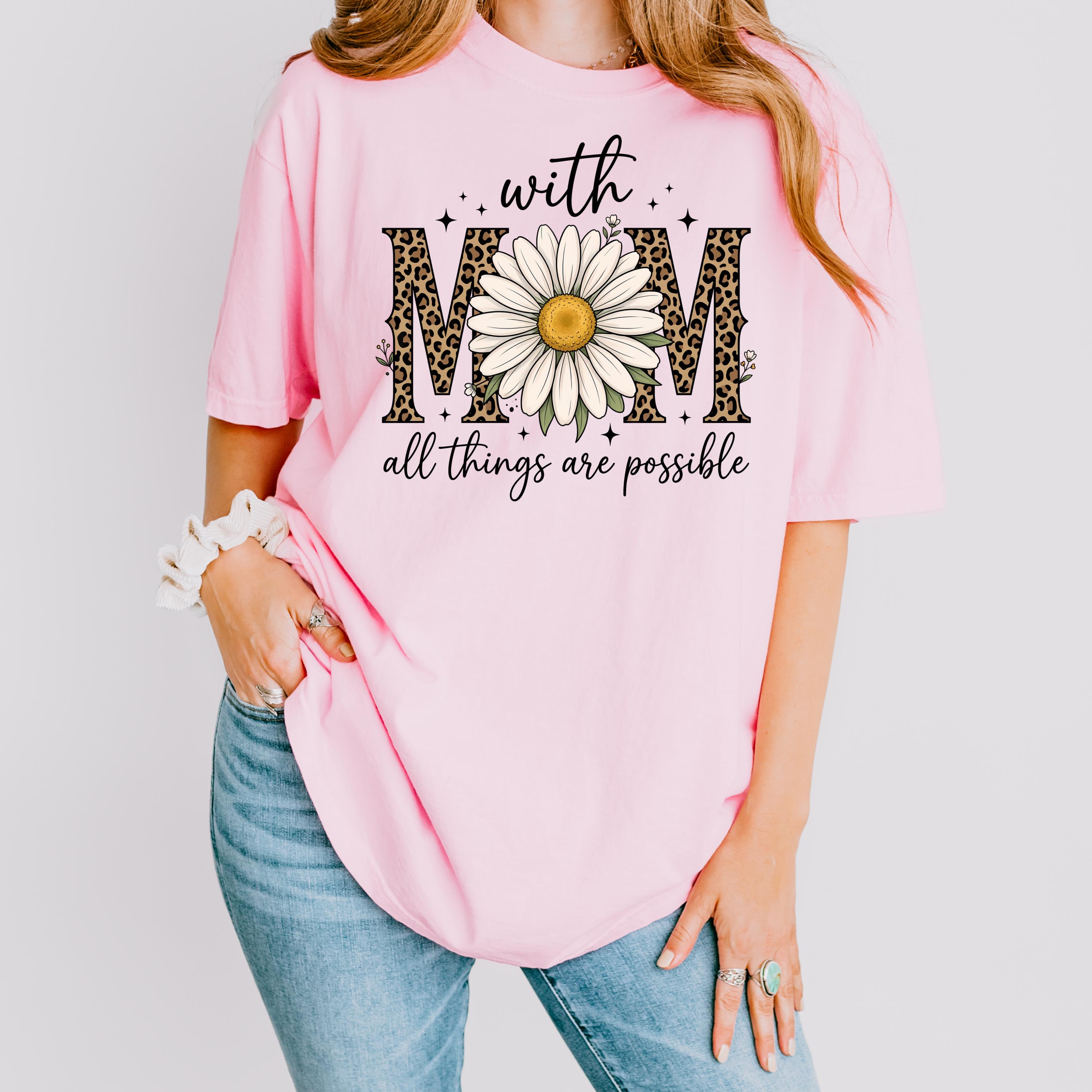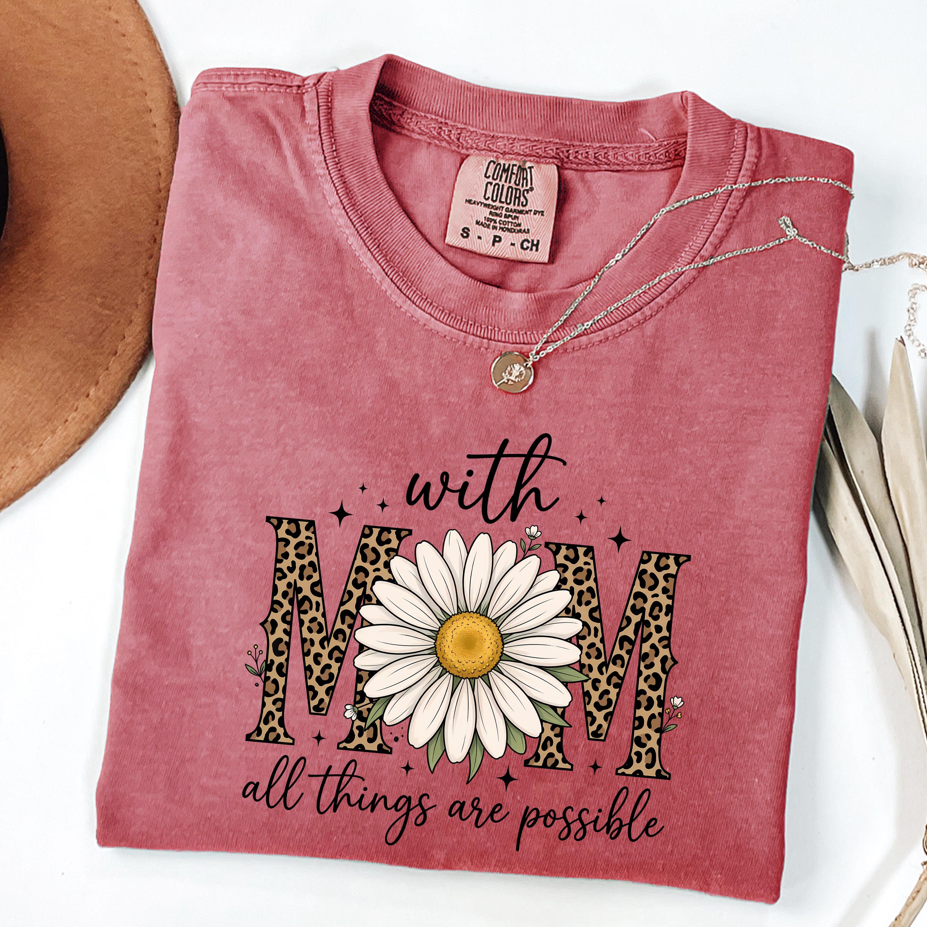 Comfort Colors, With Mom All Things Are Possible Tee, Mothers Day Gift, Daisy Flower Tee, Leopard Mom Tee, Cute Mom Graphic, Gift for Mom
