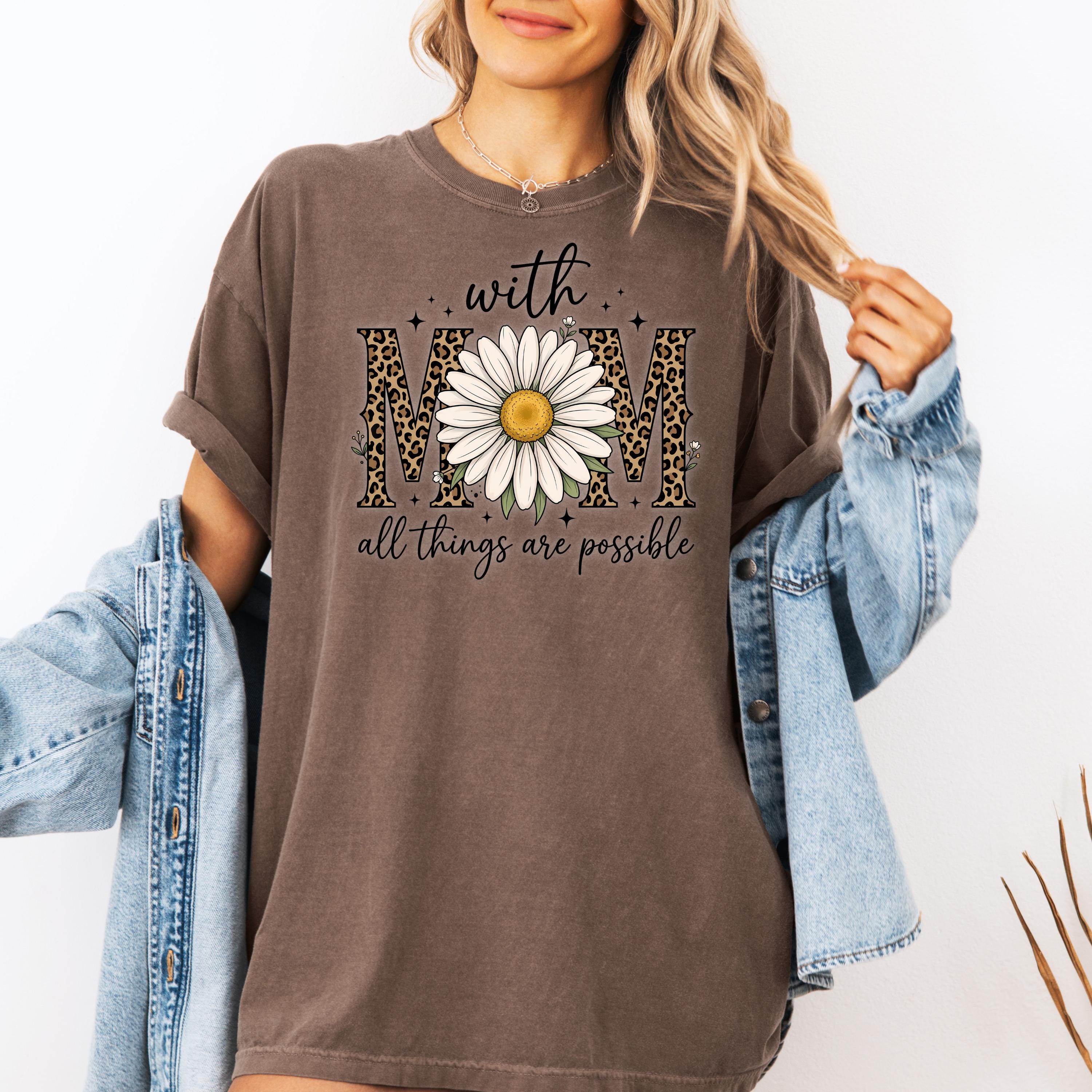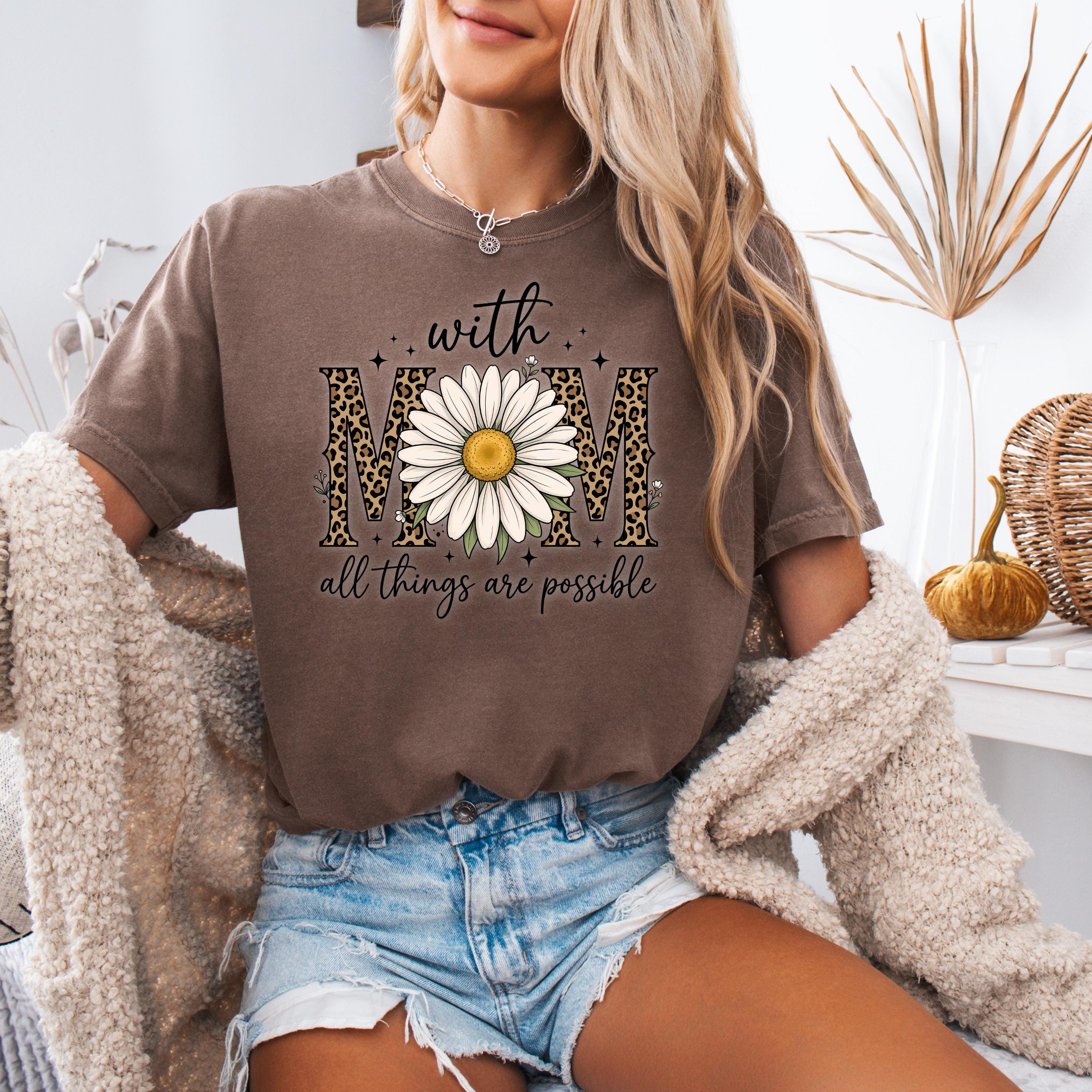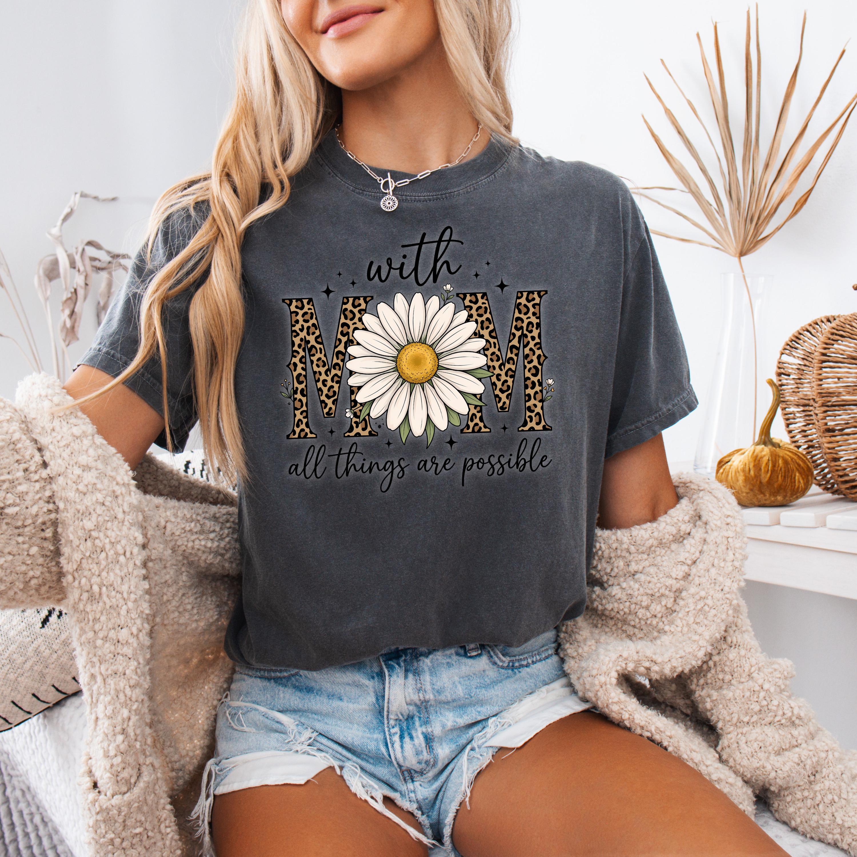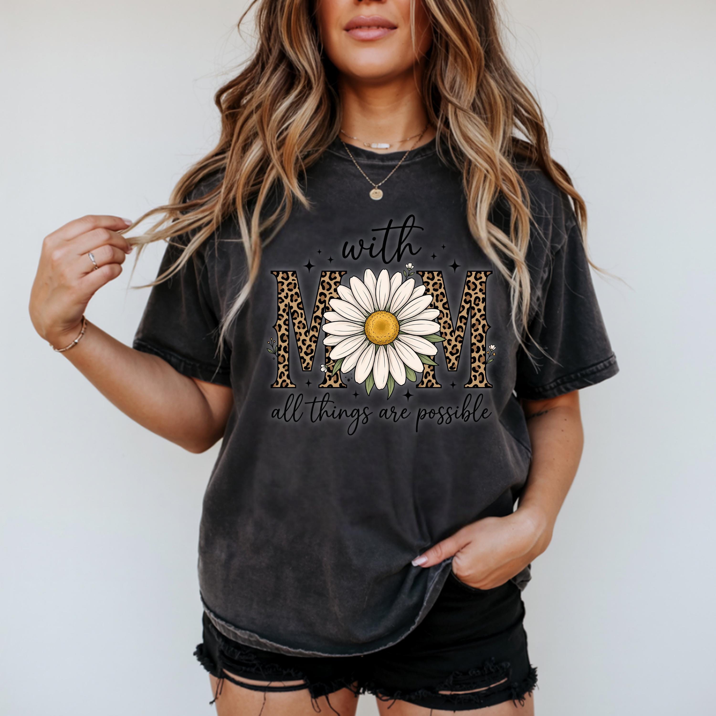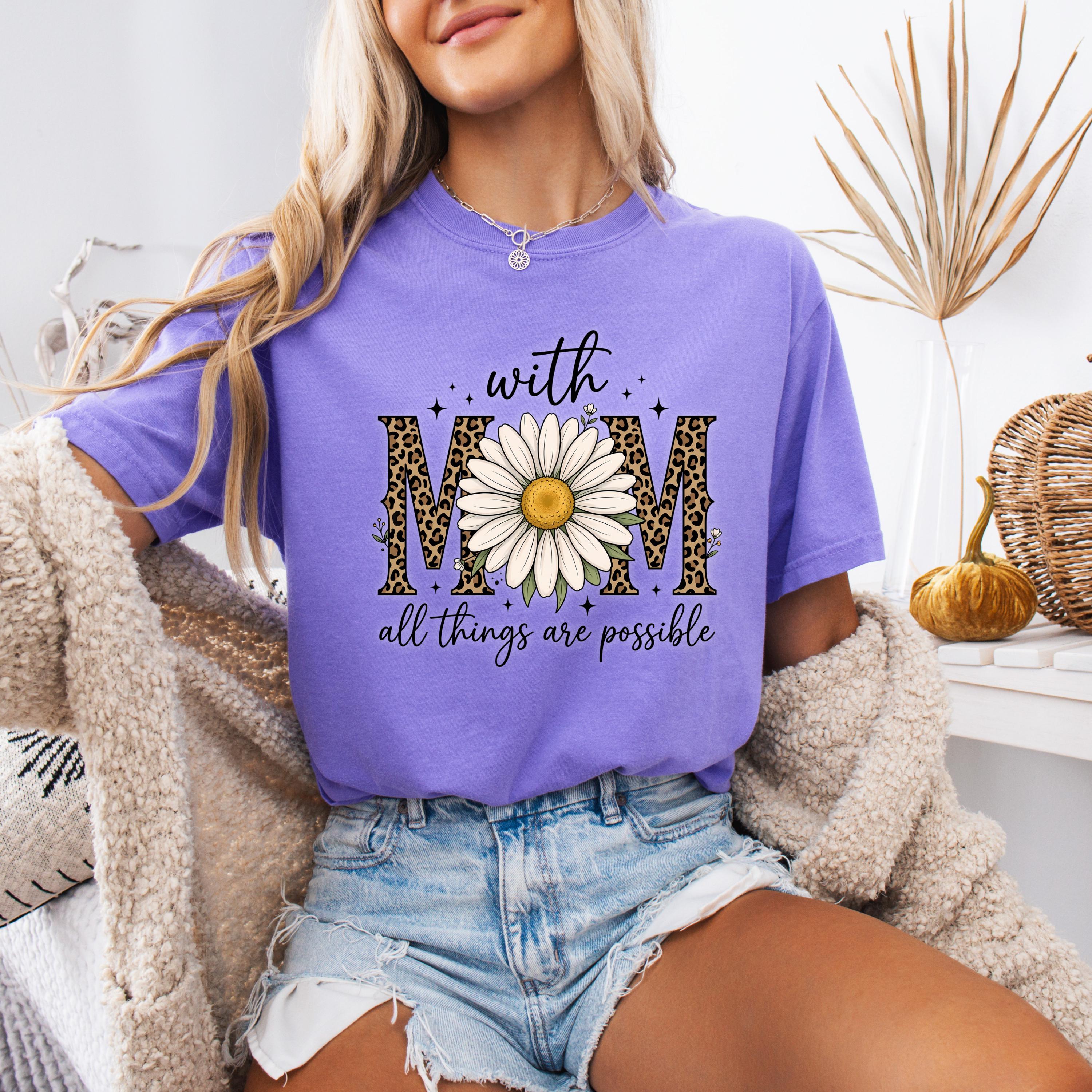 Comfort Colors, With Mom All Things Are Possible Tee, Mothers Day Gift, Daisy Flower Tee, Leopard Mom Tee, Cute Mom Graphic, Gift for Mom