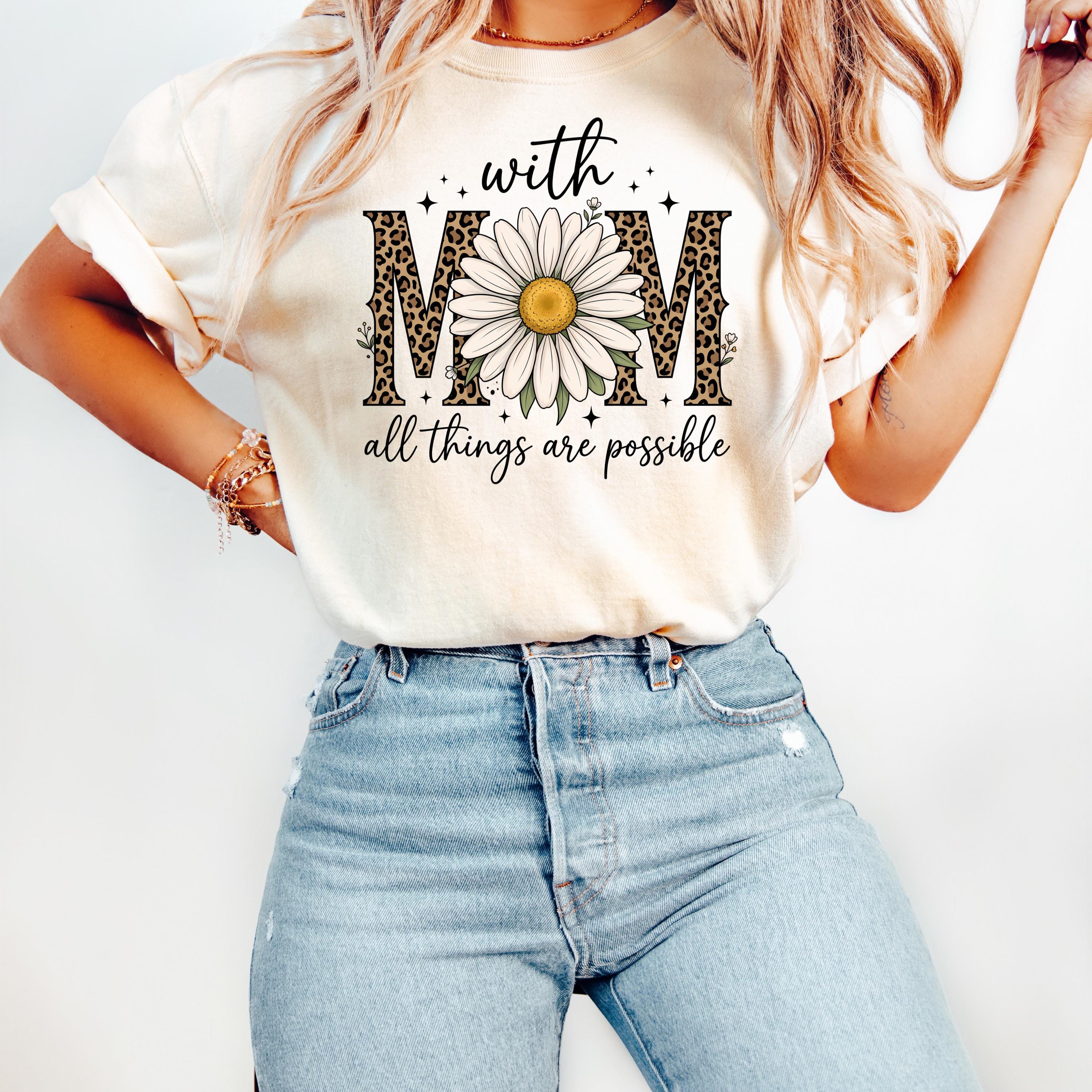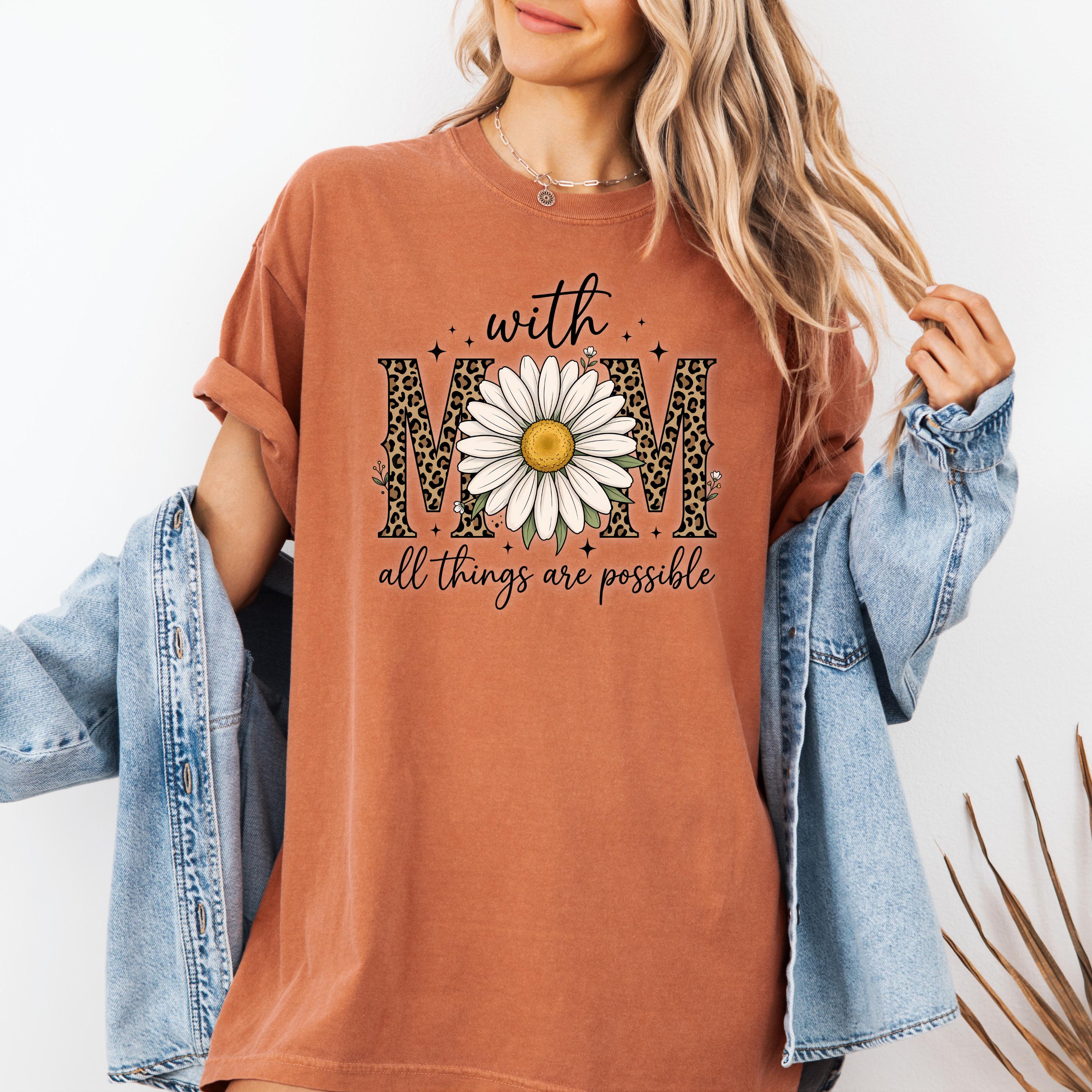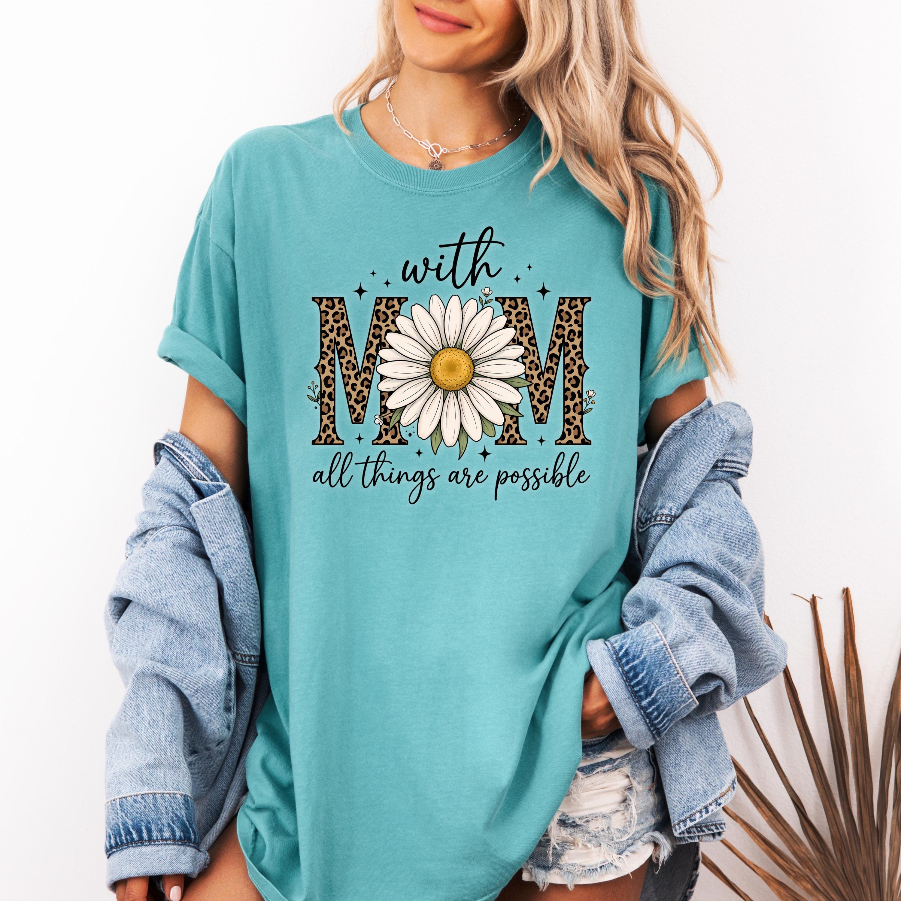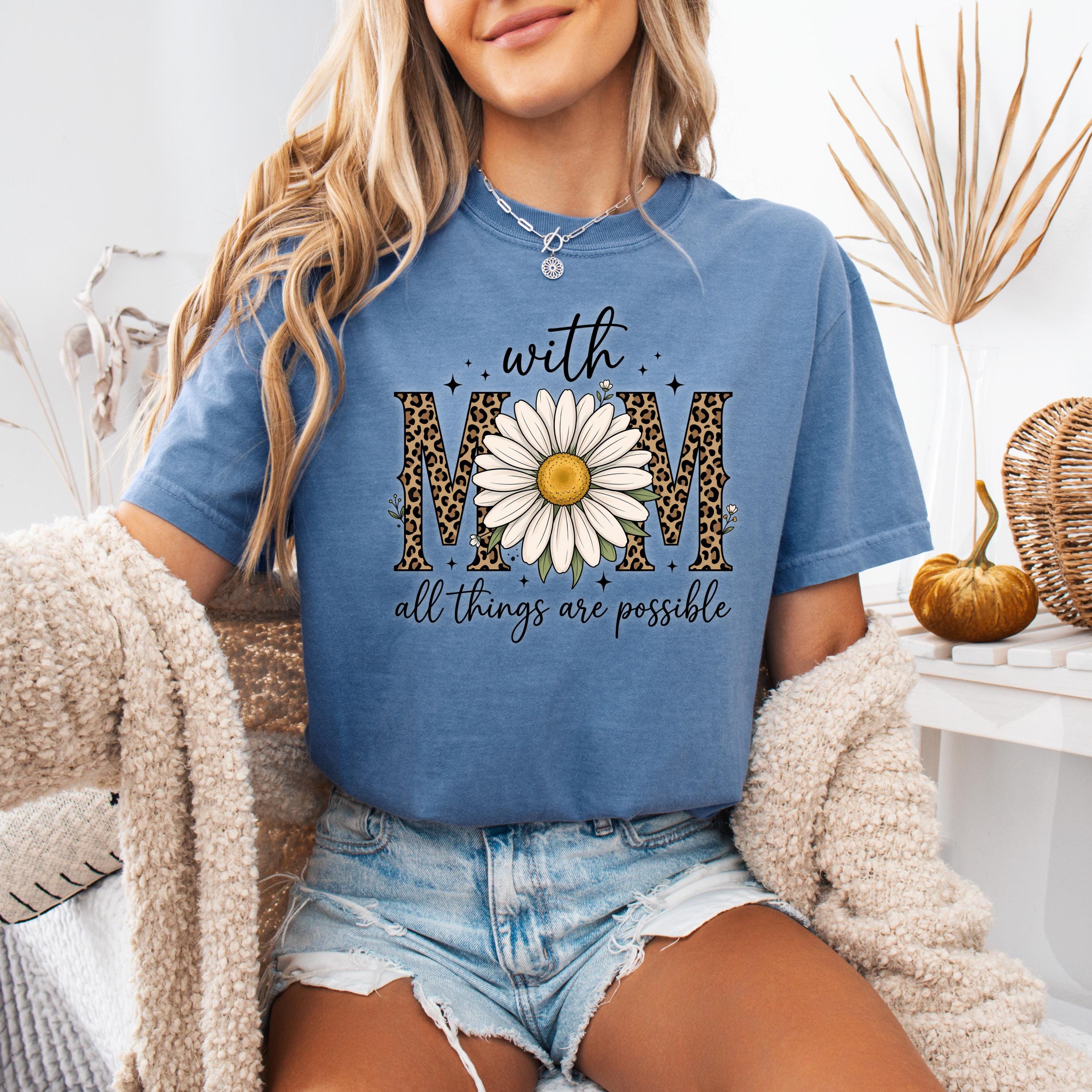 Comfort Colors, With Mom All Things Are Possible Tee, Mothers Day Gift, Daisy Flower Tee, Leopard Mom Tee, Cute Mom Graphic, Gift for Mom