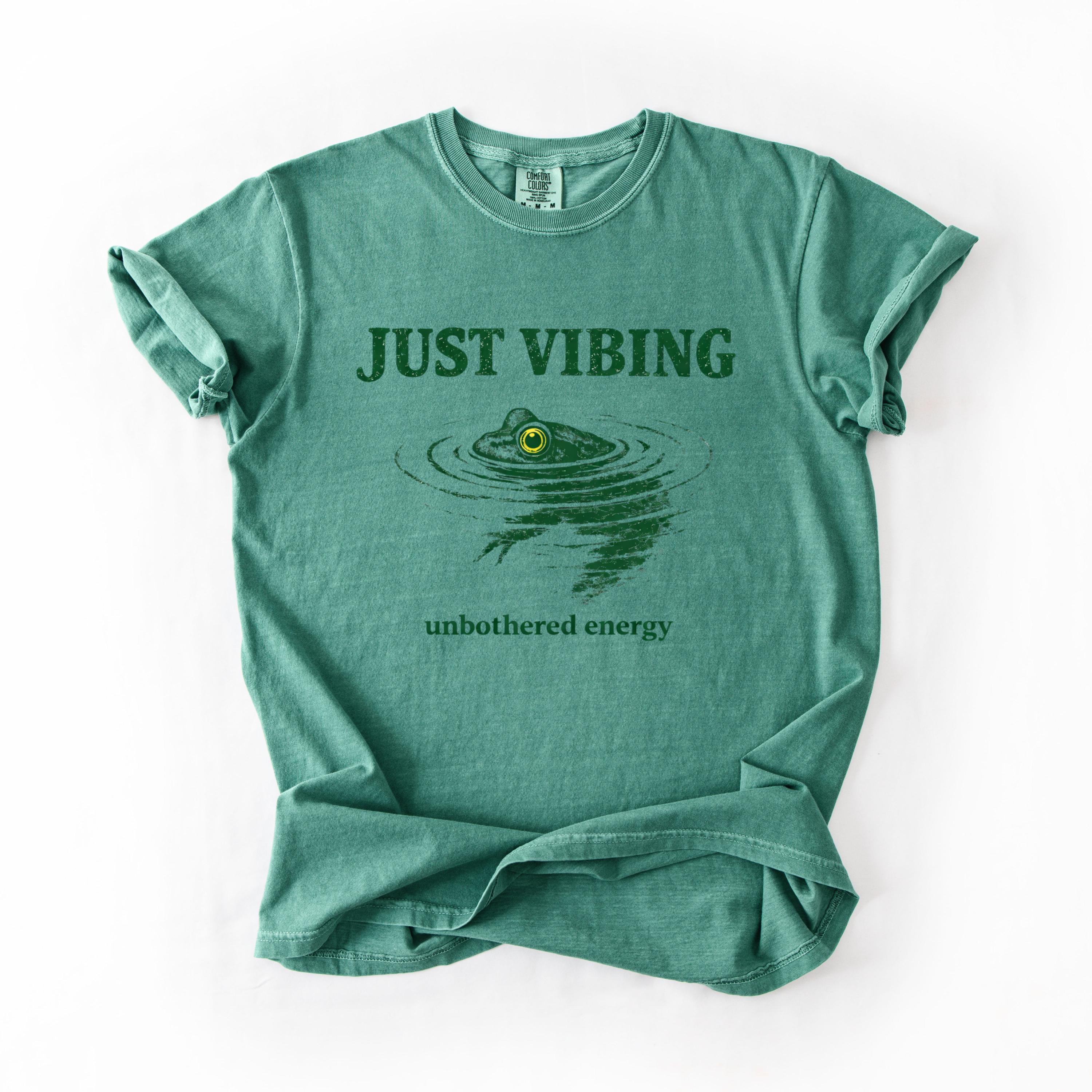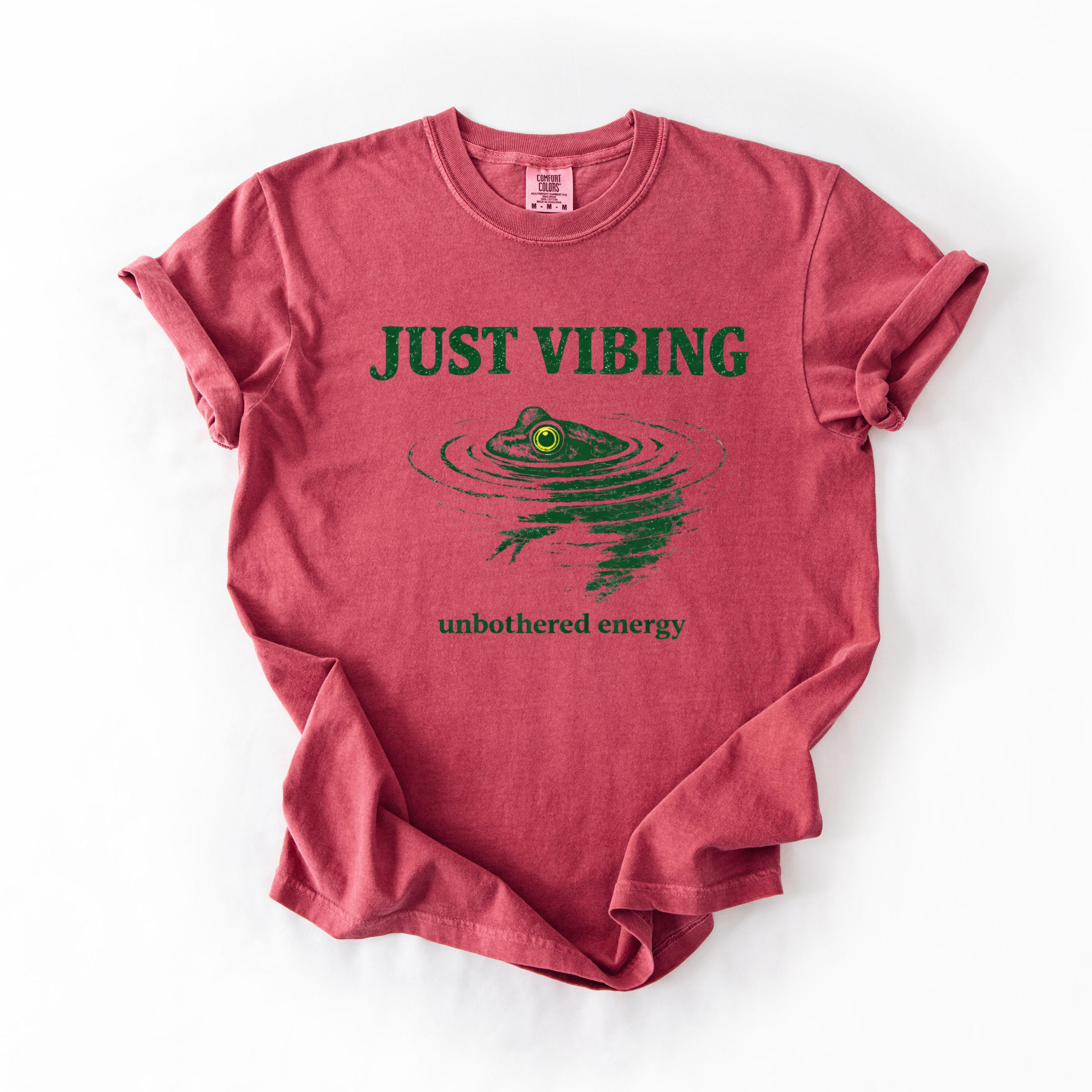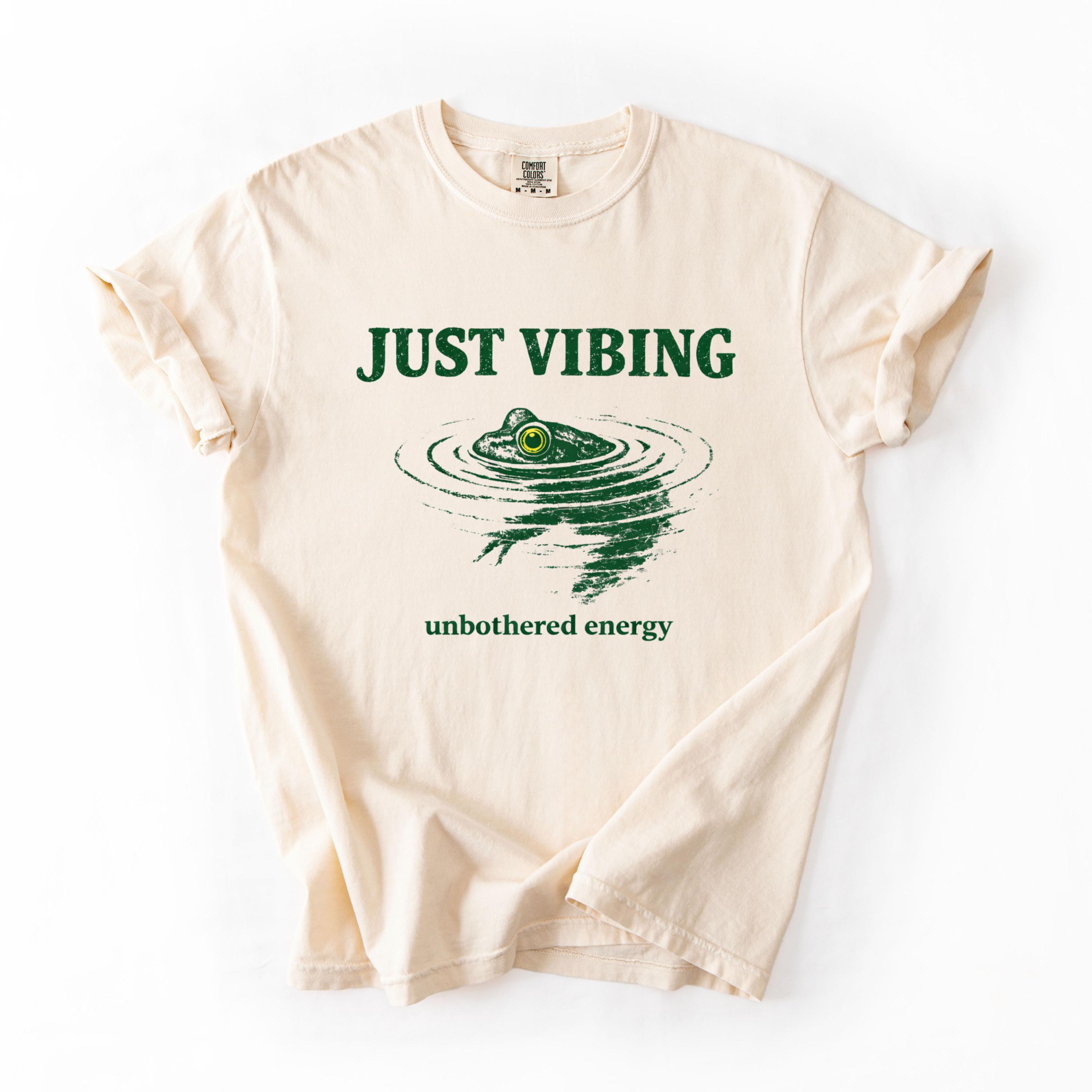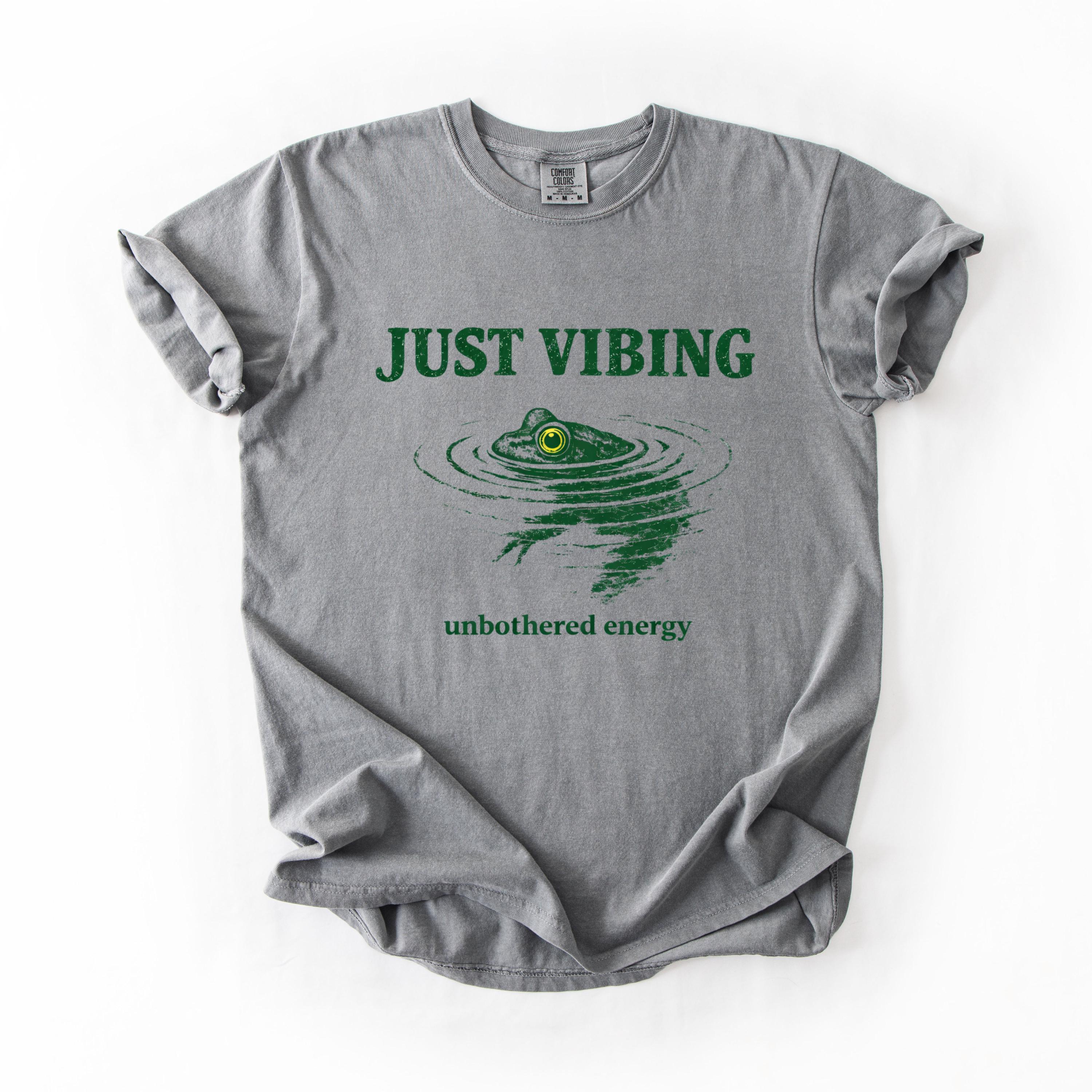 Add a calm and carefree vibe to your wardrobe with this “Just Vibing” frog t-shirt. Designed for those who love nature, humor, and unbothered energy, this minimalist graphic tee is perfect for everyday wear.