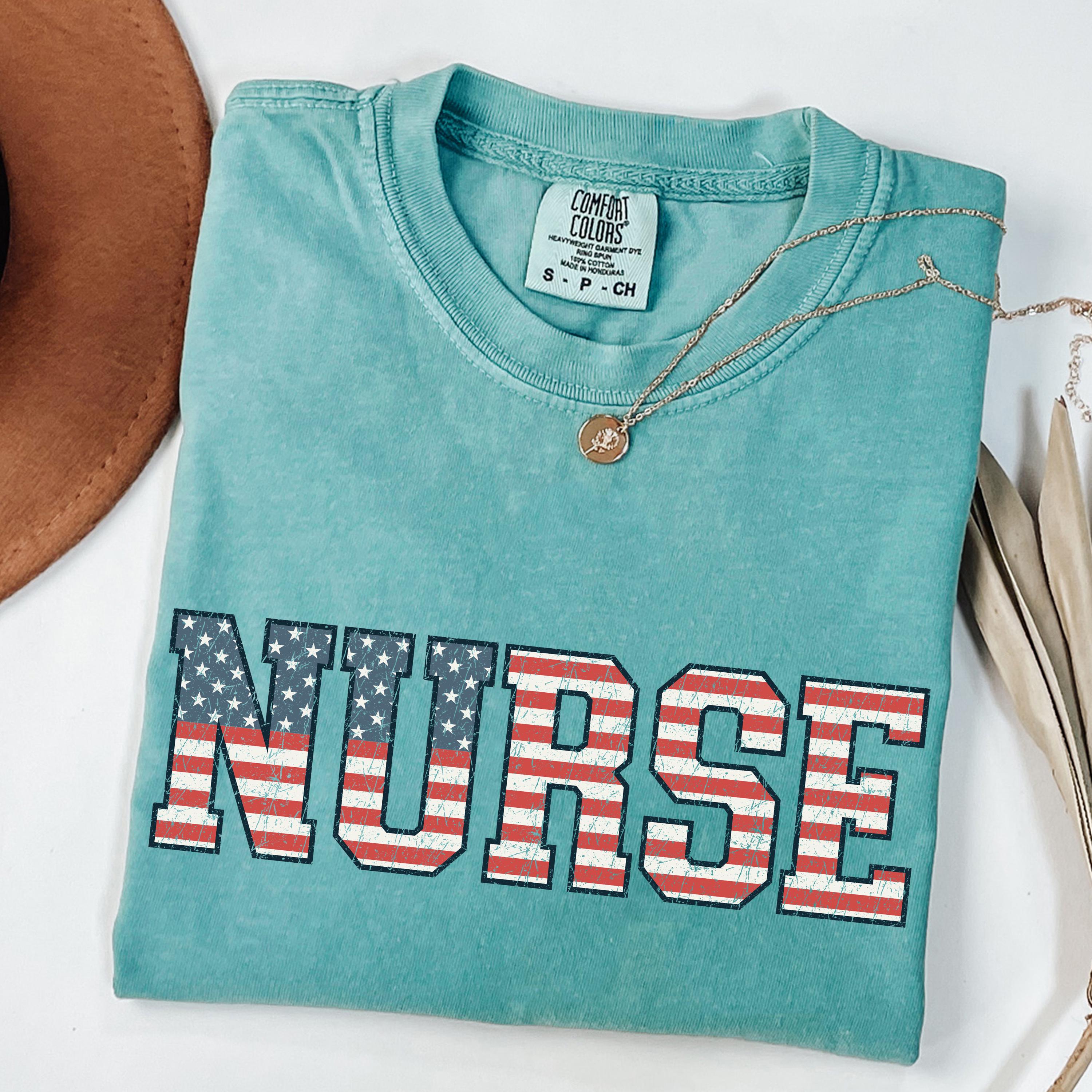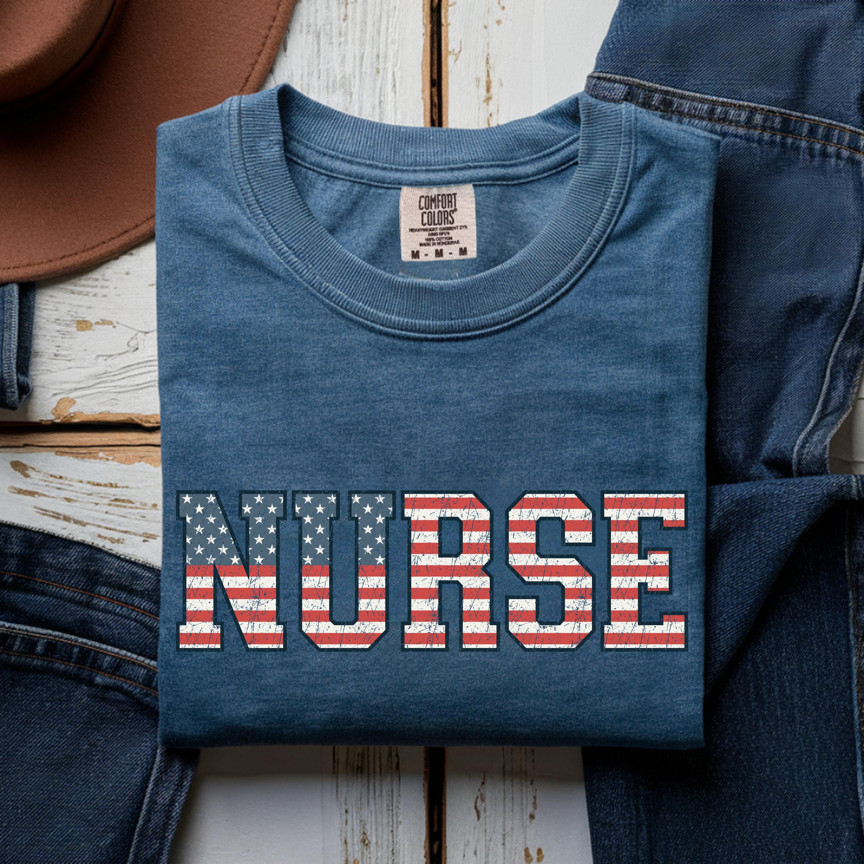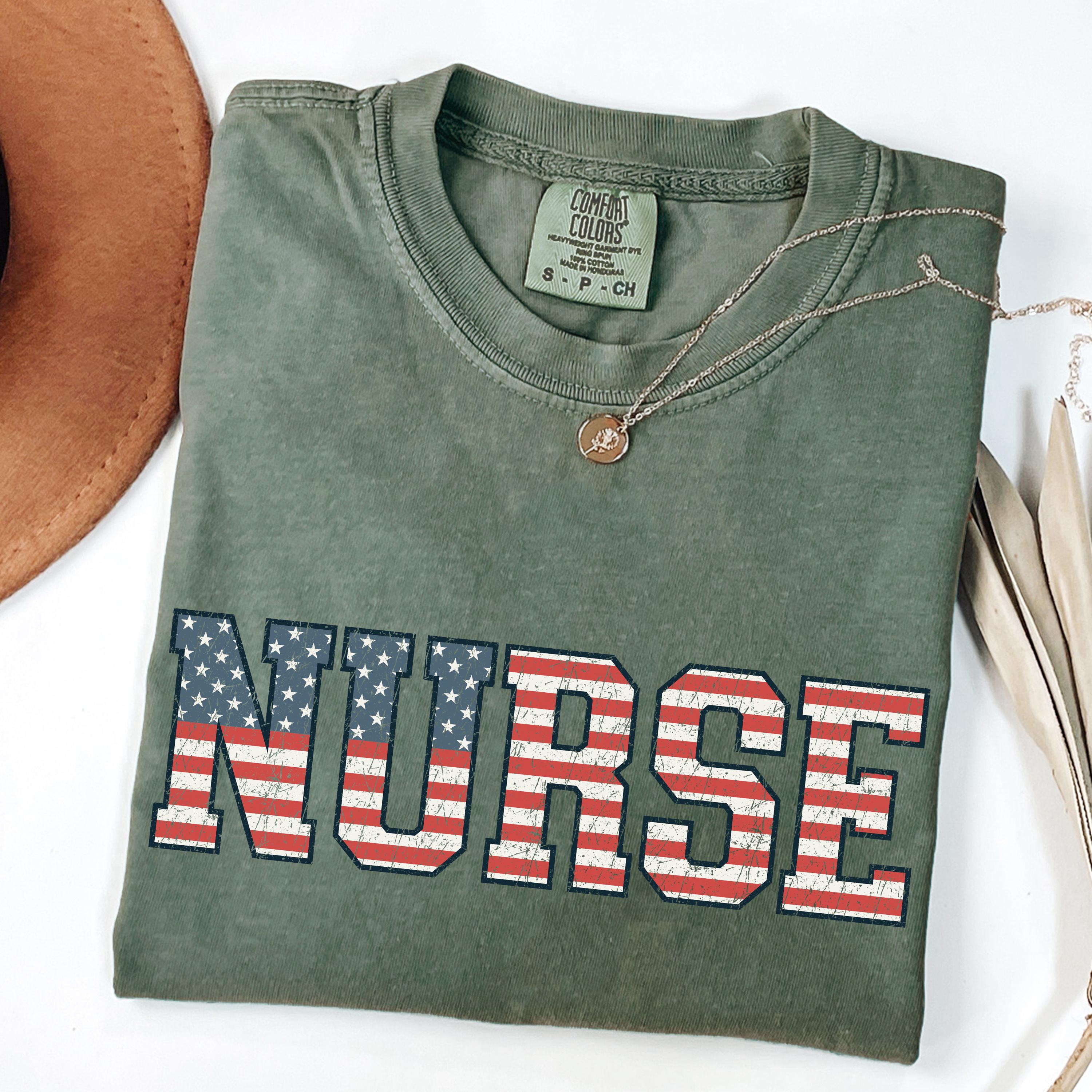 Show your pride in both country and career with this patriotic nurse t-shirt featuring a bold USA flag “NURSE” design. Perfect for 4th of July celebrations, Nurse Week, everyday workwear, or as a thoughtful gift for RNs, LPNs, CNAs, and healthcare heroes who love stylish and meaningful graphic tees.