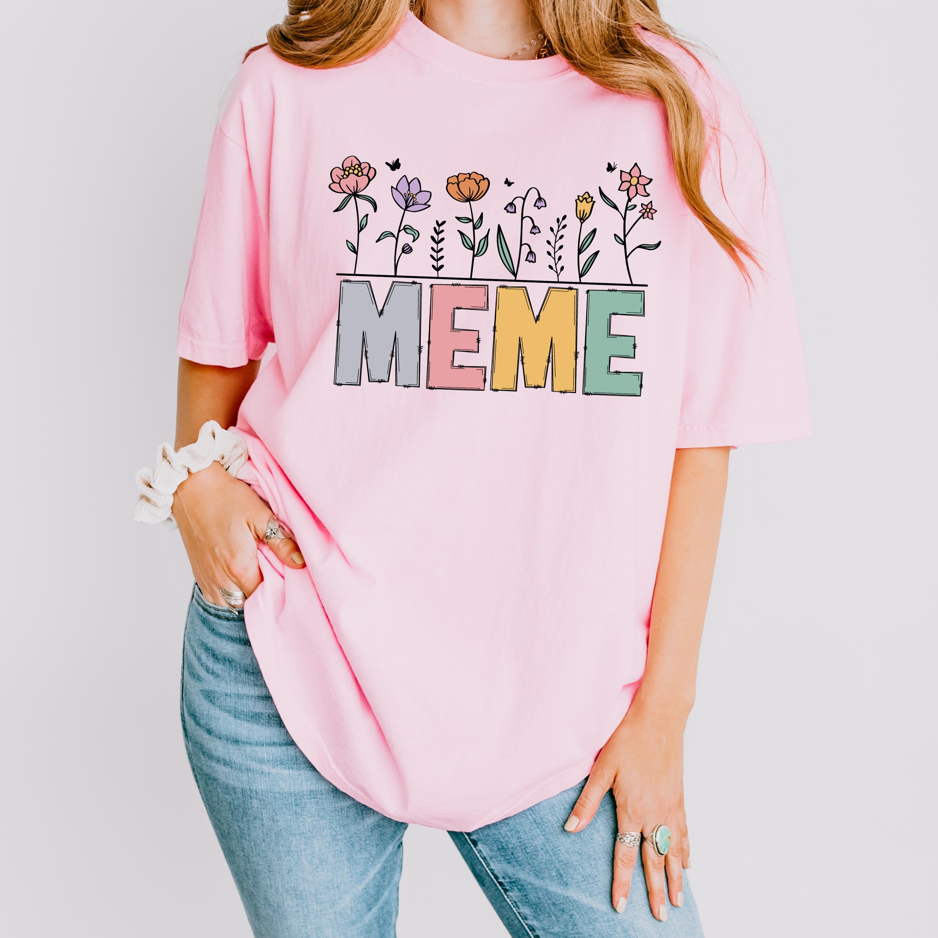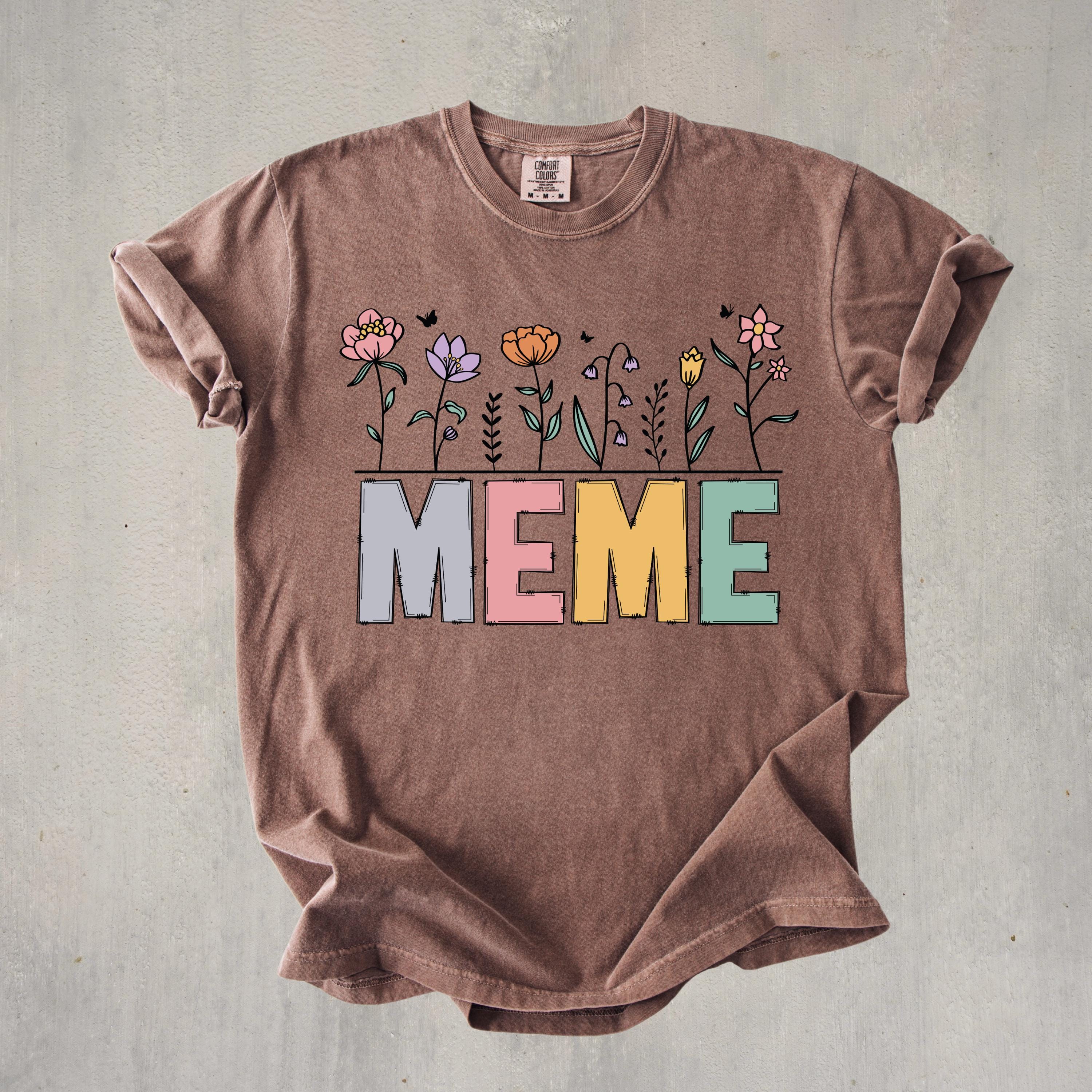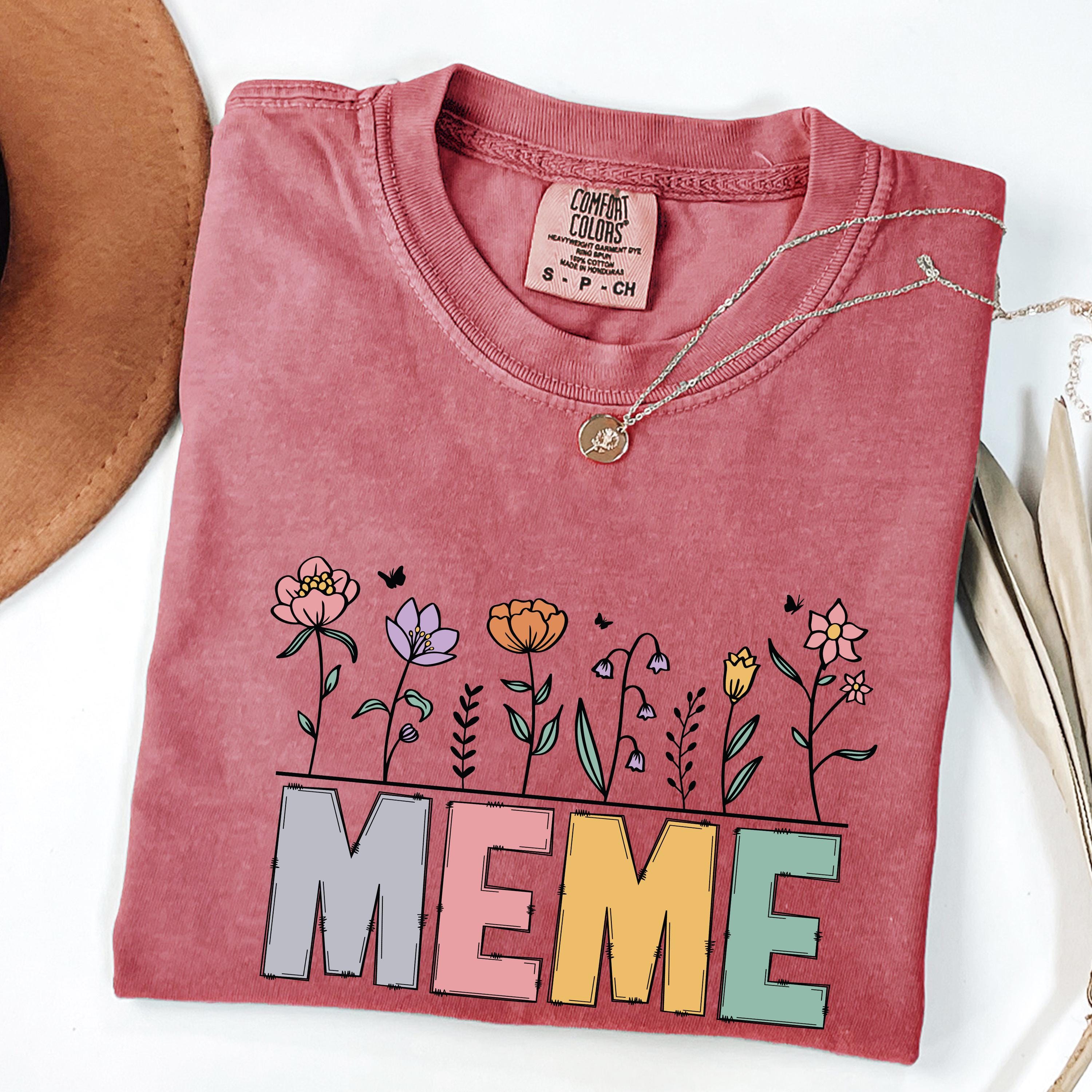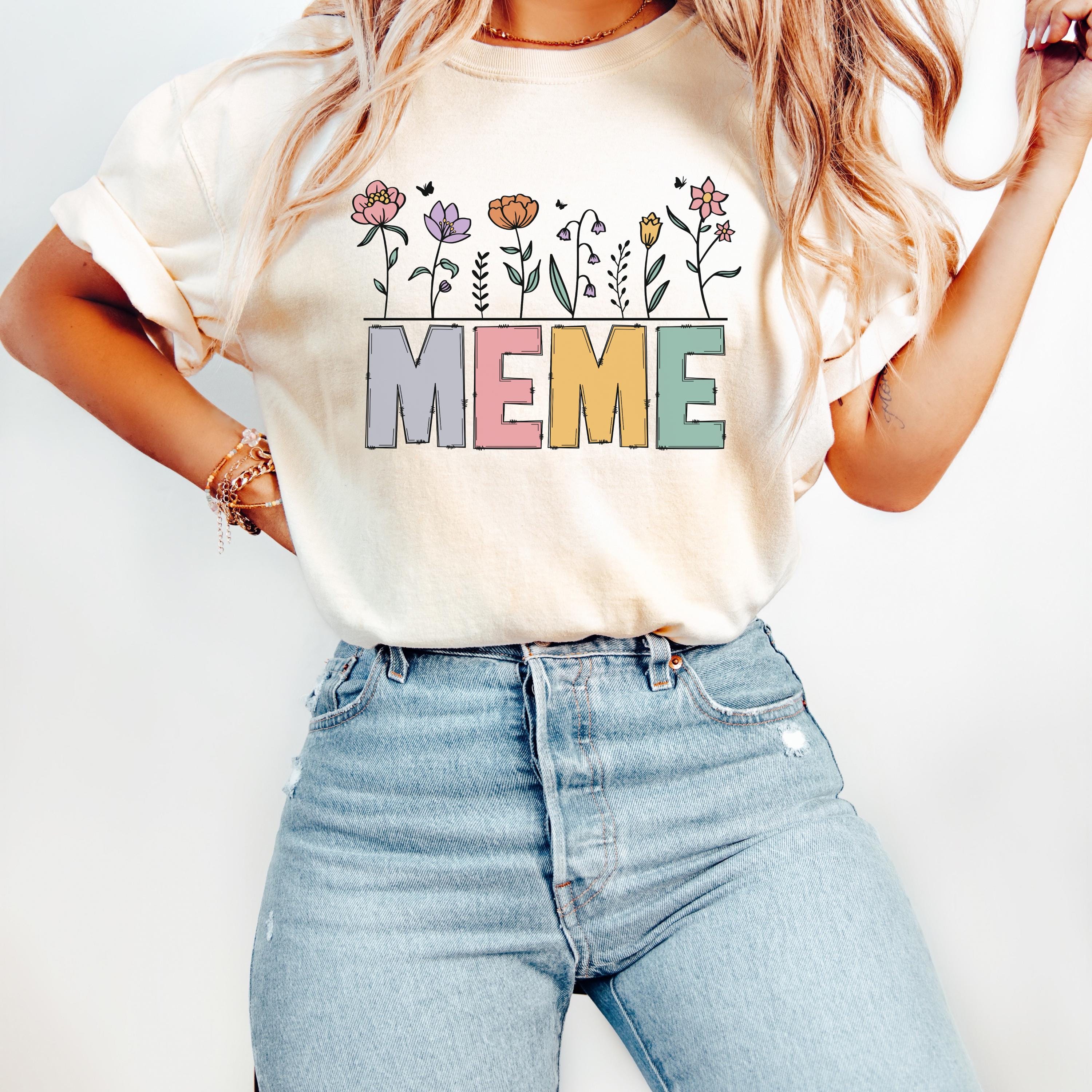 Celebrate motherhood and grandma love with this “Meme” floral t-shirt, featuring soft pastel letters and delicate flower details. Perfect for moms and grandmas, this cute and trendy tee makes a thoughtful Mother’s Day gift or everyday wear piece.