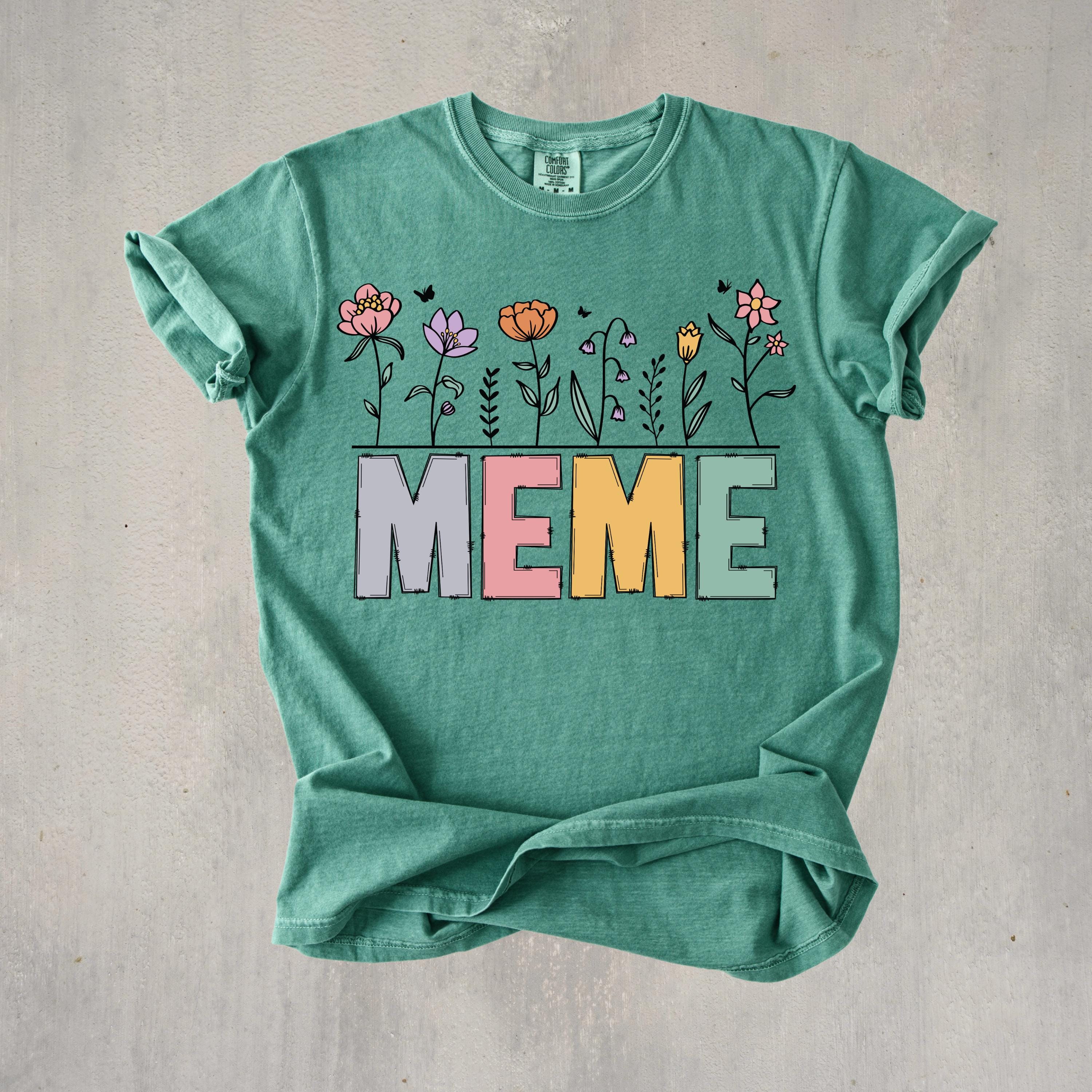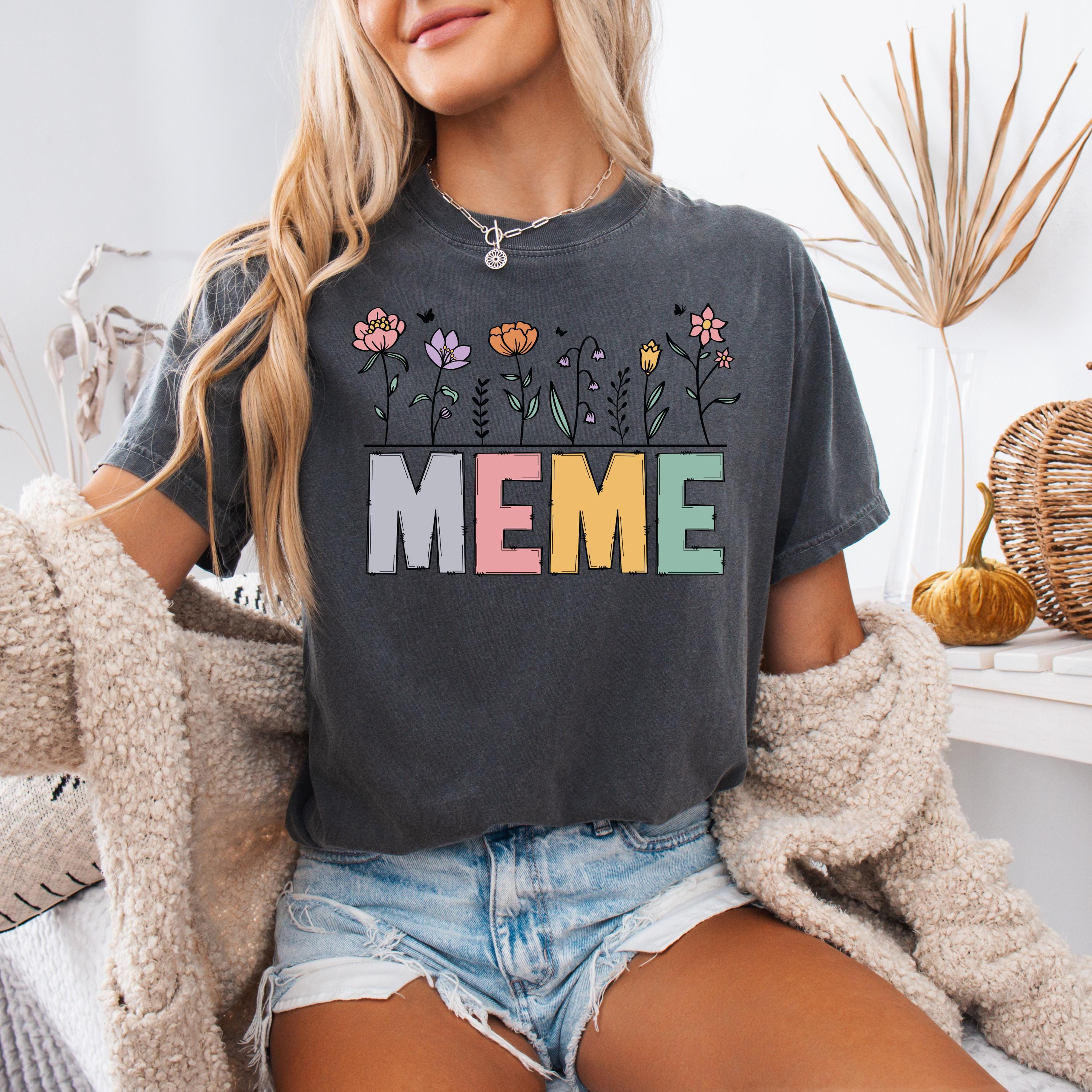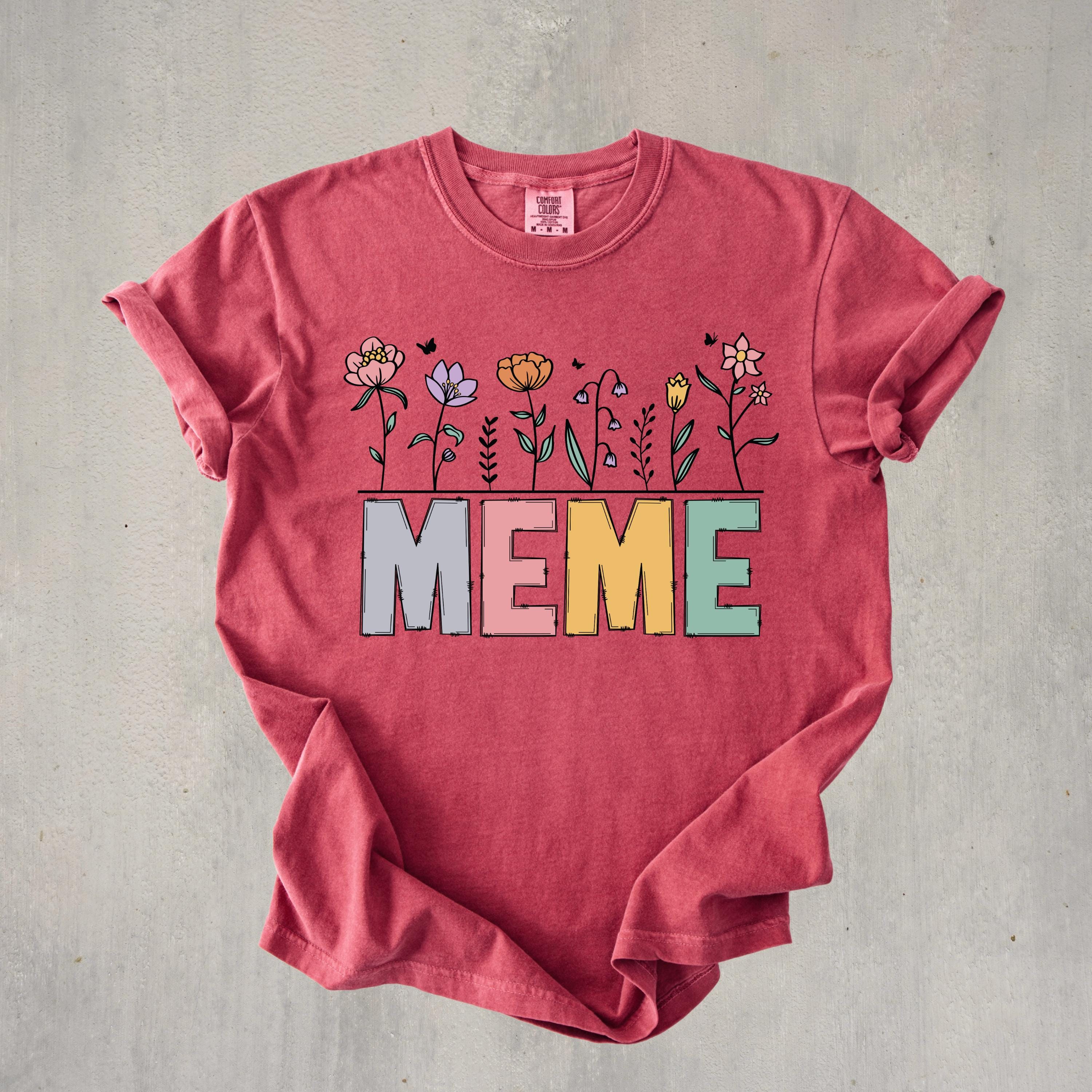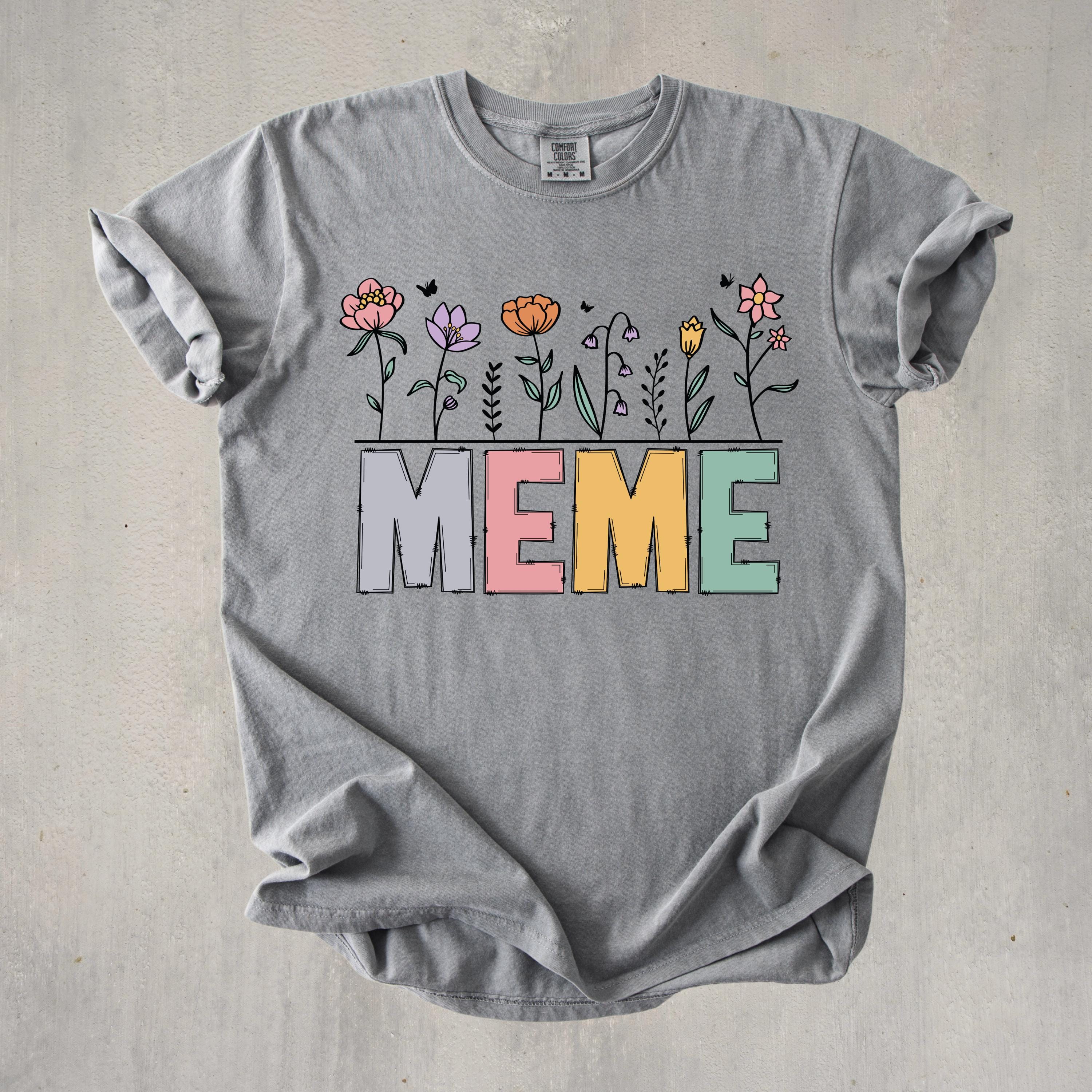 Celebrate motherhood and grandma love with this “Meme” floral t-shirt, featuring soft pastel letters and delicate flower details. Perfect for moms and grandmas, this cute and trendy tee makes a thoughtful Mother’s Day gift or everyday wear piece.