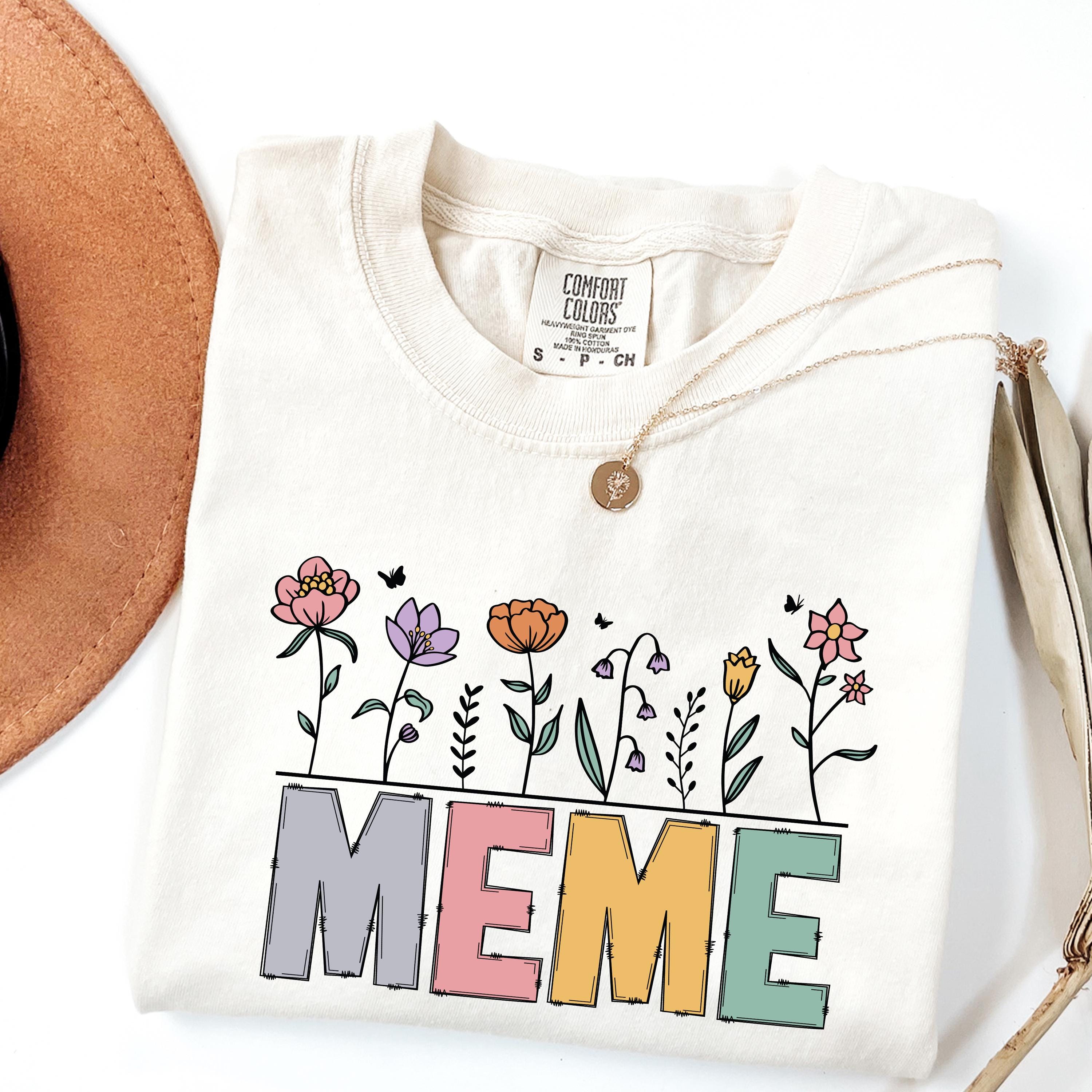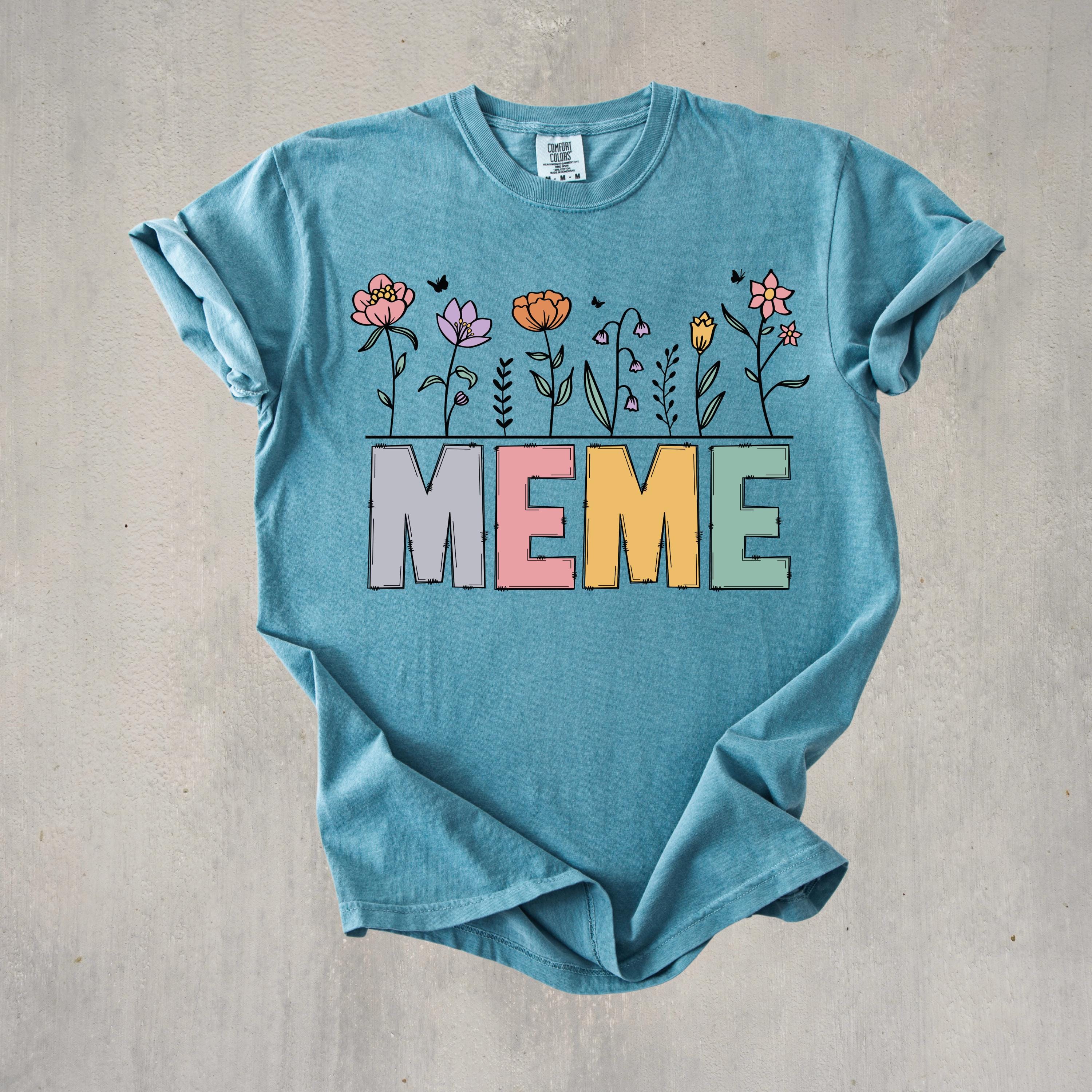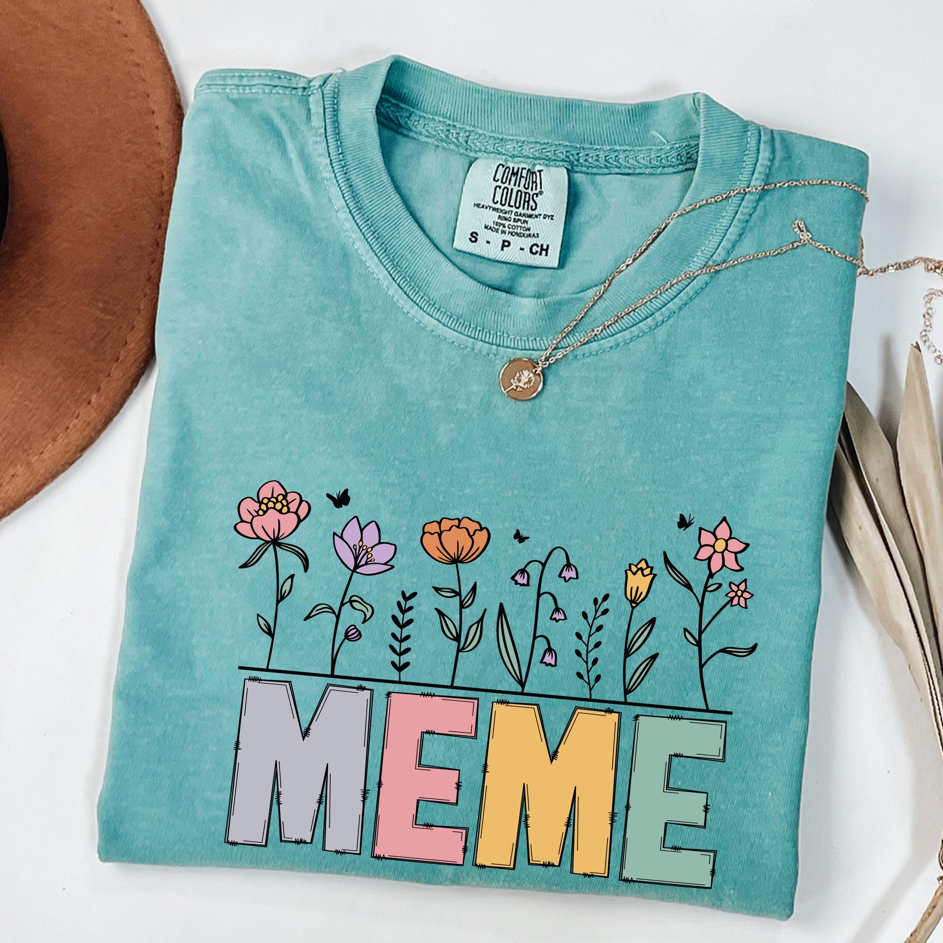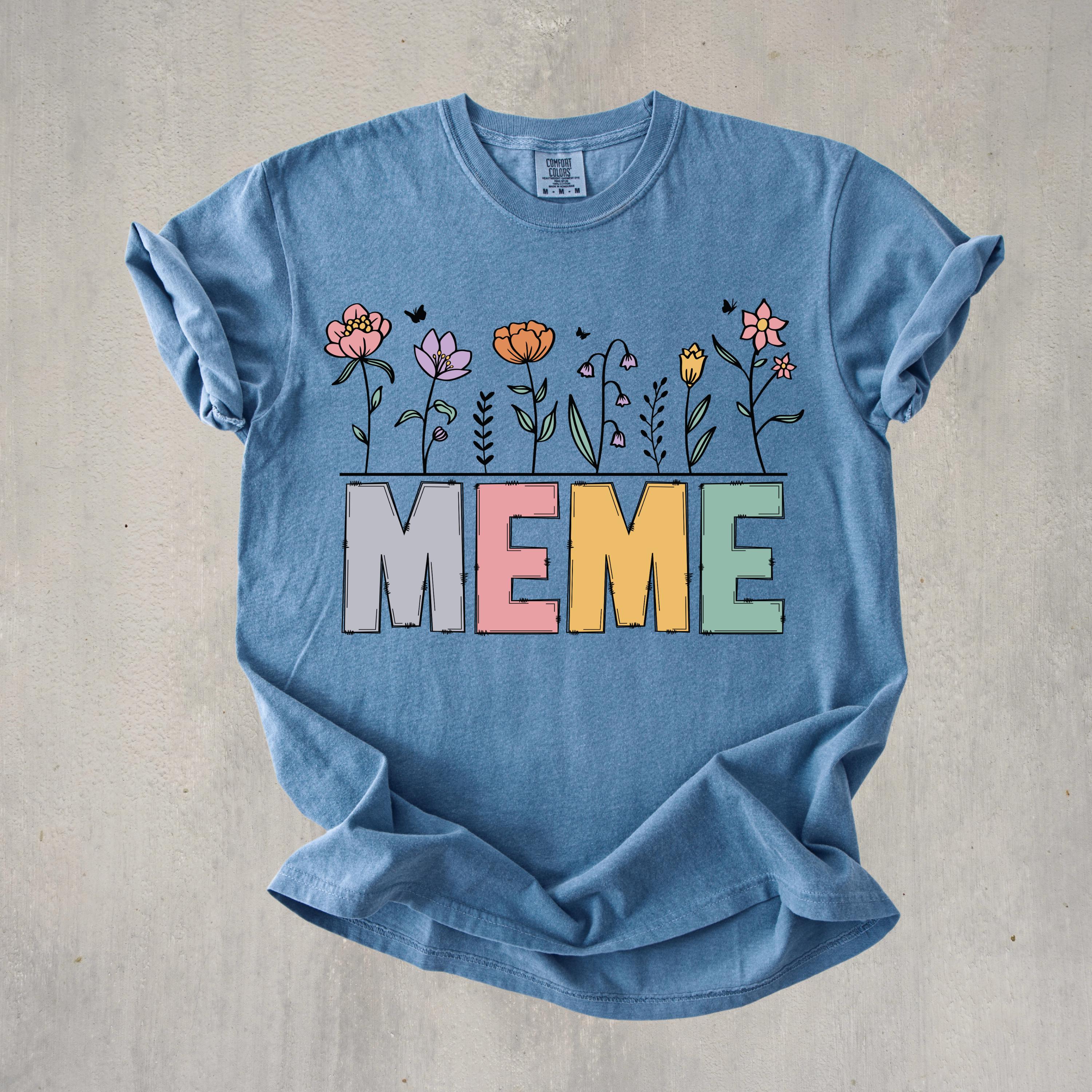Celebrate motherhood and grandma love with this “Meme” floral t-shirt, featuring soft pastel letters and delicate flower details. Perfect for moms and grandmas, this cute and trendy tee makes a thoughtful Mother’s Day gift or everyday wear piece.