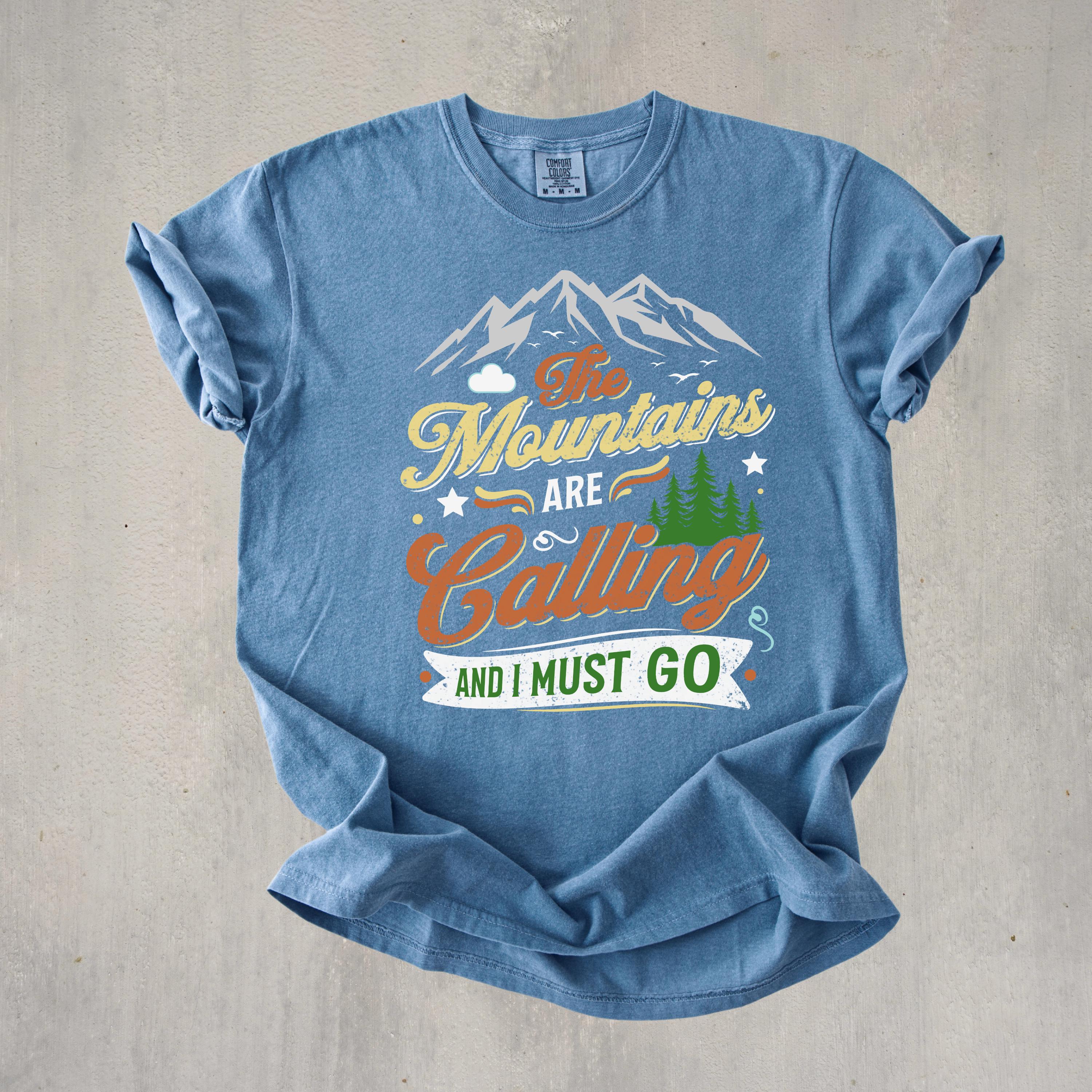 Embrace your love for the outdoors with this “The Mountains Are Calling and I Must Go” t-shirt, featuring a vintage-inspired mountain design with trees and nature elements. Perfect for hiking enthusiasts, campers, and anyone who feels at home in the mountains.