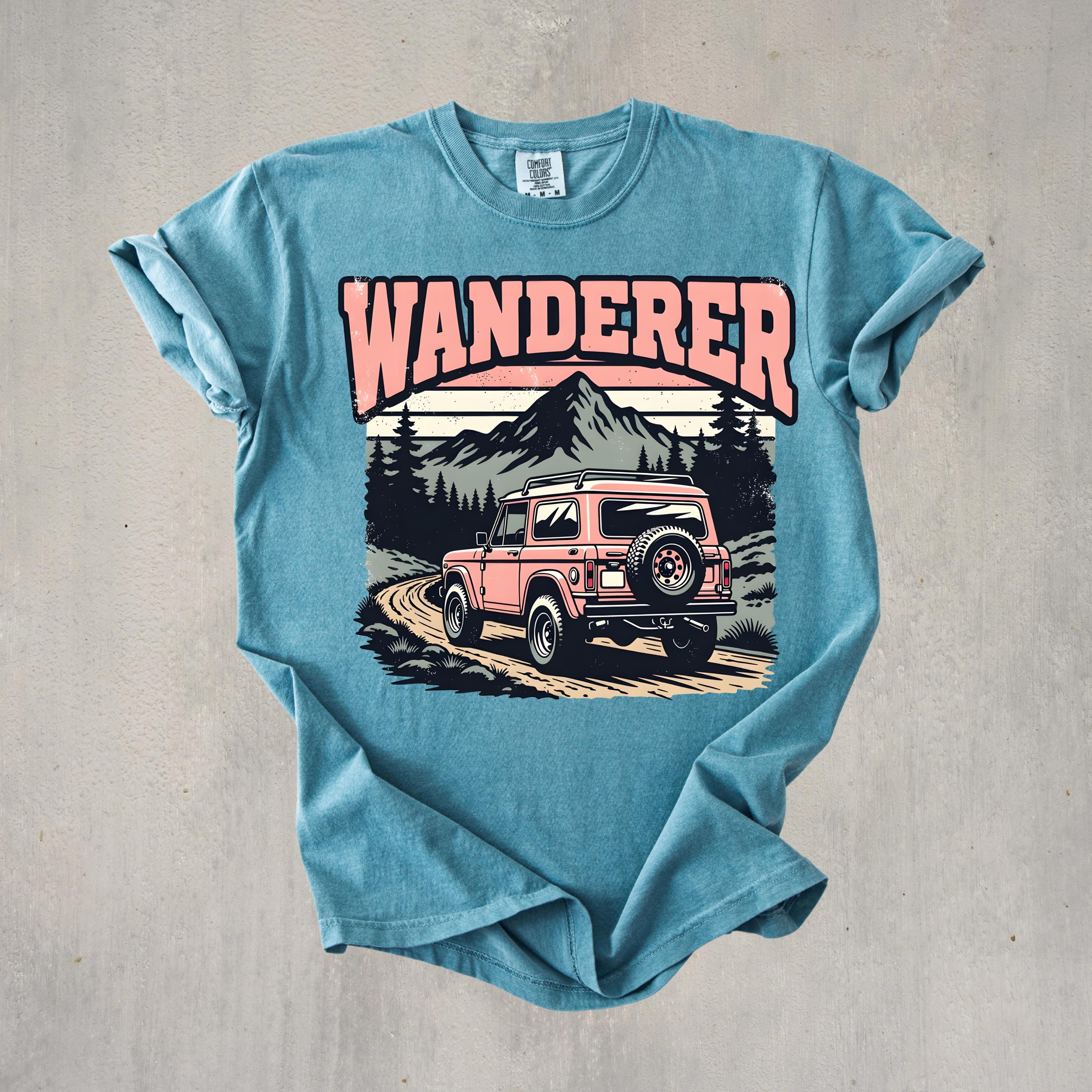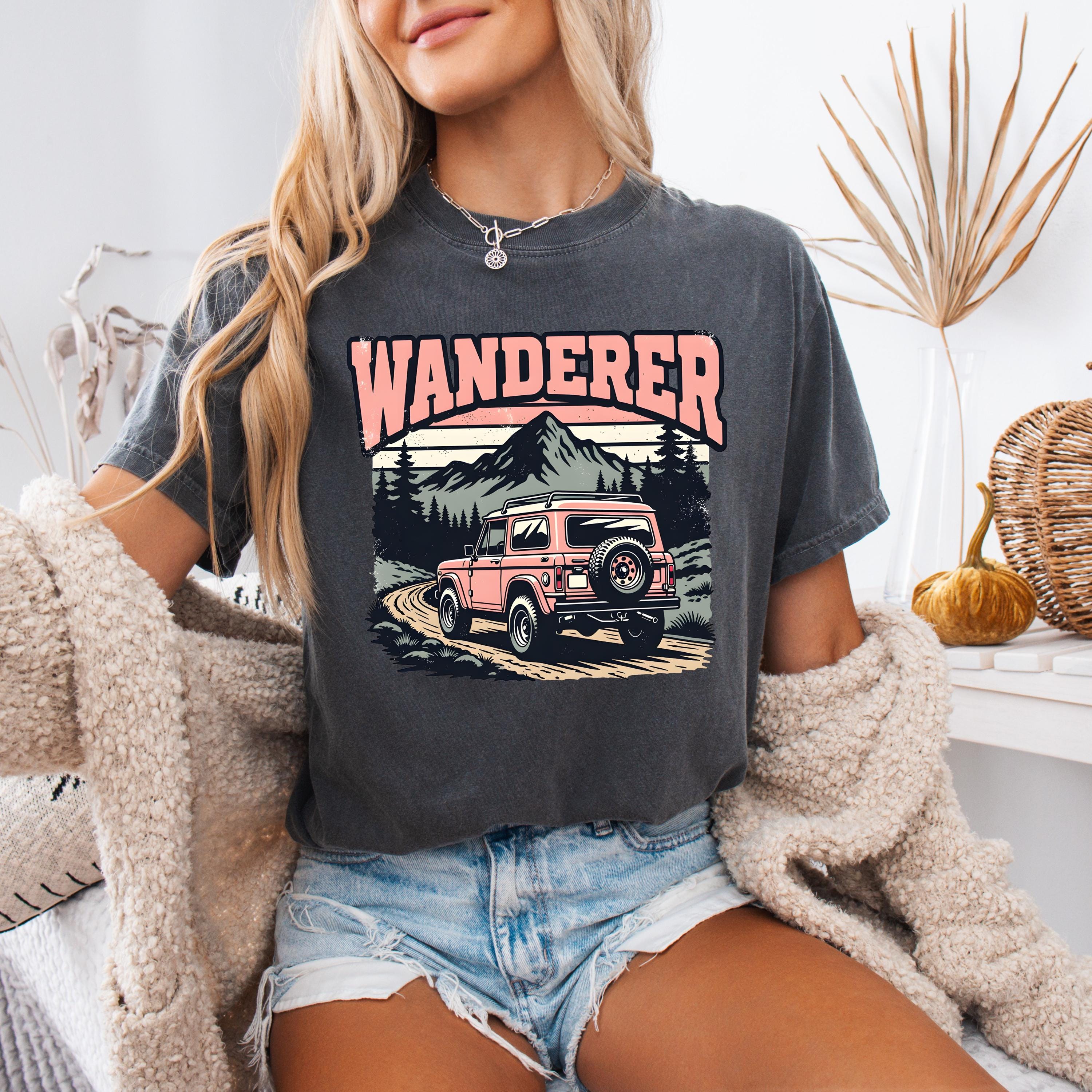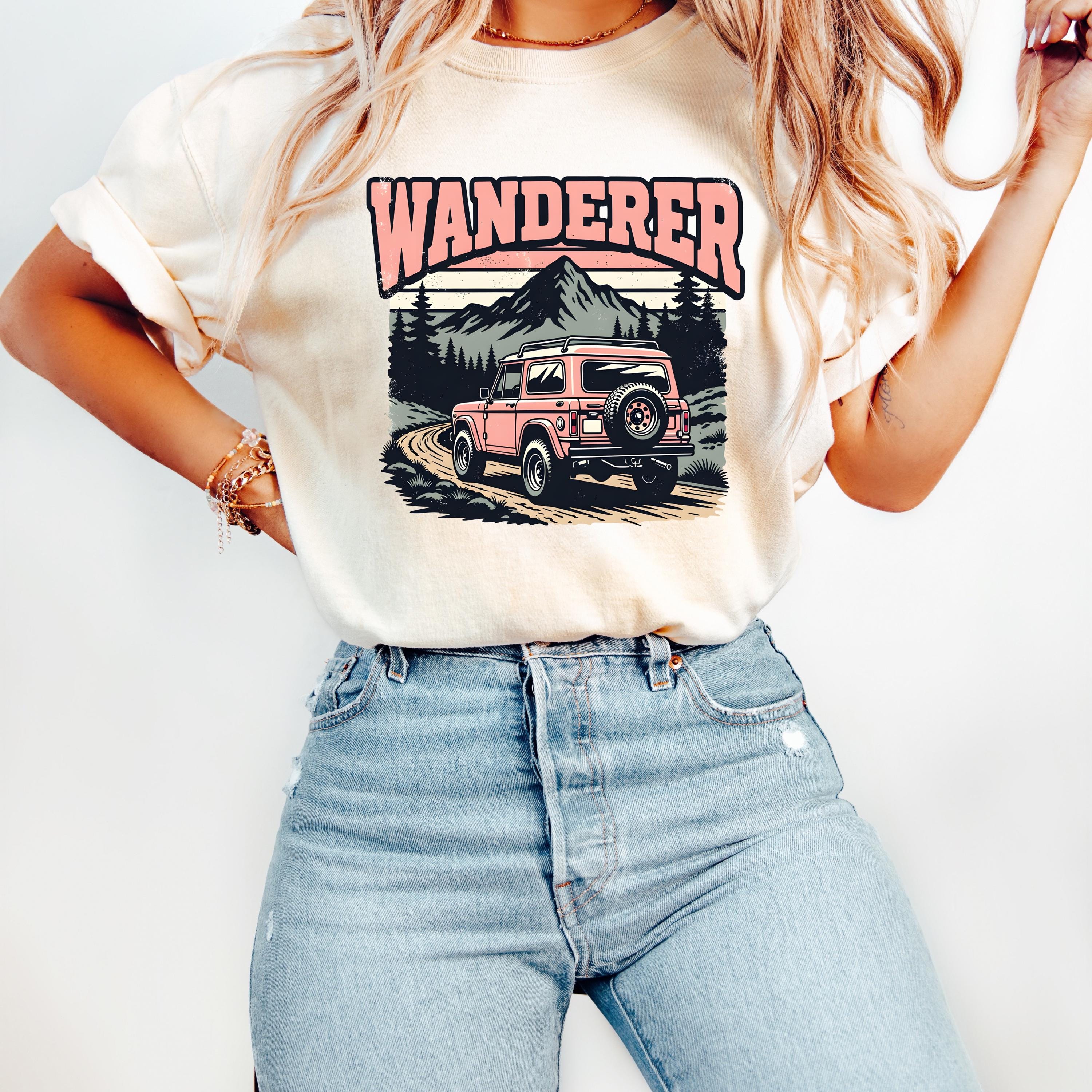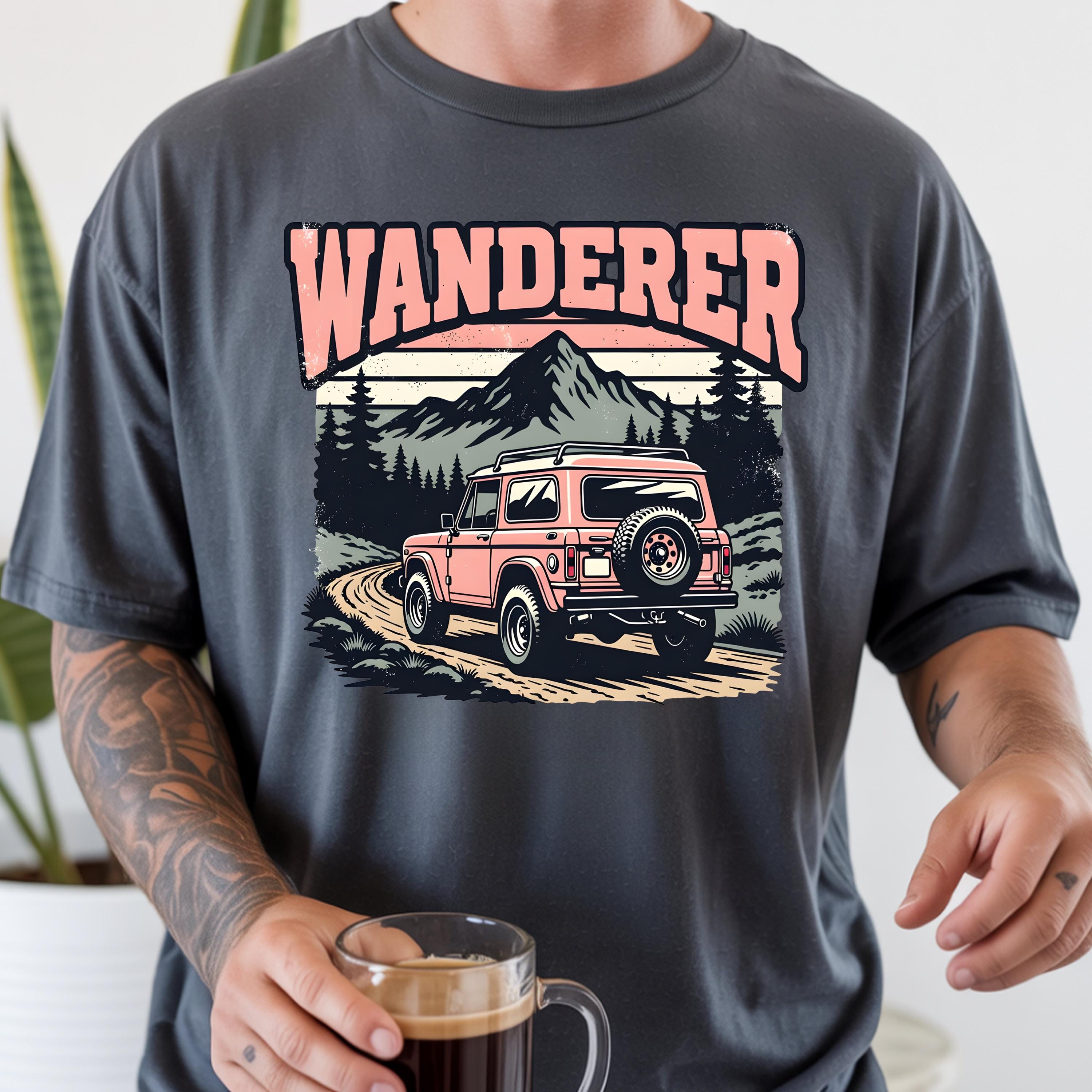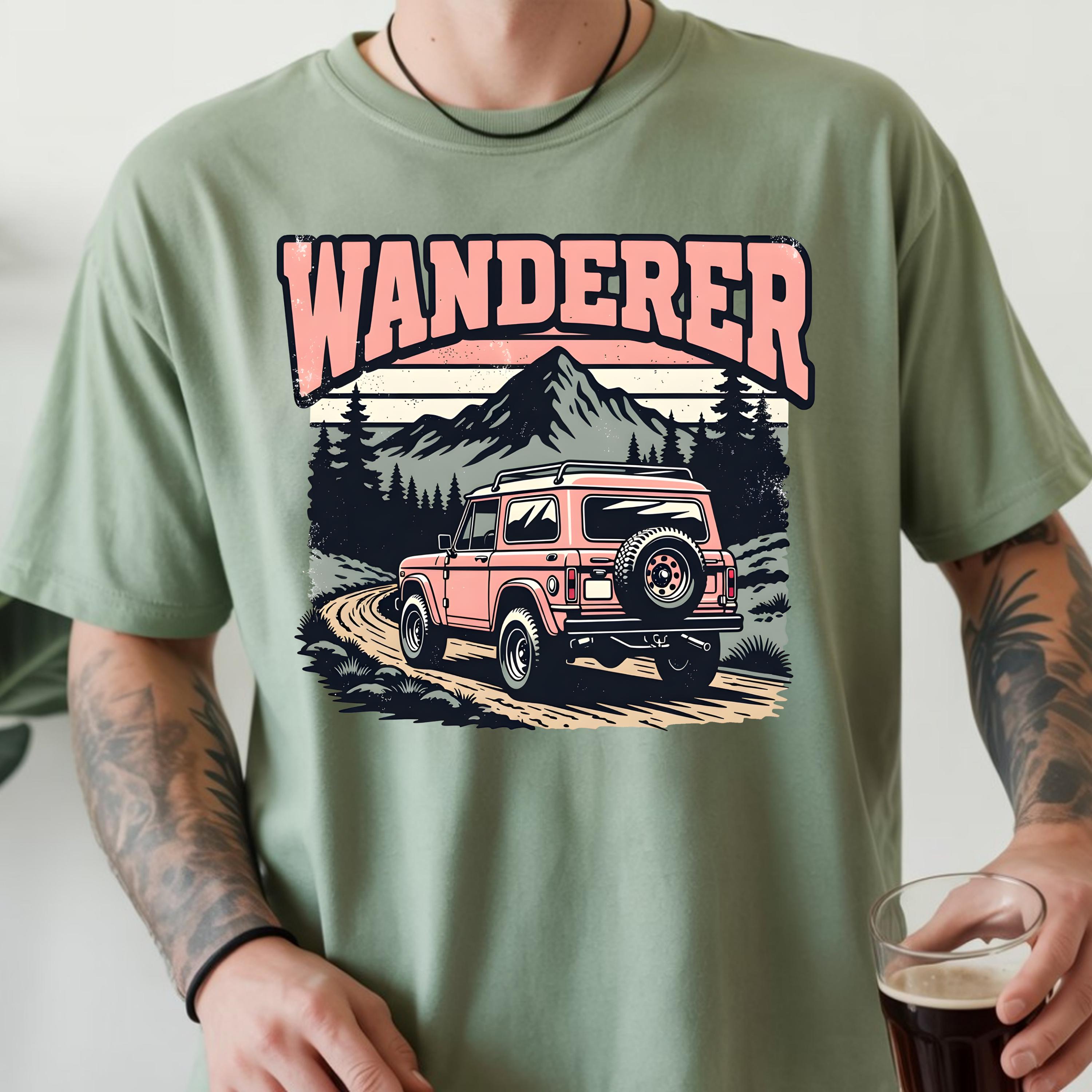 Embrace your adventurous spirit with this “Wanderer” graphic t-shirt featuring a vintage-style off-road vehicle driving through a scenic mountain landscape. Designed for travelers, hikers, and nature lovers, this tee captures the freedom of the open road and the beauty of the outdoors.