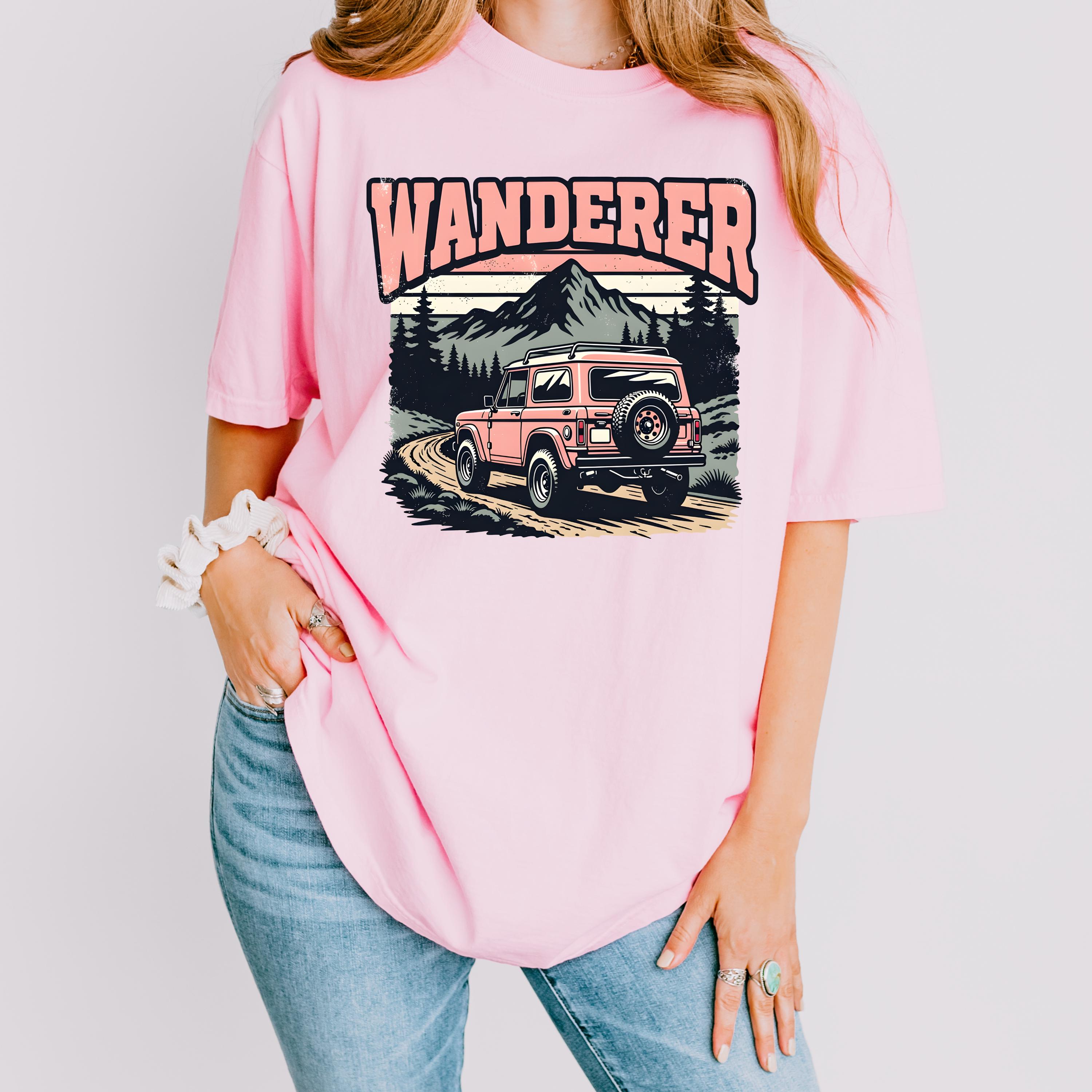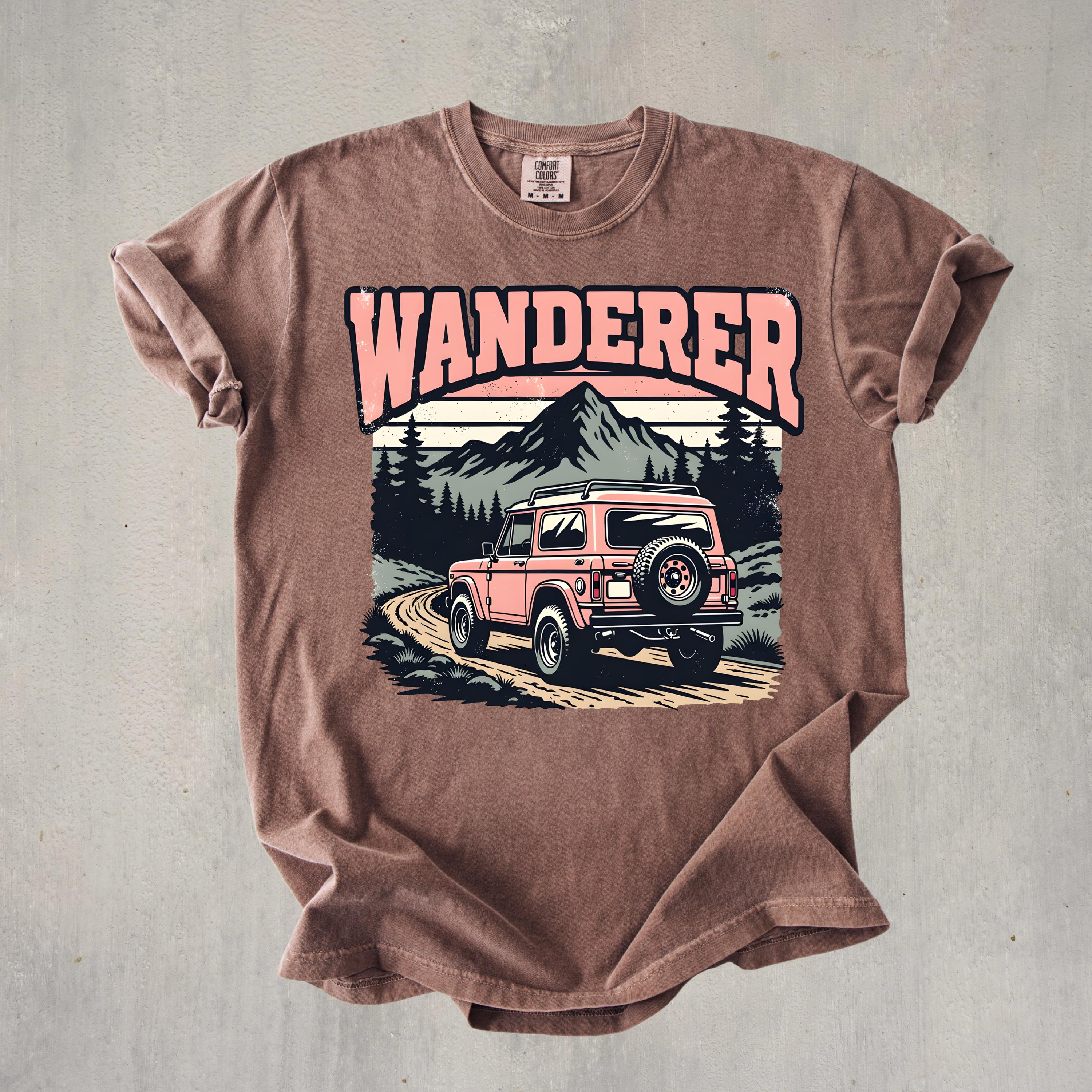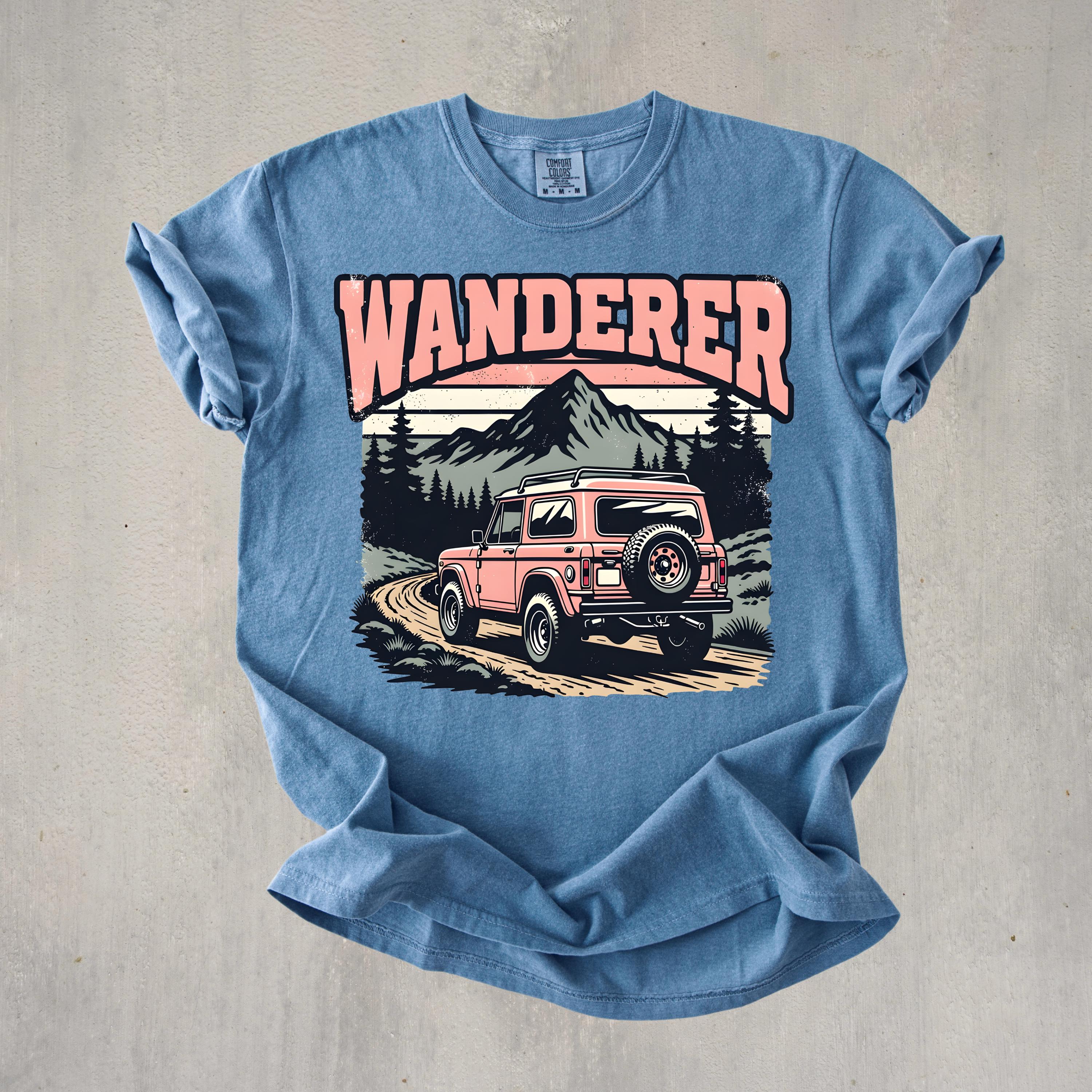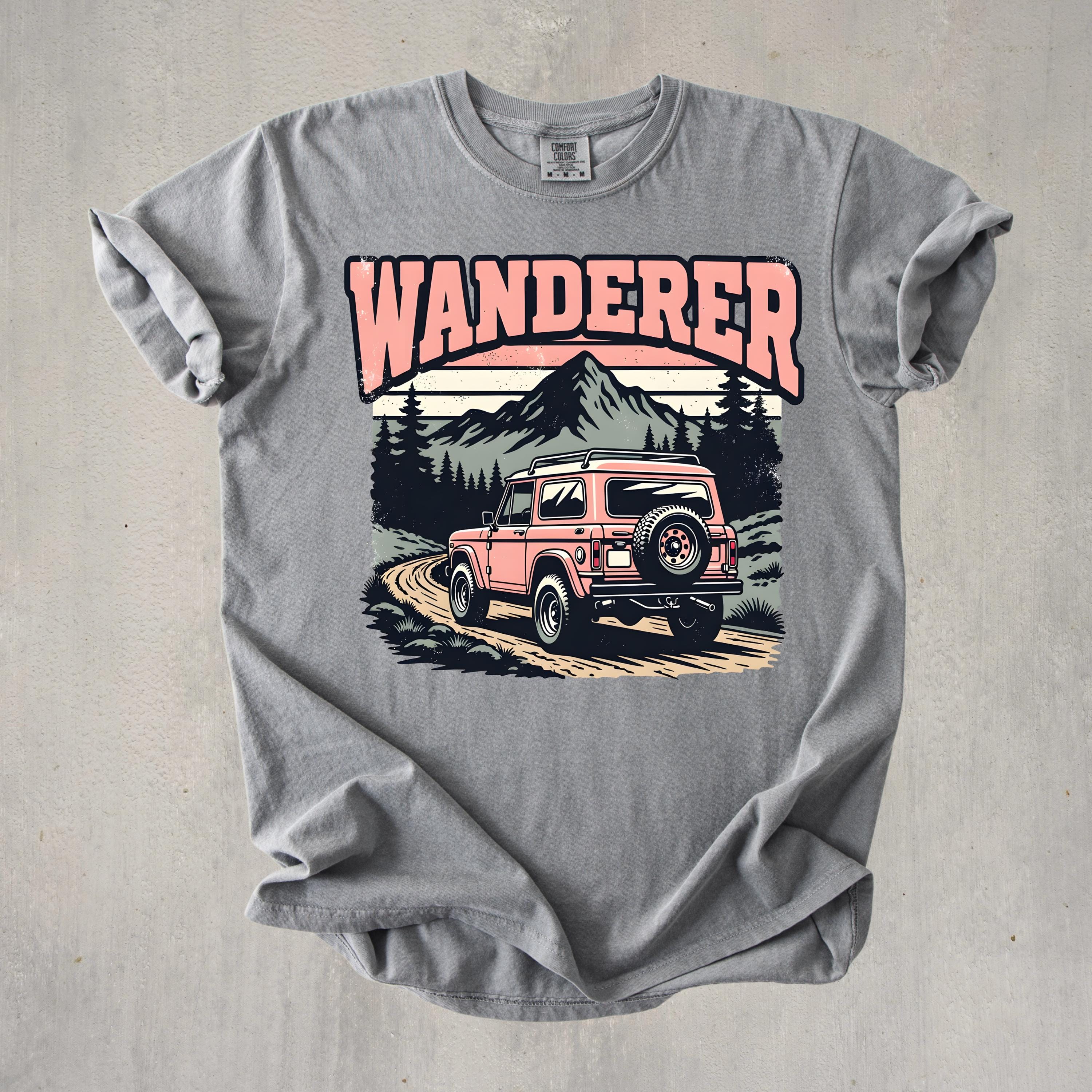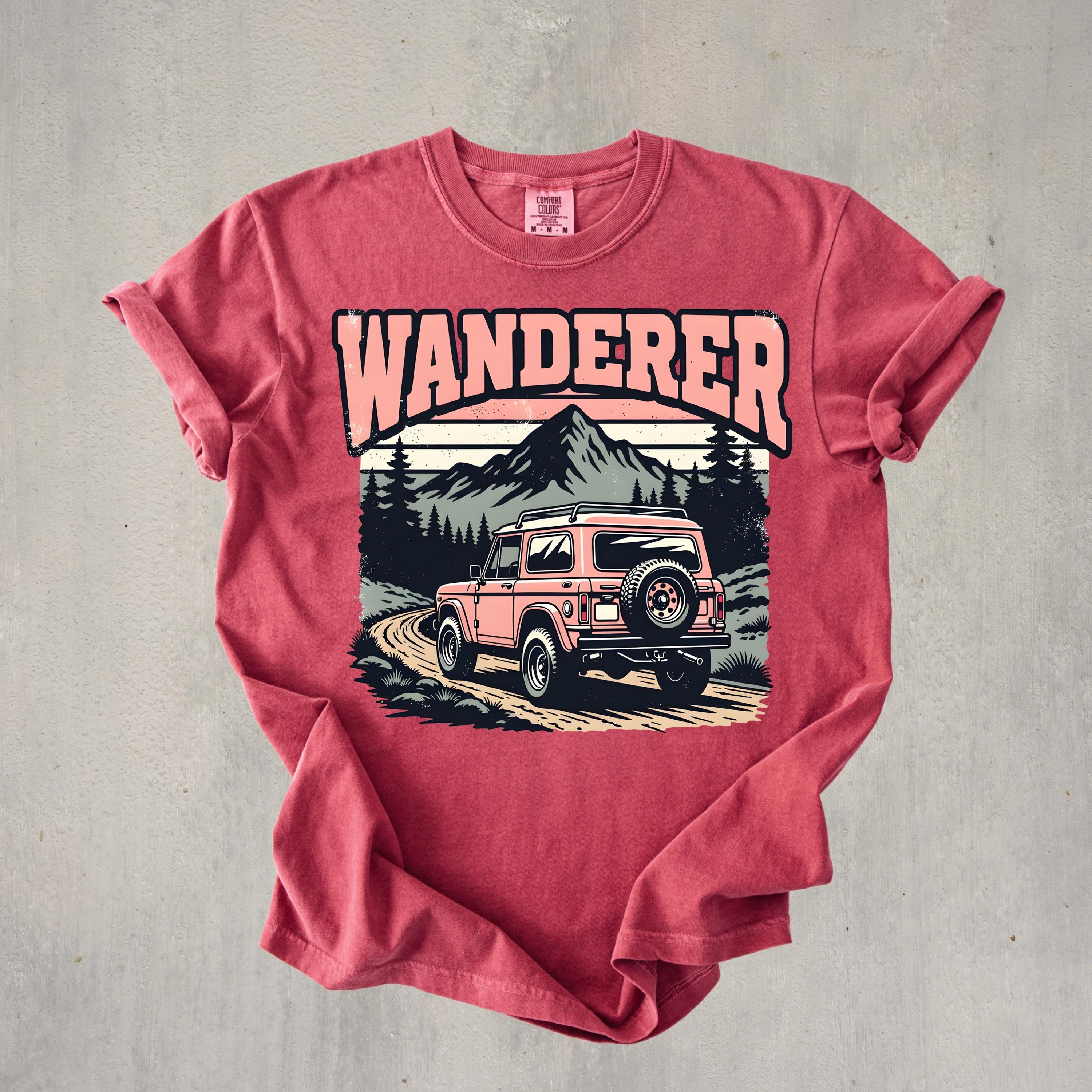 Embrace your adventurous spirit with this “Wanderer” graphic t-shirt featuring a vintage-style off-road vehicle driving through a scenic mountain landscape. Designed for travelers, hikers, and nature lovers, this tee captures the freedom of the open road and the beauty of the outdoors.