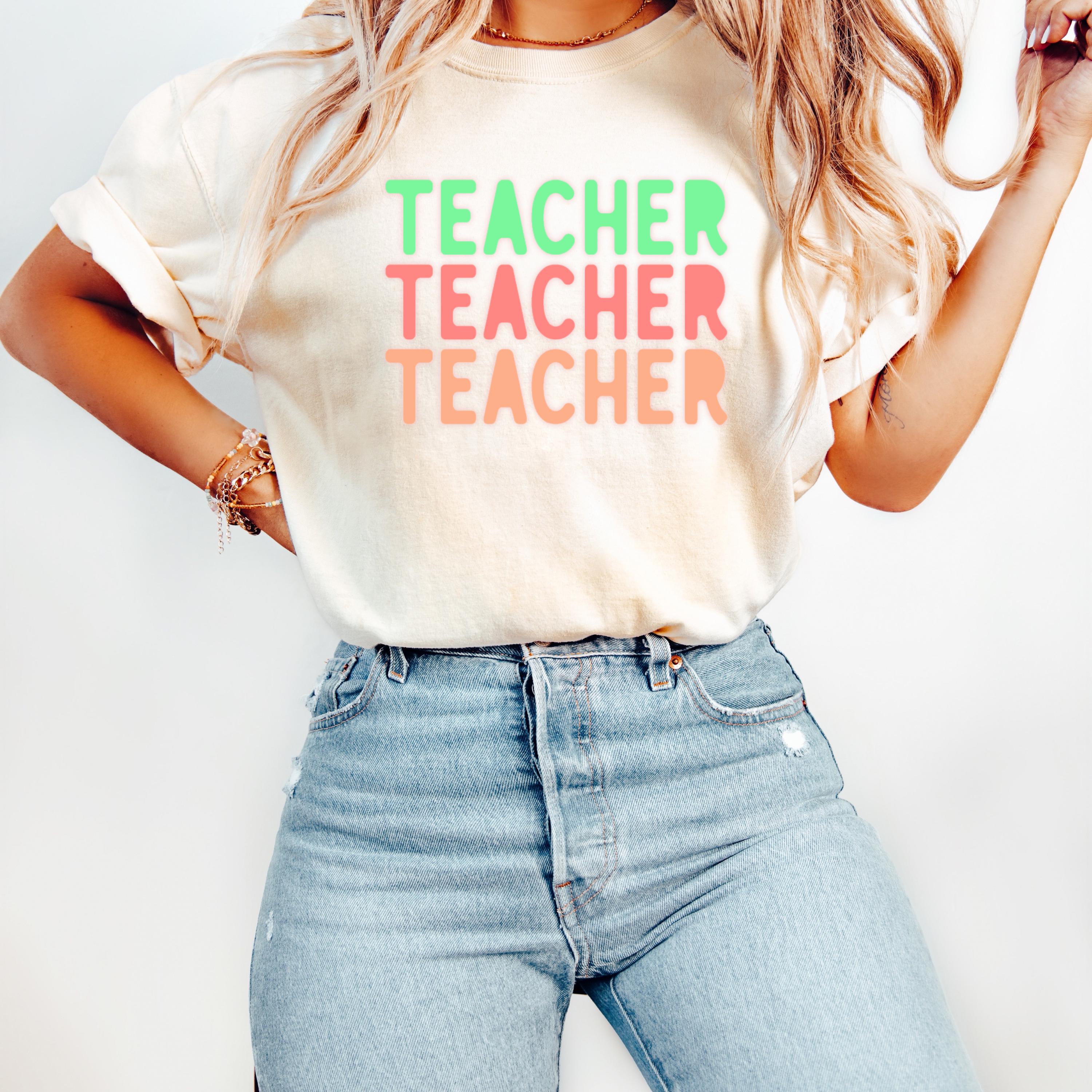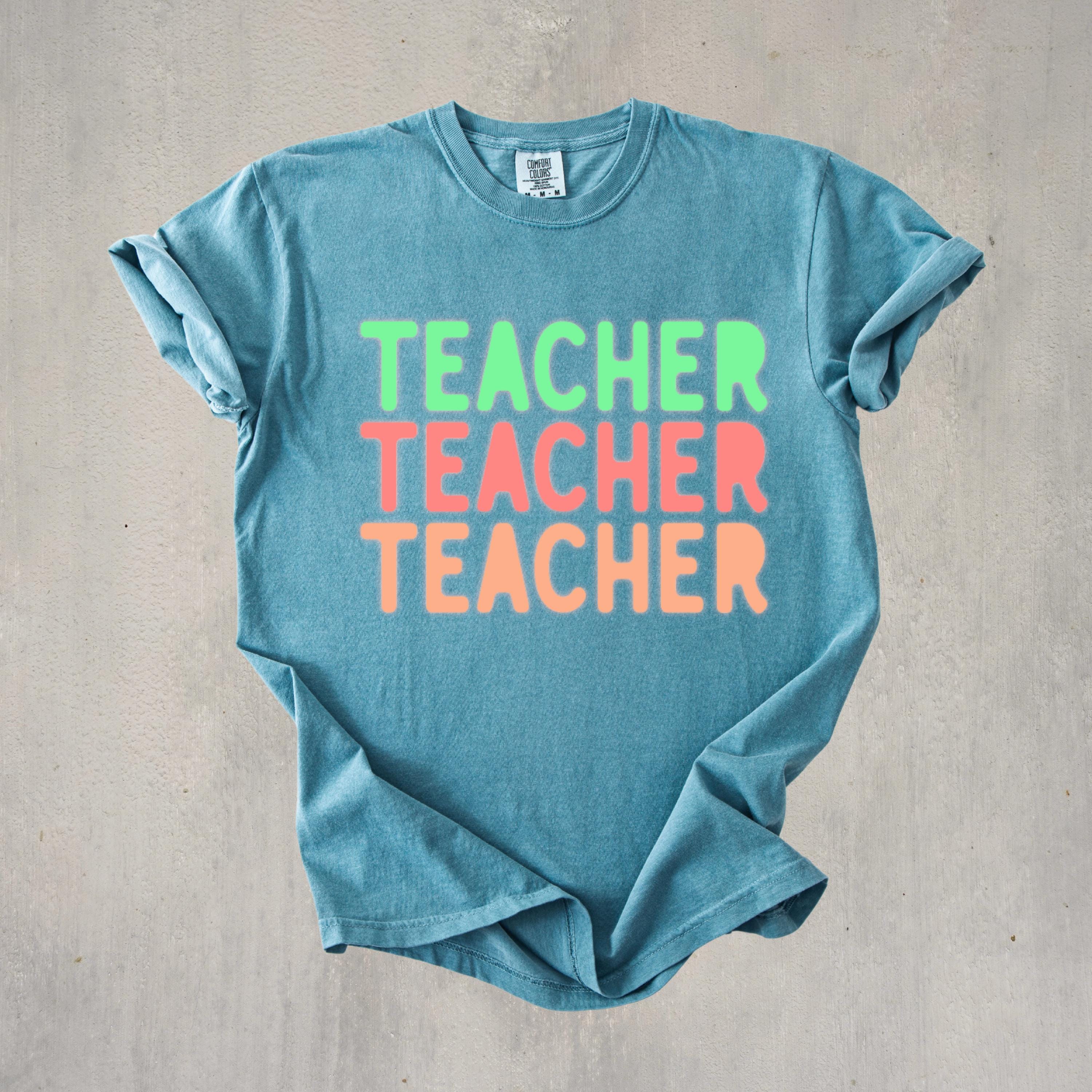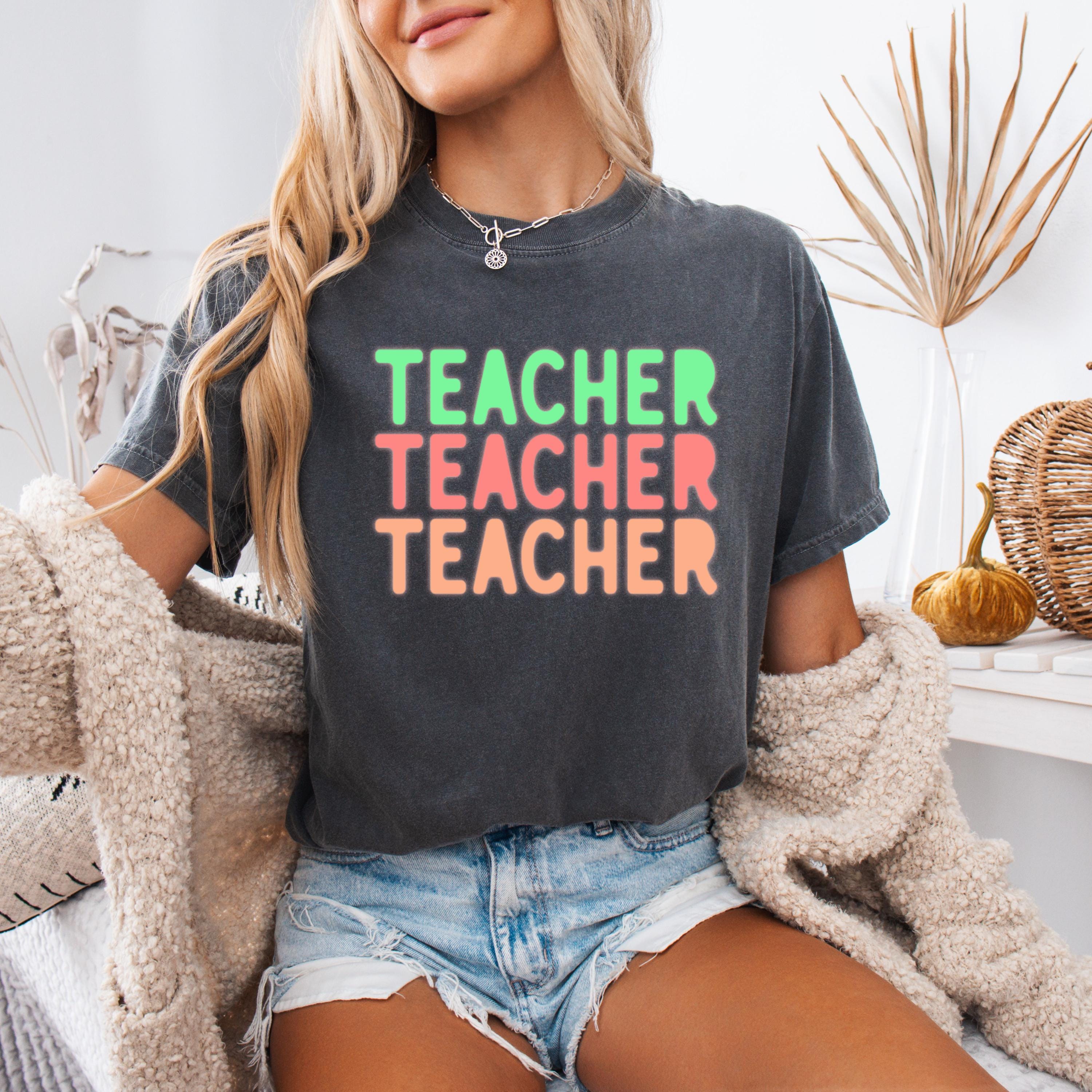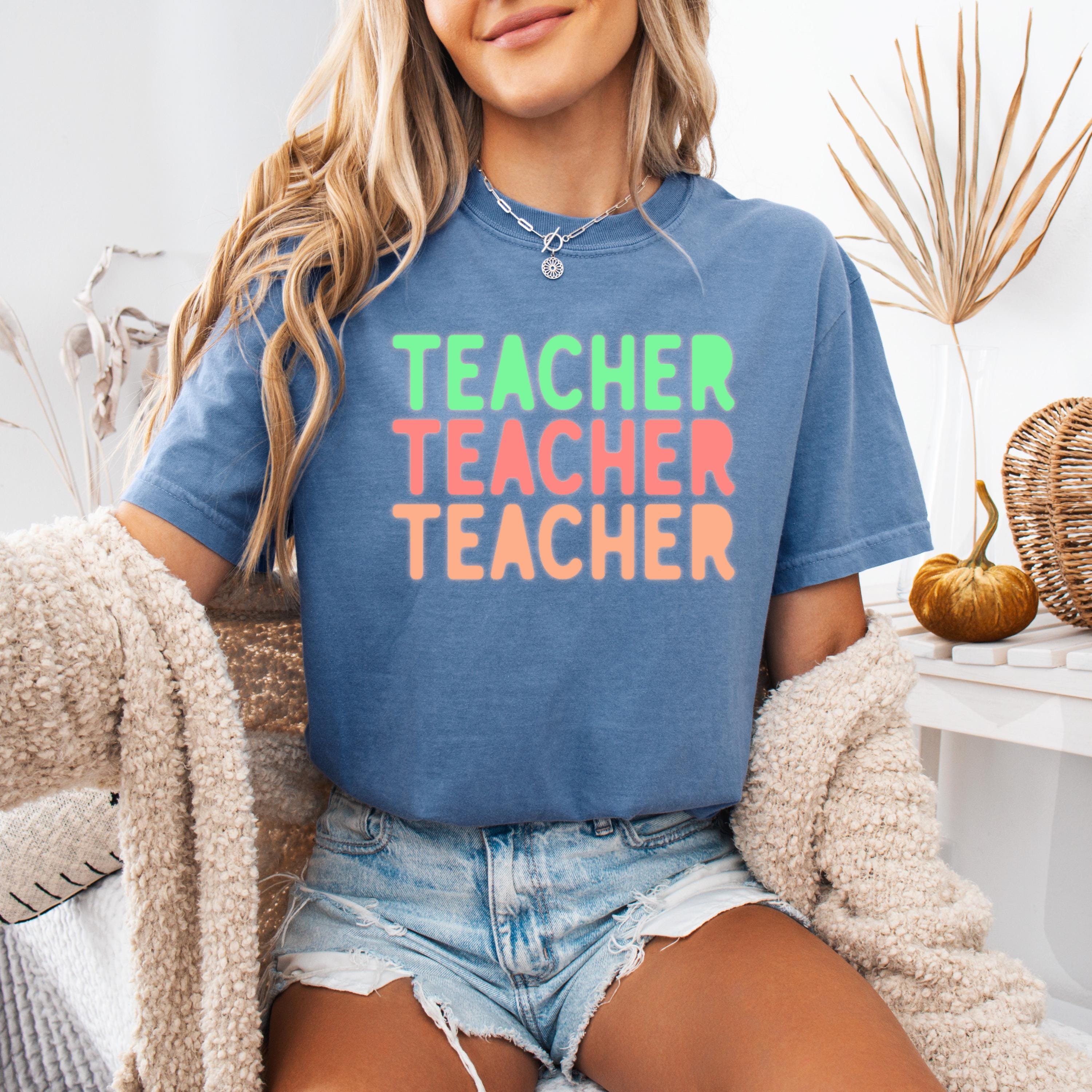 This stylish Comfort Colors “Teacher” shirt features a fun retro-inspired design with soft pastel tones, perfect for educators who love a trendy and relaxed look. Ideal for back-to-school season, classroom days, or casual wear, this tee offers both comfort and personality. A great gift for teachers, educators, and mentors who want to express their passion with effortless style.