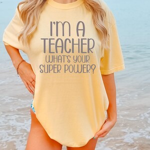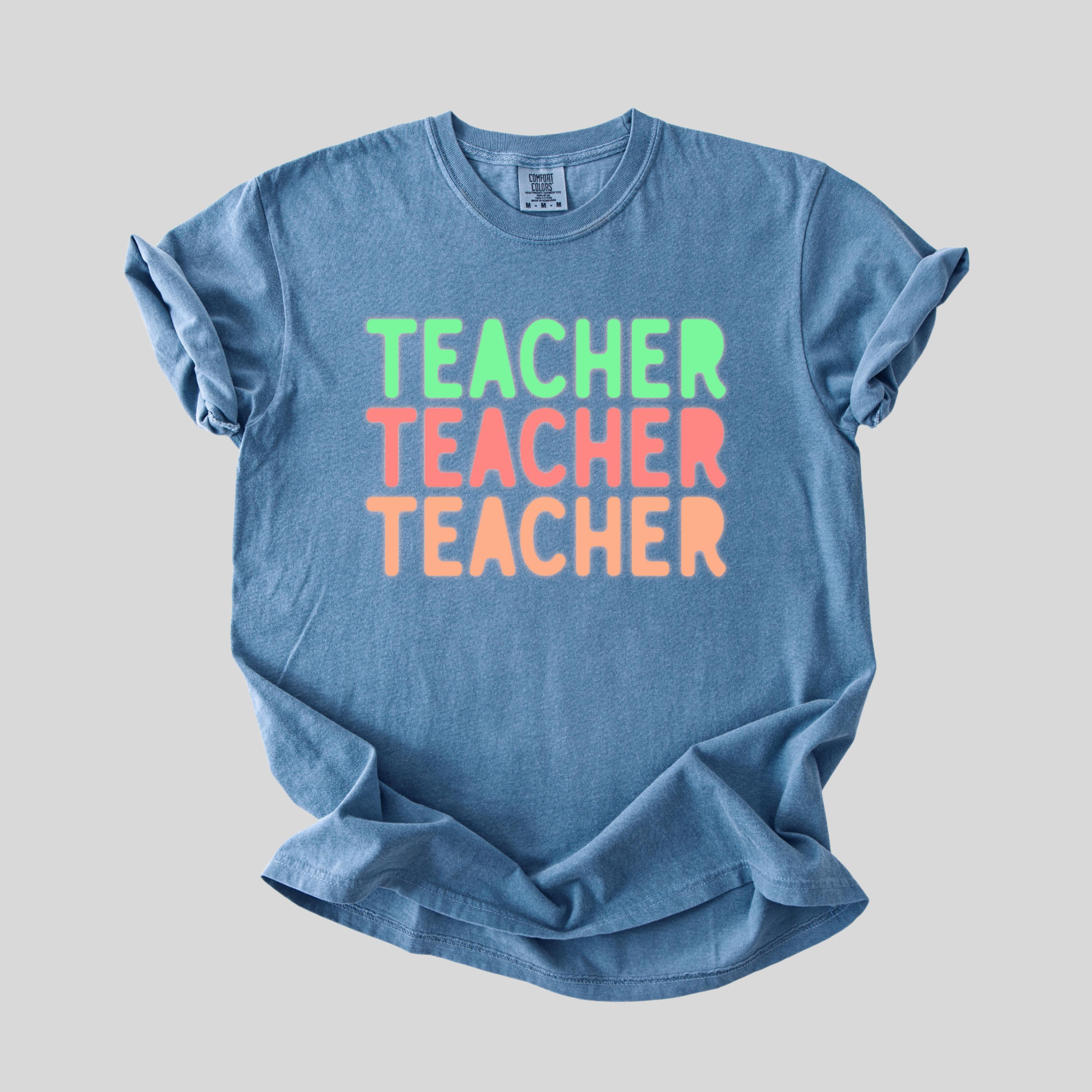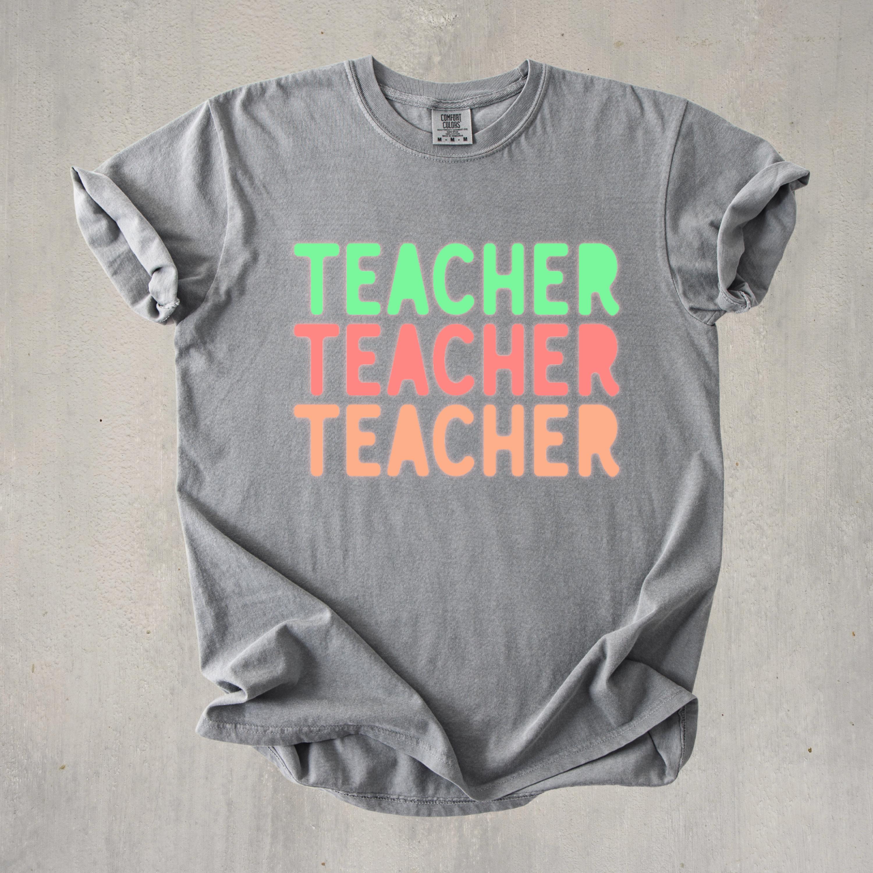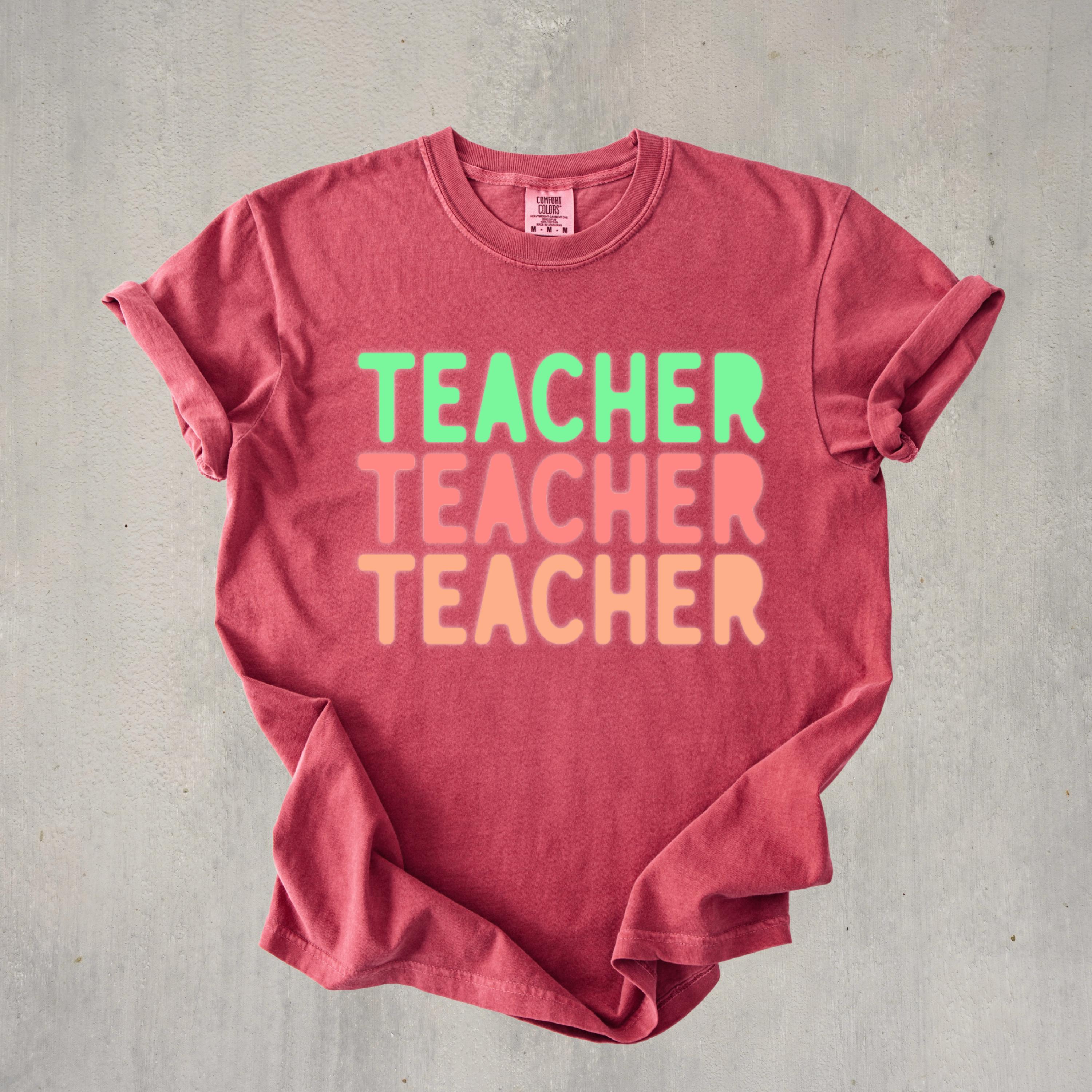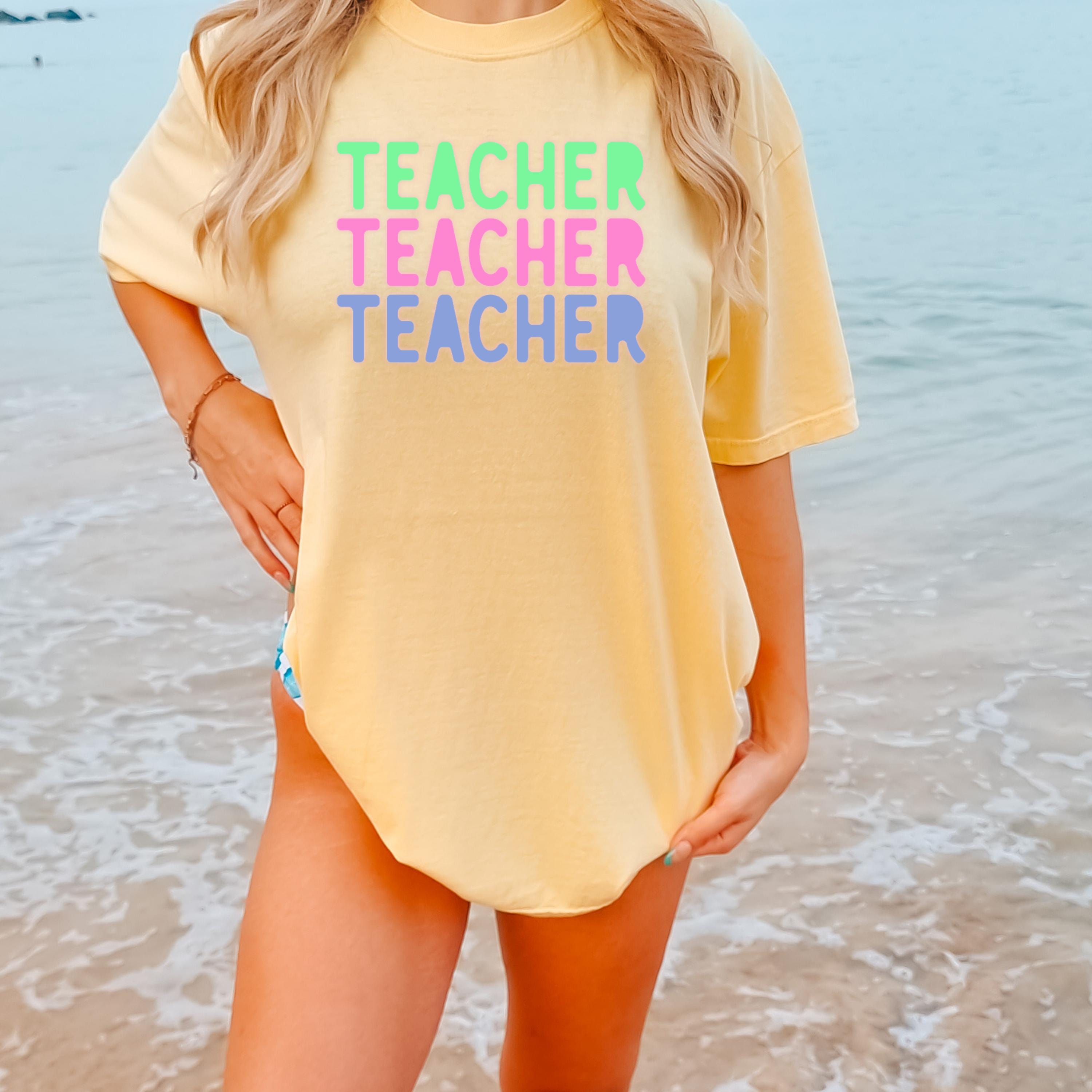 This stylish Comfort Colors “Teacher” shirt features a fun retro-inspired design with soft pastel tones, perfect for educators who love a trendy and relaxed look. Ideal for back-to-school season, classroom days, or casual wear, this tee offers both comfort and personality. A great gift for teachers, educators, and mentors who want to express their passion with effortless style.