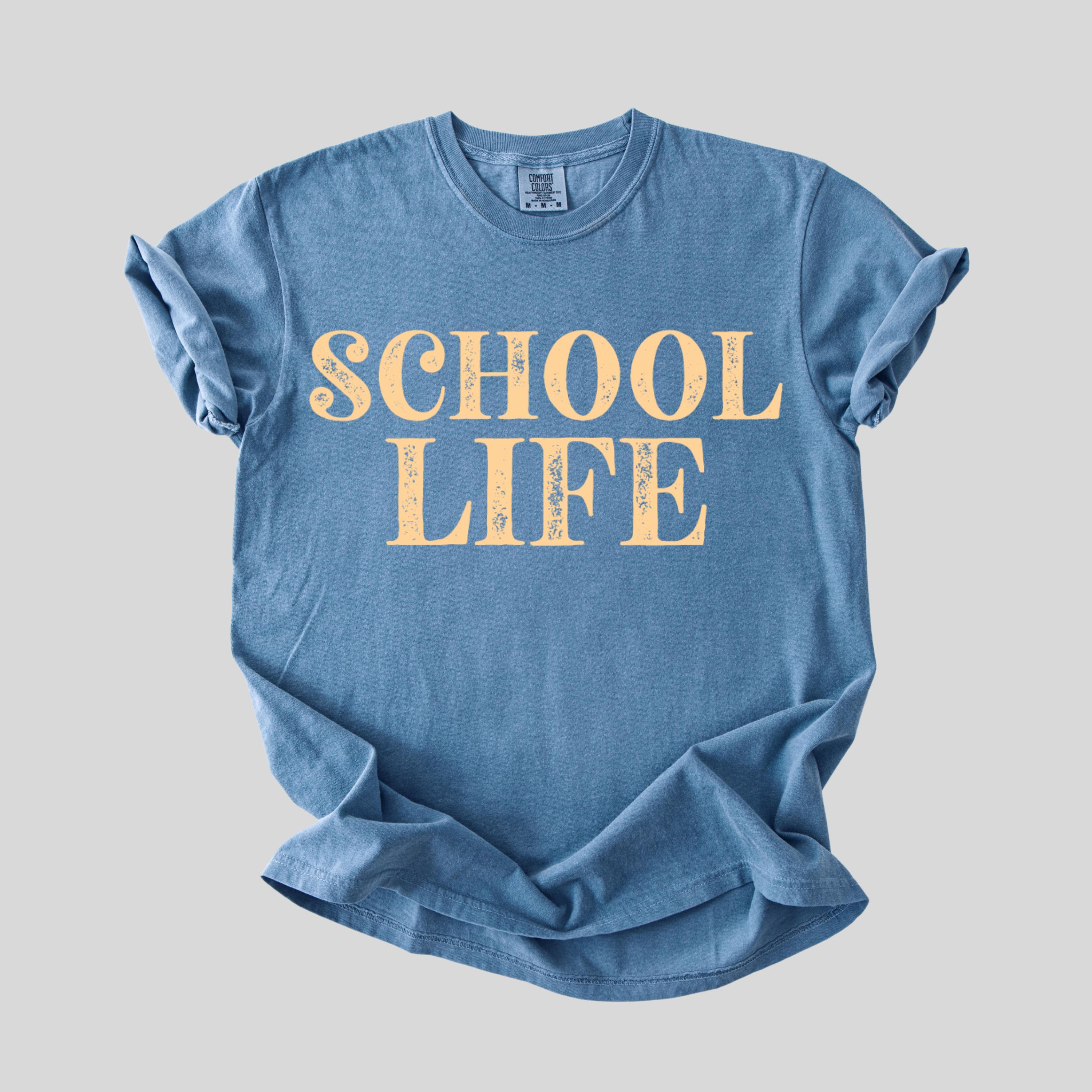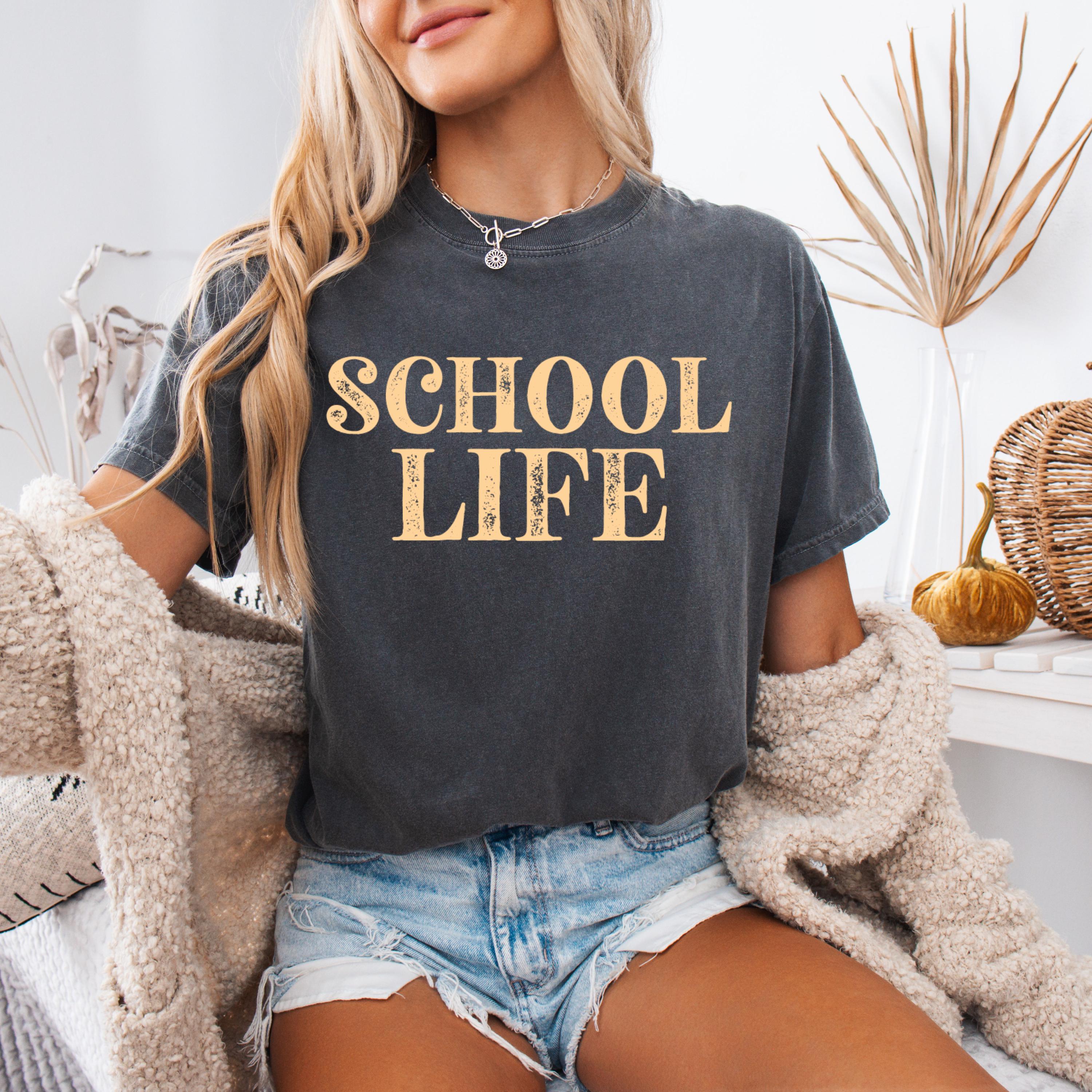 This Comfort Colors “School Life” shirt is a simple and stylish everyday tee made for teachers, school staff, and educators who live the school life with pride. Featuring a clean vintage-inspired text design, this shirt is perfect for classroom days, back-to-school season, casual Fridays, or everyday wear.