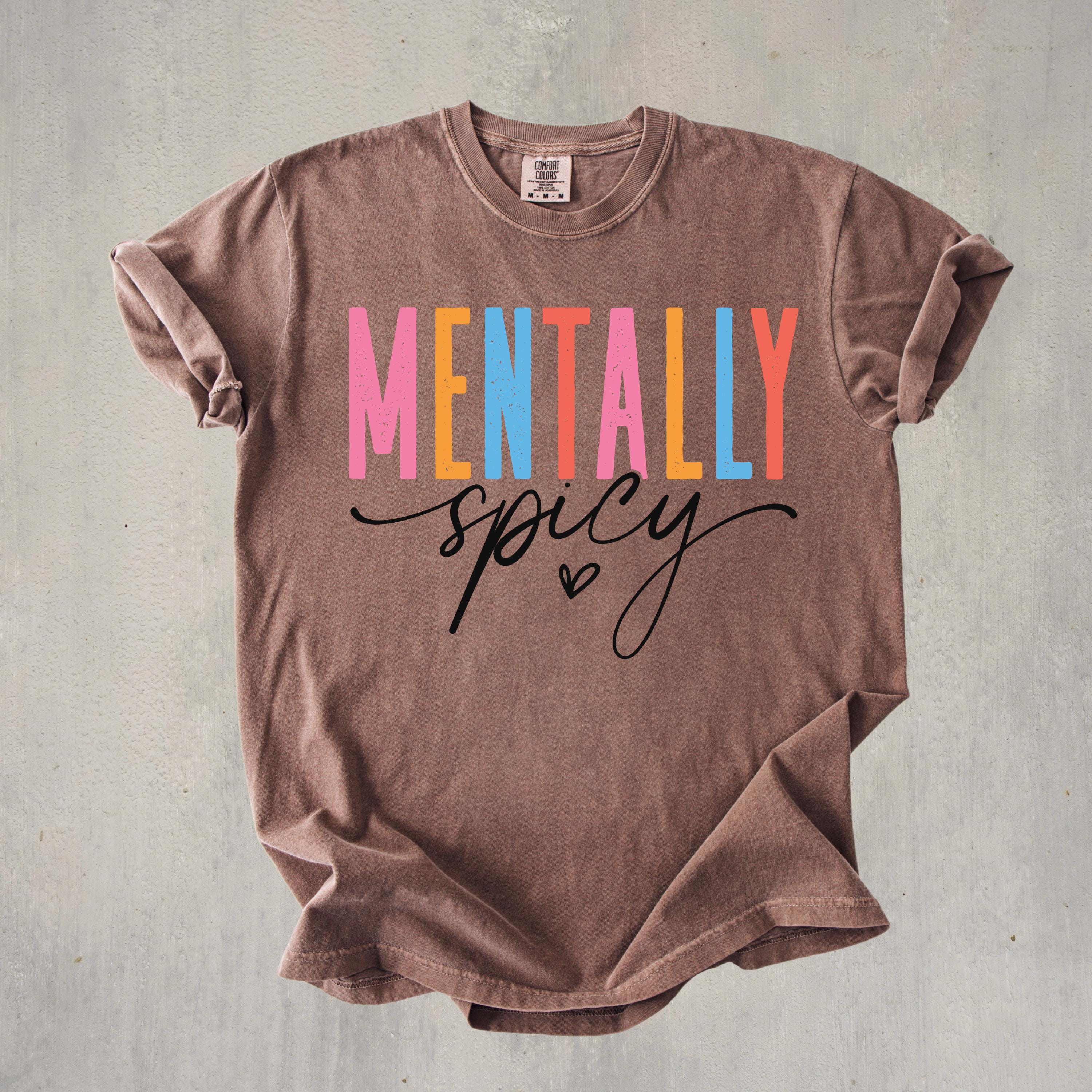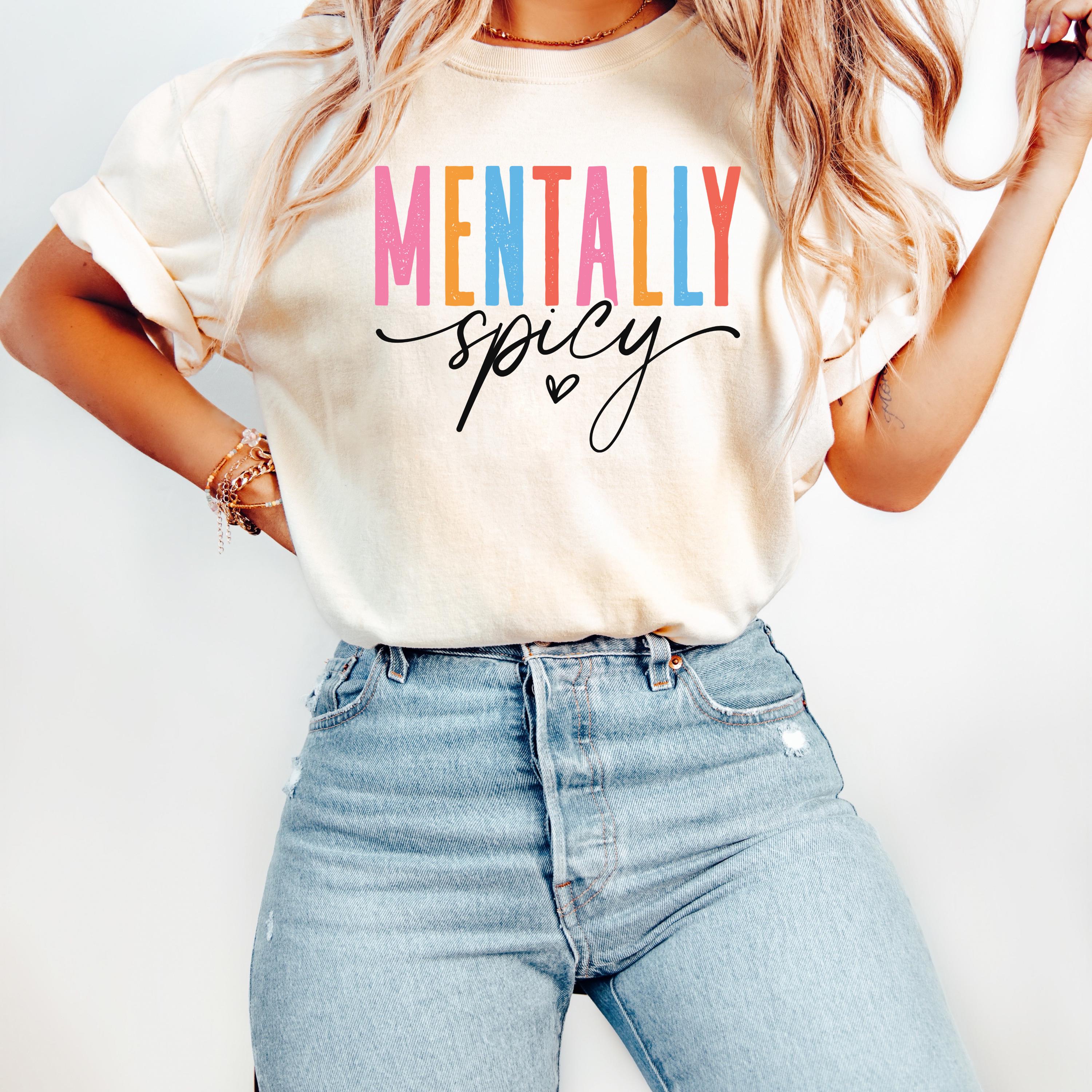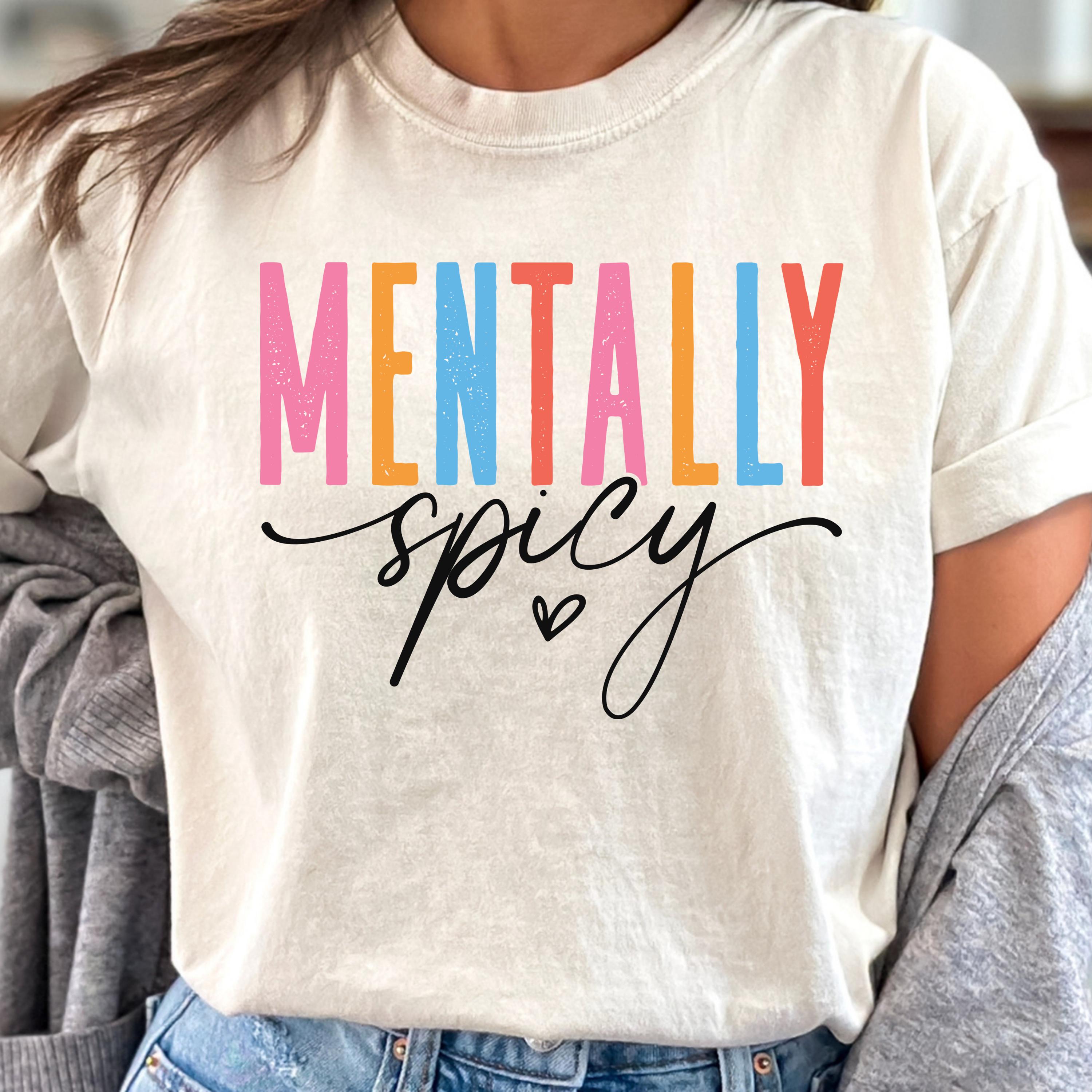 This Comfort Colors “Mentally Spicy” shirt is a bold and playful way to express your personality with humor and style. Featuring colorful retro-style lettering paired with a fun handwritten script, this design is perfect for anyone who loves sarcastic, relatable humor and isn’t afraid to show it.