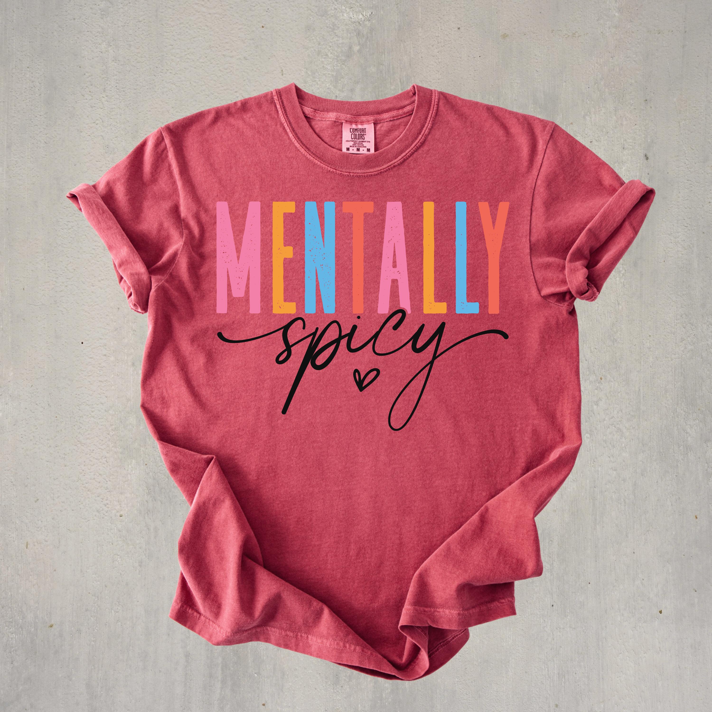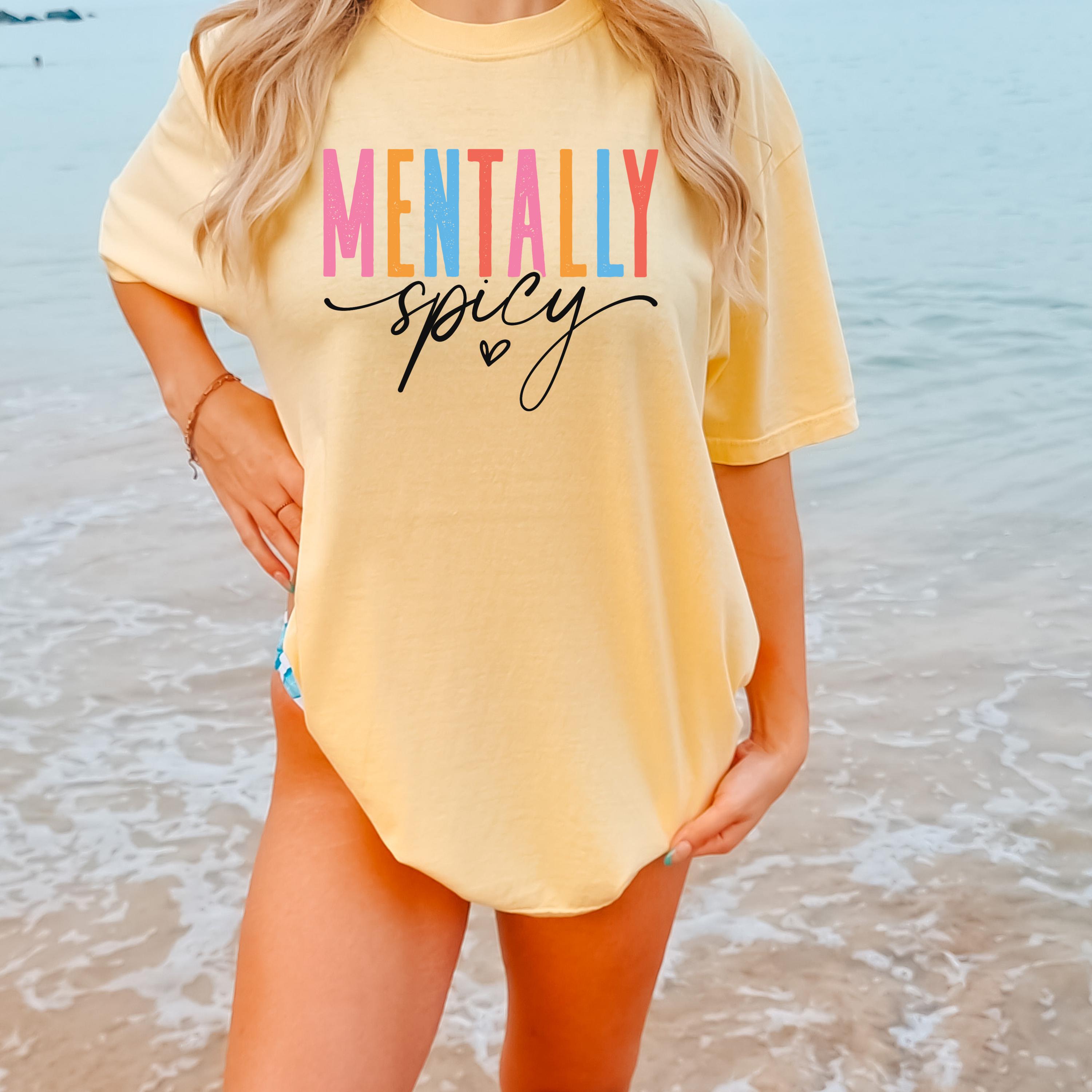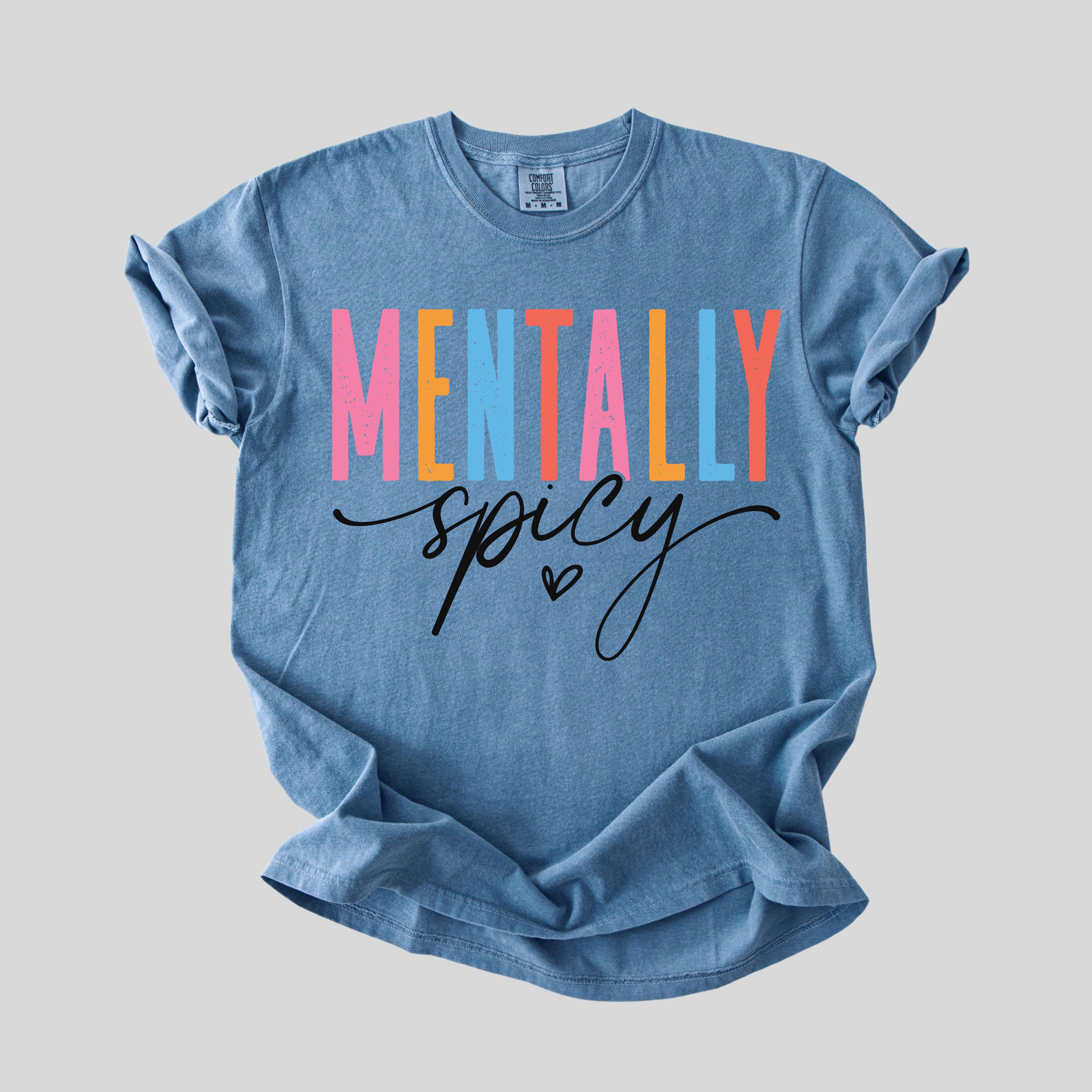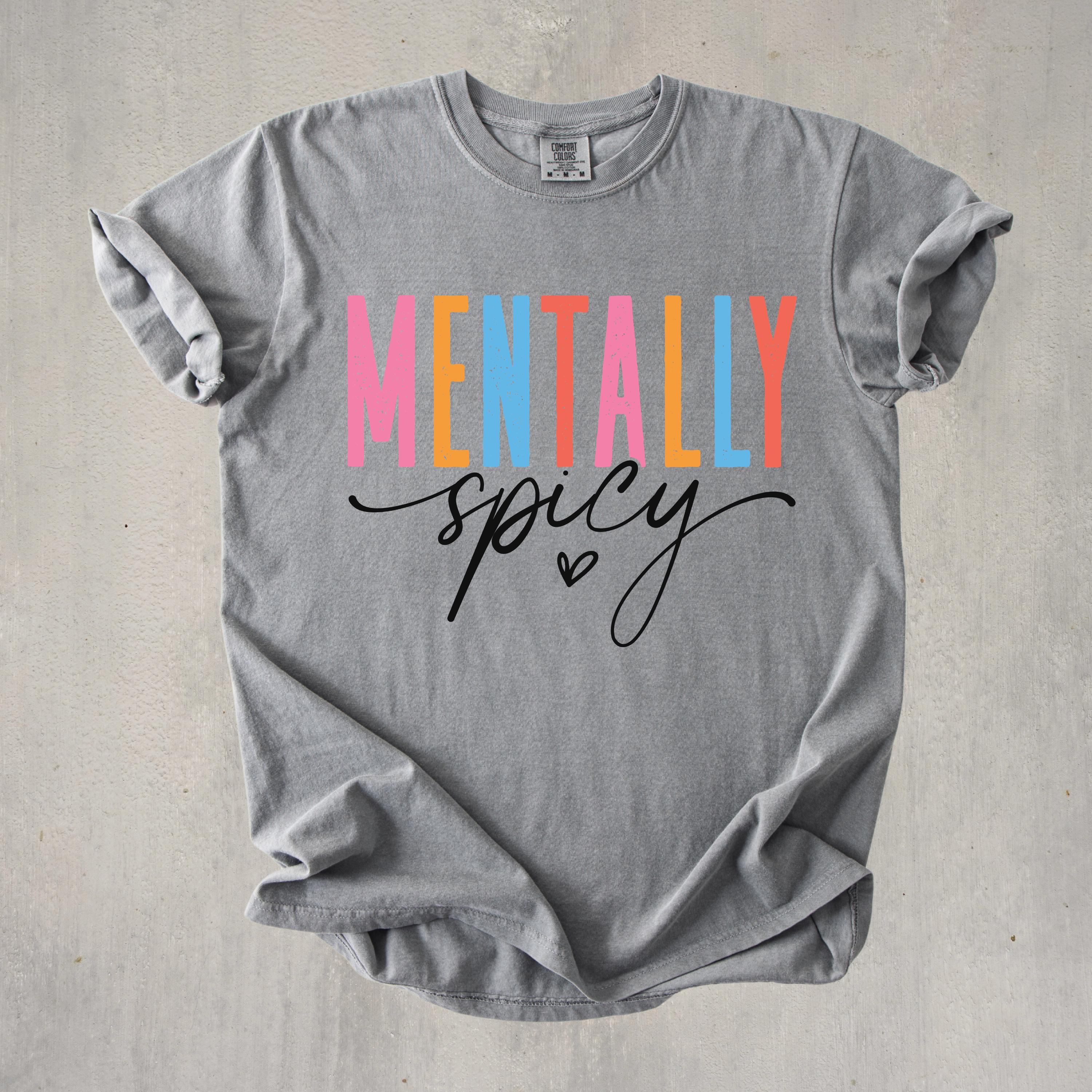 This Comfort Colors “Mentally Spicy” shirt is a bold and playful way to express your personality with humor and style. Featuring colorful retro-style lettering paired with a fun handwritten script, this design is perfect for anyone who loves sarcastic, relatable humor and isn’t afraid to show it.