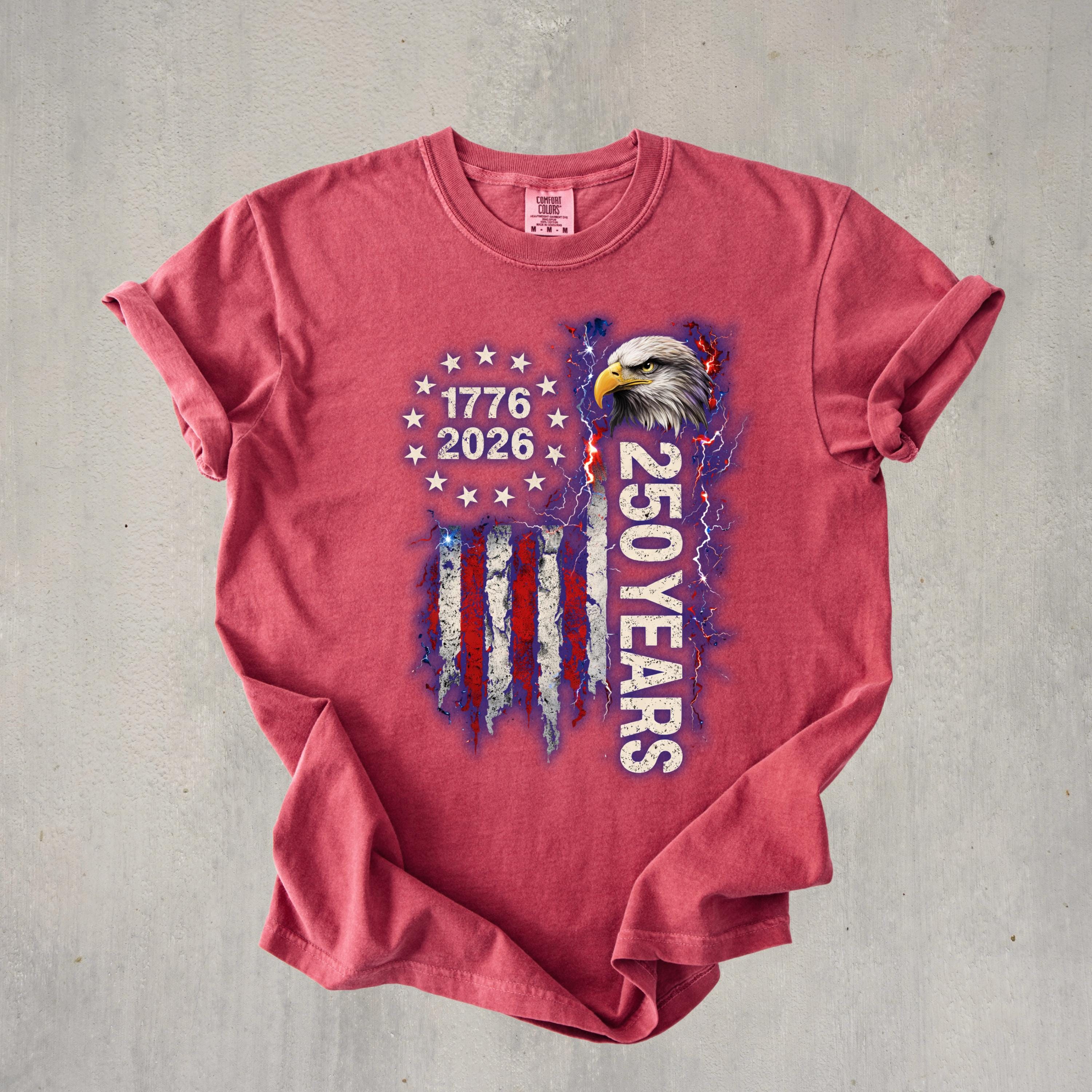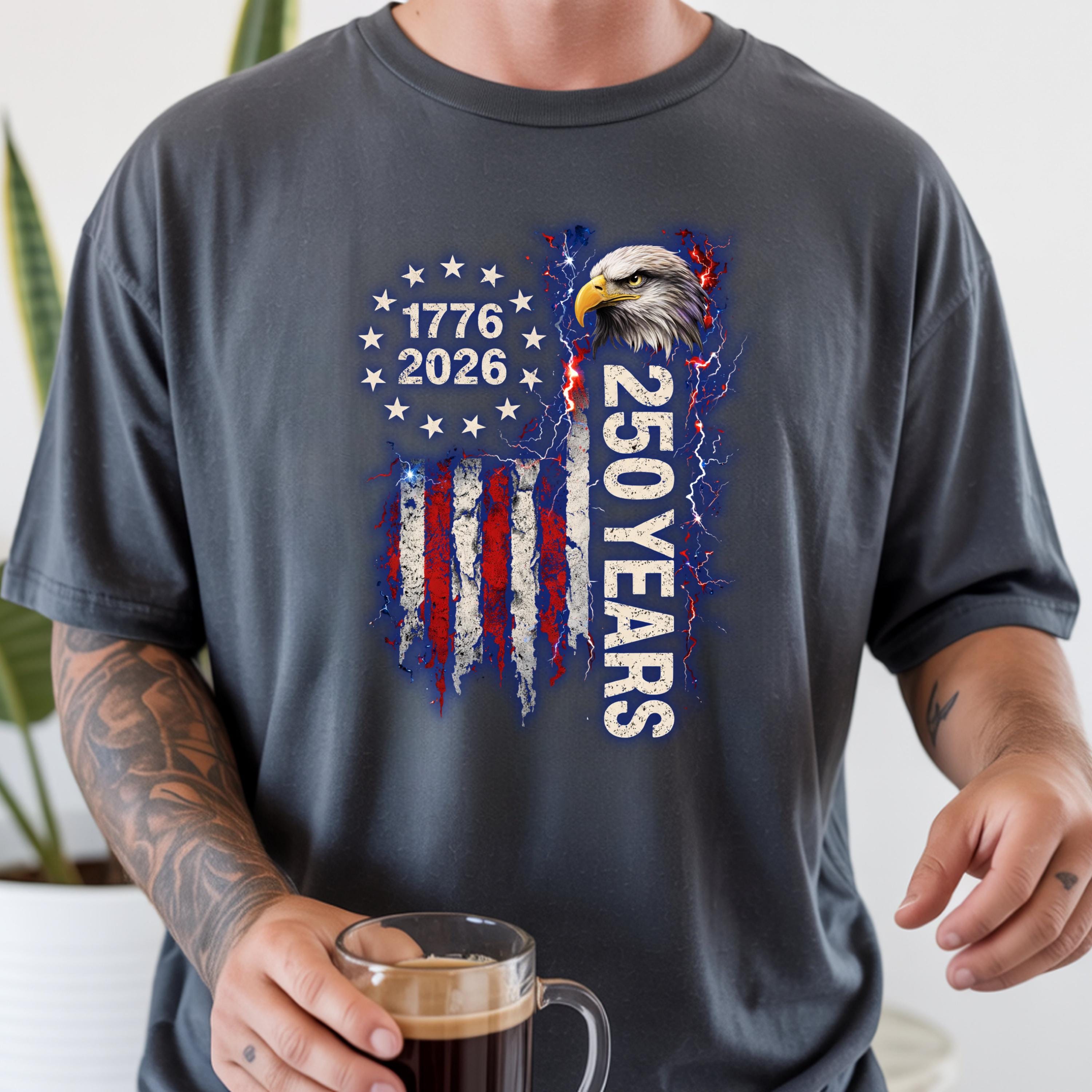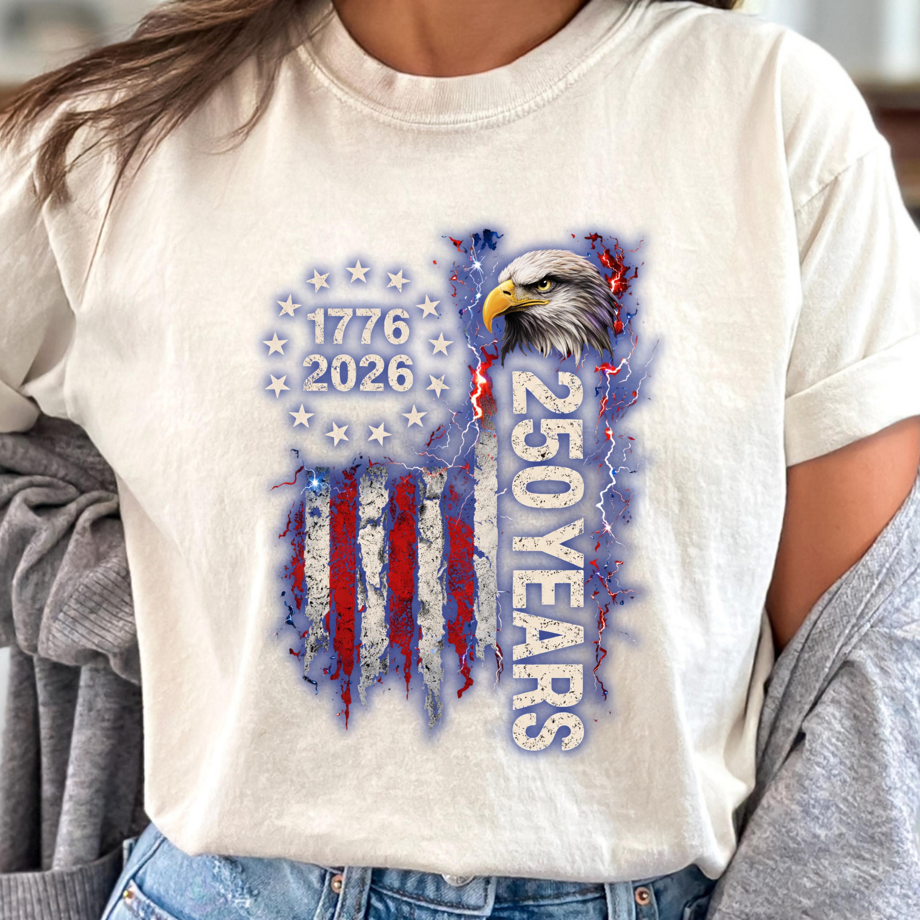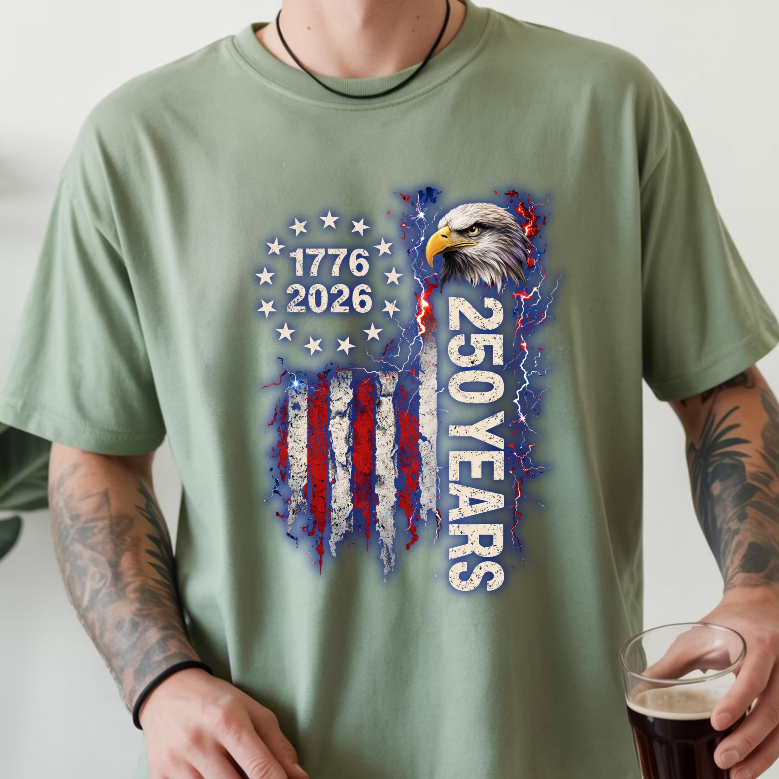 Celebrate 250 years of American spirit with this bold patriotic eagle t-shirt design. Featuring a distressed USA flag, powerful bald eagle artwork, and 1776β2026 anniversary theme, this shirt is perfect for showing your love for freedom, history, and national pride.