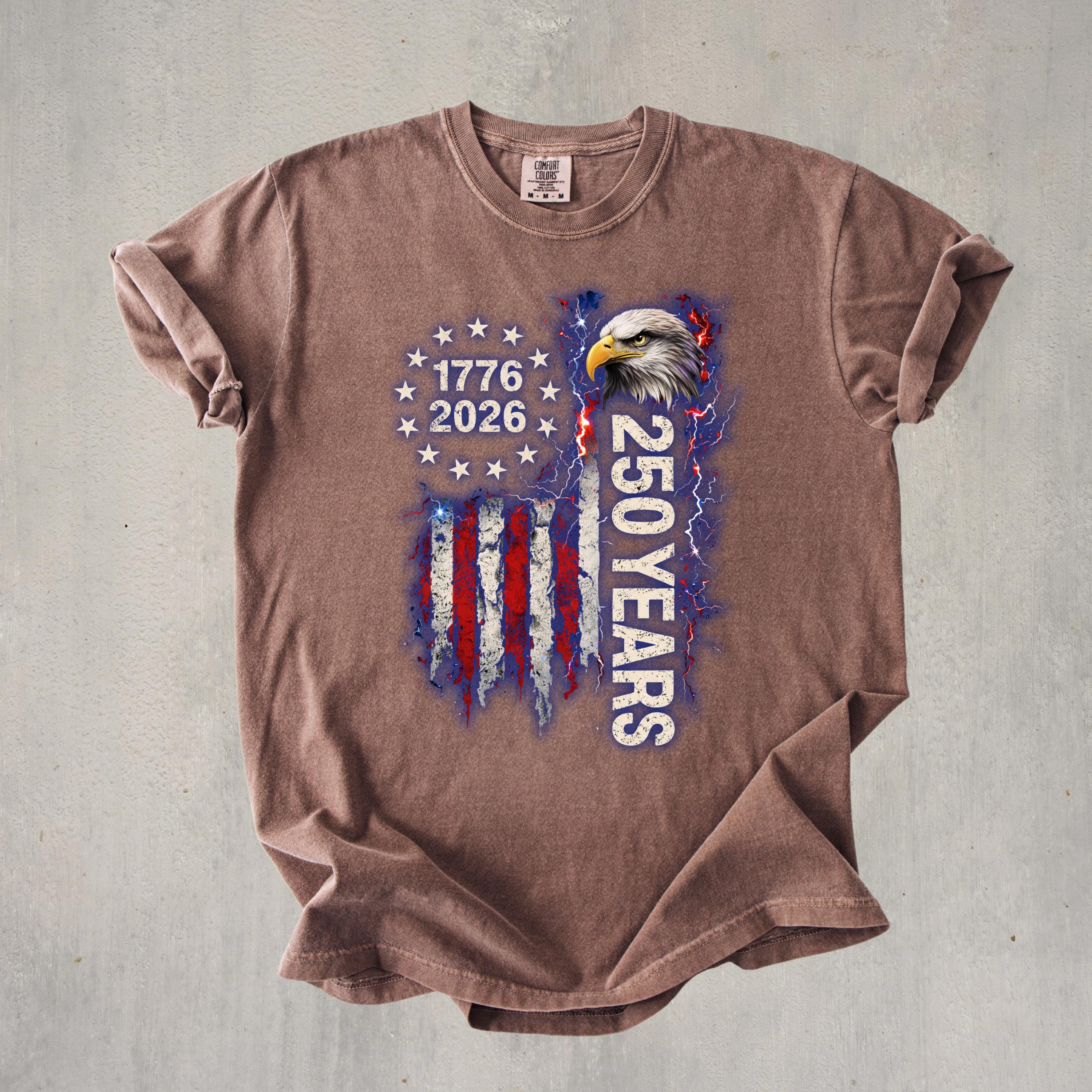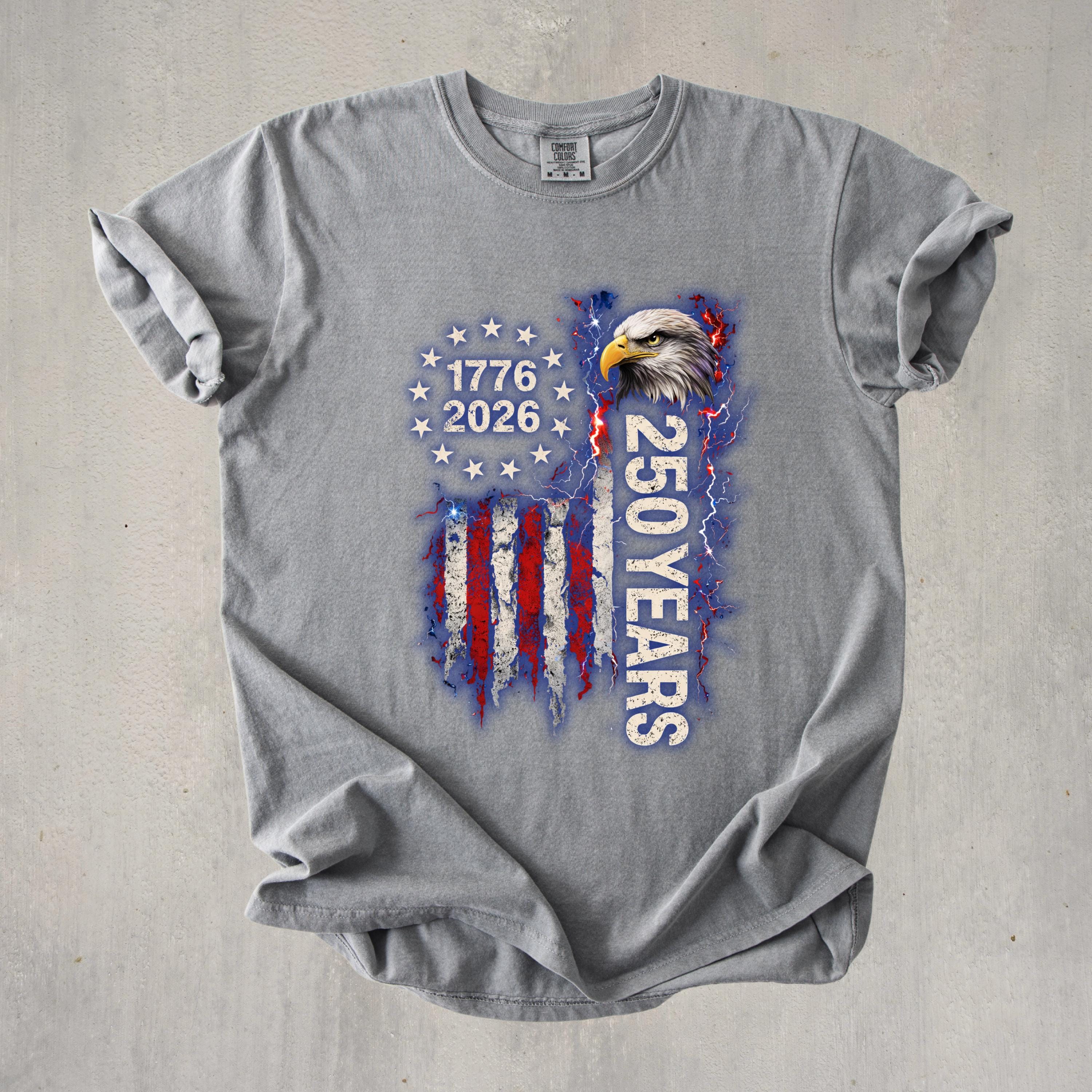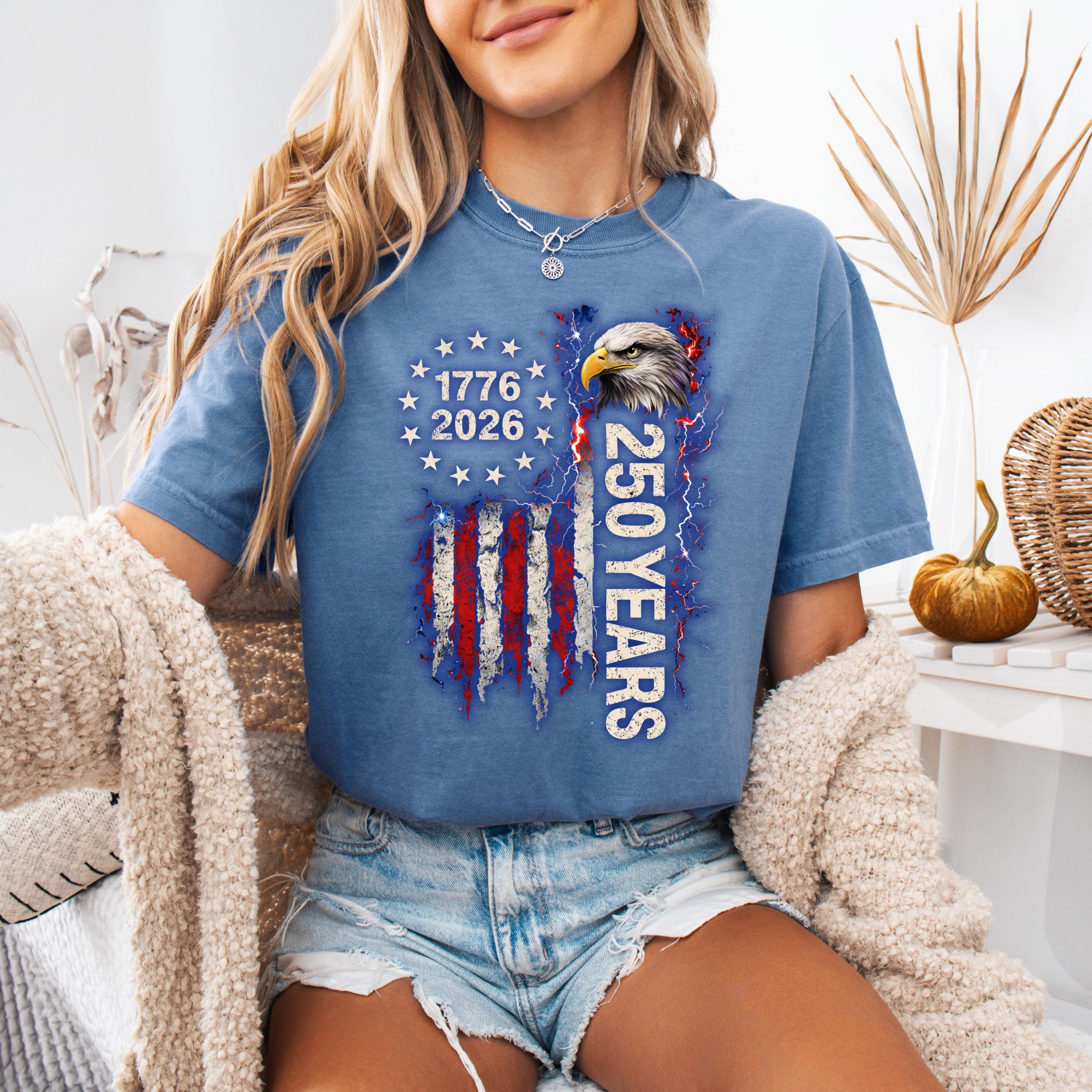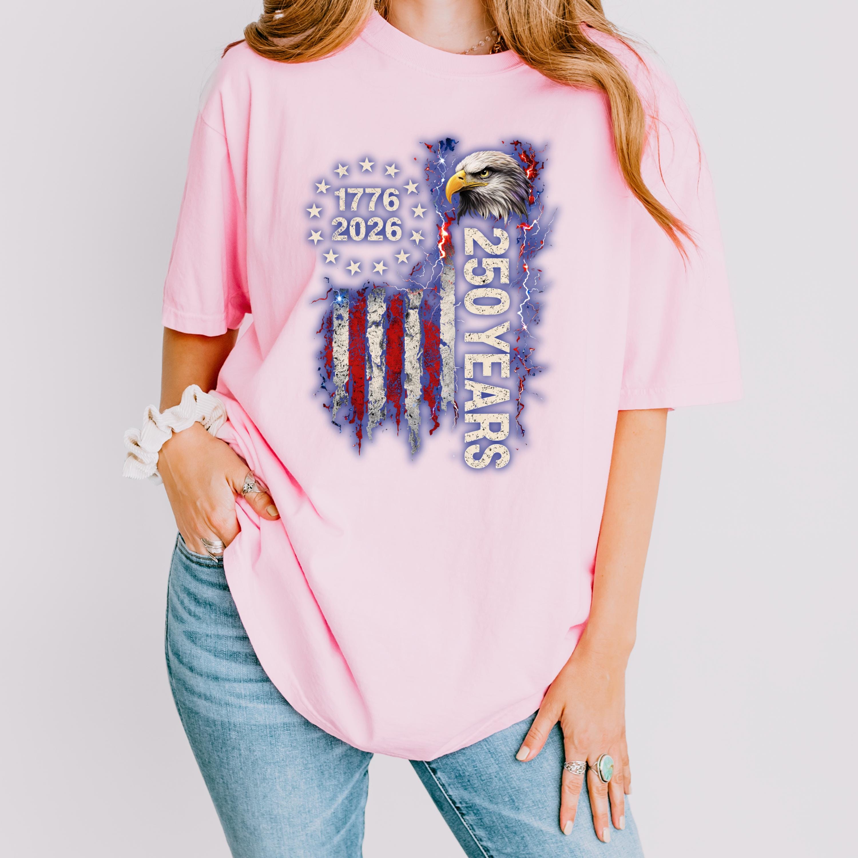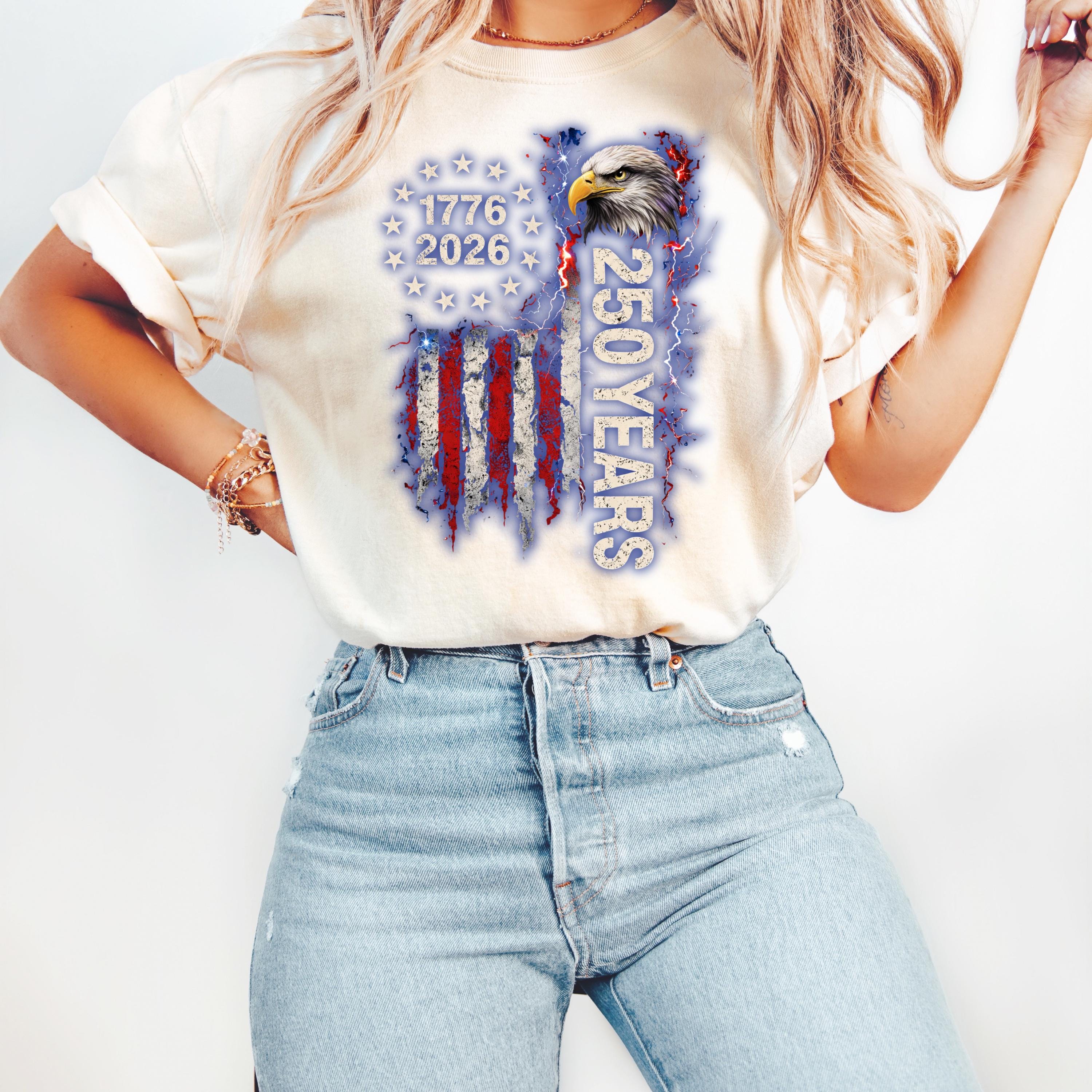 Celebrate 250 years of American spirit with this bold patriotic eagle t-shirt design. Featuring a distressed USA flag, powerful bald eagle artwork, and 1776β2026 anniversary theme, this shirt is perfect for showing your love for freedom, history, and national pride.