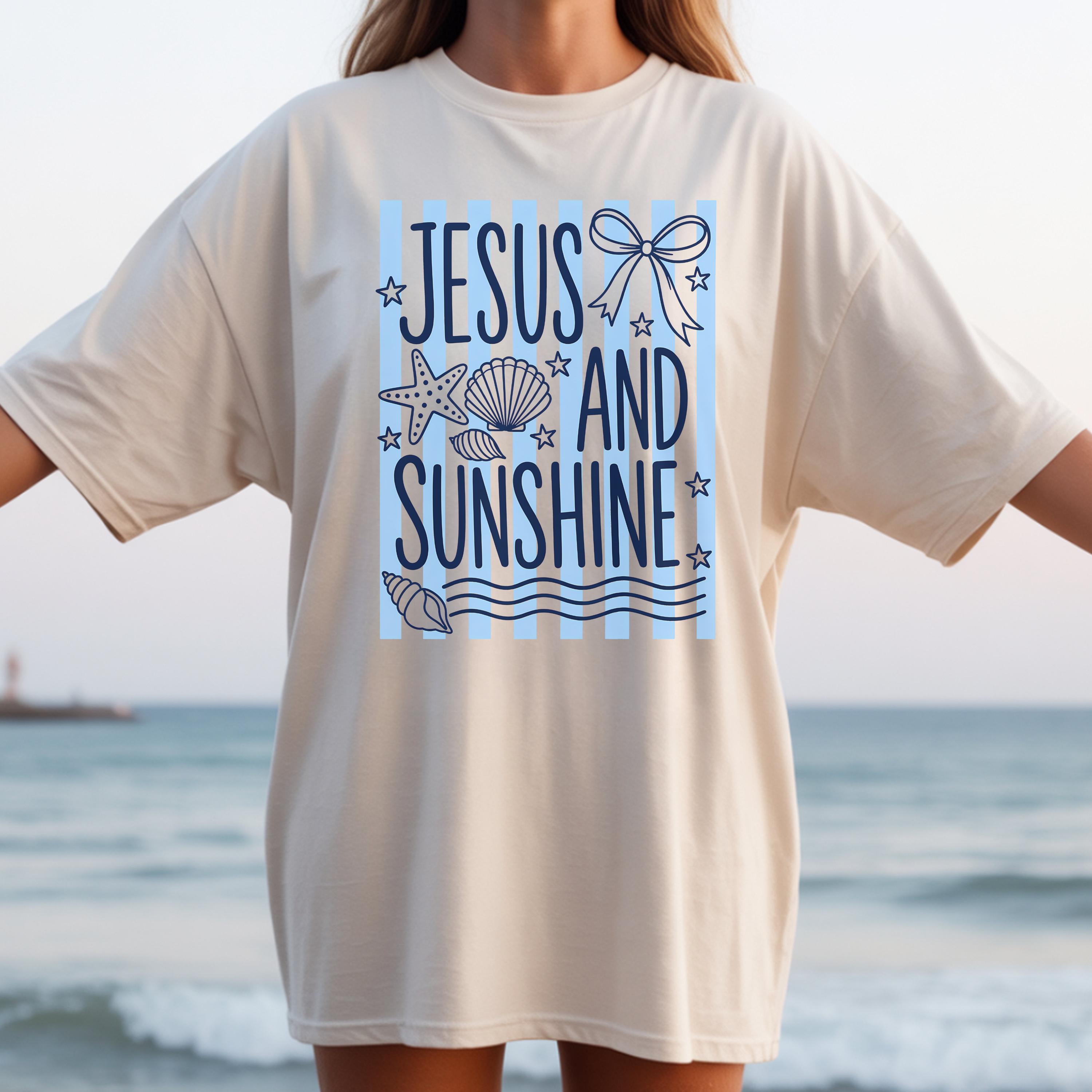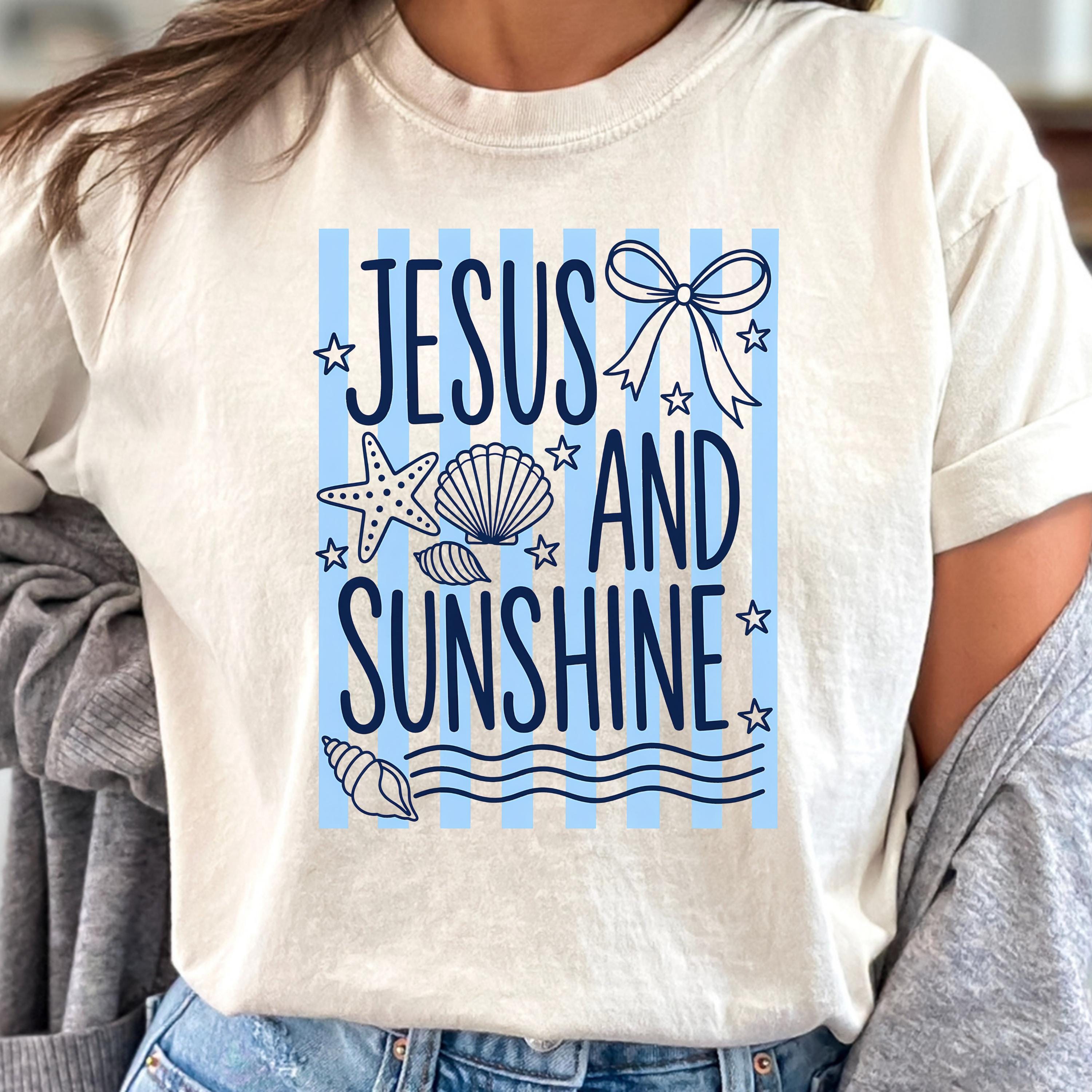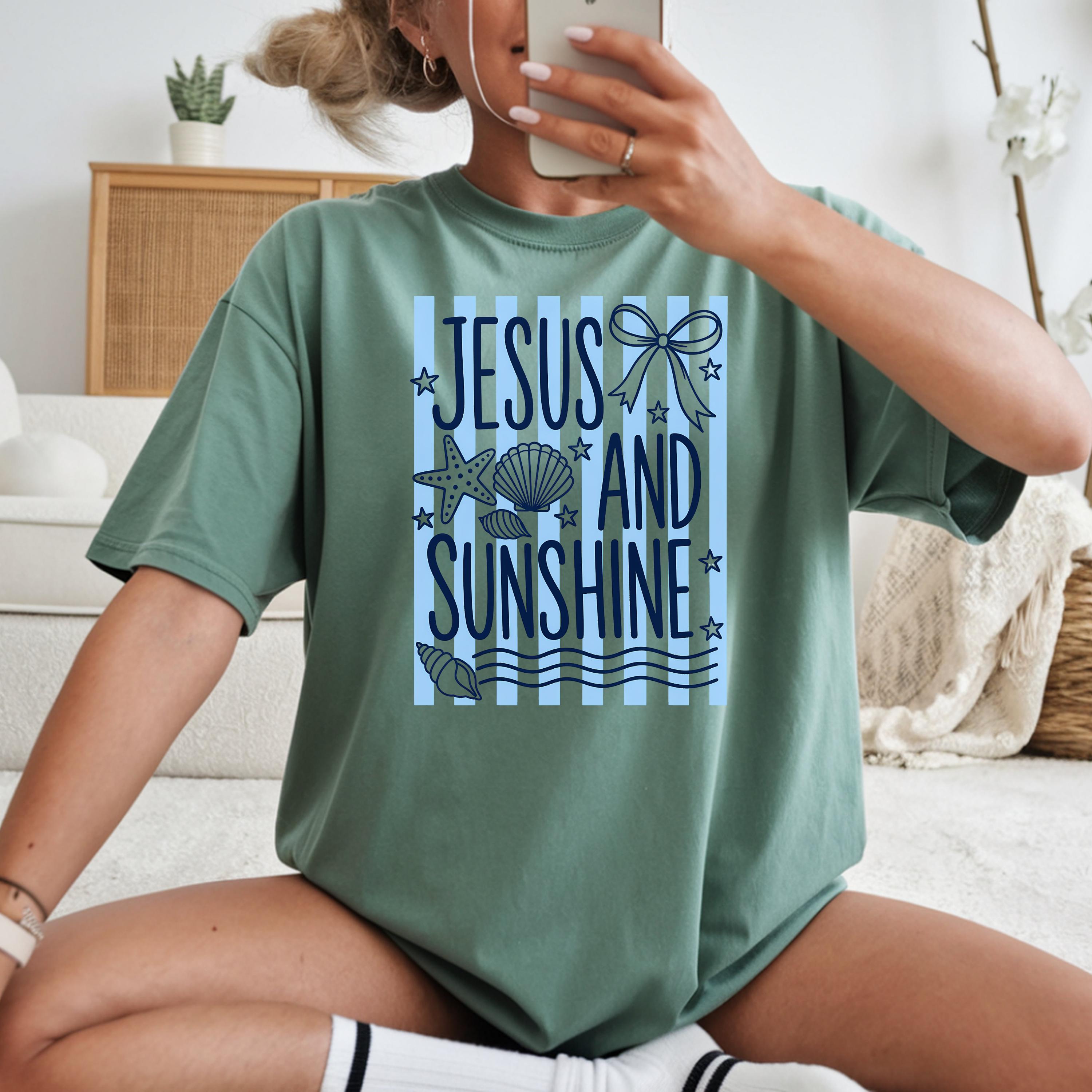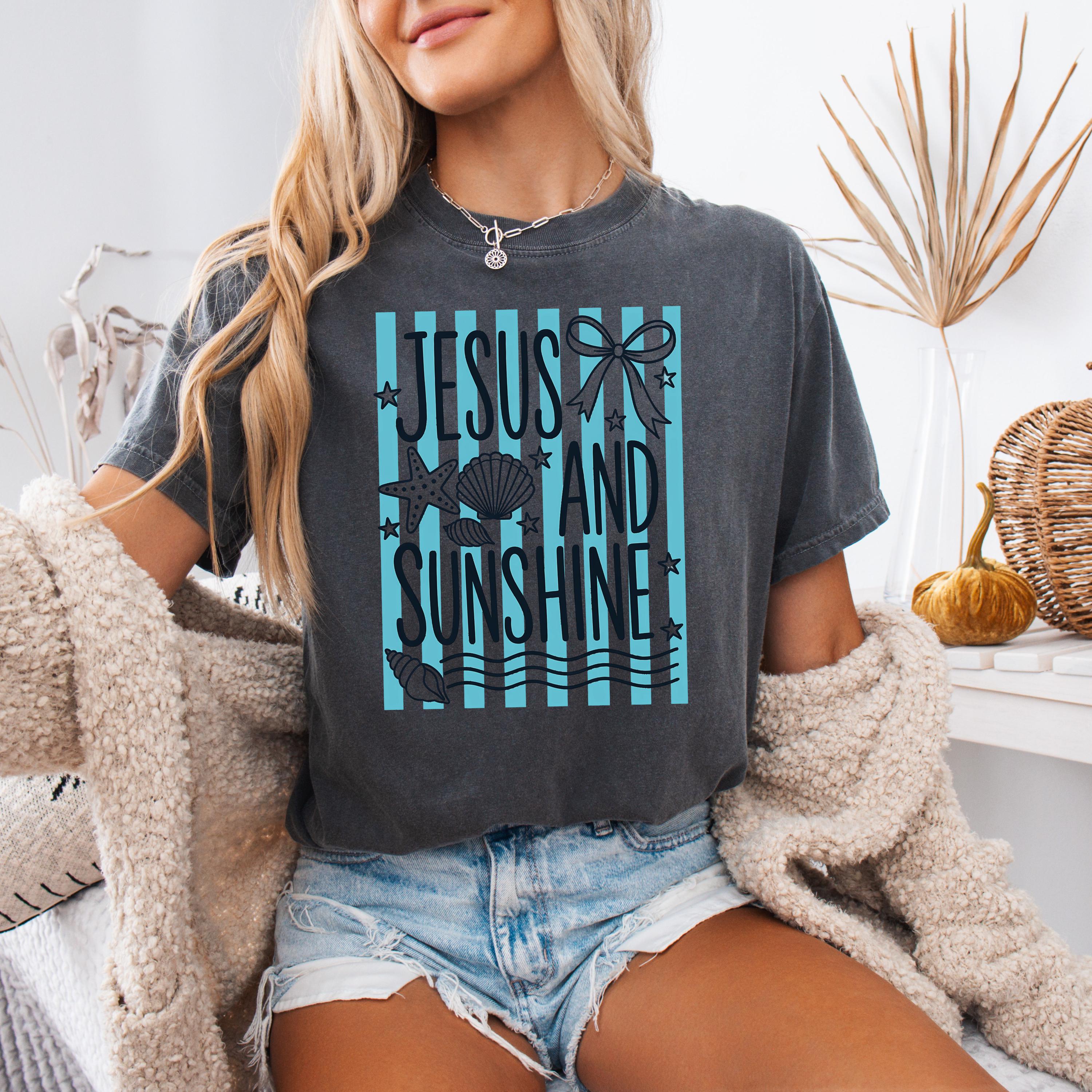 Celebrate your faith and love for sunshine with this “Jesus and Sunshine” t-shirt. Designed with soft coastal vibes, seashell details, and calming tones, this tee blends spirituality with a relaxed summer aesthetic.