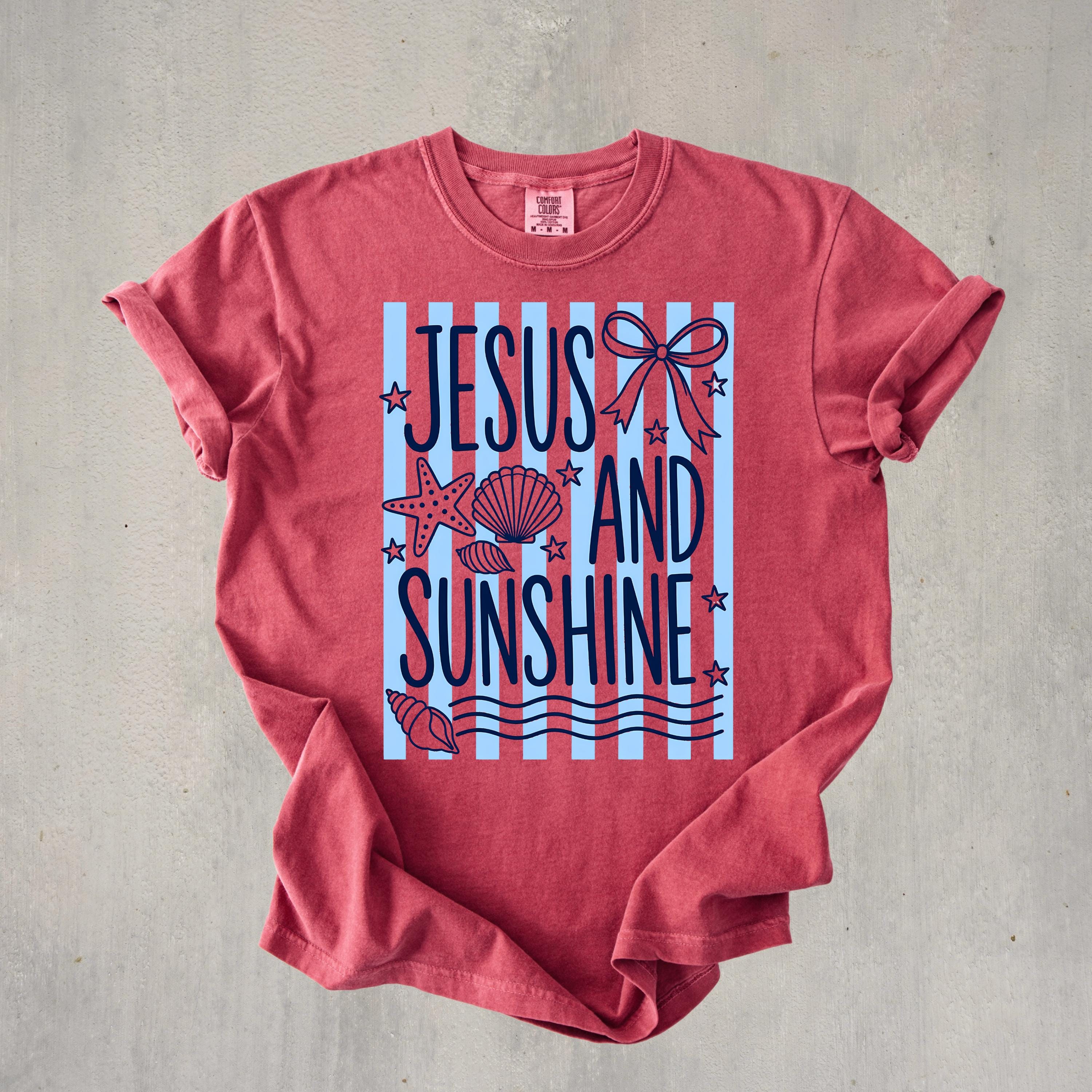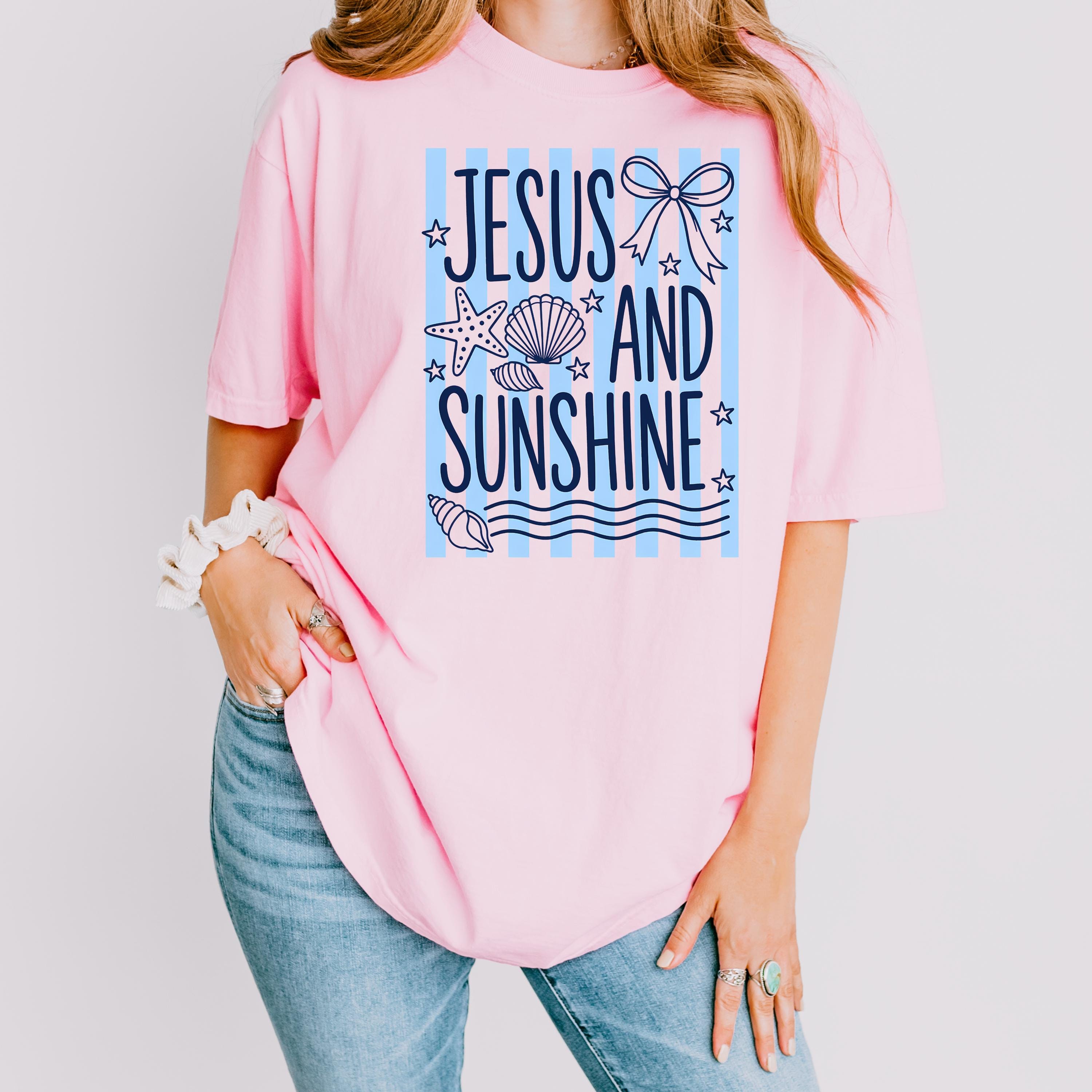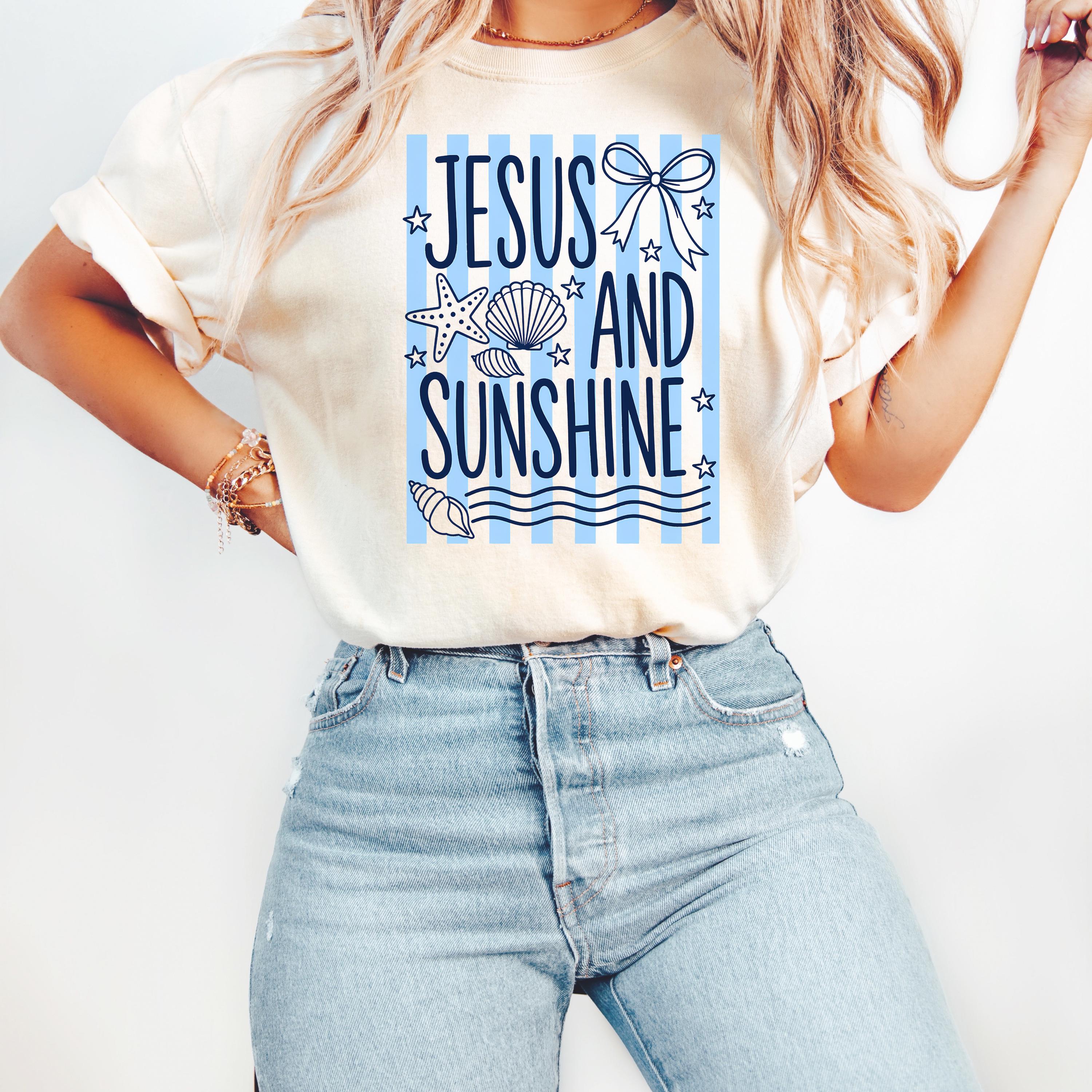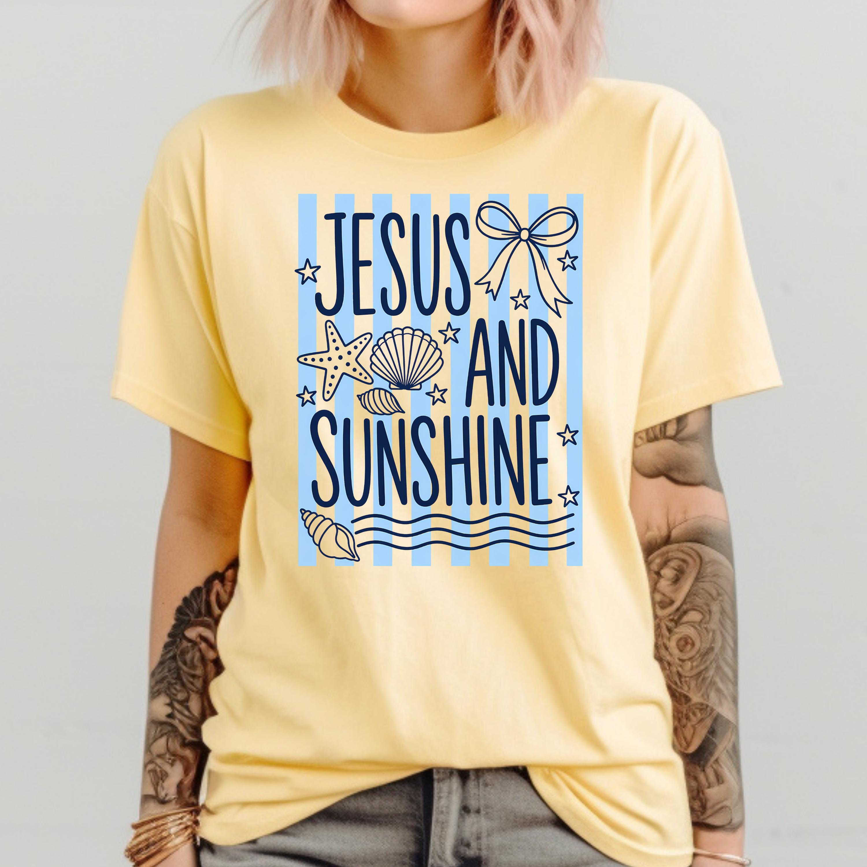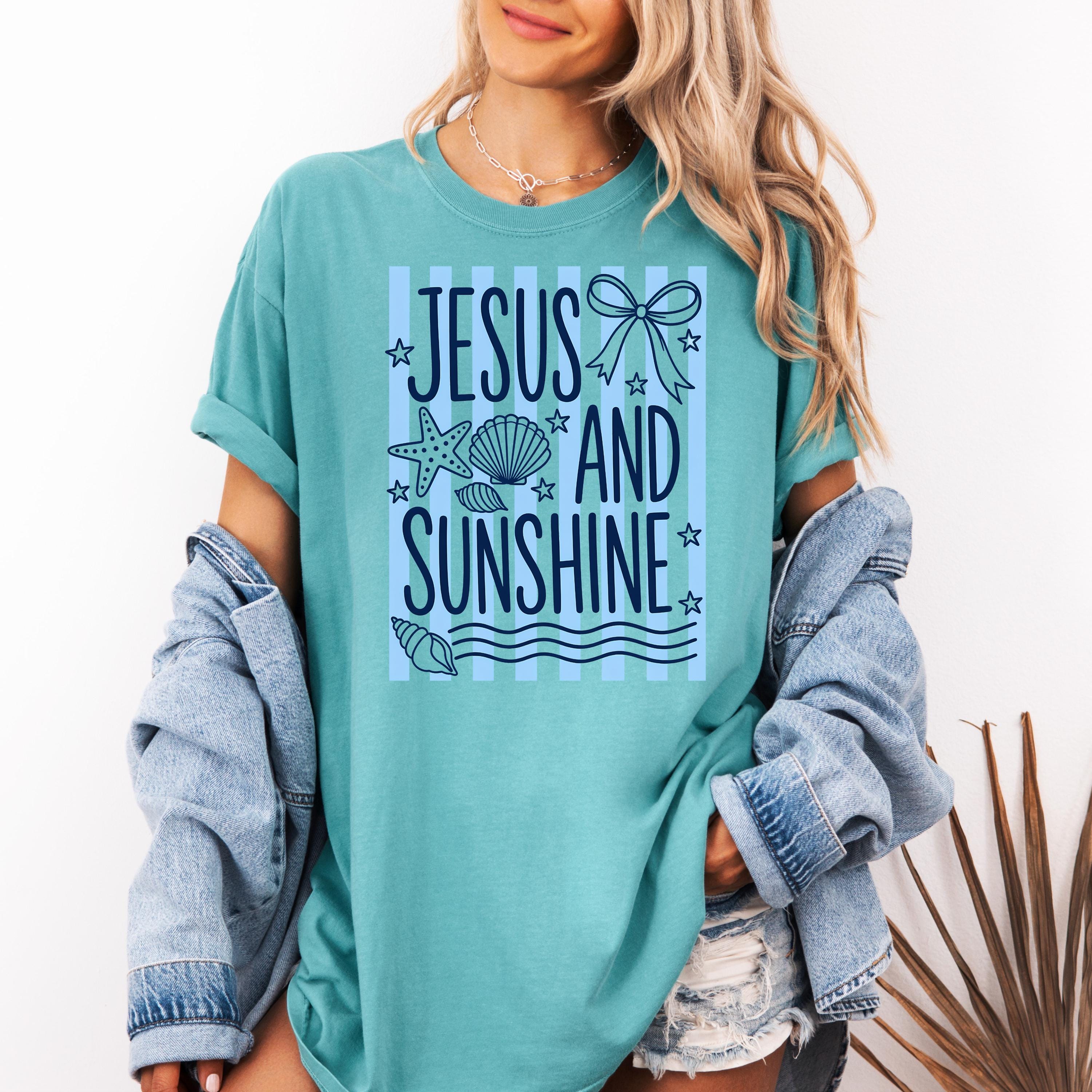 Celebrate your faith and love for sunshine with this “Jesus and Sunshine” t-shirt. Designed with soft coastal vibes, seashell details, and calming tones, this tee blends spirituality with a relaxed summer aesthetic.