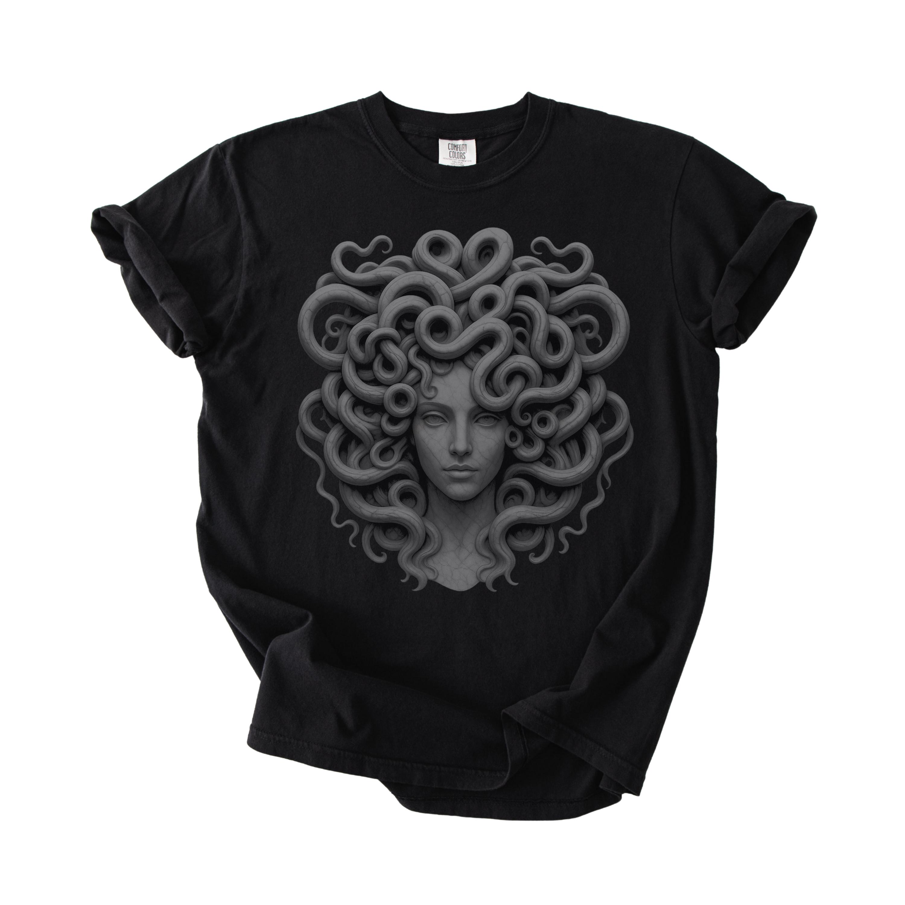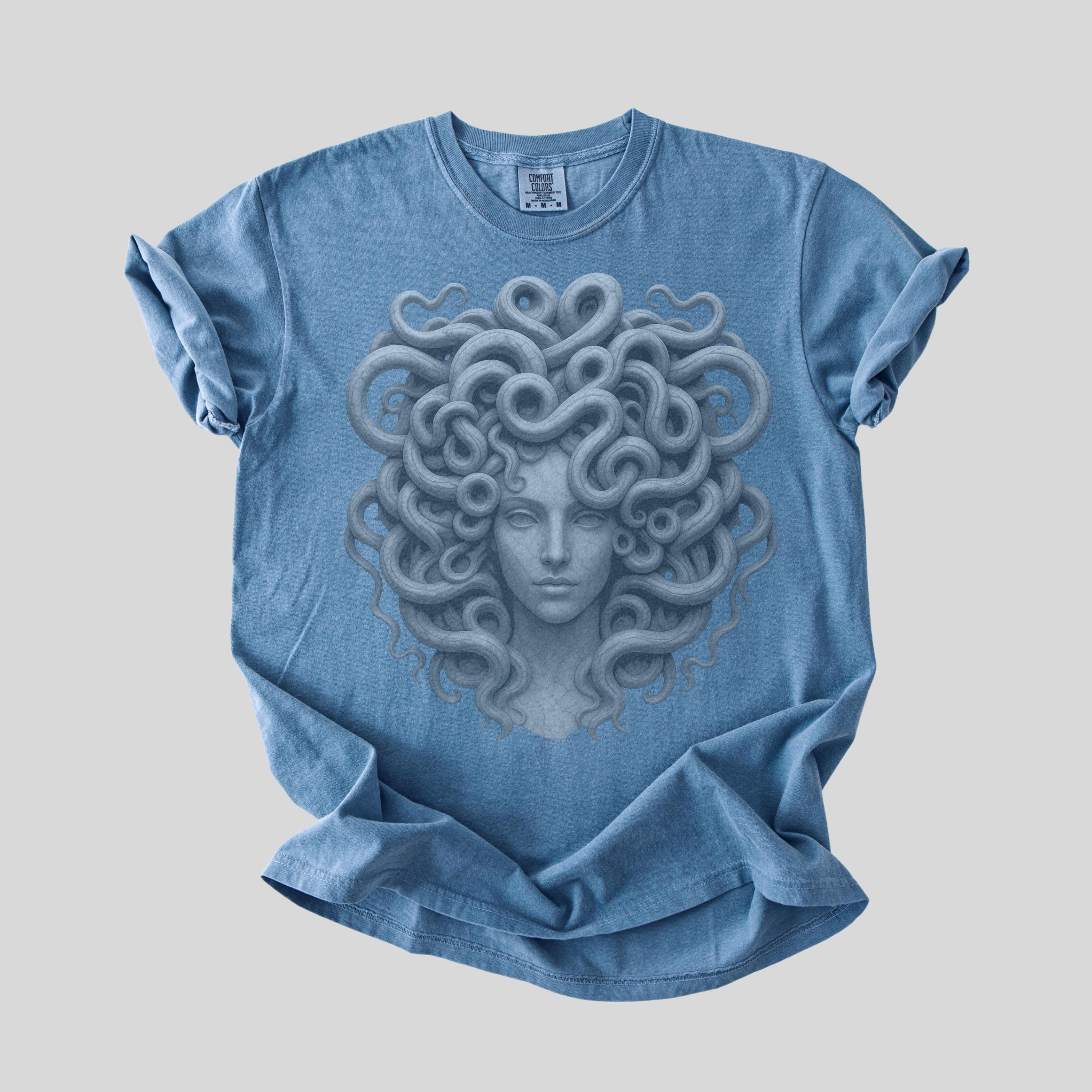 This Medusa Shirt features a striking marble goddess design inspired by Greek mythology, making it a bold and artistic choice for women who love mythological, gothic, and empowerment-inspired fashion. Printed on a Comfort Colors® shirt, this Goddess Medusa tee has a soft vintage feel and relaxed fit, perfect for everyday wear.