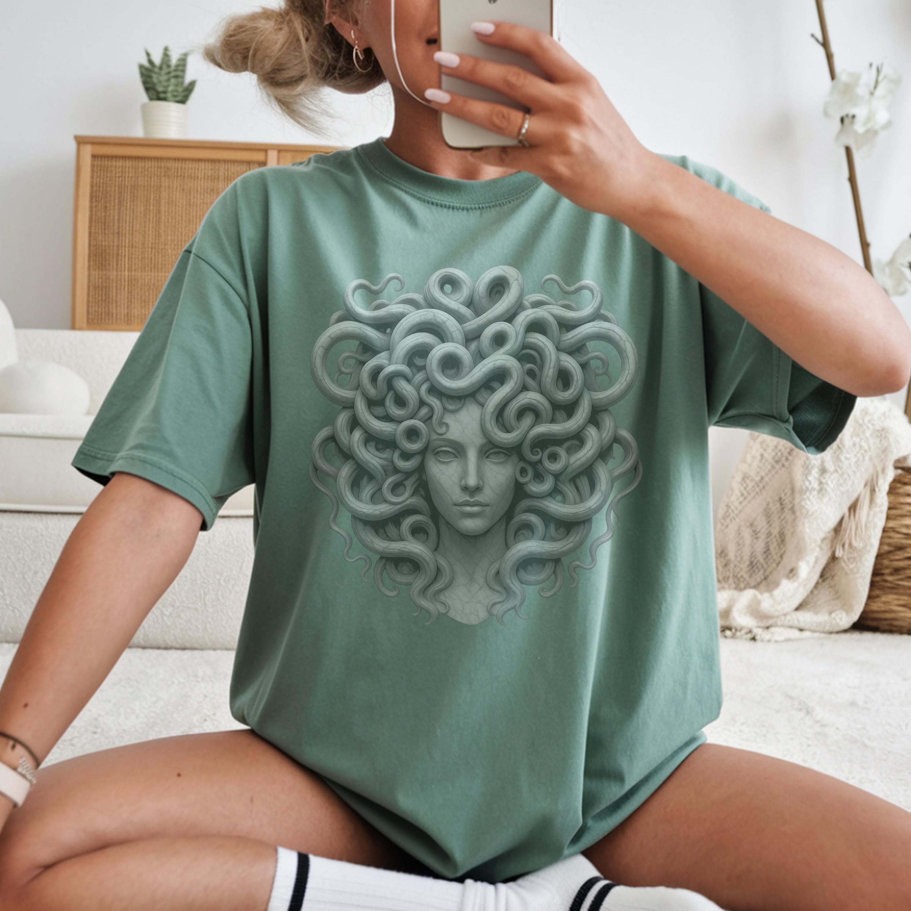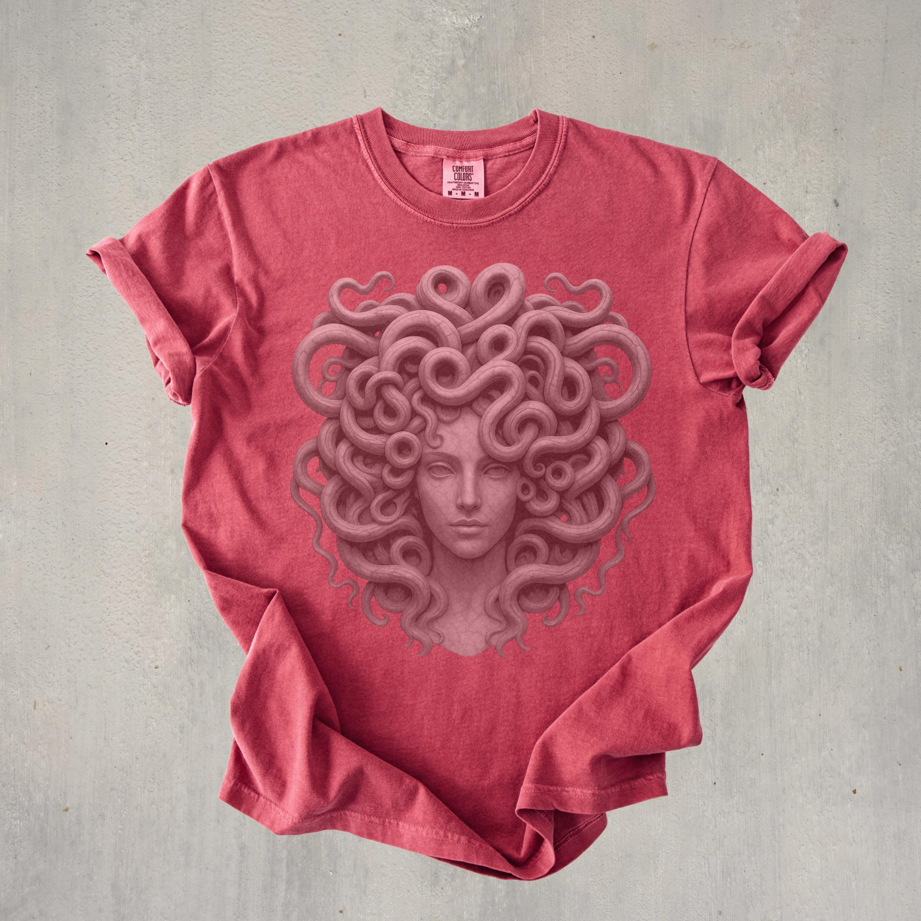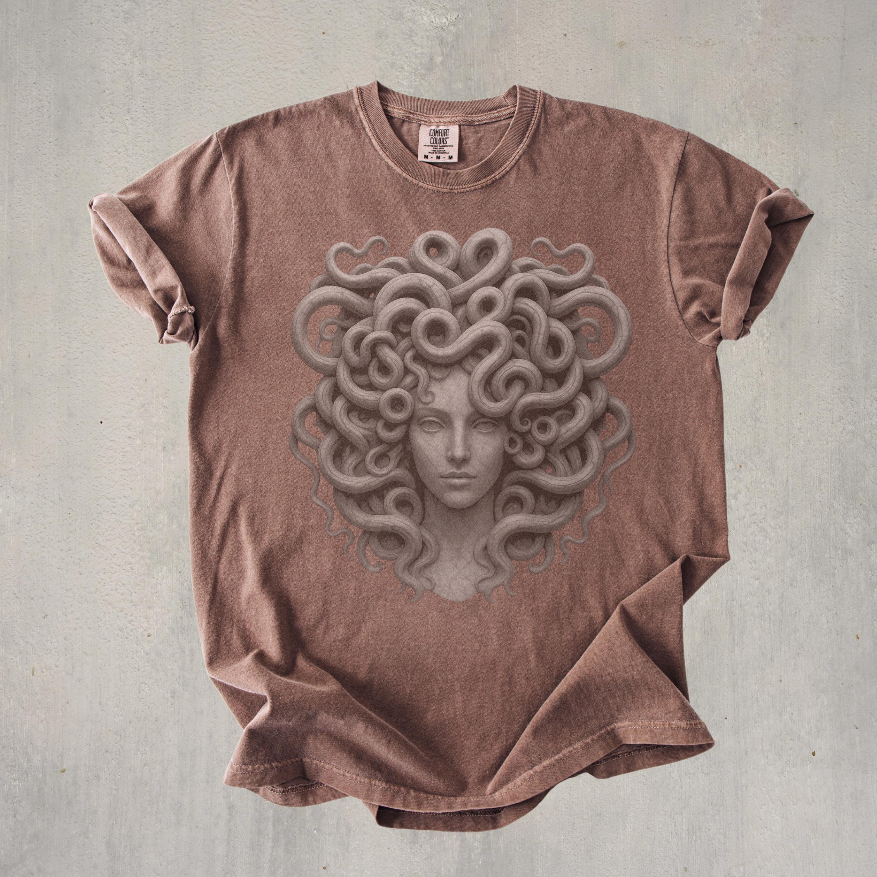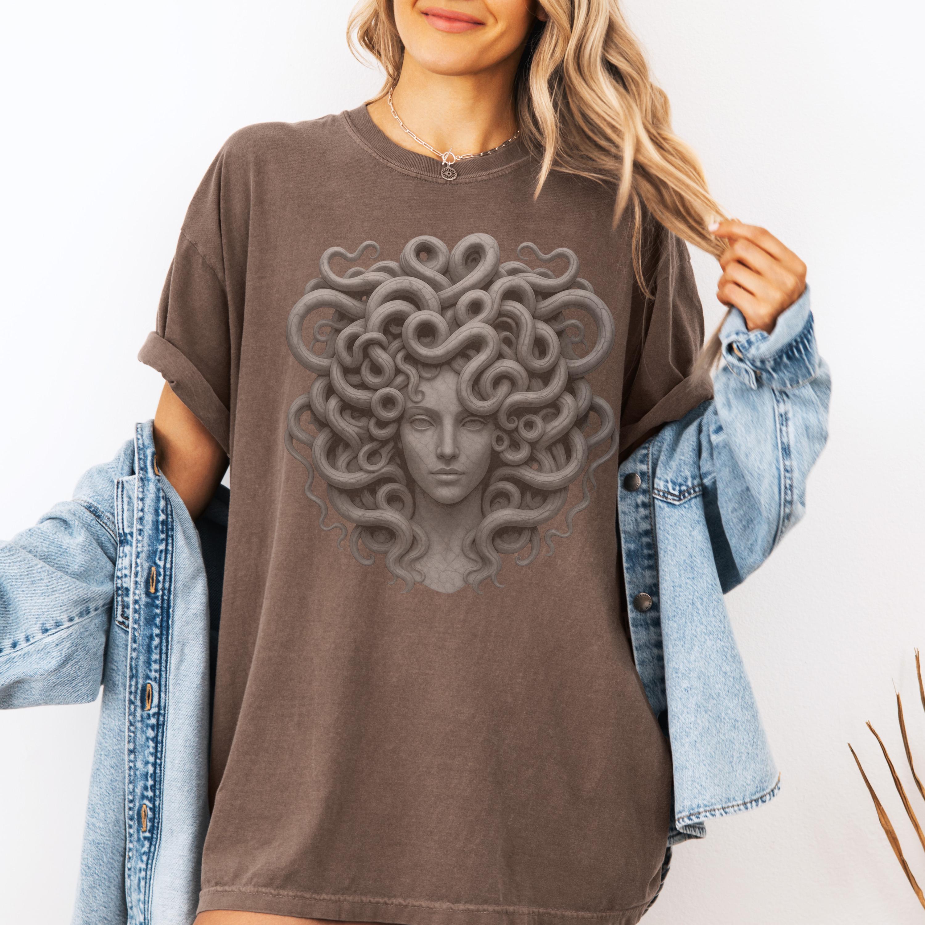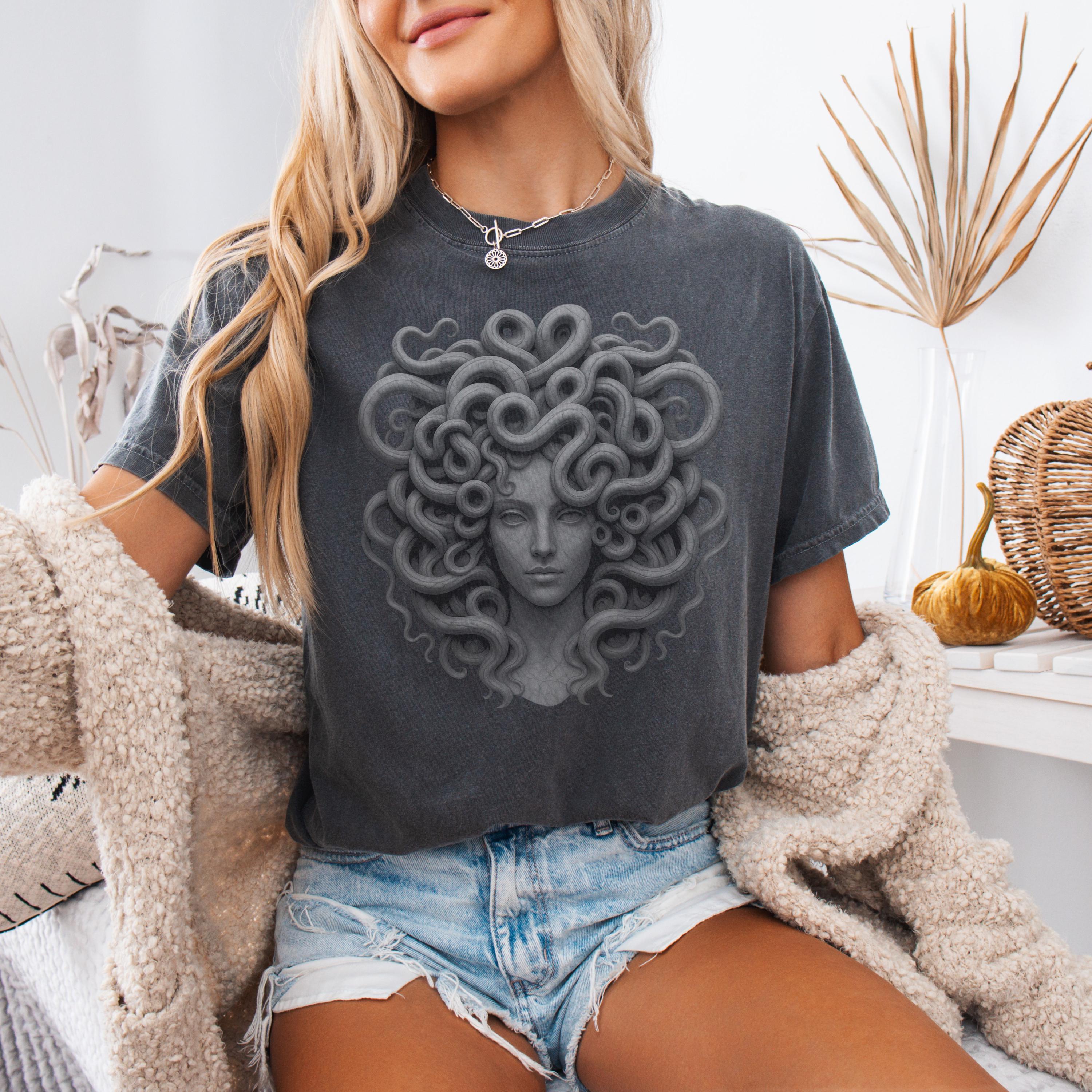 Perfect for styling with jeans, boots, layered jewelry, or cozy cardigans, this Medusa Comfort Colors® shirt fits witchy, gothic, artistic, and feminine fashion styles. It also makes a thoughtful gift for anyone who loves Greek mythology gifts, Medusa gifts for women, art-inspired shirts, and powerful feminine designs.
