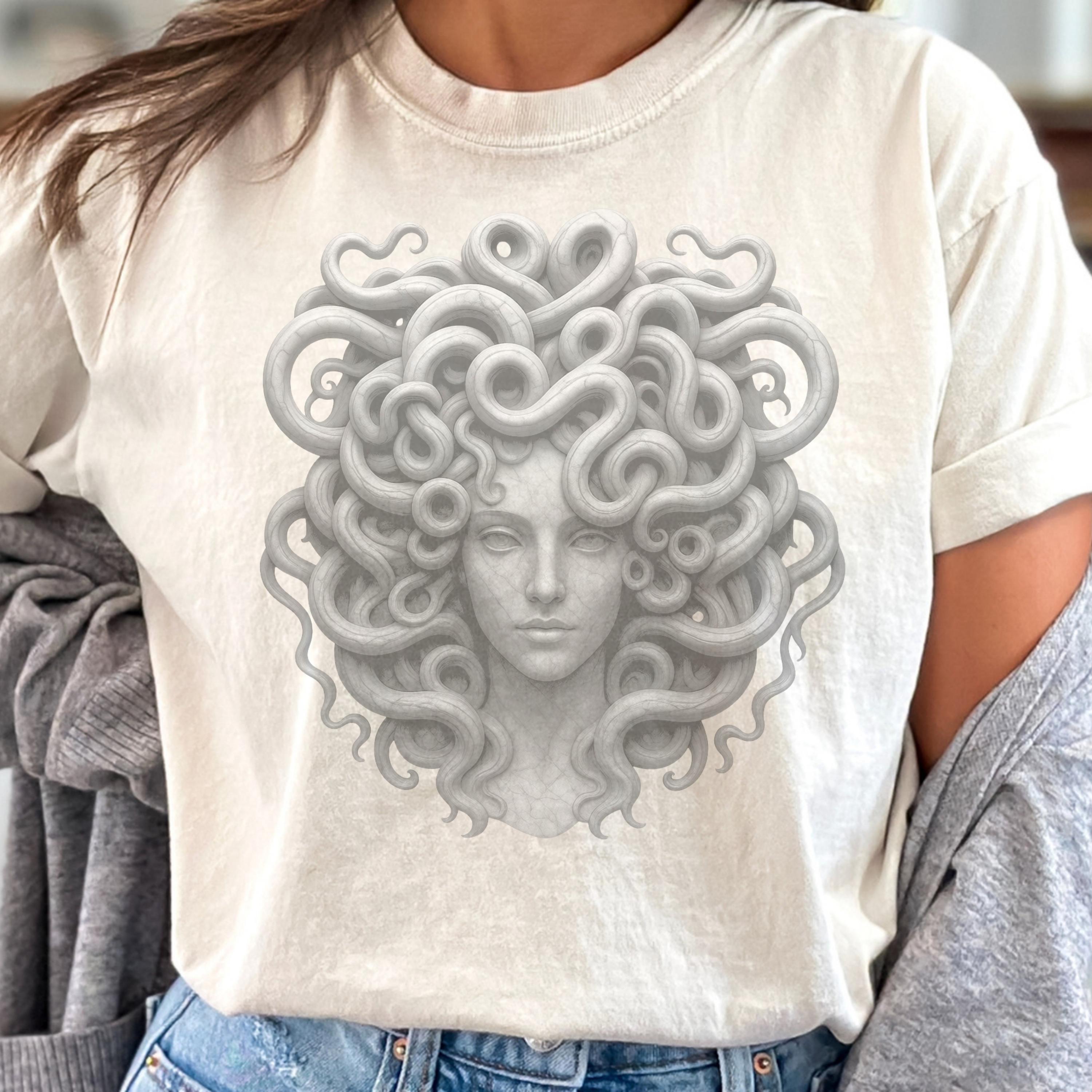 Great for birthdays, holidays, casual outfits, or statement fashion moments, this stone look Medusa shirt combines mythology, beauty, strength, and timeless style in one wearable piece.
