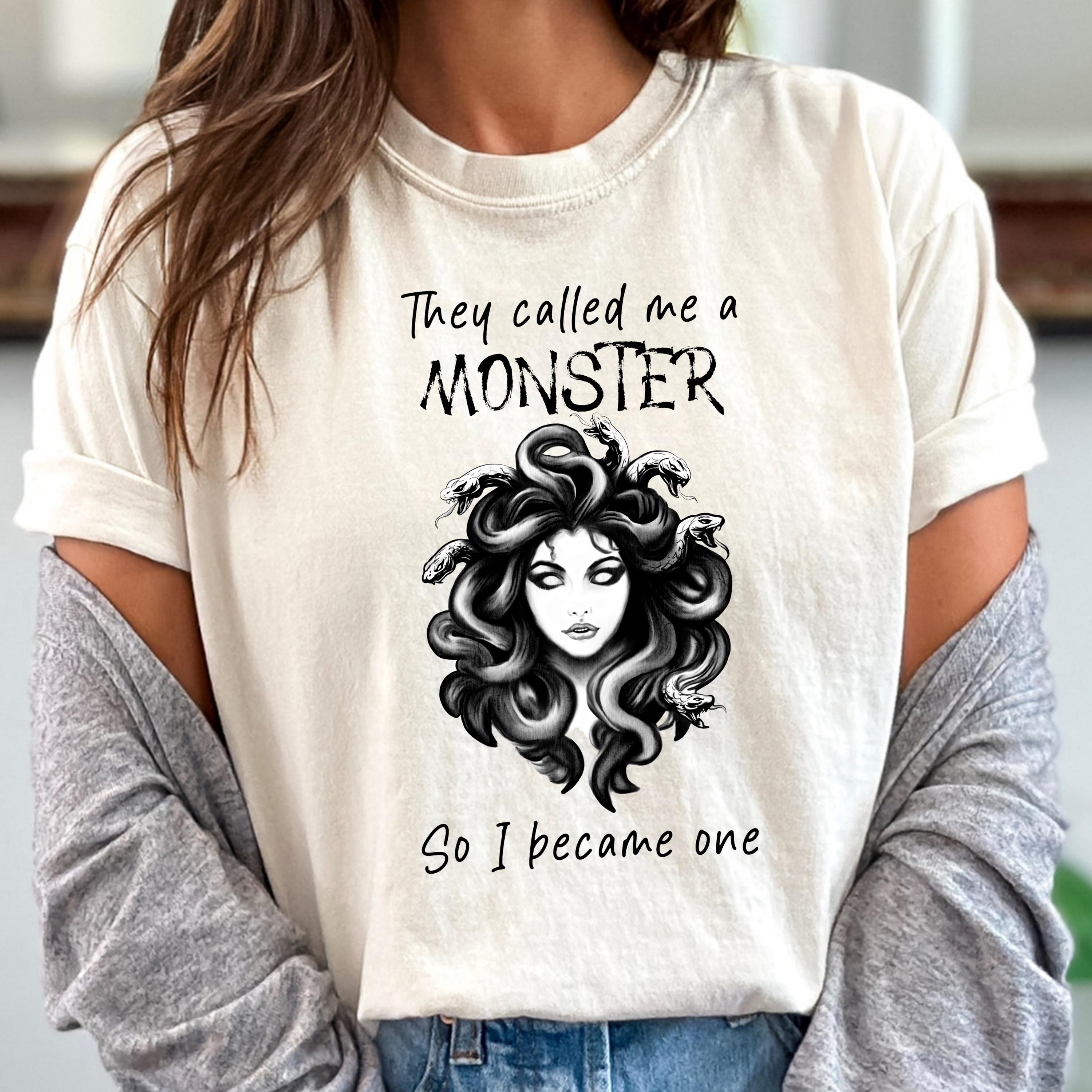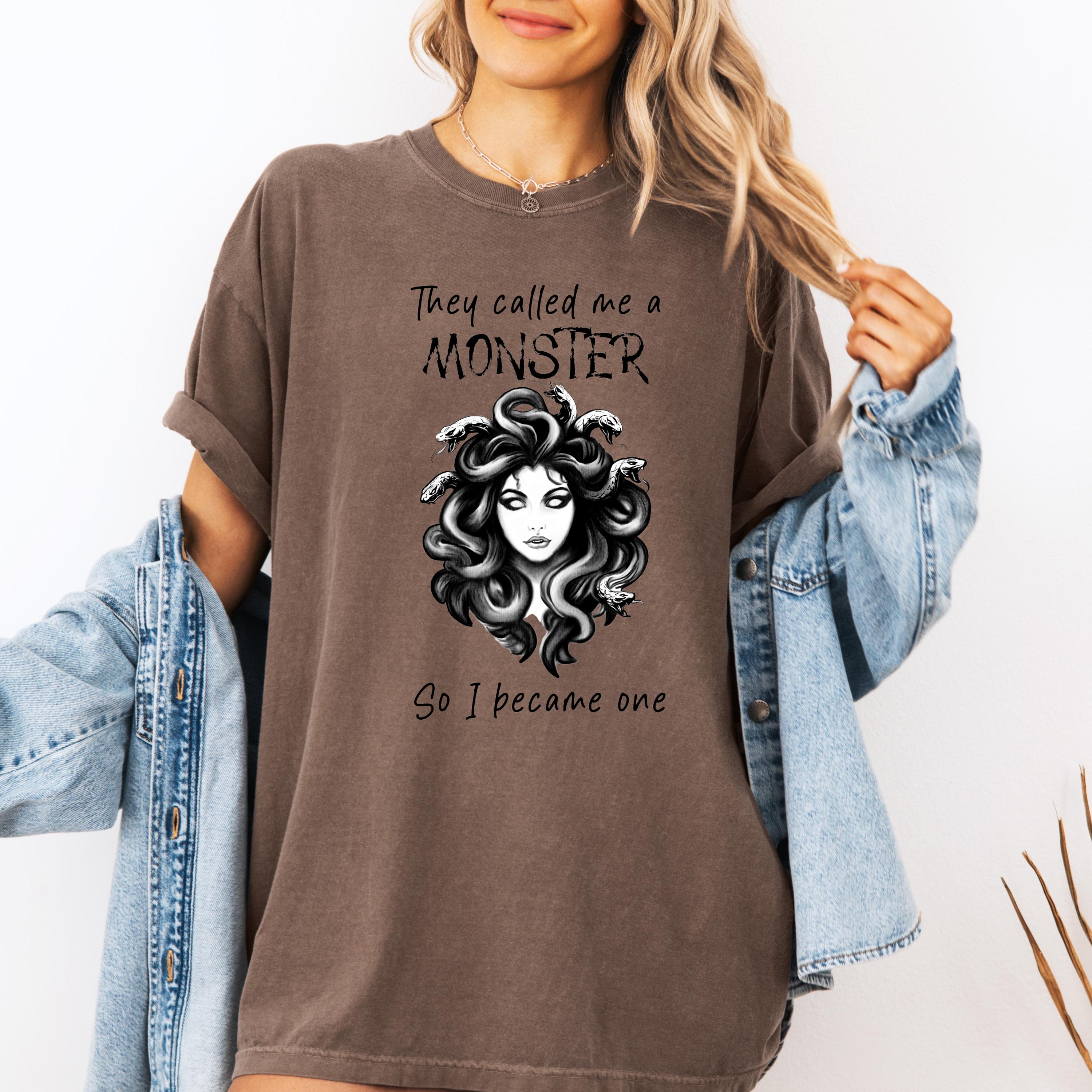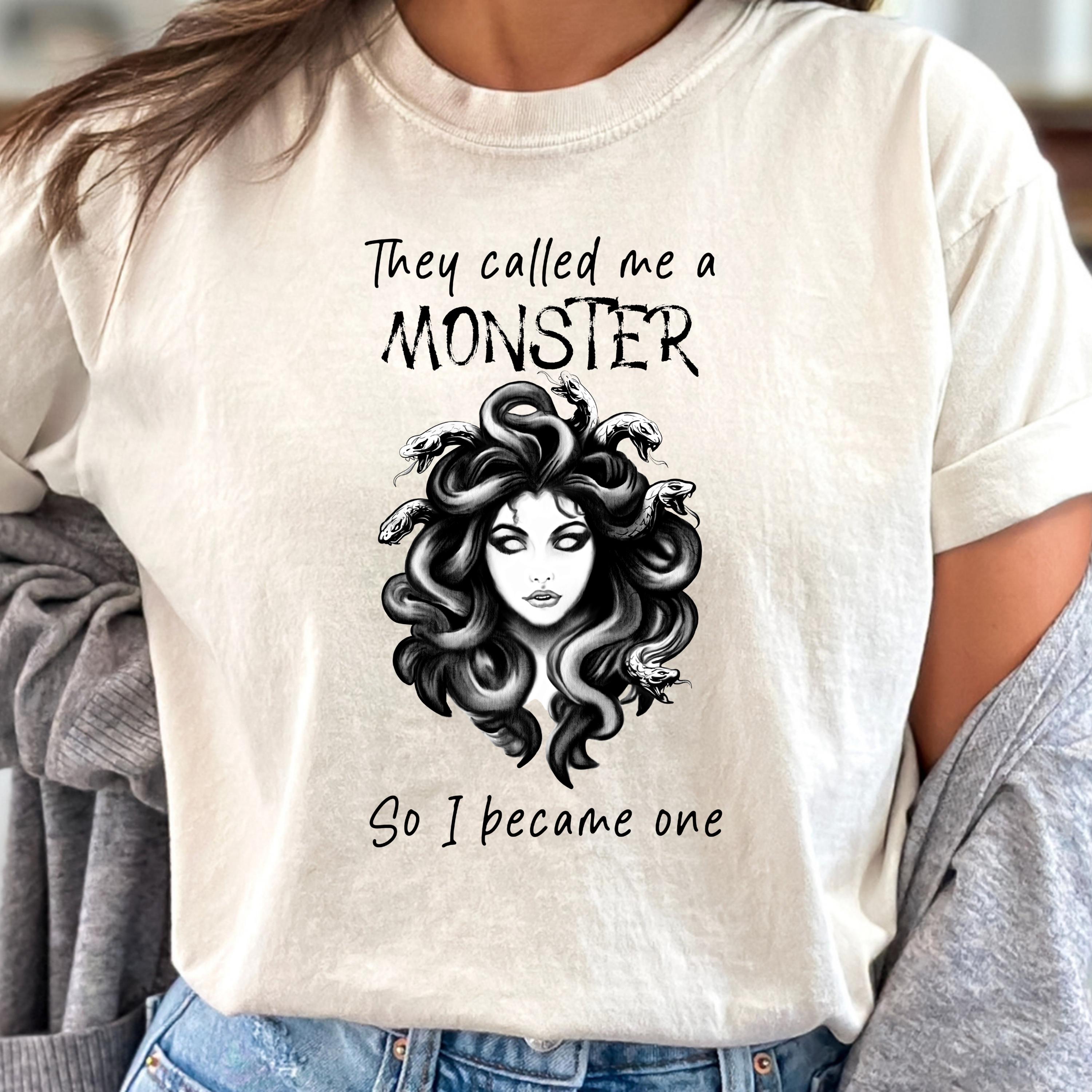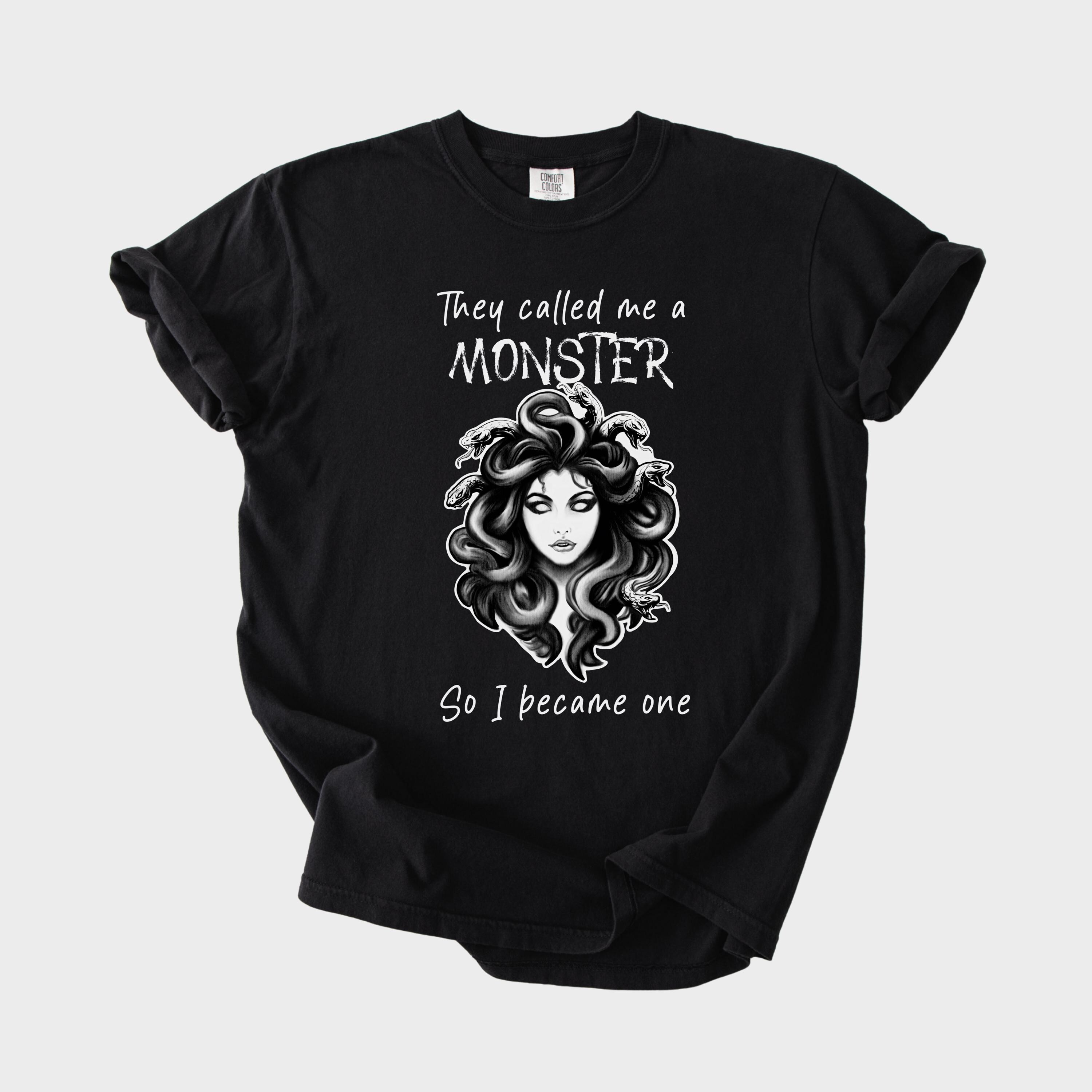 This bold Medusa Shirt features the powerful quote “They called me a monster, so I became one”, combined with a striking goddess Medusa illustration inspired by Greek mythology. Designed for women who embrace strength, transformation, and individuality, this Medusa graphic tee makes a fearless statement.