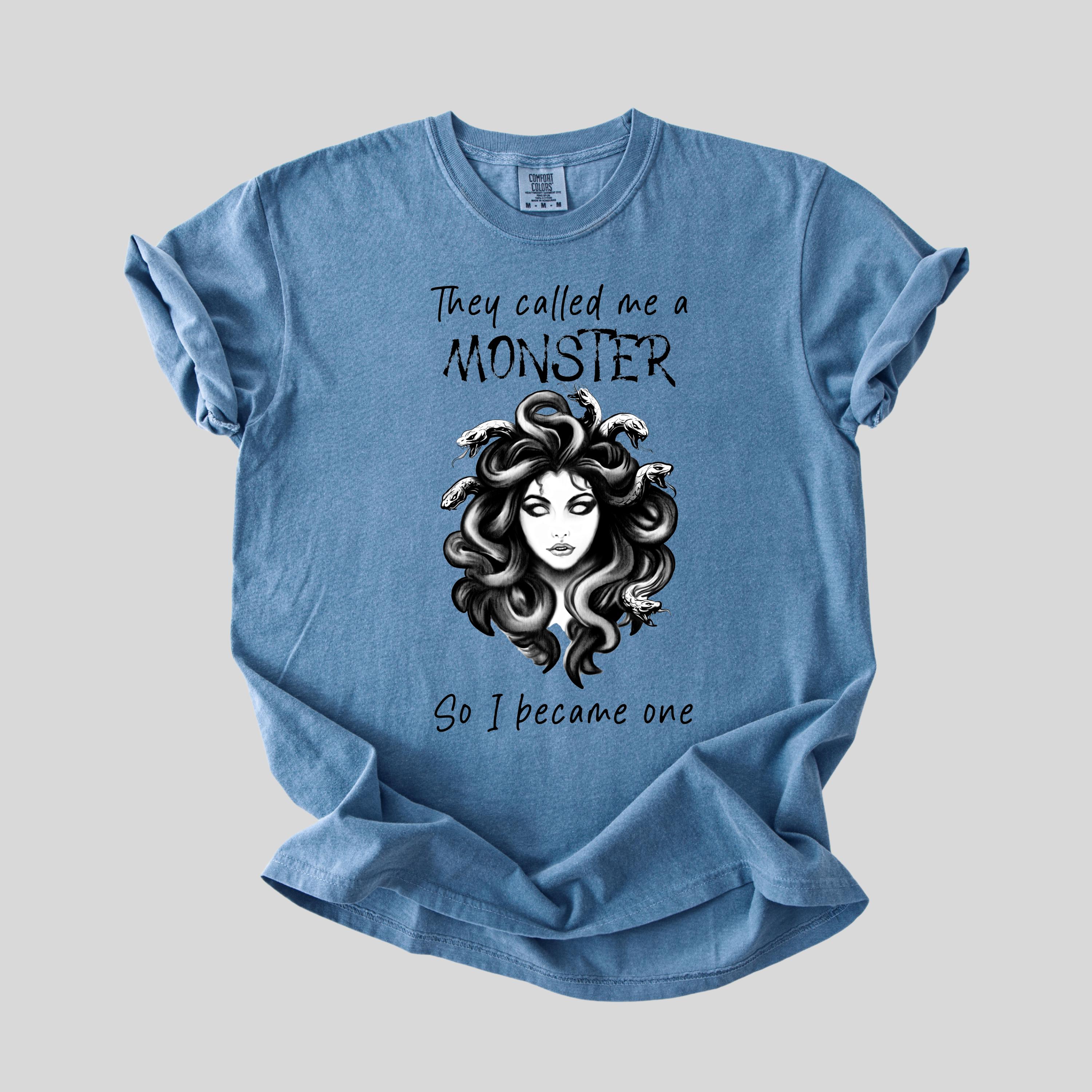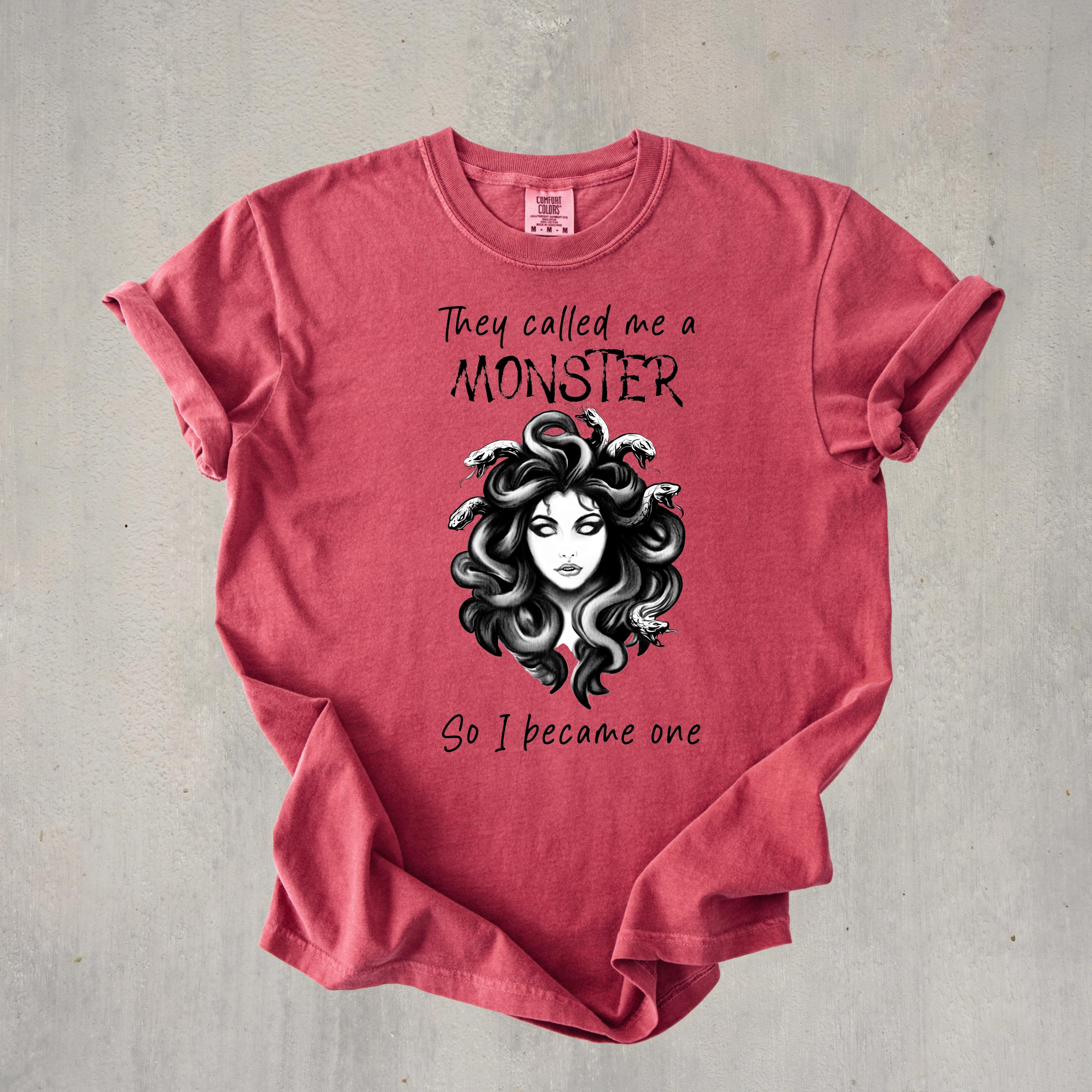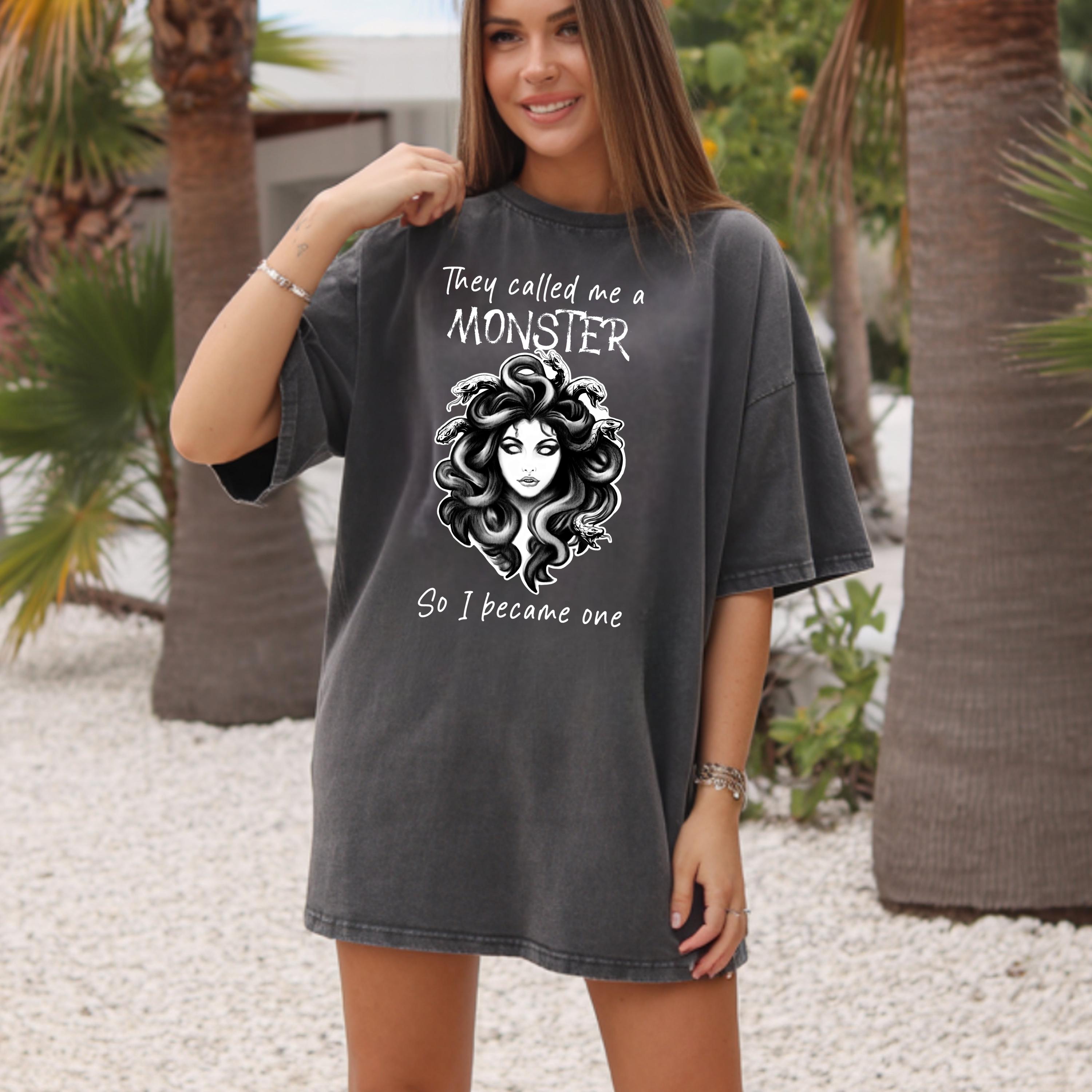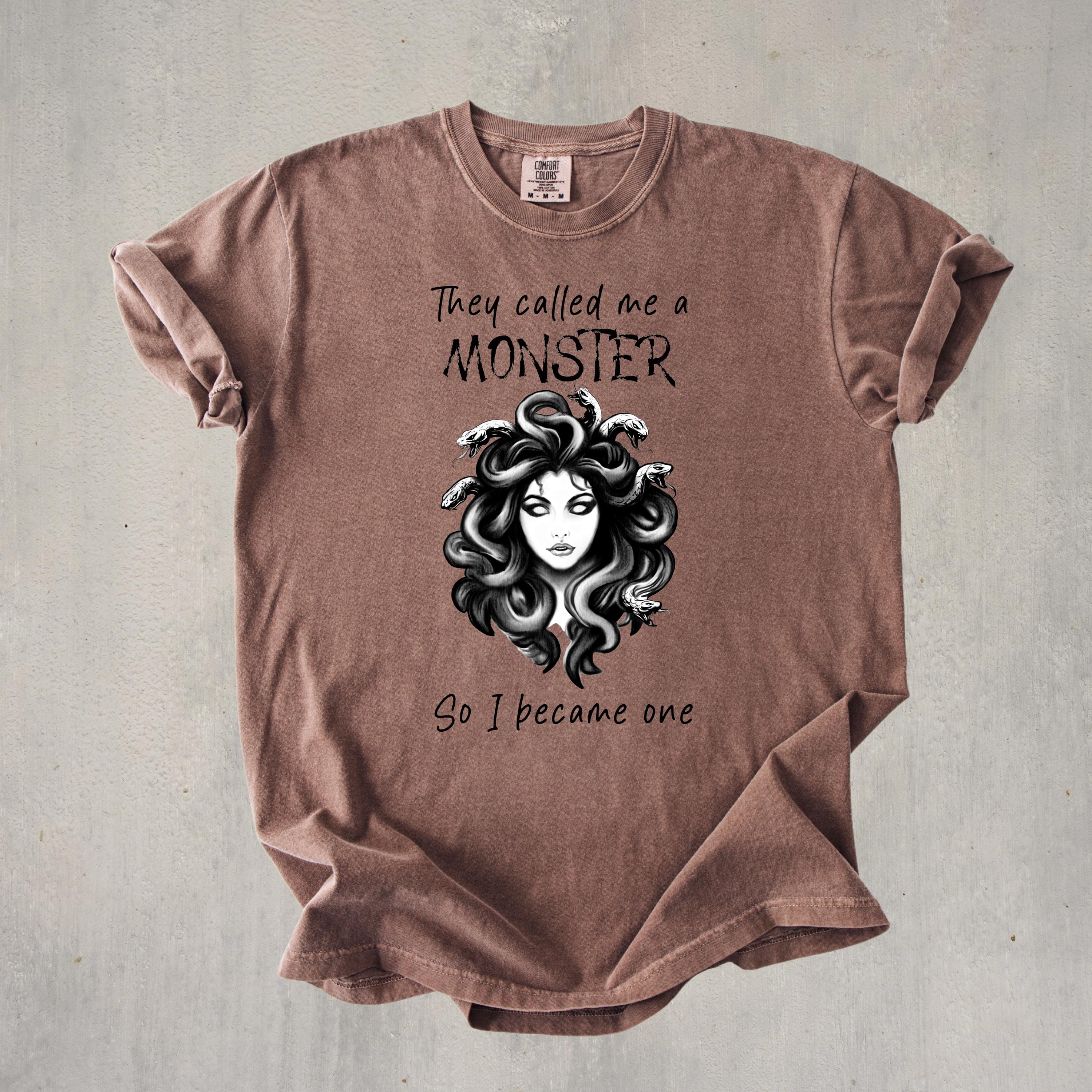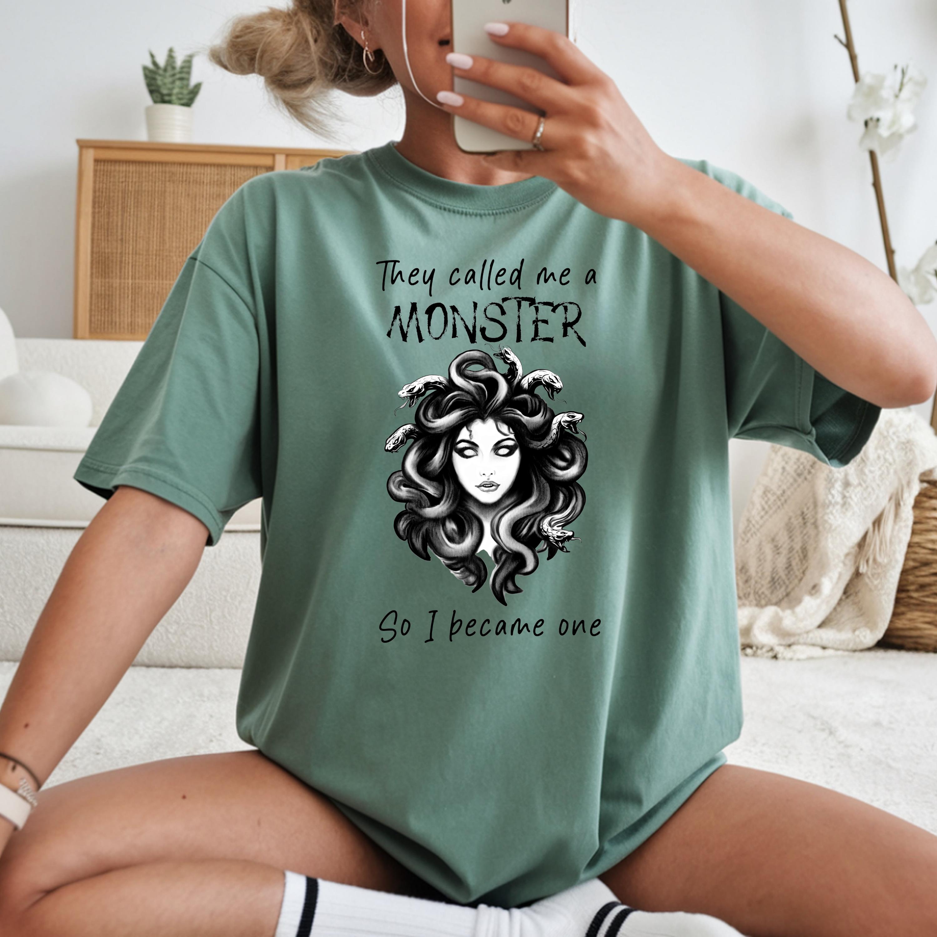 This bold Medusa Shirt features the powerful quote “They called me a monster, so I became one”, combined with a striking goddess Medusa illustration inspired by Greek mythology. Designed for women who embrace strength, transformation, and individuality, this Medusa graphic tee makes a fearless statement.