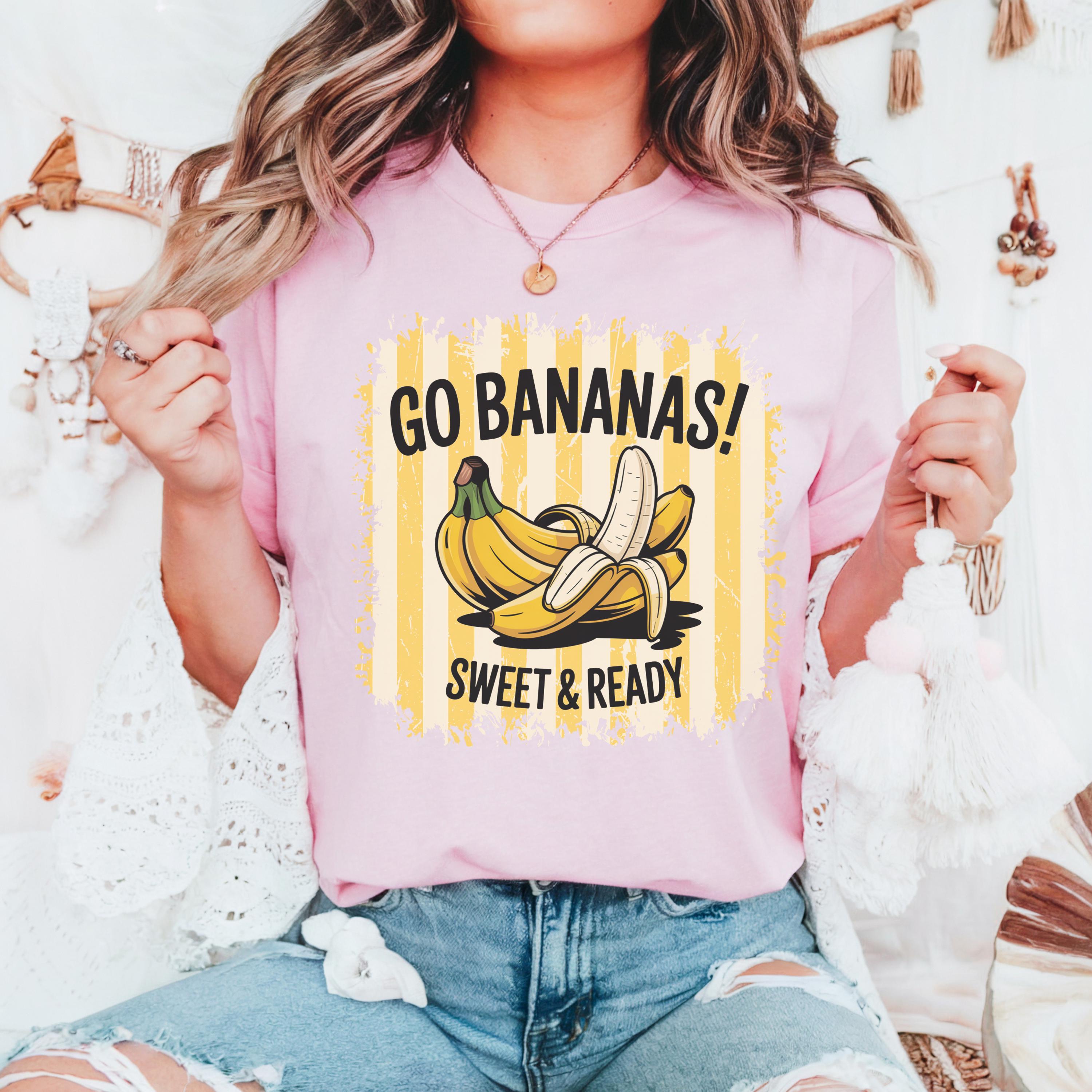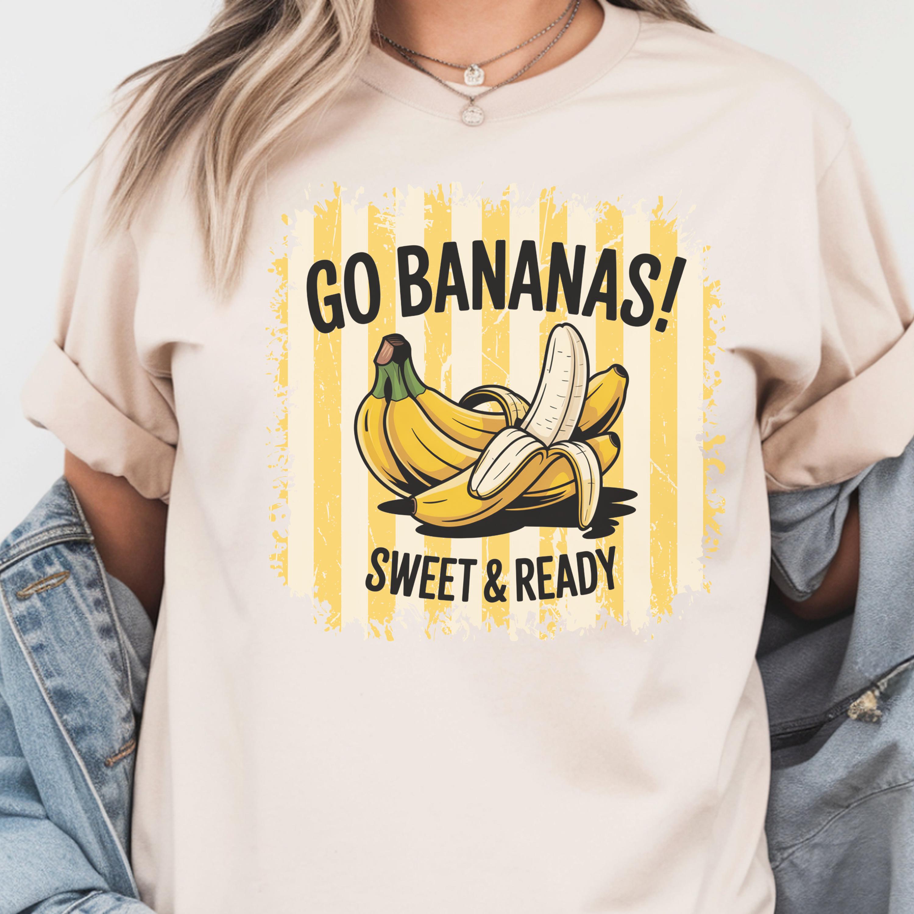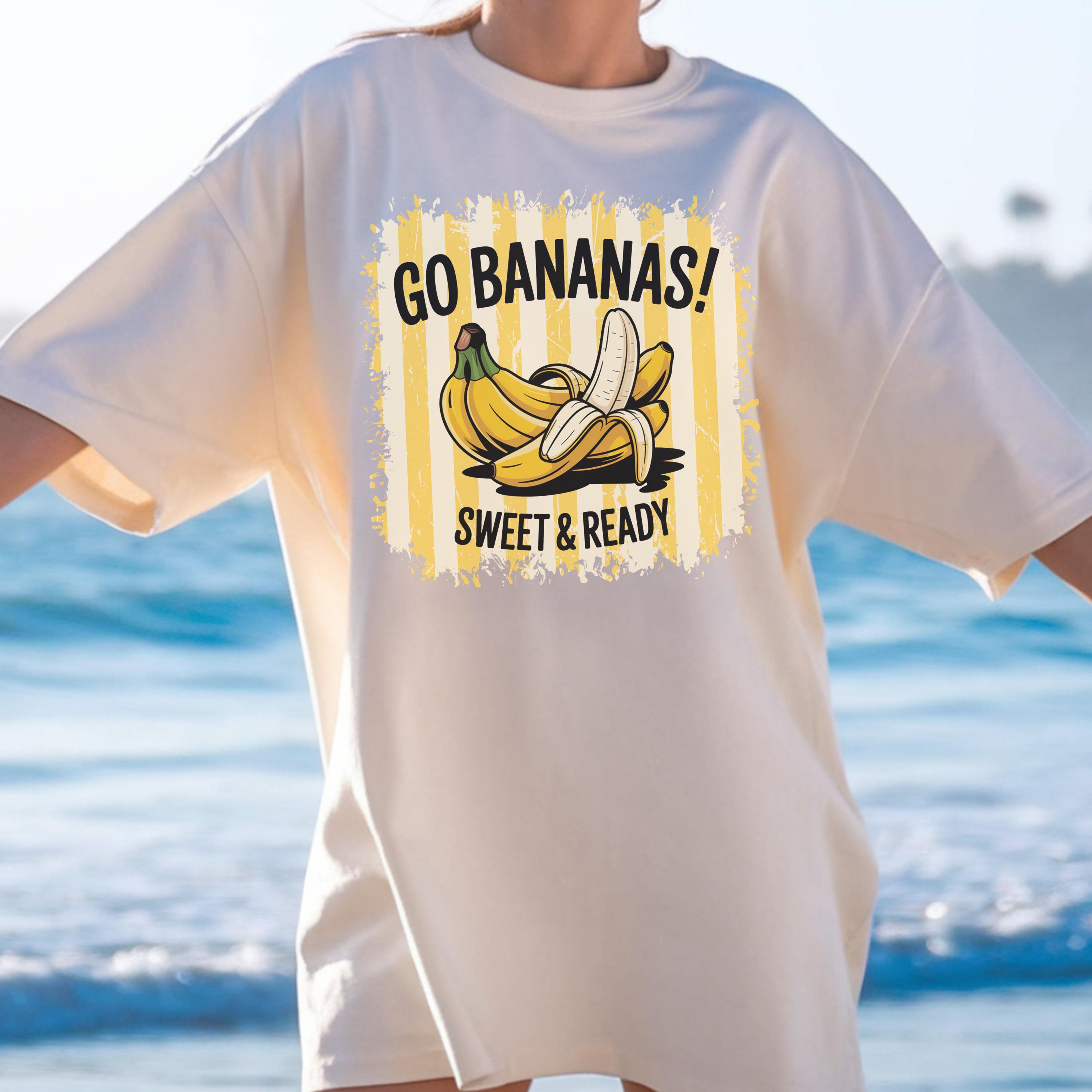 Add a fun twist to your wardrobe with this cheerful go bananas graphic tee.