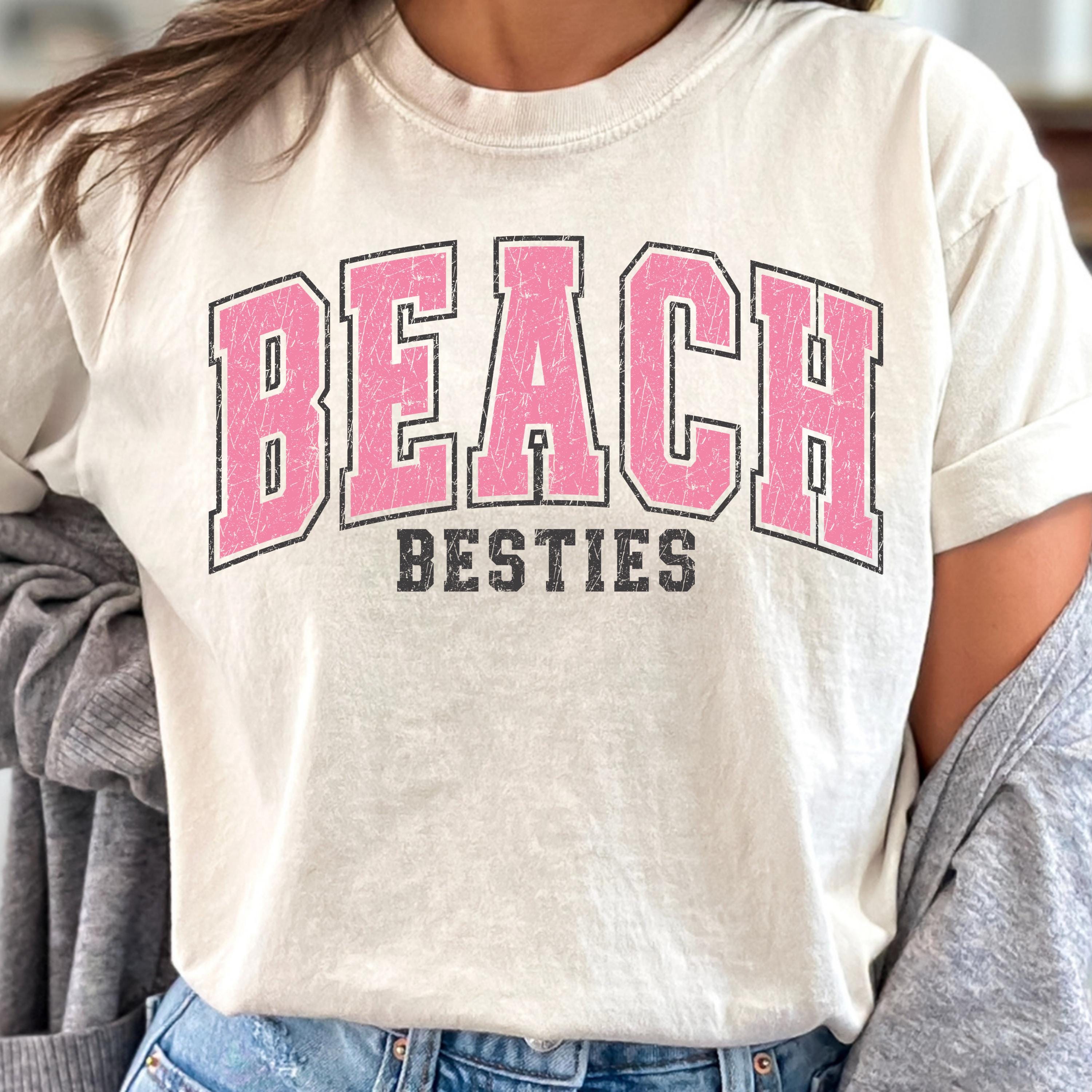 This trendy Beach Besties Shirt is the perfect choice for summer vibes, featuring bold collegiate-style typography with a soft vintage-inspired look. Designed for best friends who love the beach, this cute matching friend tee is ideal for vacations, girls trips, and sunny day adventures.