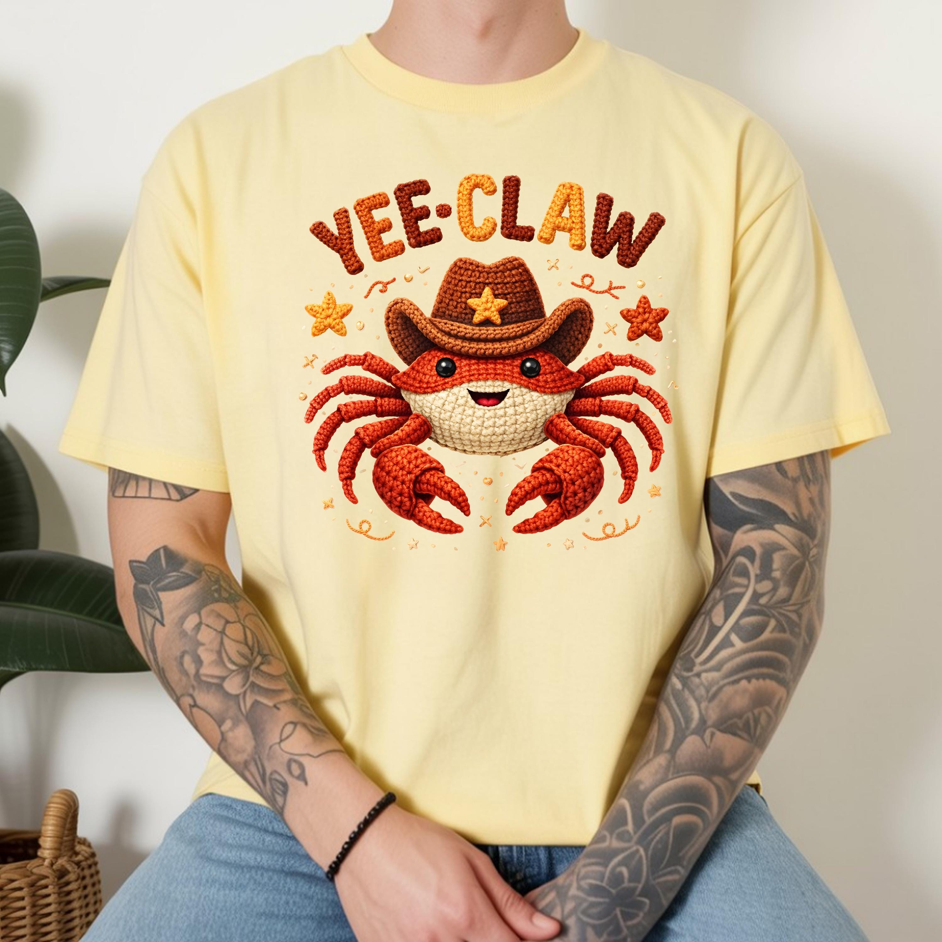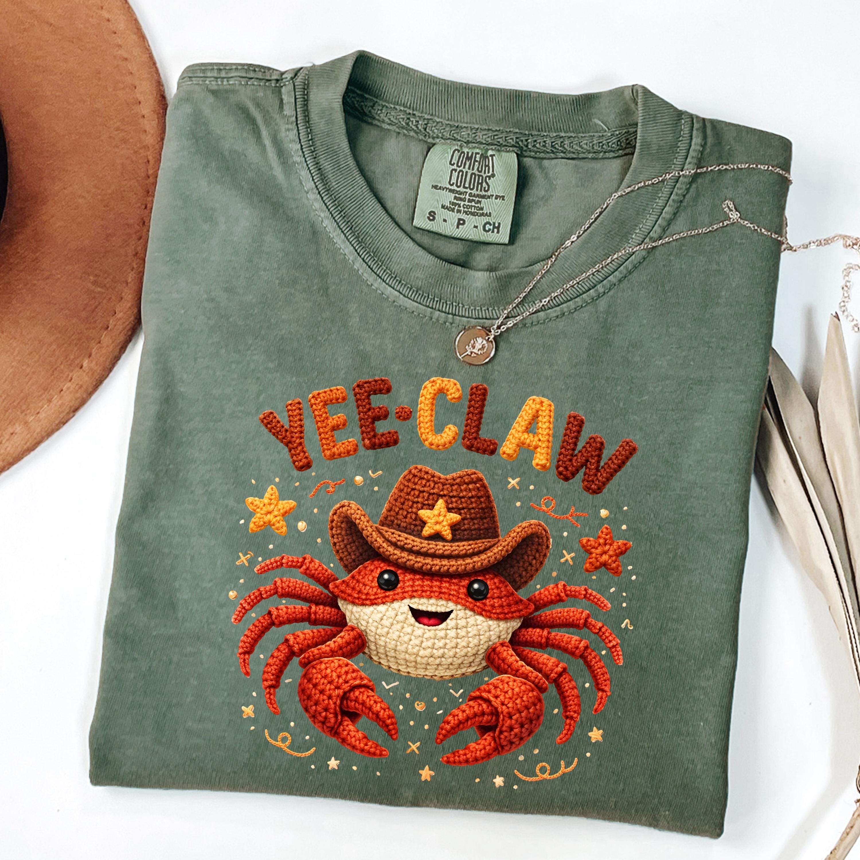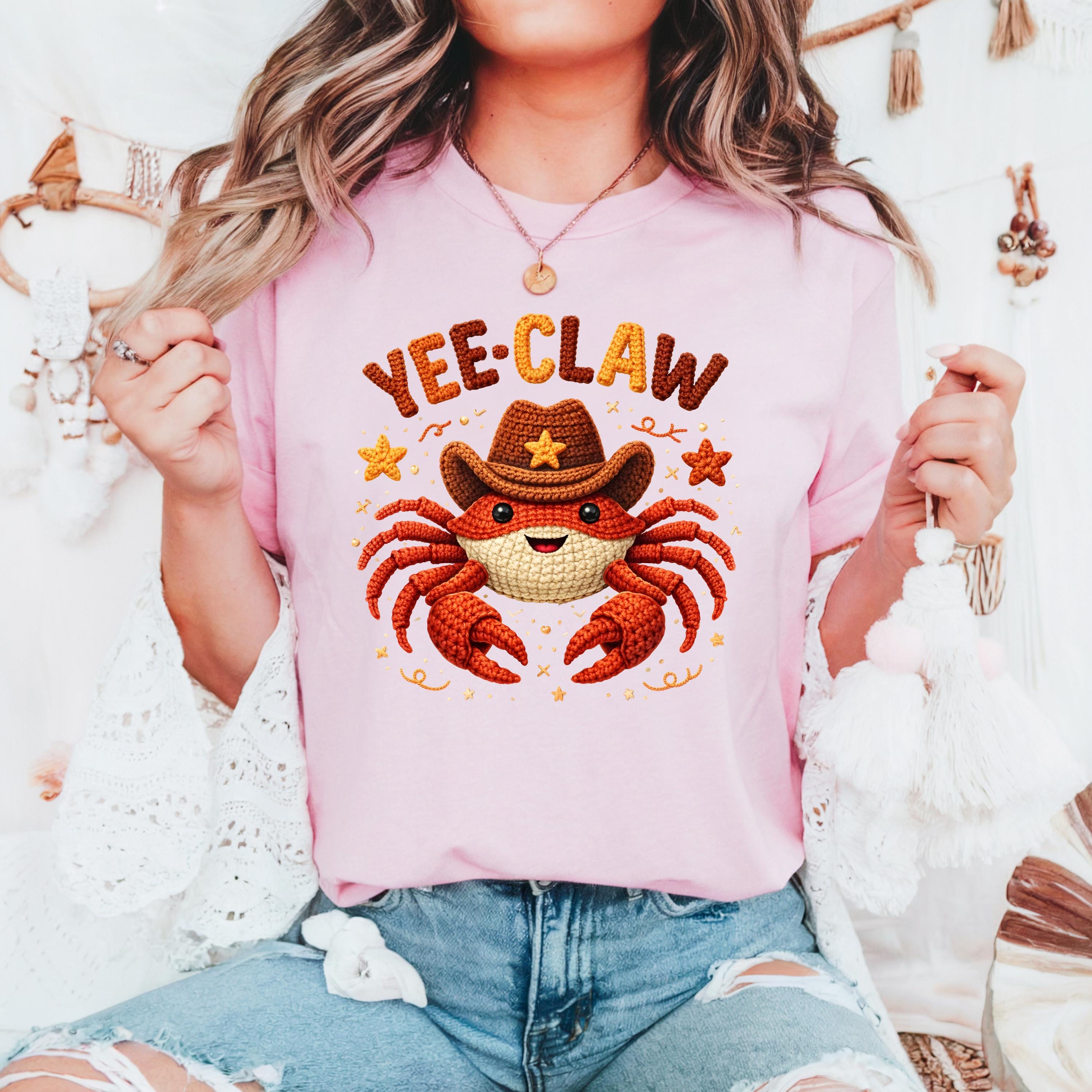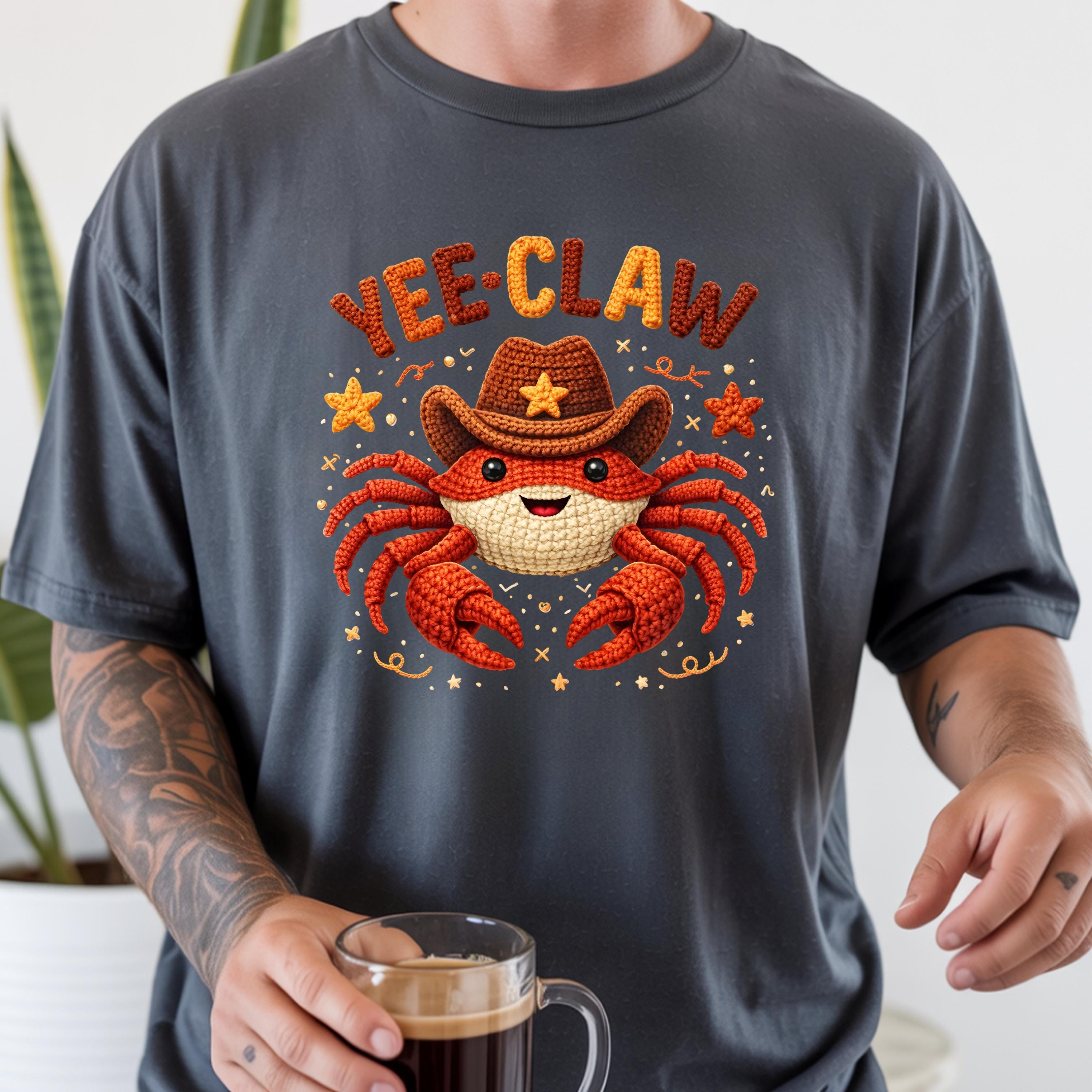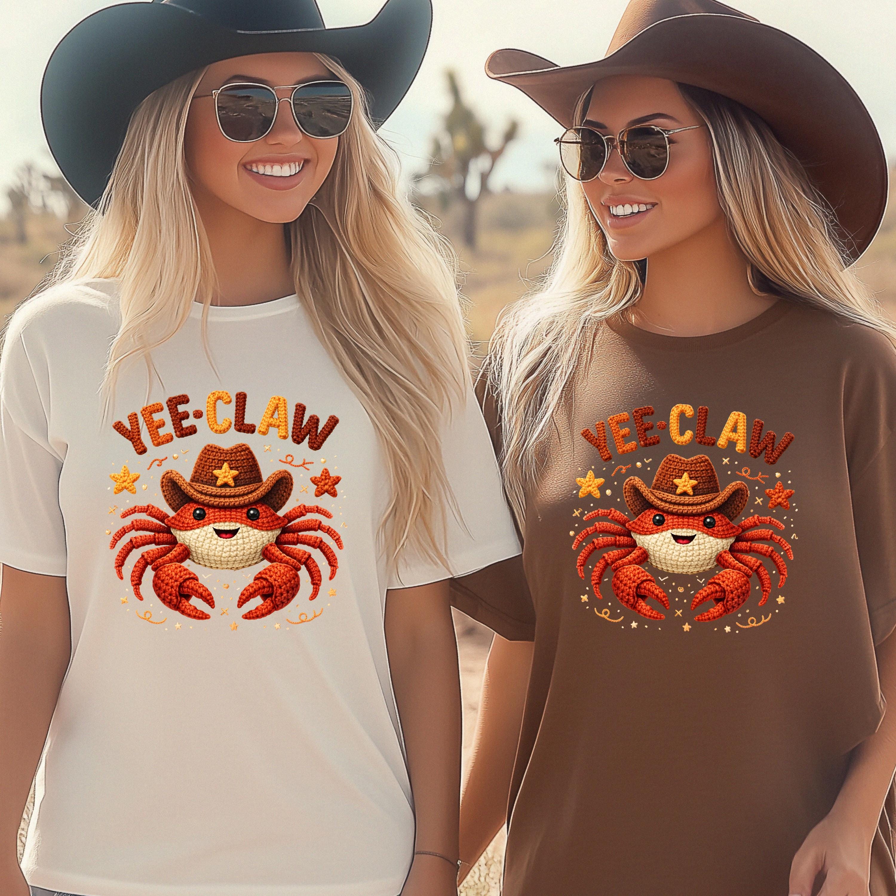 If you're searching for a yee claw shirt, cowboy crab tee, faux crochet shirt, funny western graphic tee, or cute matching shirt, this design offers a trendy and eye-catching option.
