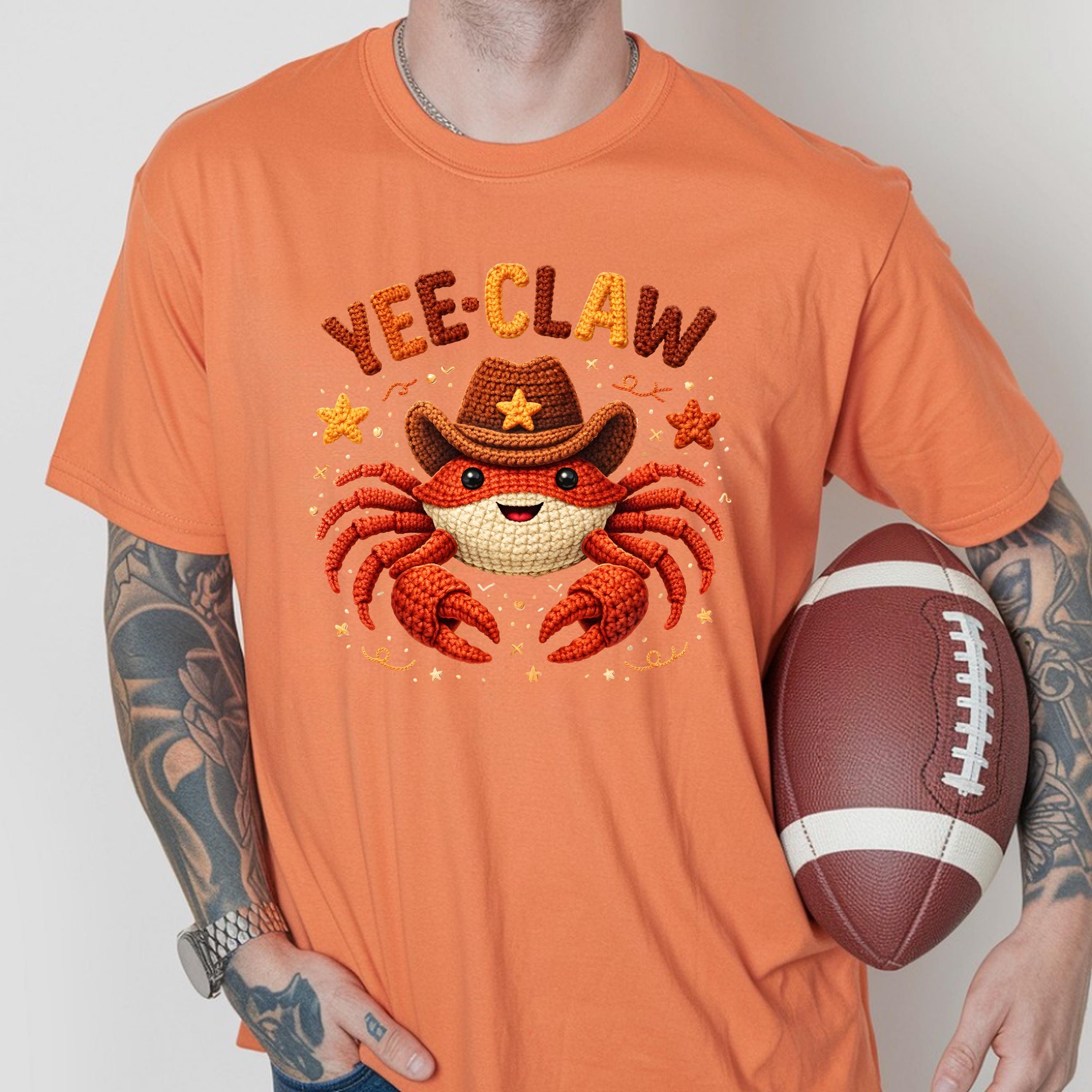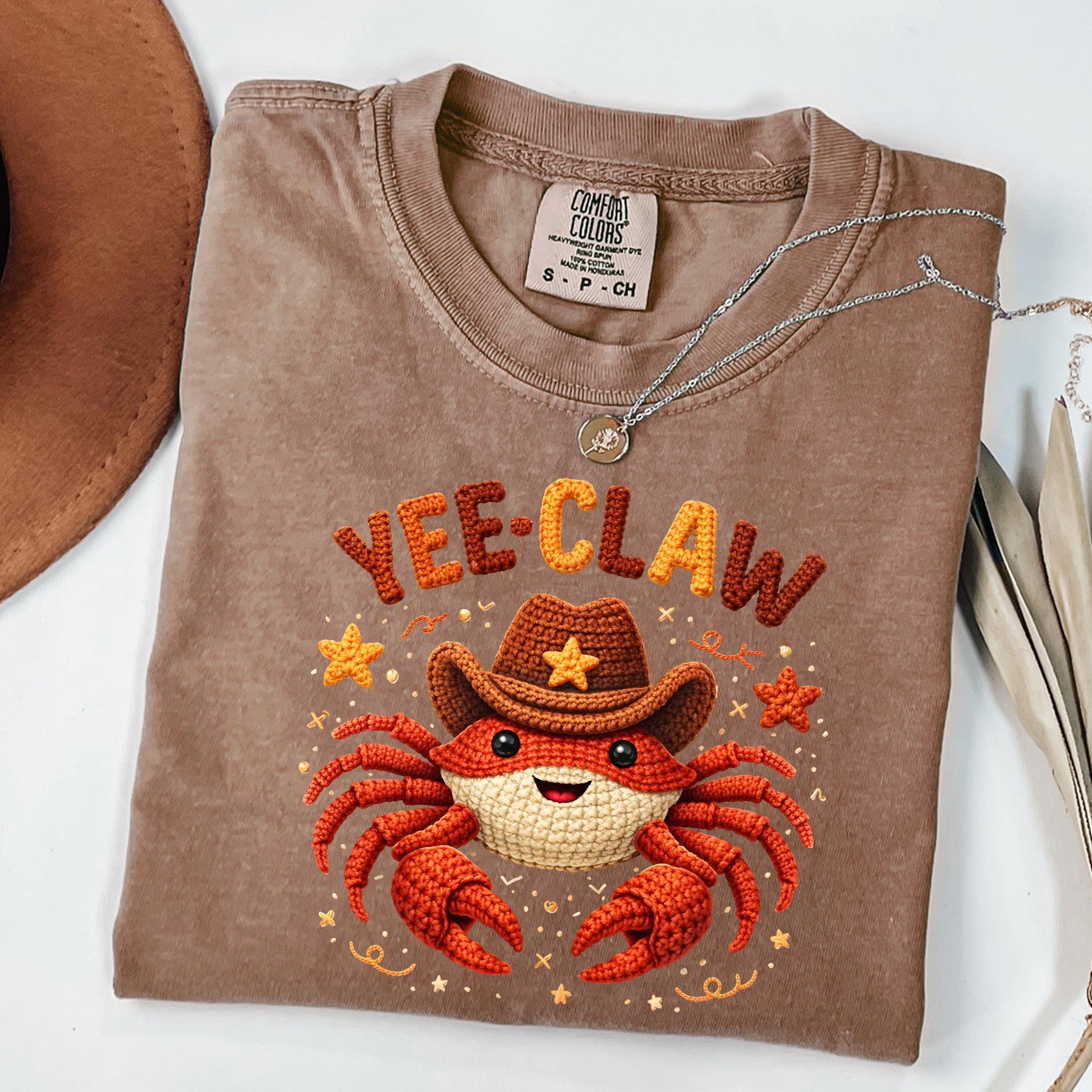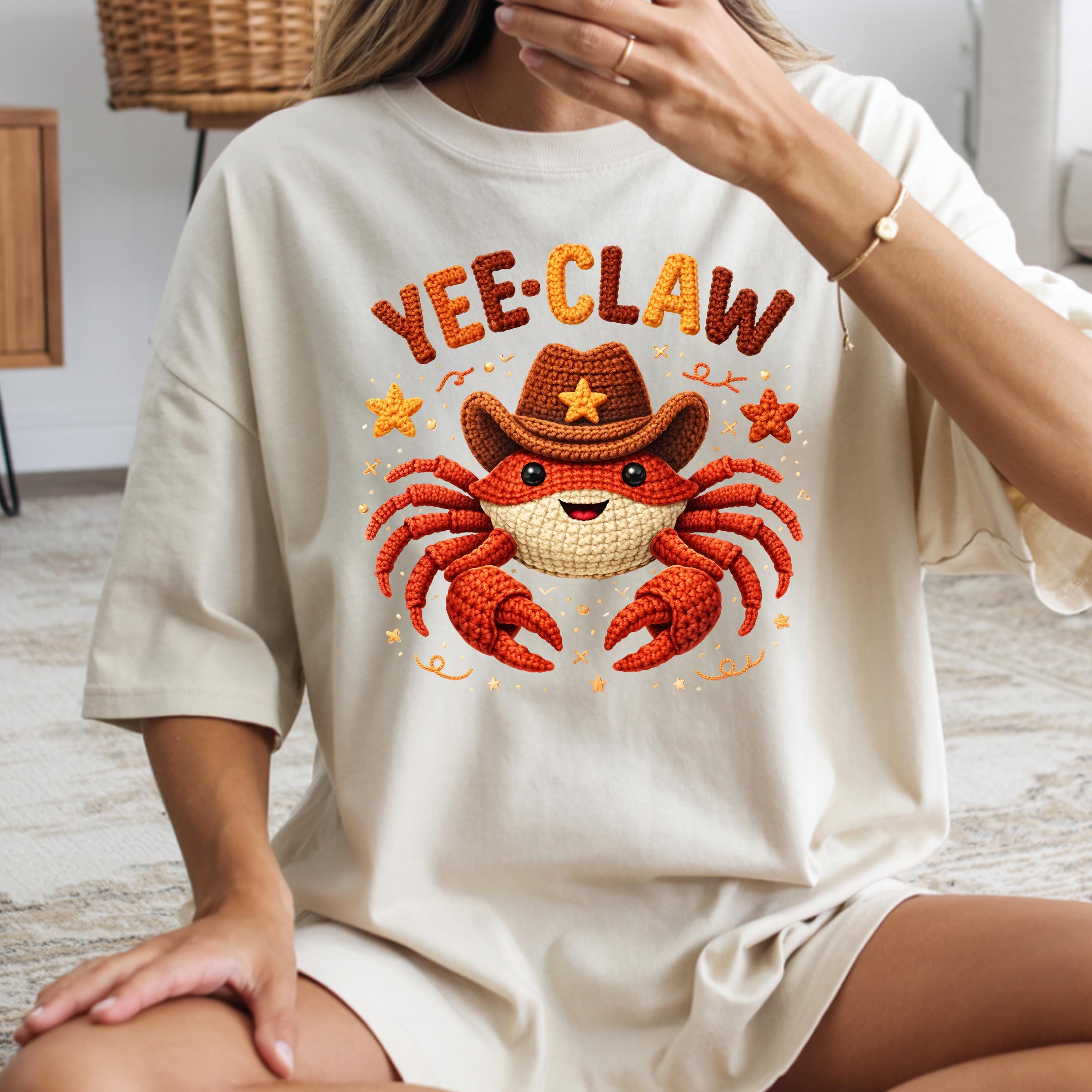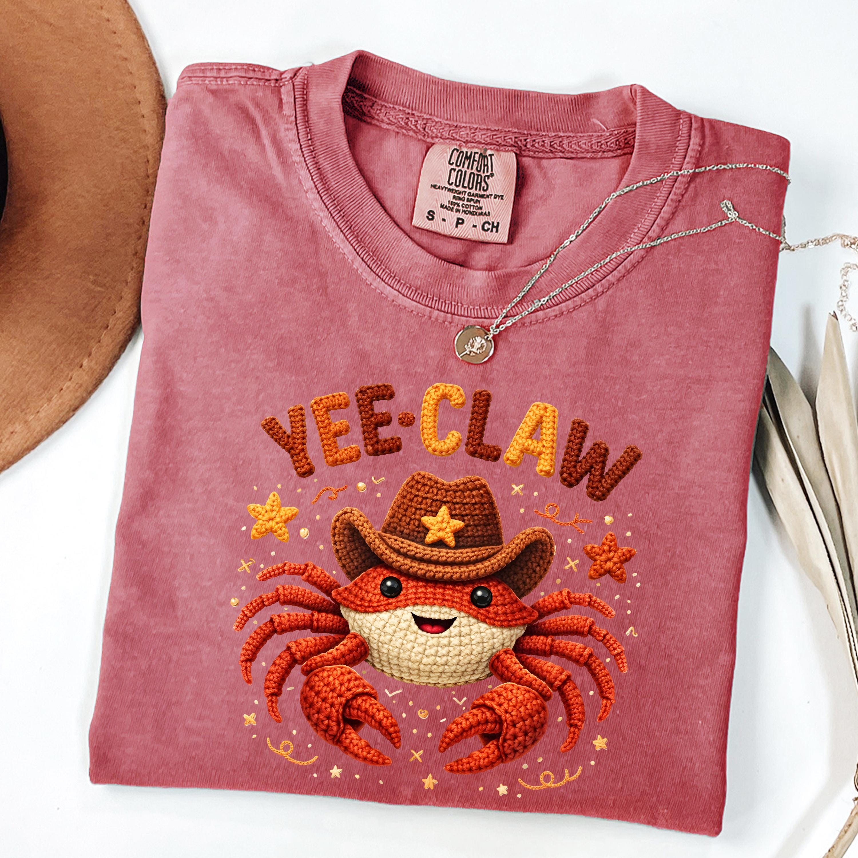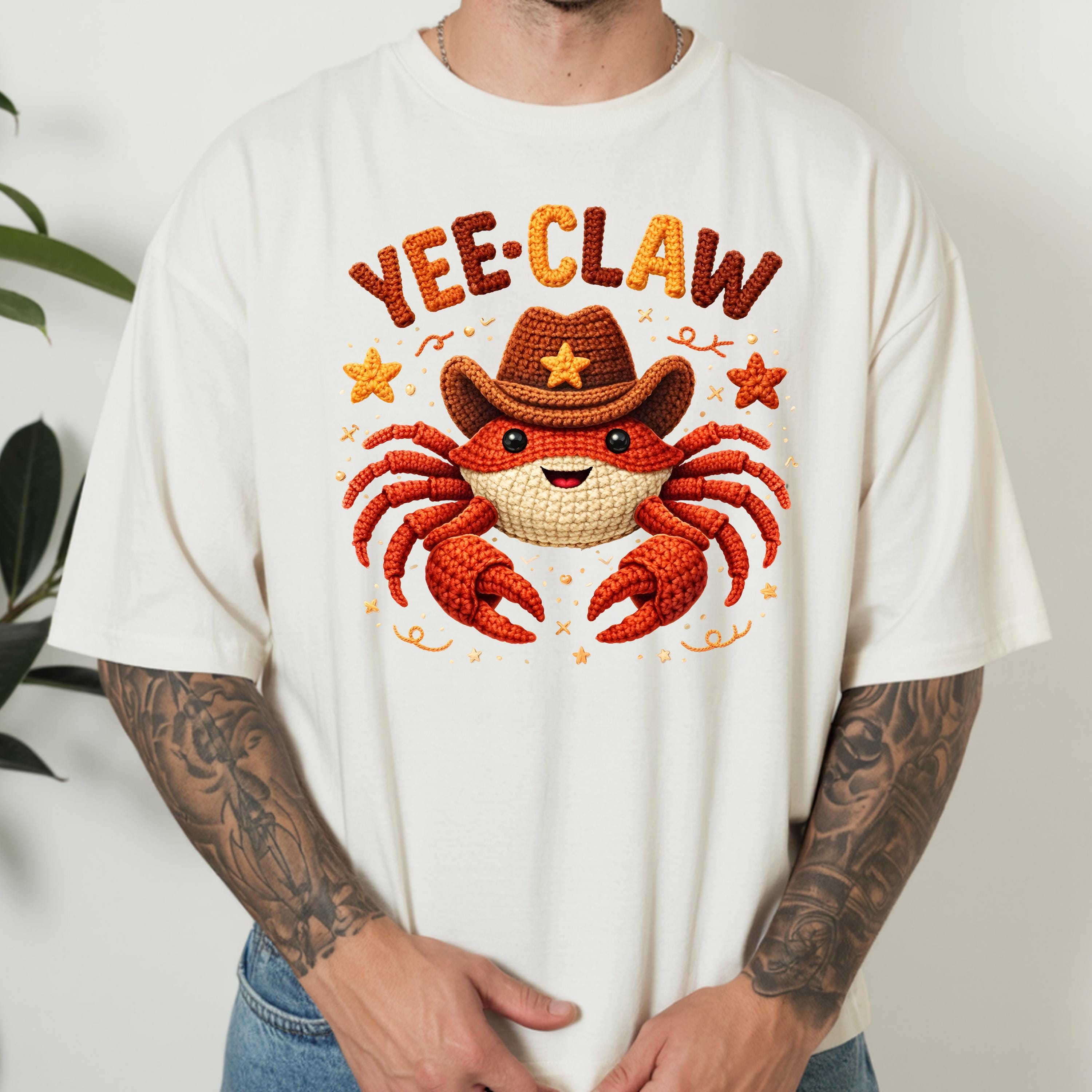 If you're searching for a yee claw shirt, cowboy crab tee, faux crochet shirt, funny western graphic tee, or cute matching shirt, this design offers a trendy and eye-catching option.