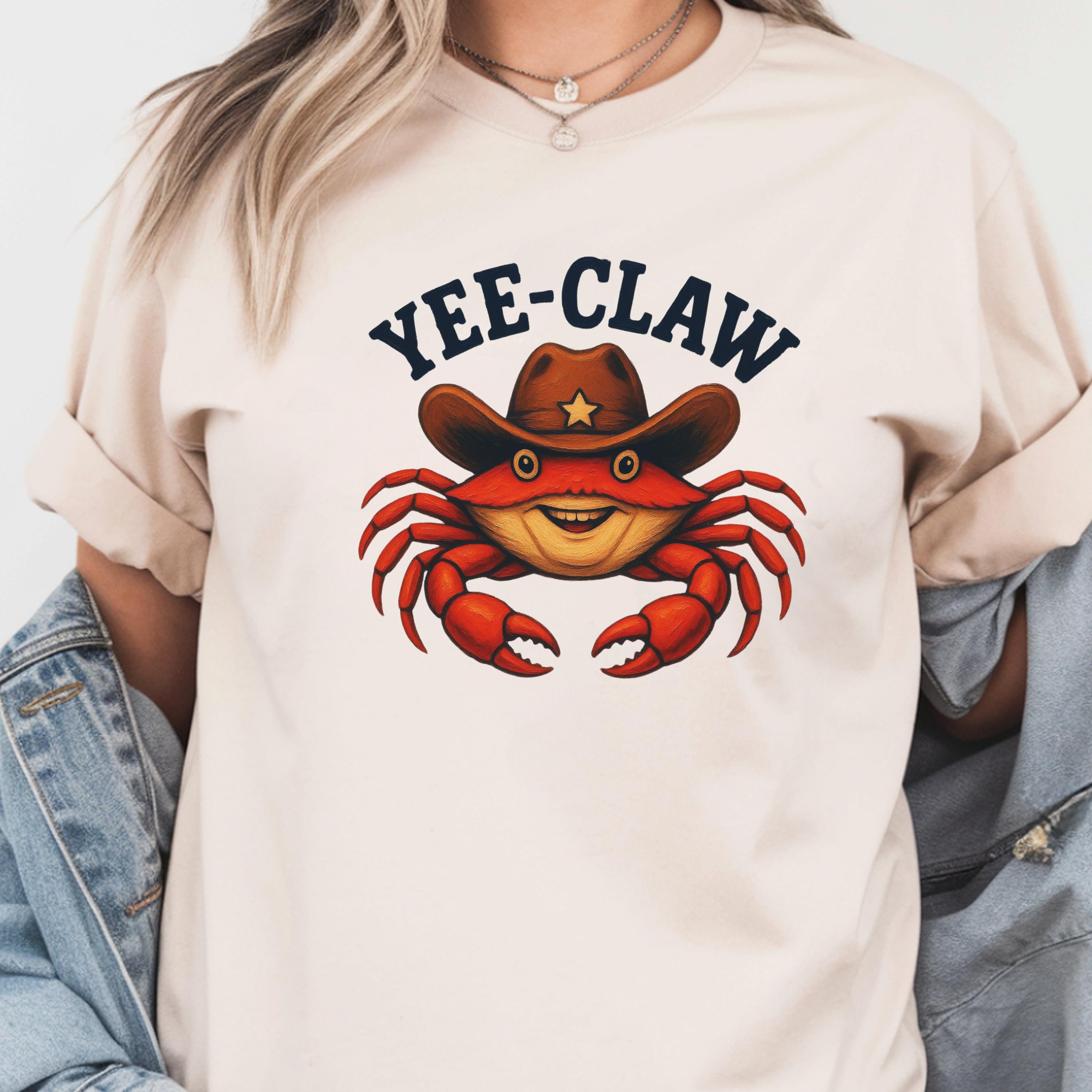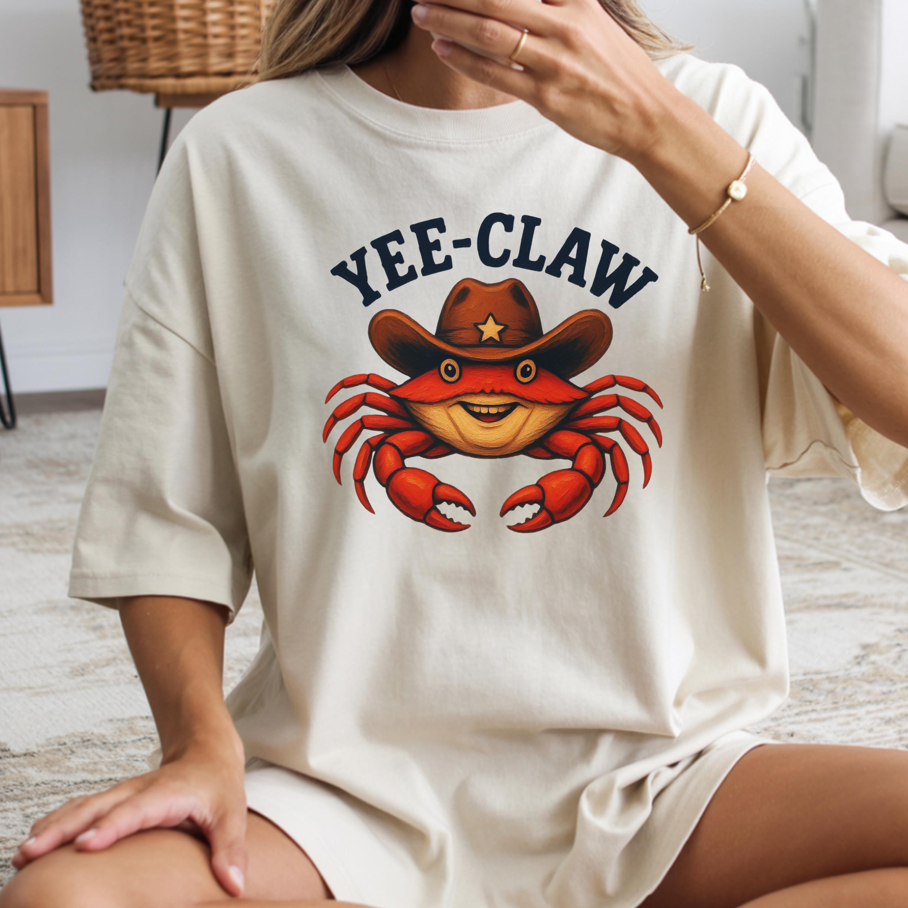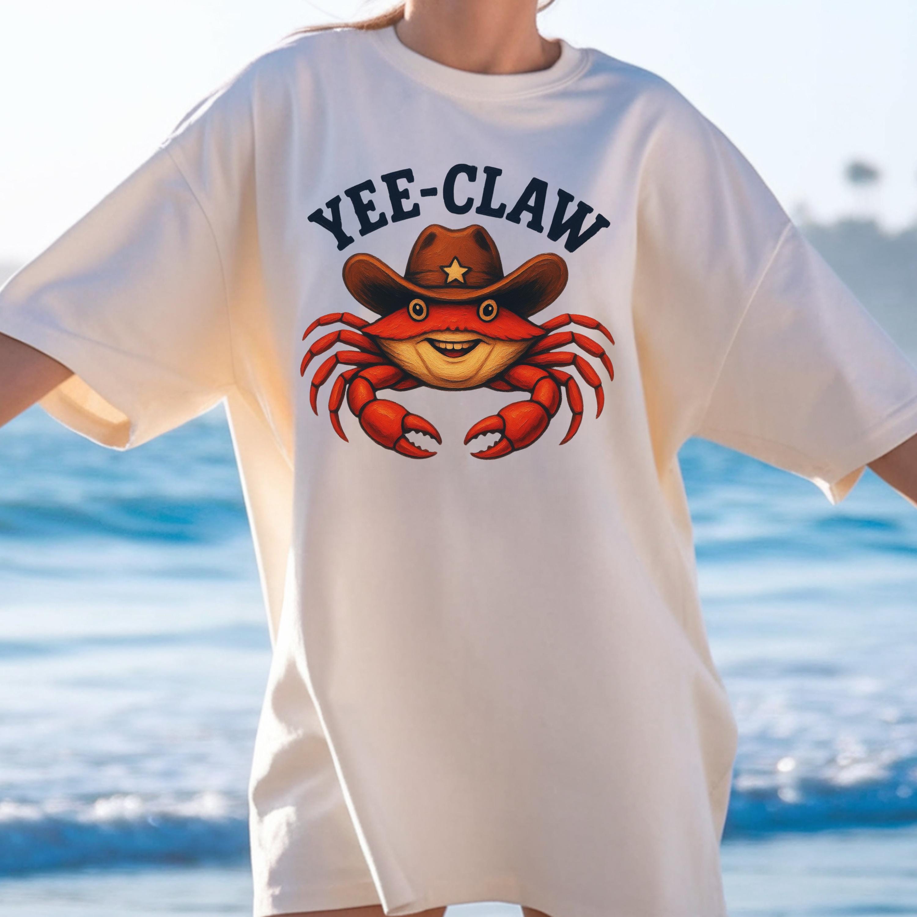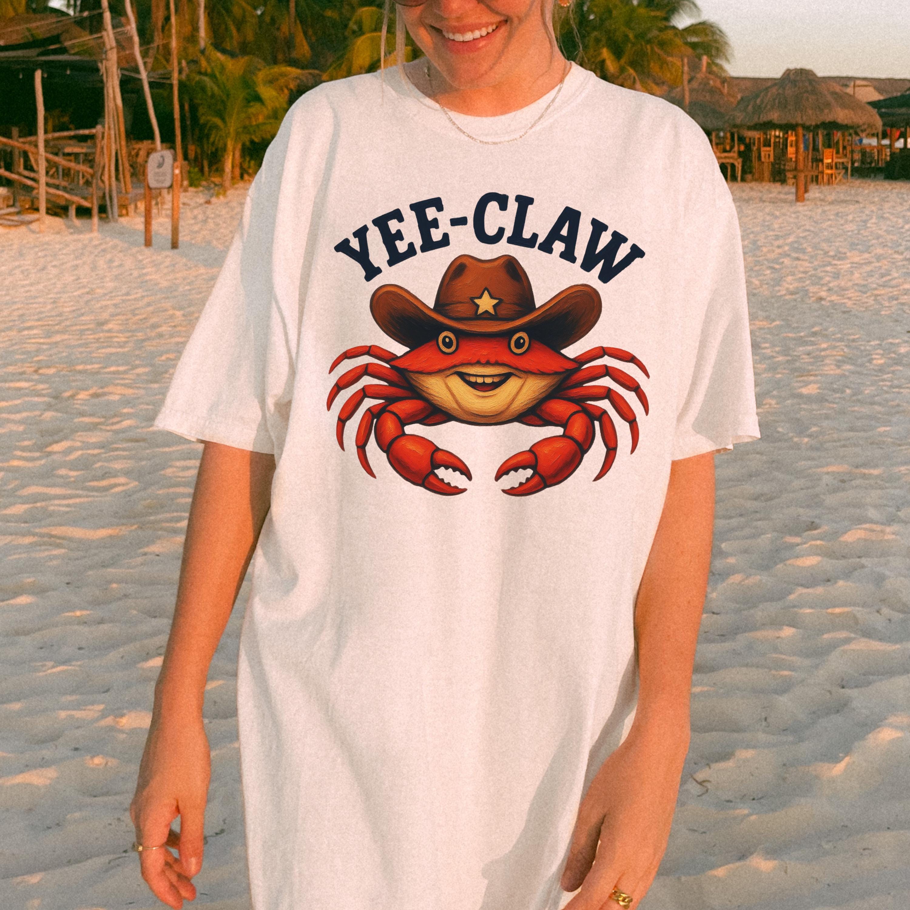 This Yee Claw Crab Shirt brings together western cowboy style and playful coastal humor in one fun graphic tee. Featuring a smiling crab wearing a cowboy hat with bold “Yee-Claw” lettering, this design is perfect for anyone who loves funny shirts, country style, beach vibes, and unique summer outfits.