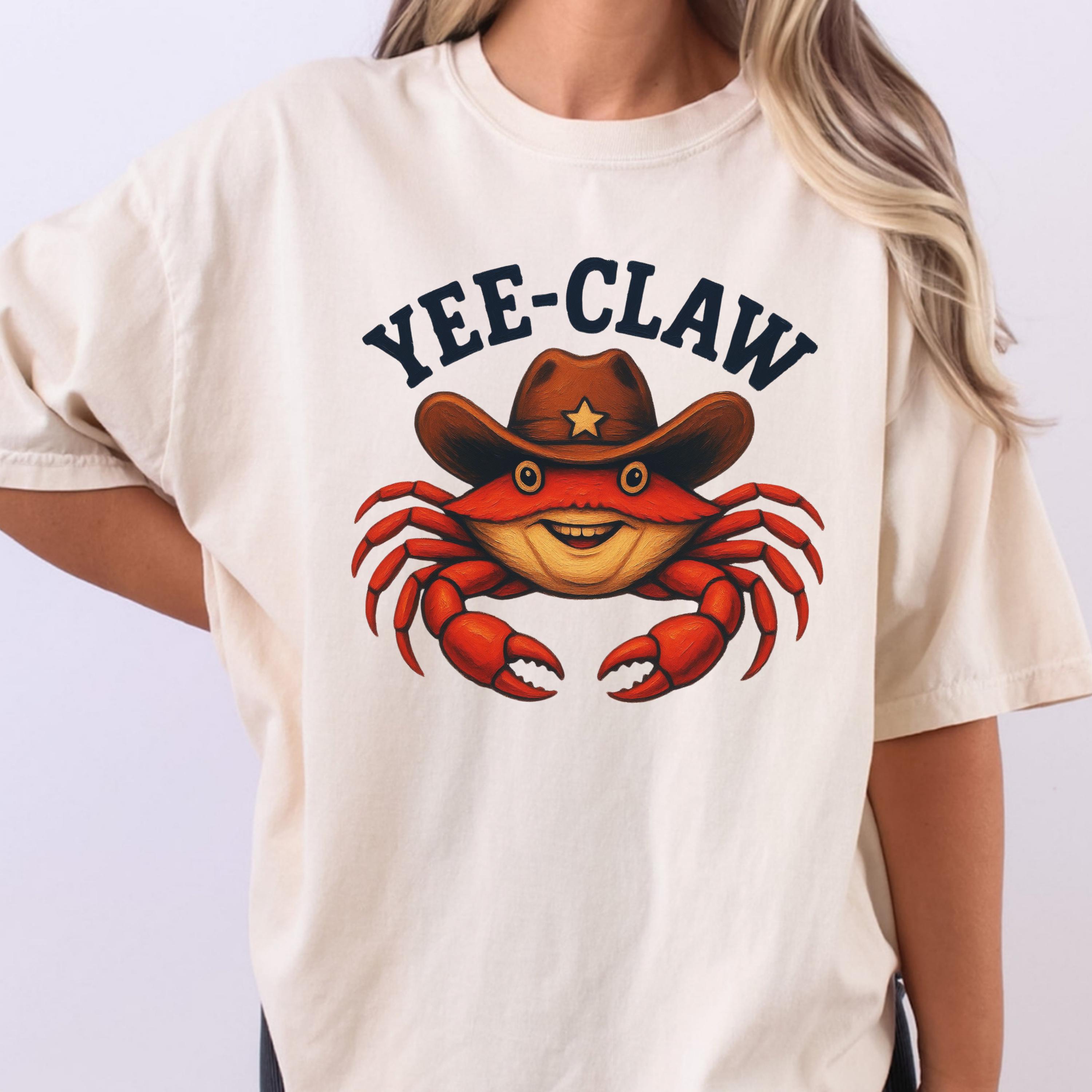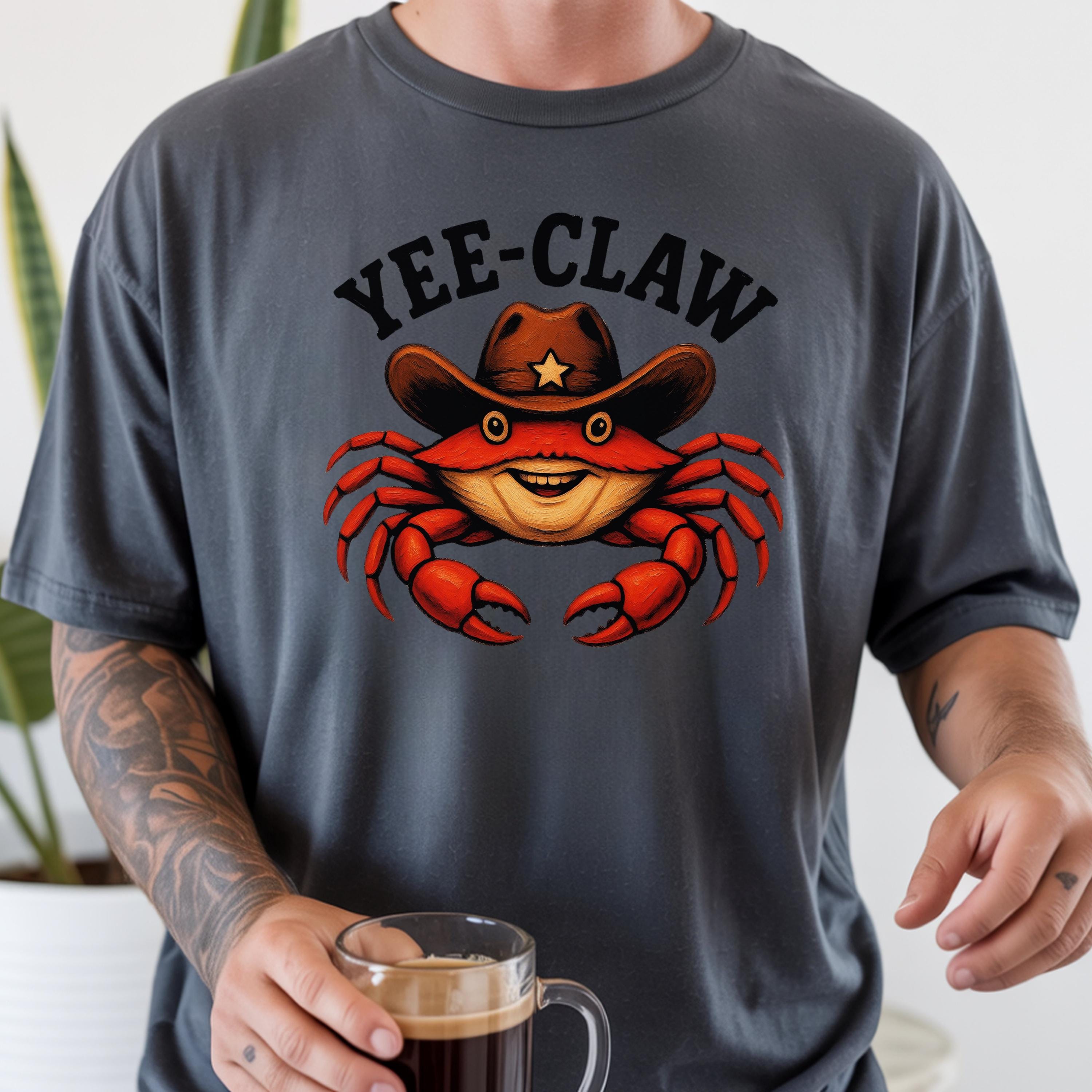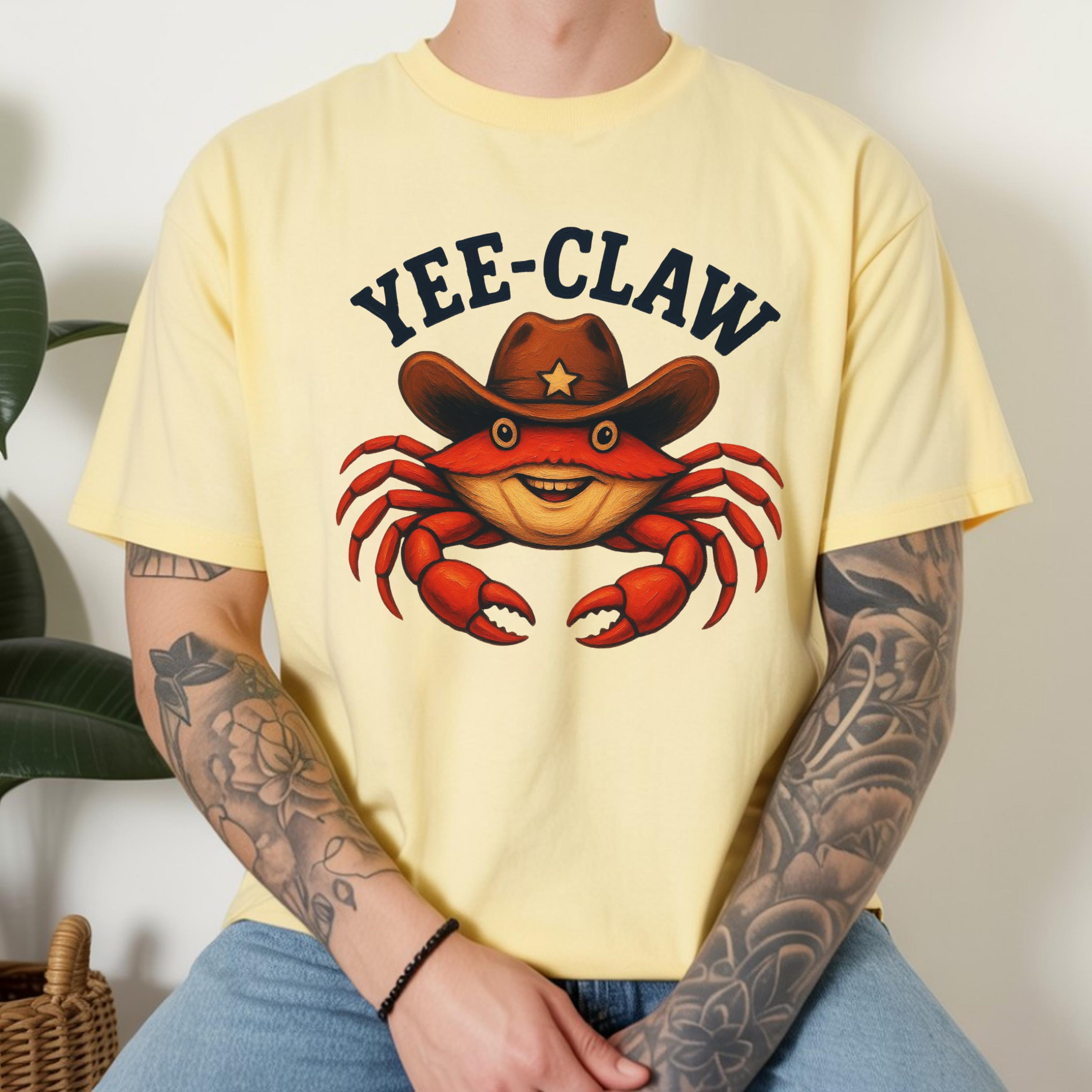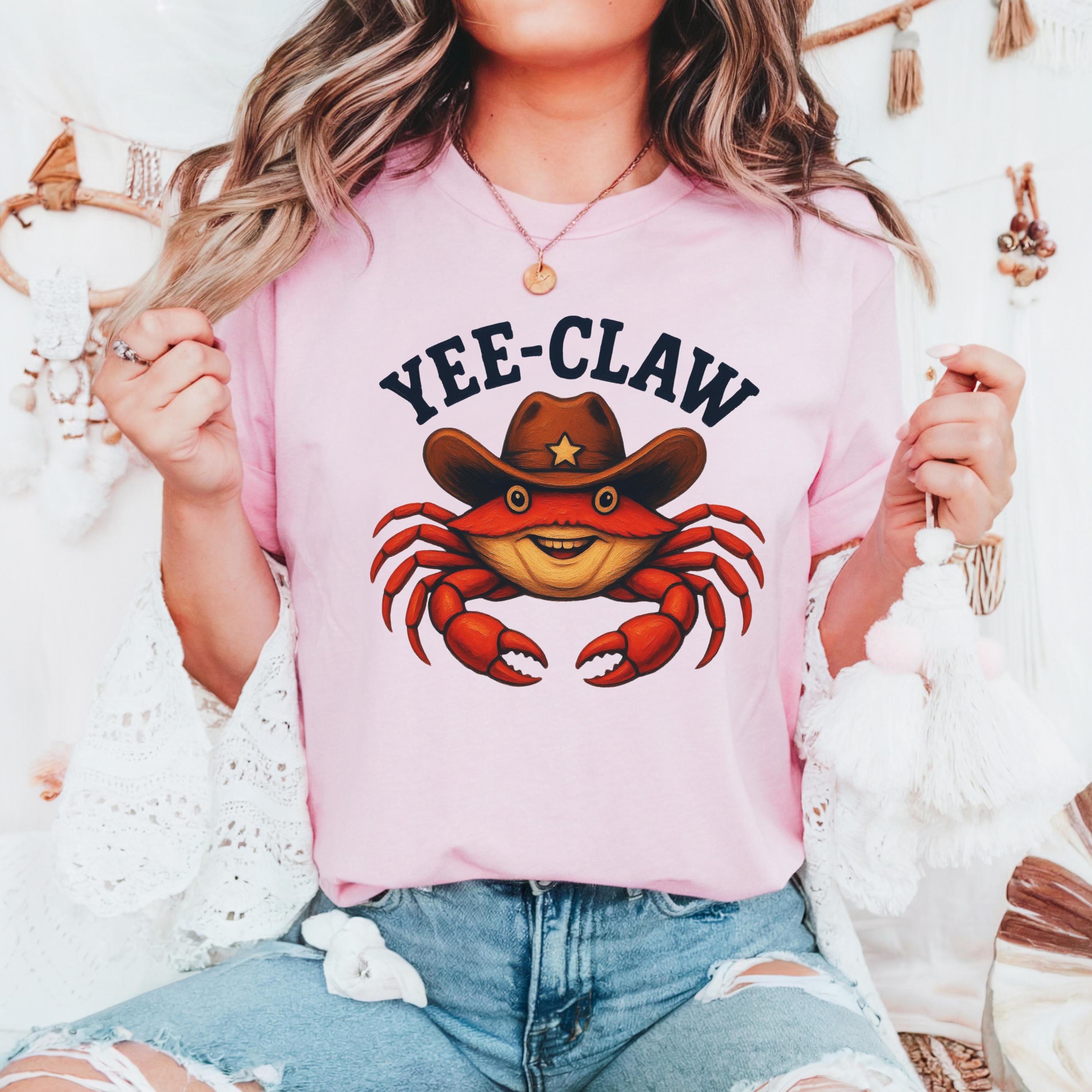 This Yee Claw Crab Shirt brings together western cowboy style and playful coastal humor in one fun graphic tee. Featuring a smiling crab wearing a cowboy hat with bold “Yee-Claw” lettering, this design is perfect for anyone who loves funny shirts, country style, beach vibes, and unique summer outfits.