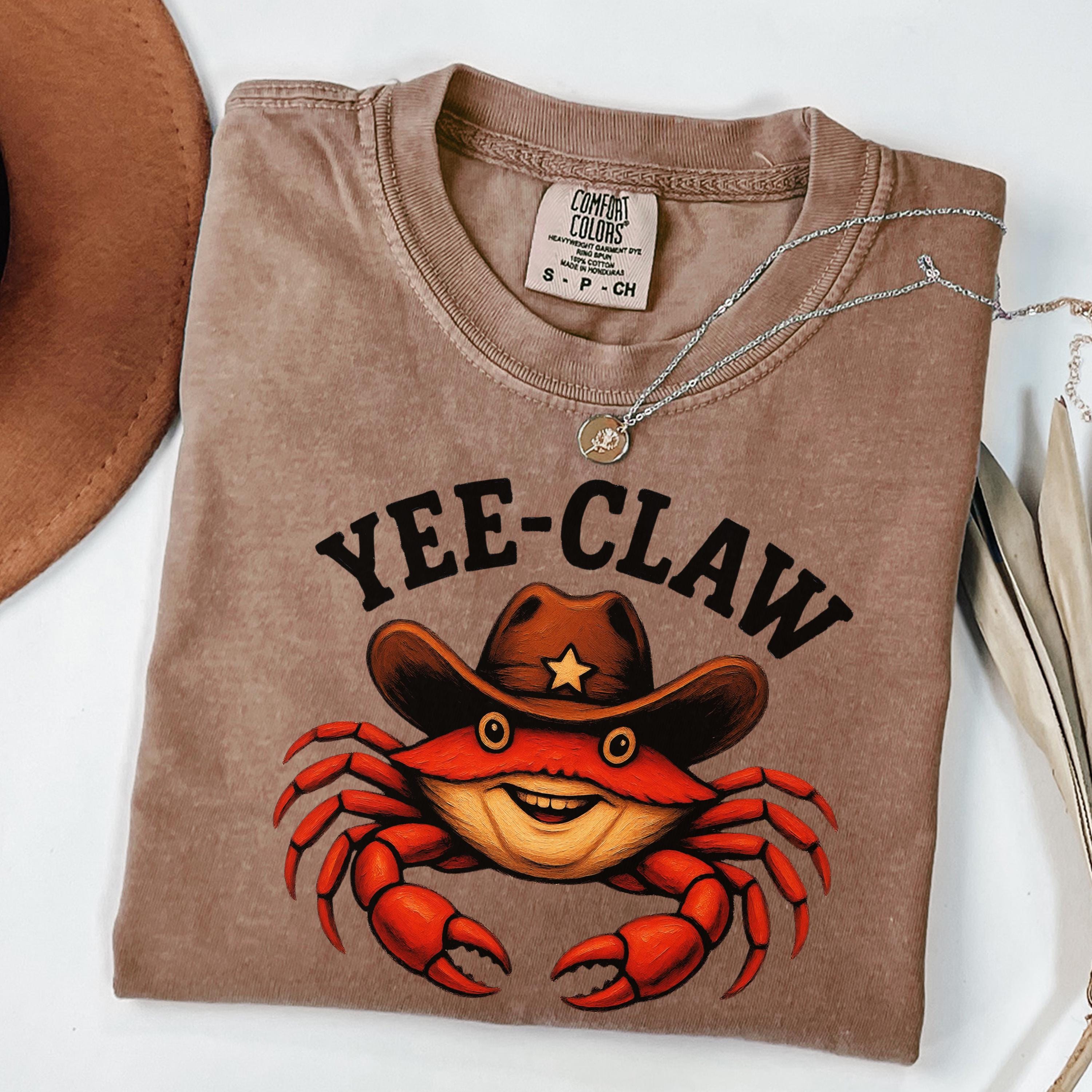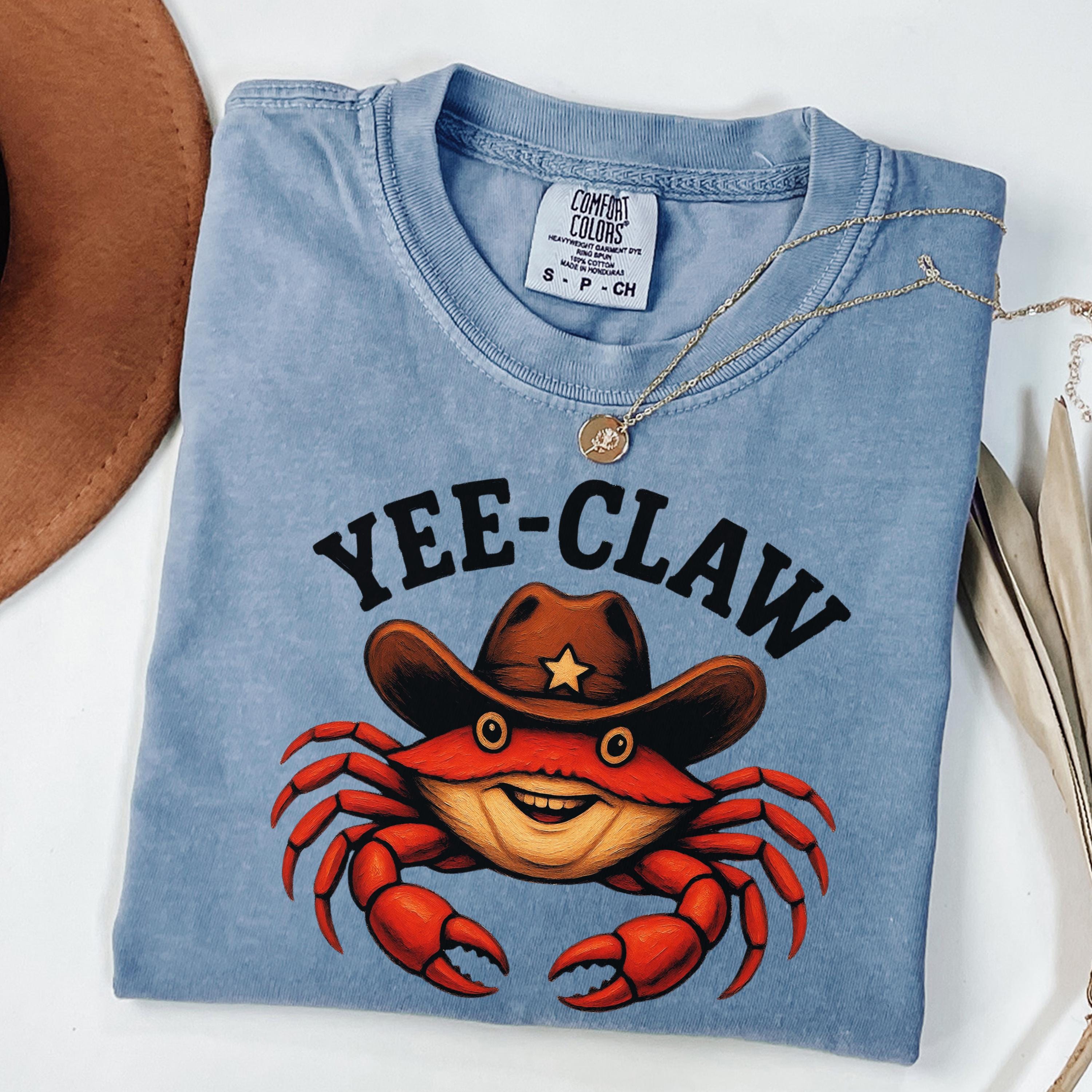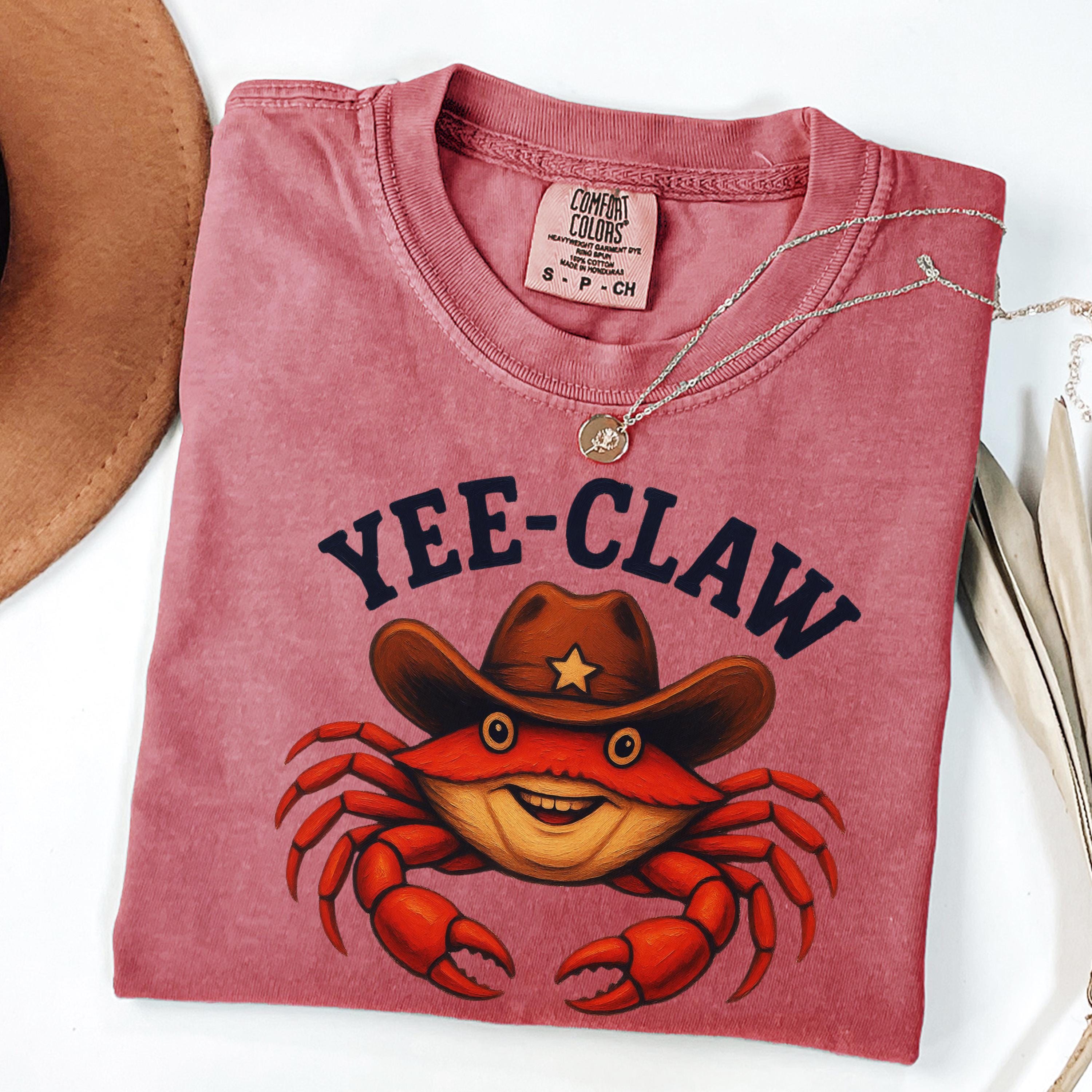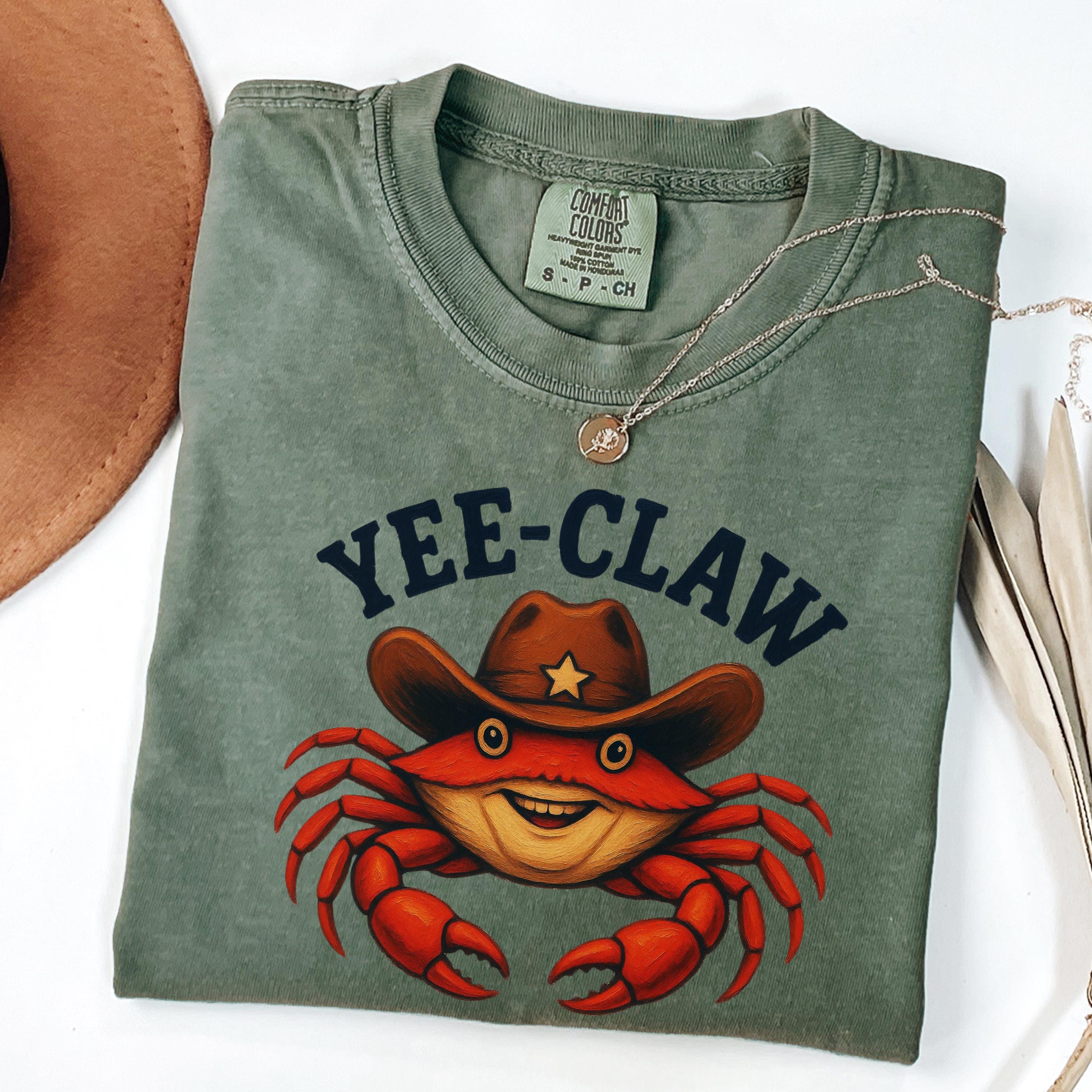 This Yee Claw Crab Shirt brings together western cowboy style and playful coastal humor in one fun graphic tee. Featuring a smiling crab wearing a cowboy hat with bold “Yee-Claw” lettering, this design is perfect for anyone who loves funny shirts, country style, beach vibes, and unique summer outfits.
