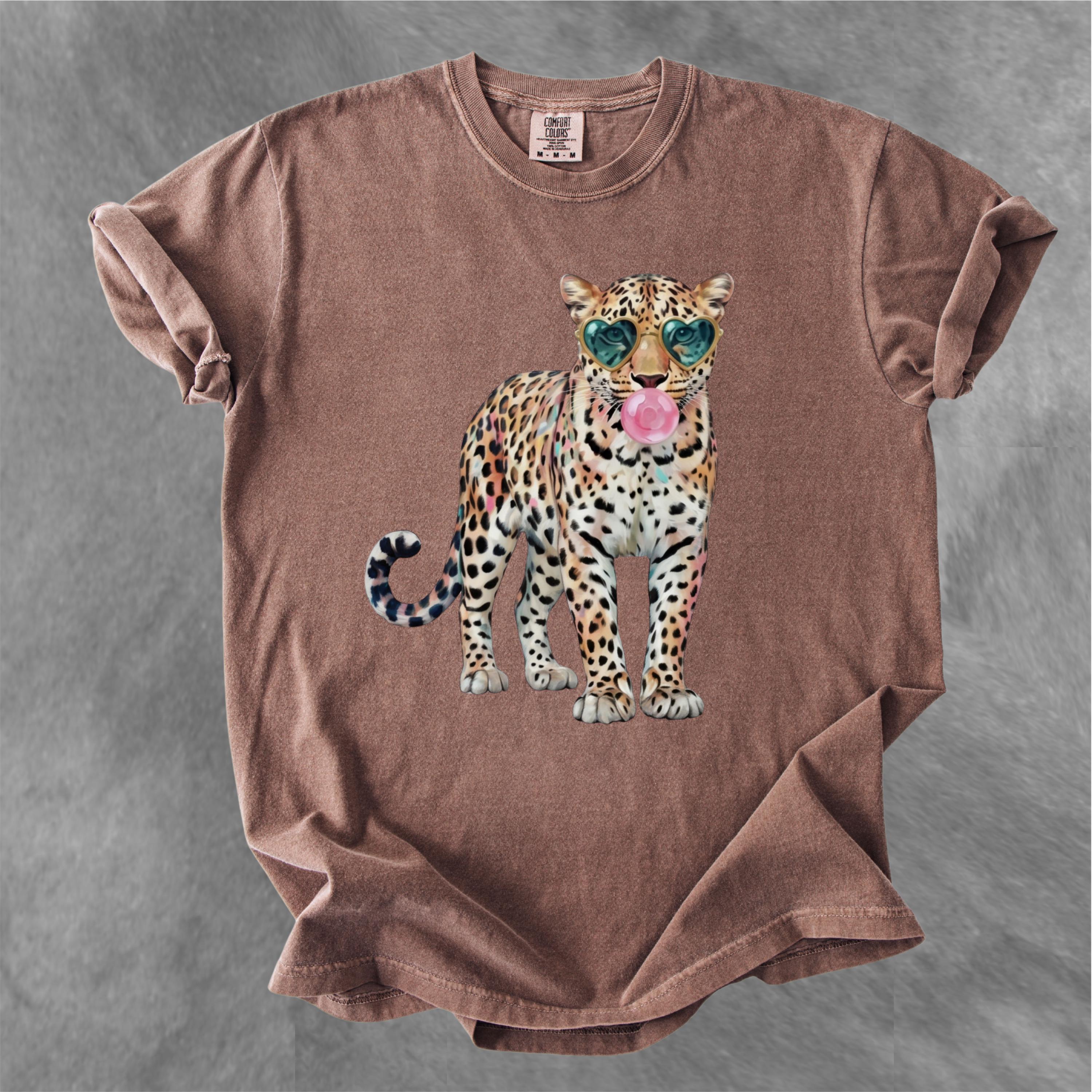 Printed on a premium comfort colors tee, it offers a soft, vintage-washed feel with a relaxed fit ideal for everyday wear. The mix of fierce leopard vibes and cute bubblegum detail creates a unique balance between edgy and fun, making it highly shareable and attention-grabbing.