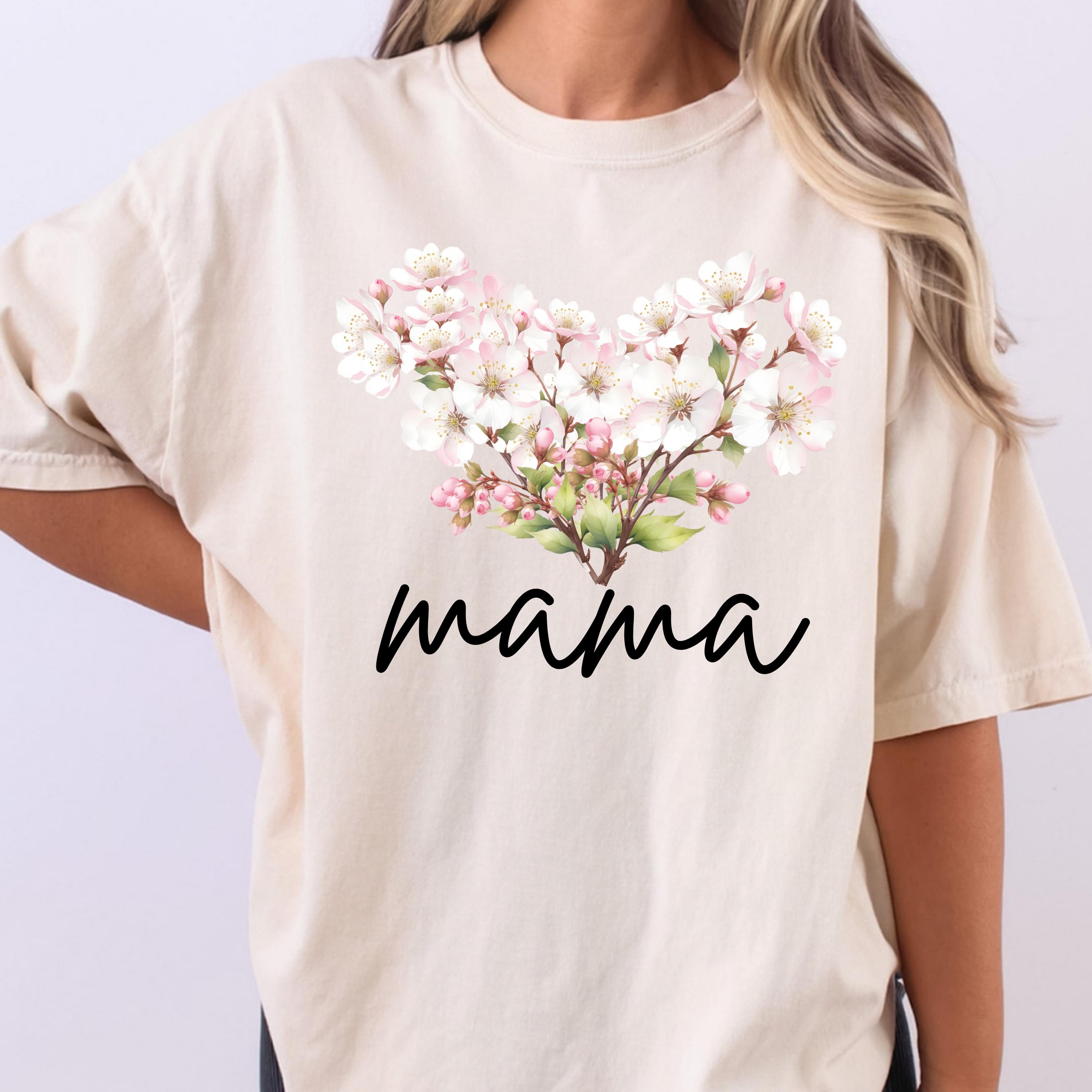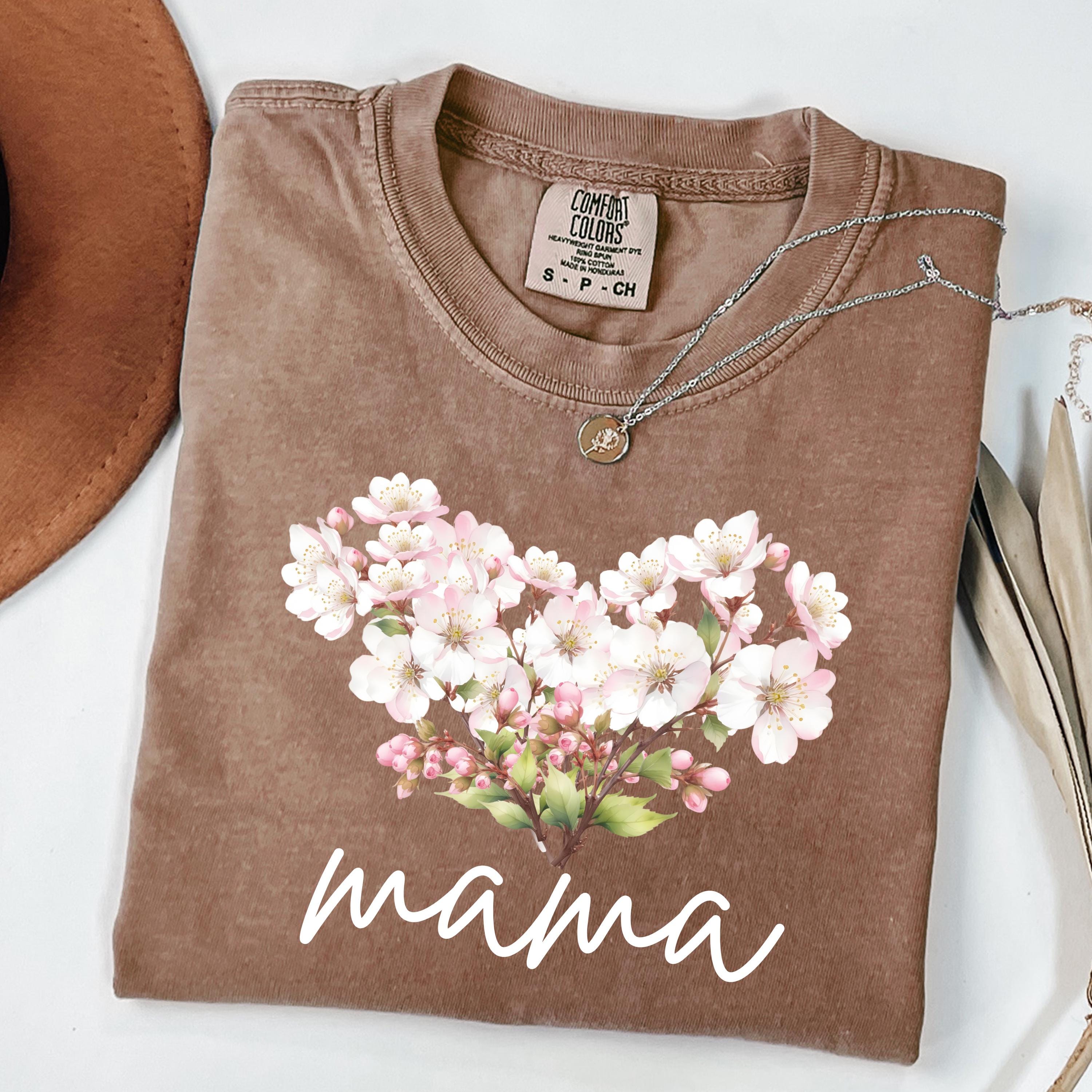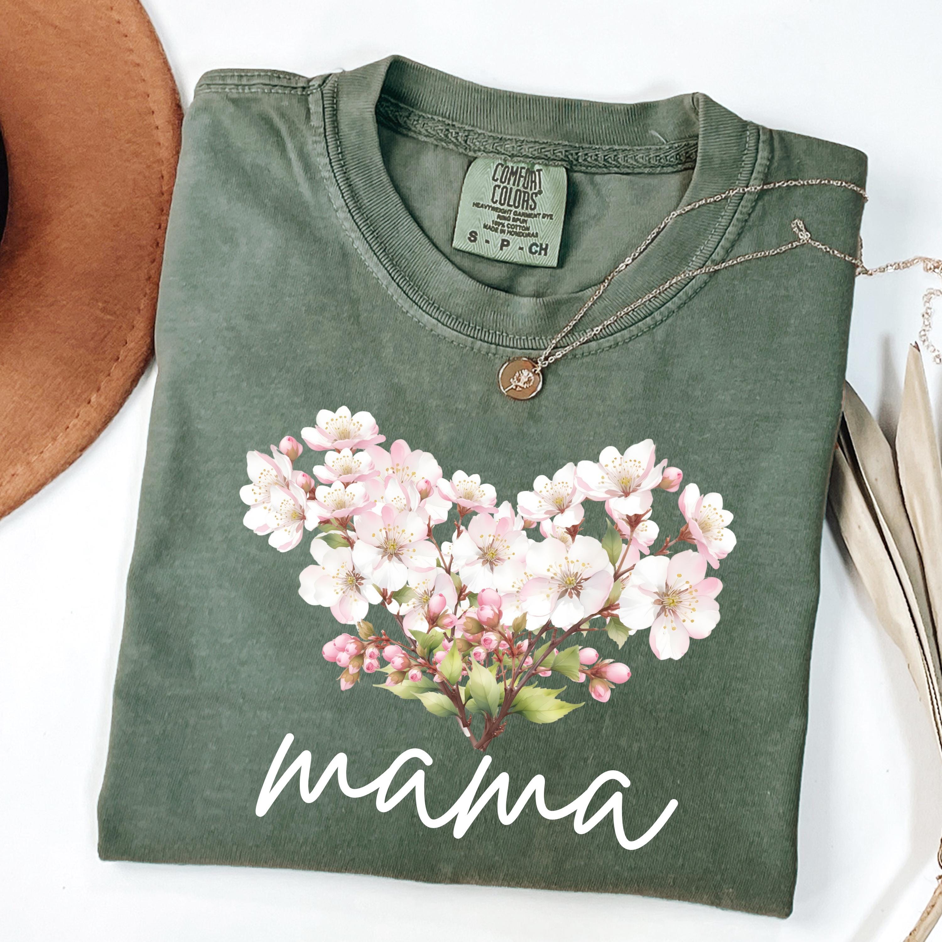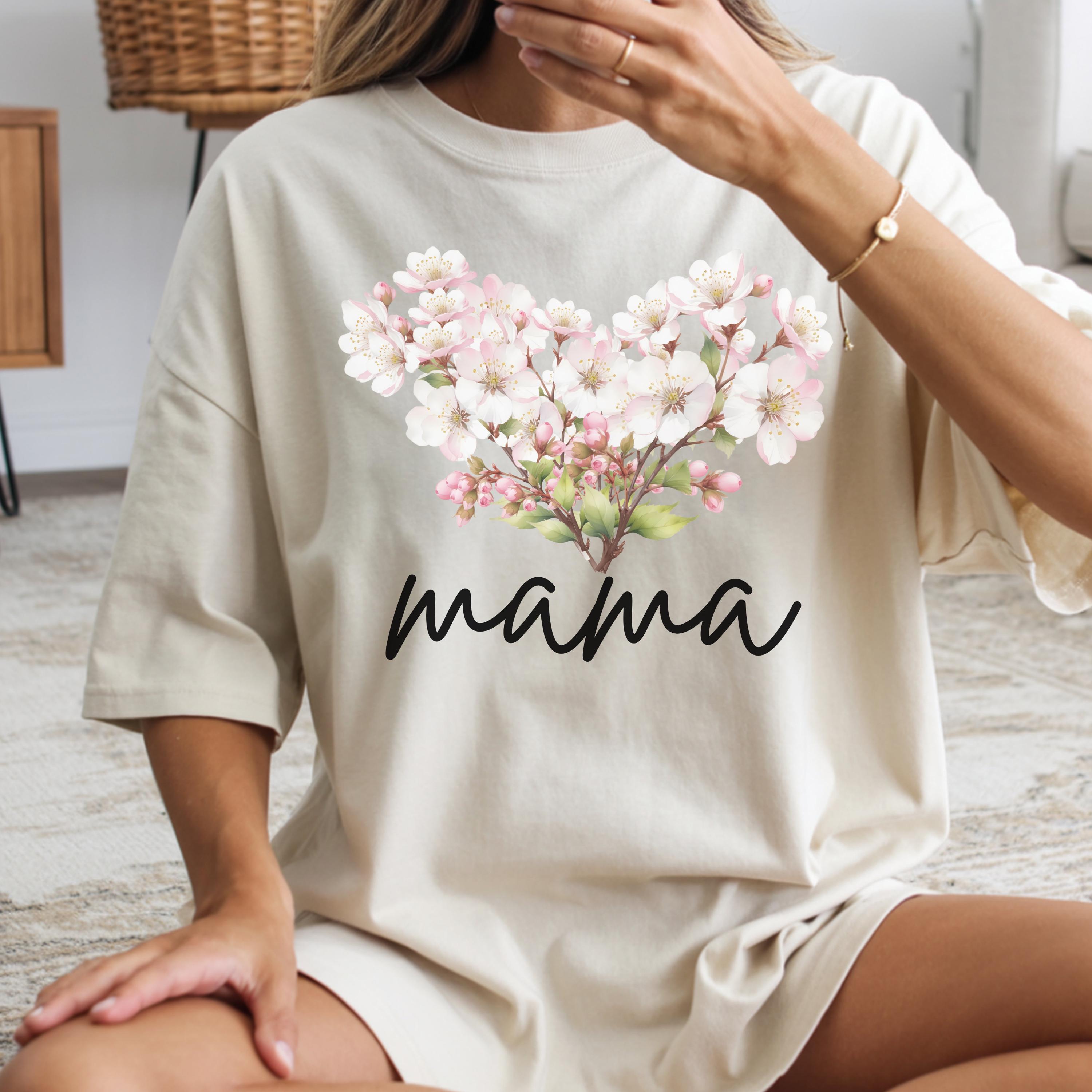 Perfect for shoppers searching for mama shirts, floral mom tees, cherry blossom shirts, aesthetic mom apparel, minimalist mom gifts, and soft vintage style tees. This design stands out as a thoughtful and stylish piece for daily wear or special occasions.