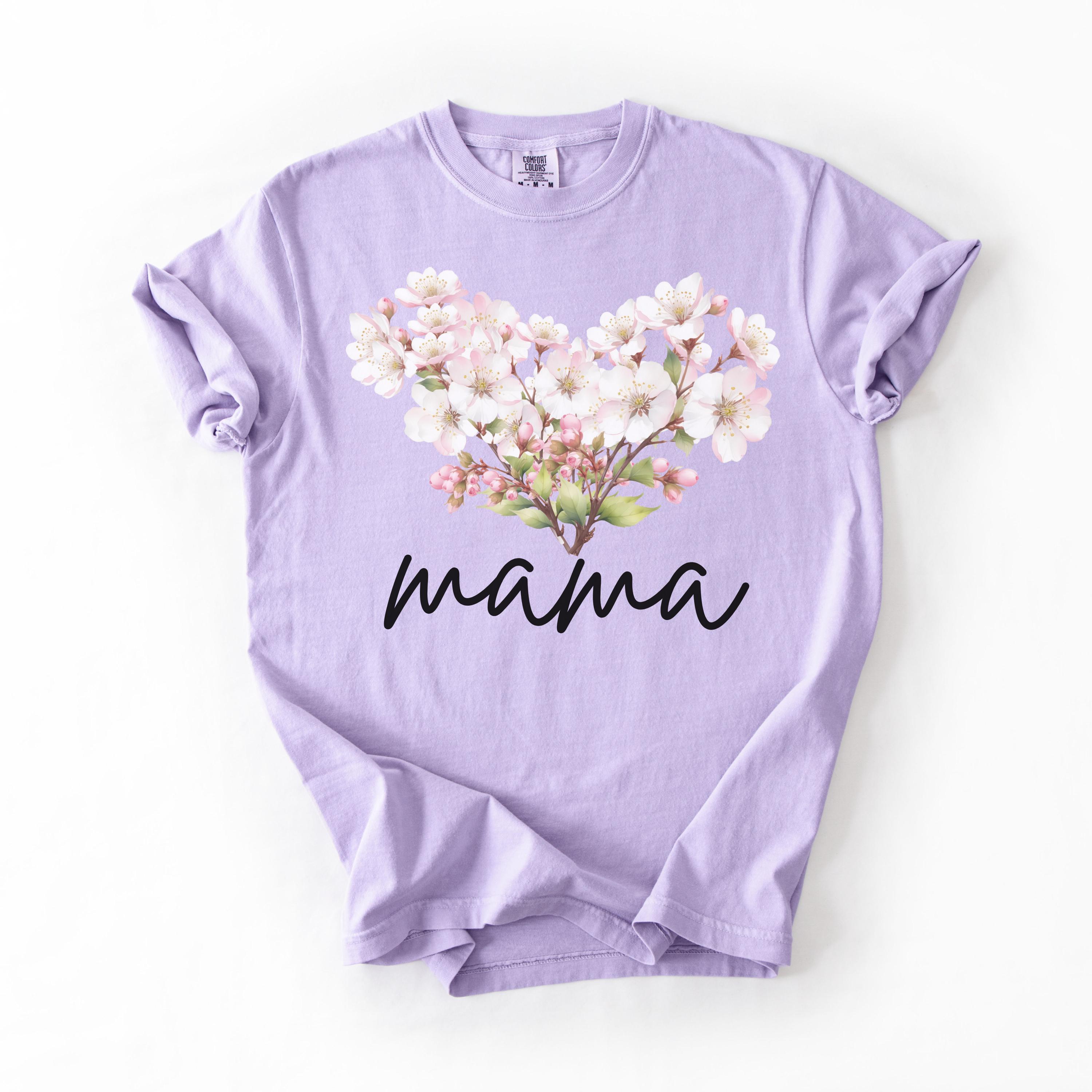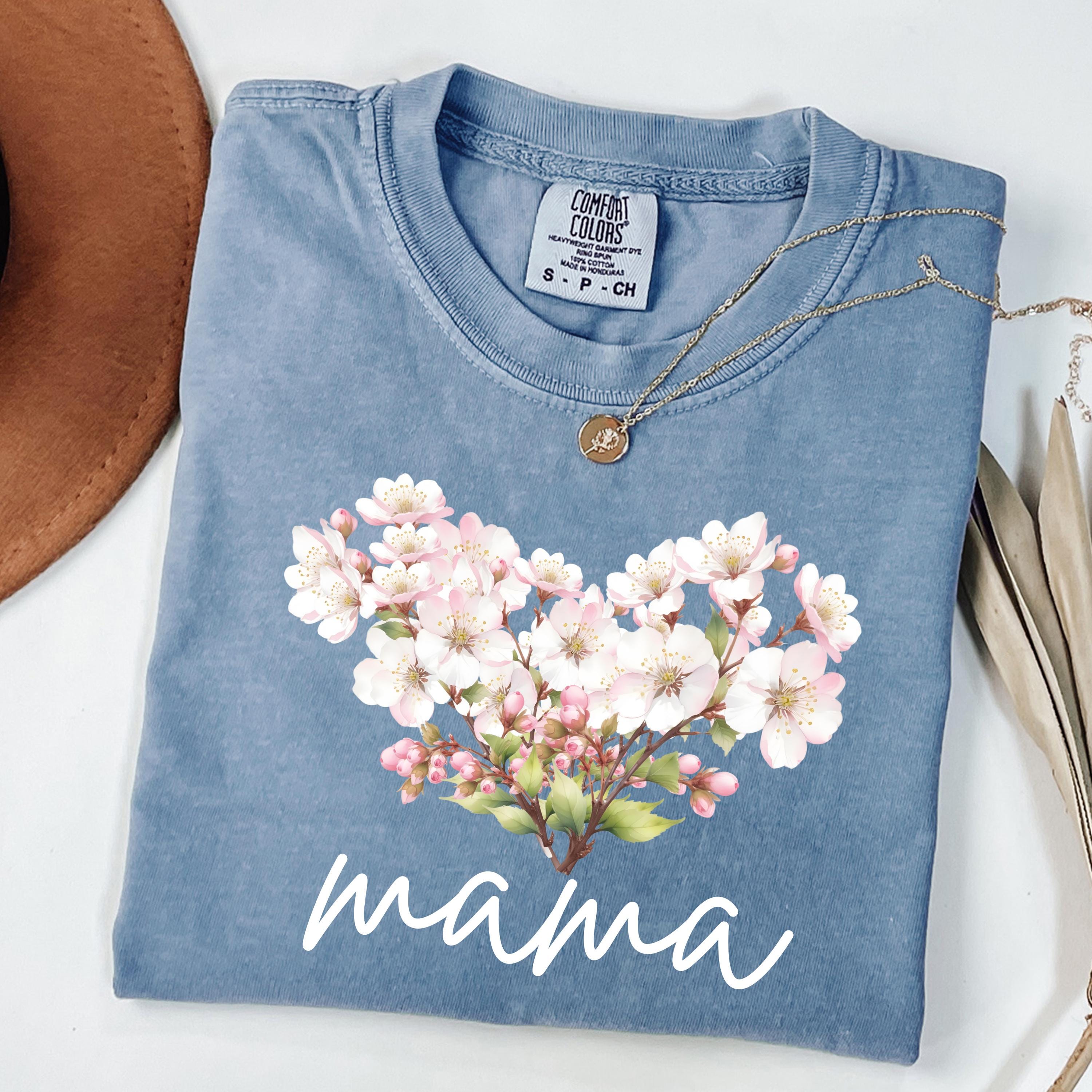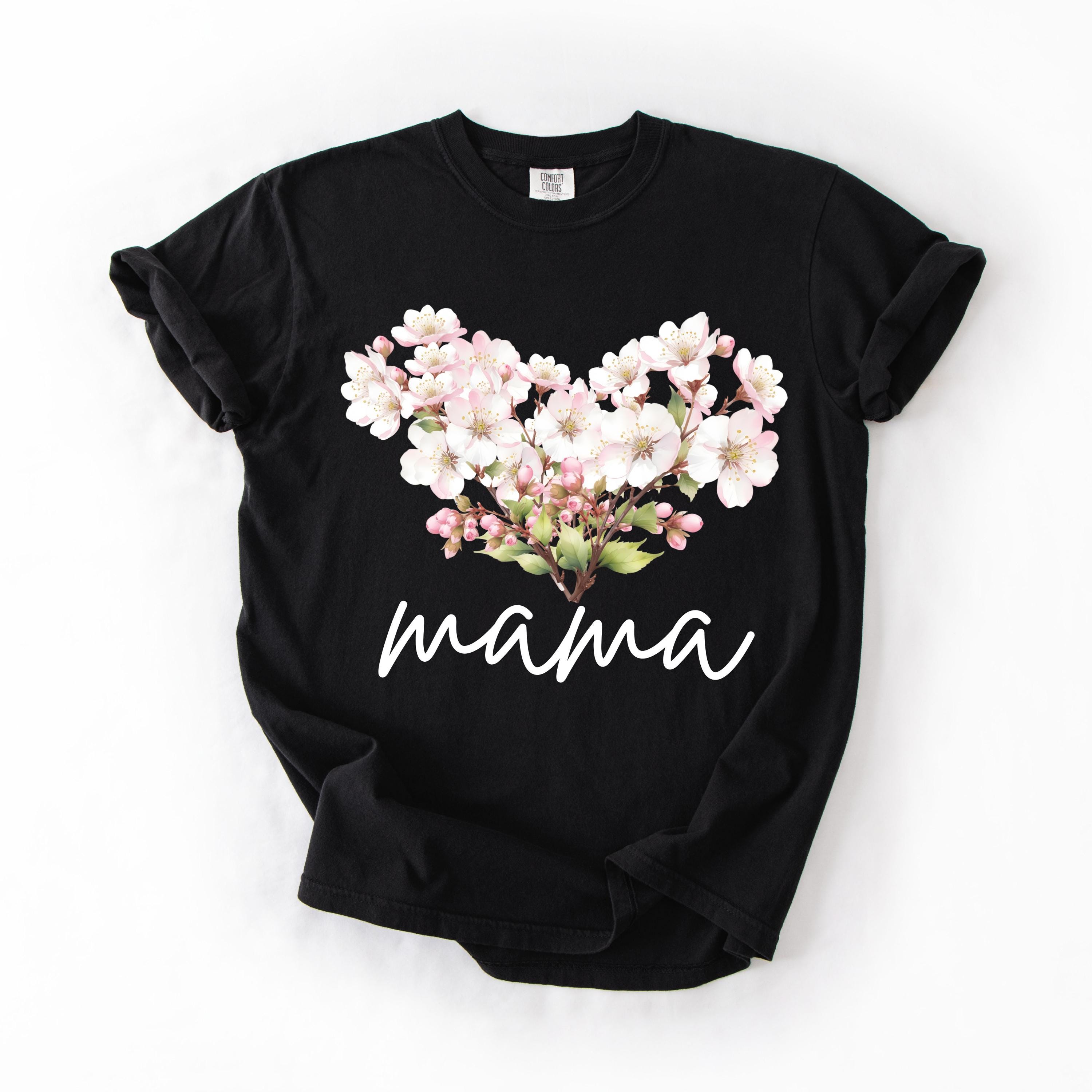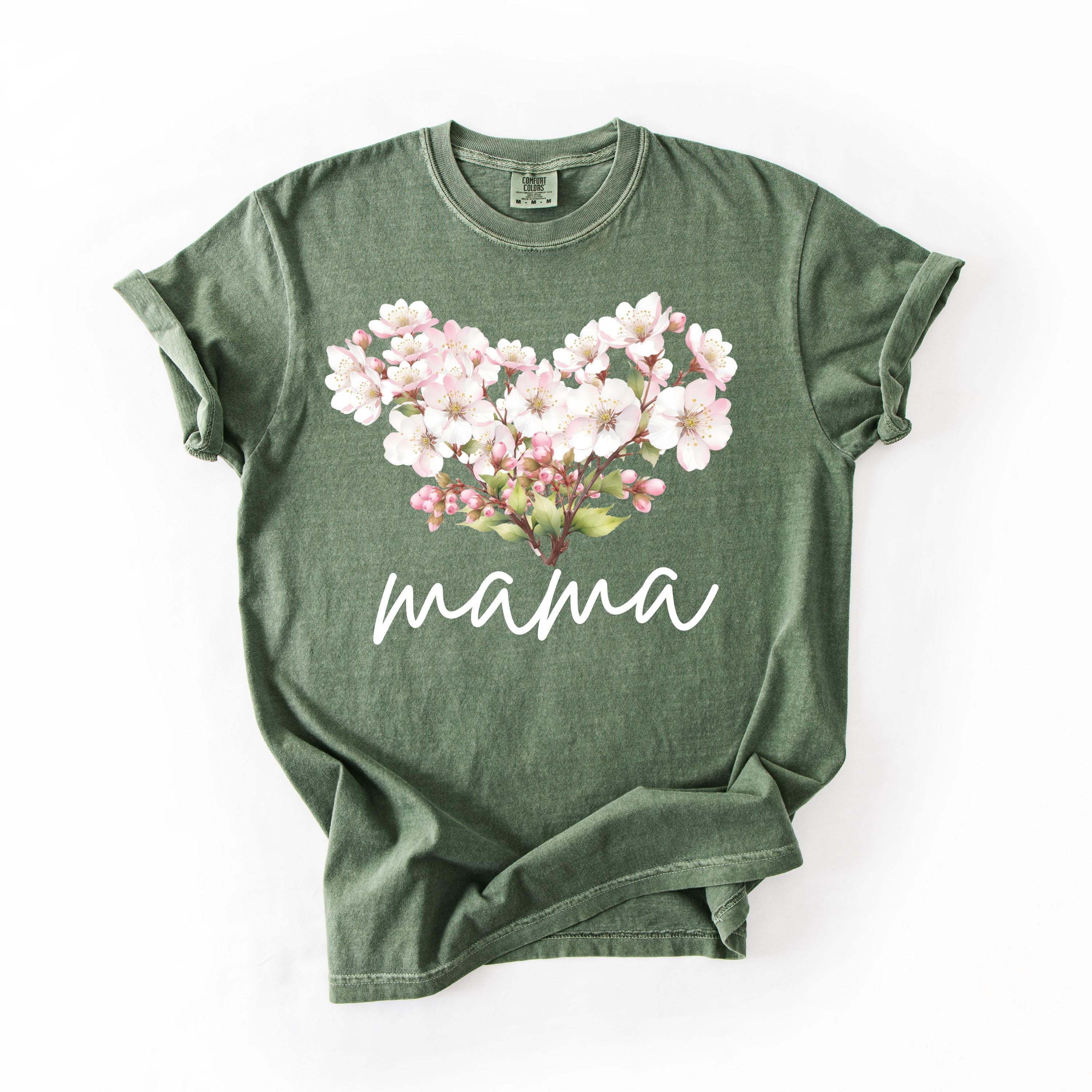 Perfect for shoppers searching for mama shirts, floral mom tees, cherry blossom shirts, aesthetic mom apparel, minimalist mom gifts, and soft vintage style tees. This design stands out as a thoughtful and stylish piece for daily wear or special occasions.