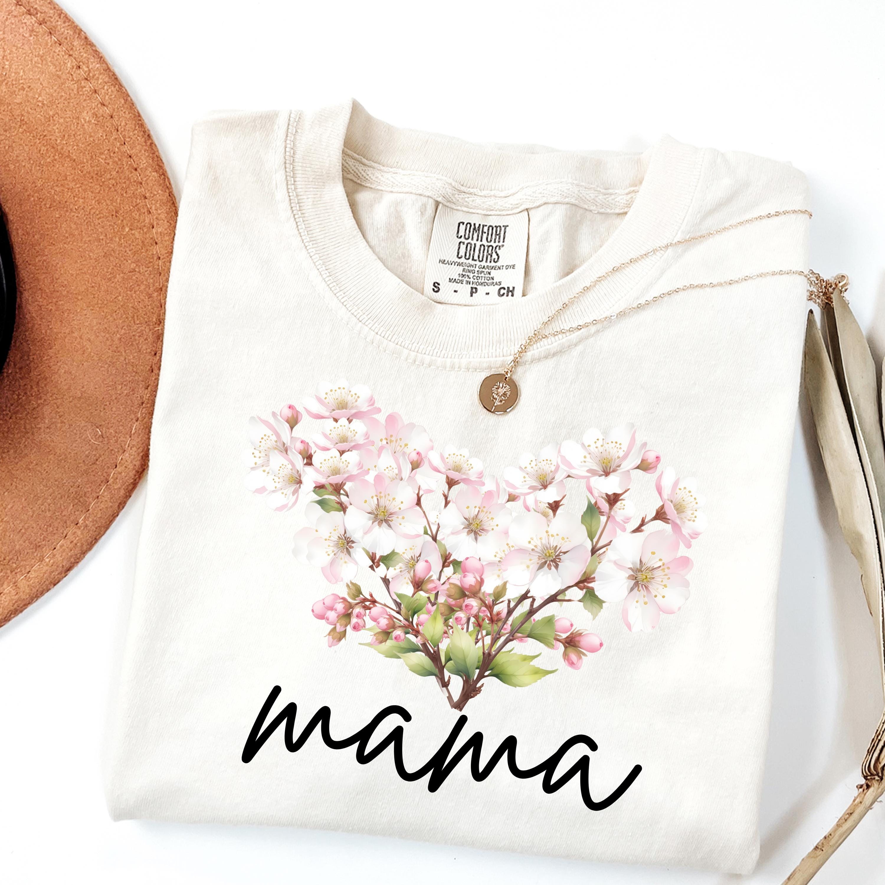 This elegant comfort colors tee features a delicate cherry blossom heart with a soft “mama” script, creating a timeless and emotional design for mothers. Inspired by spring florals and feminine aesthetics, this shirt blends minimalism with a romantic, nature-inspired look.