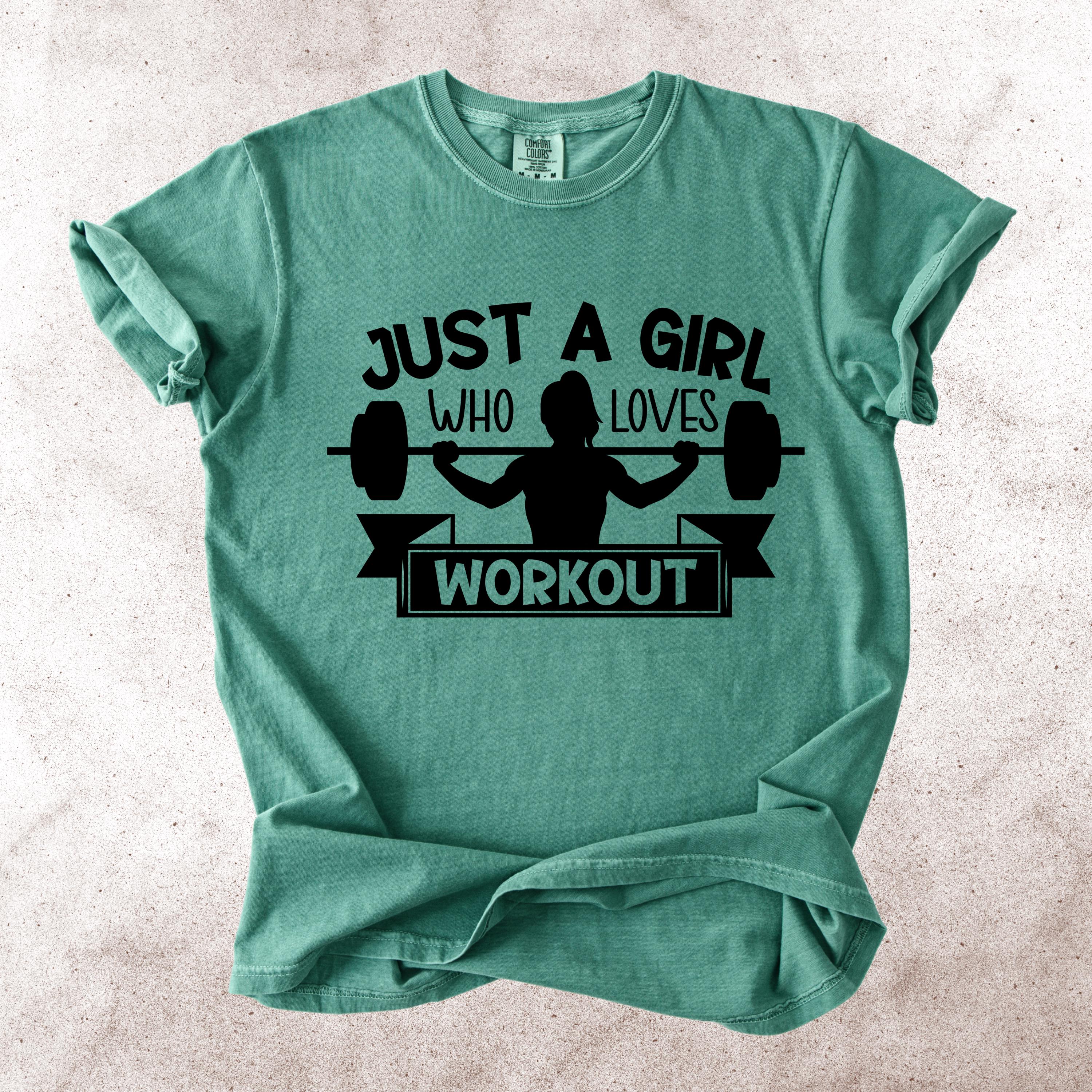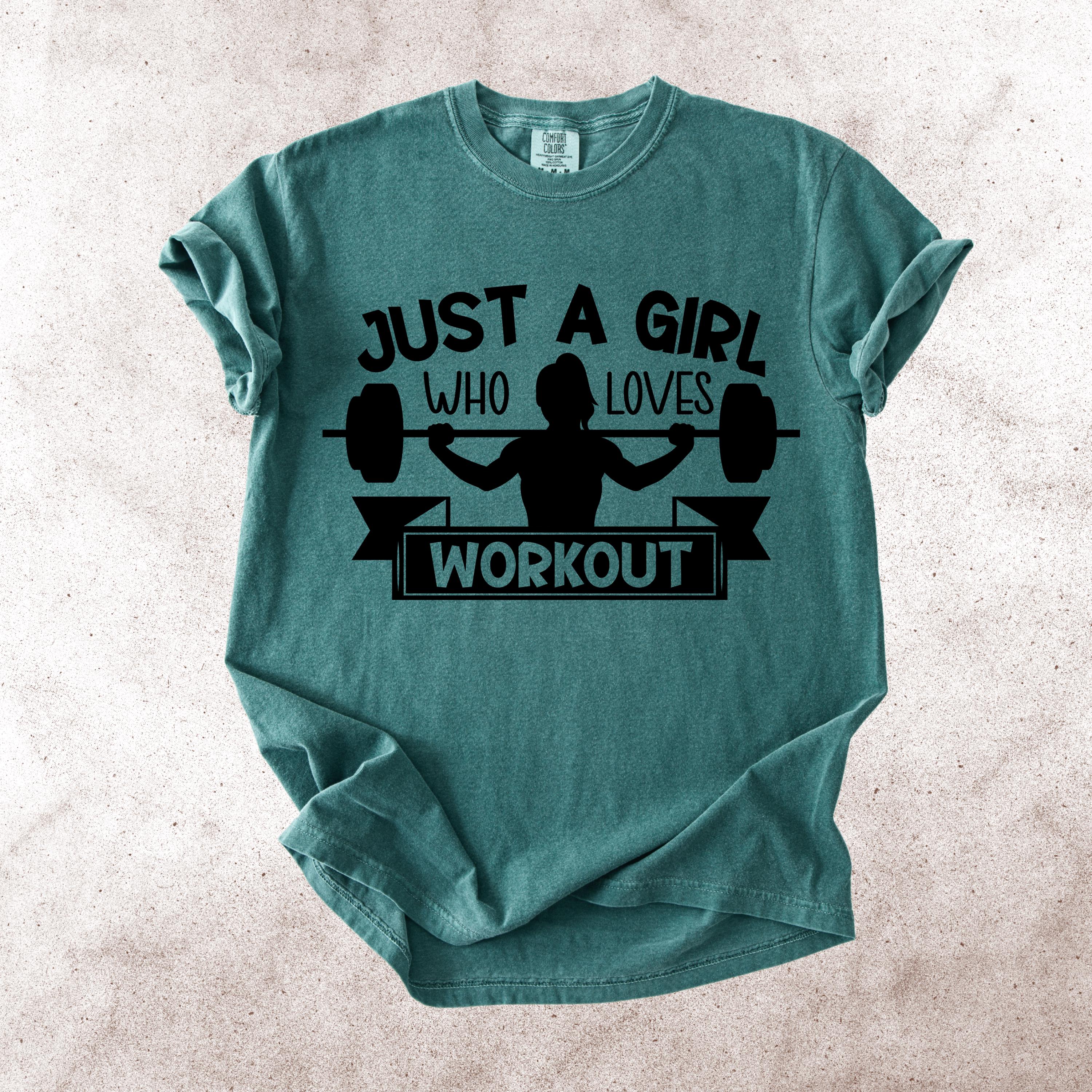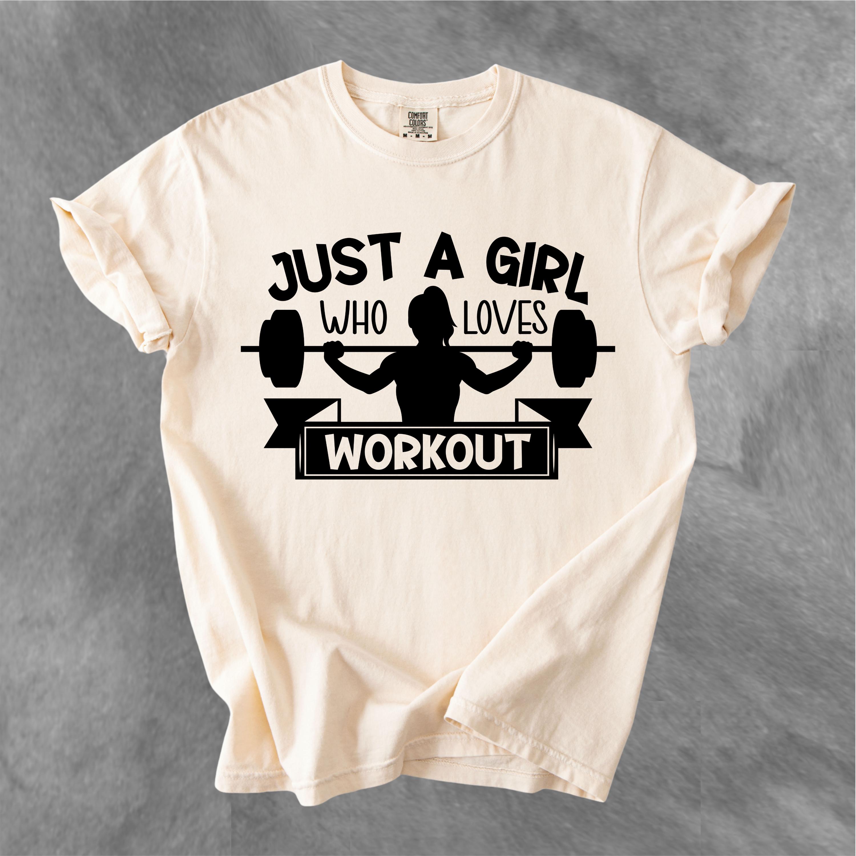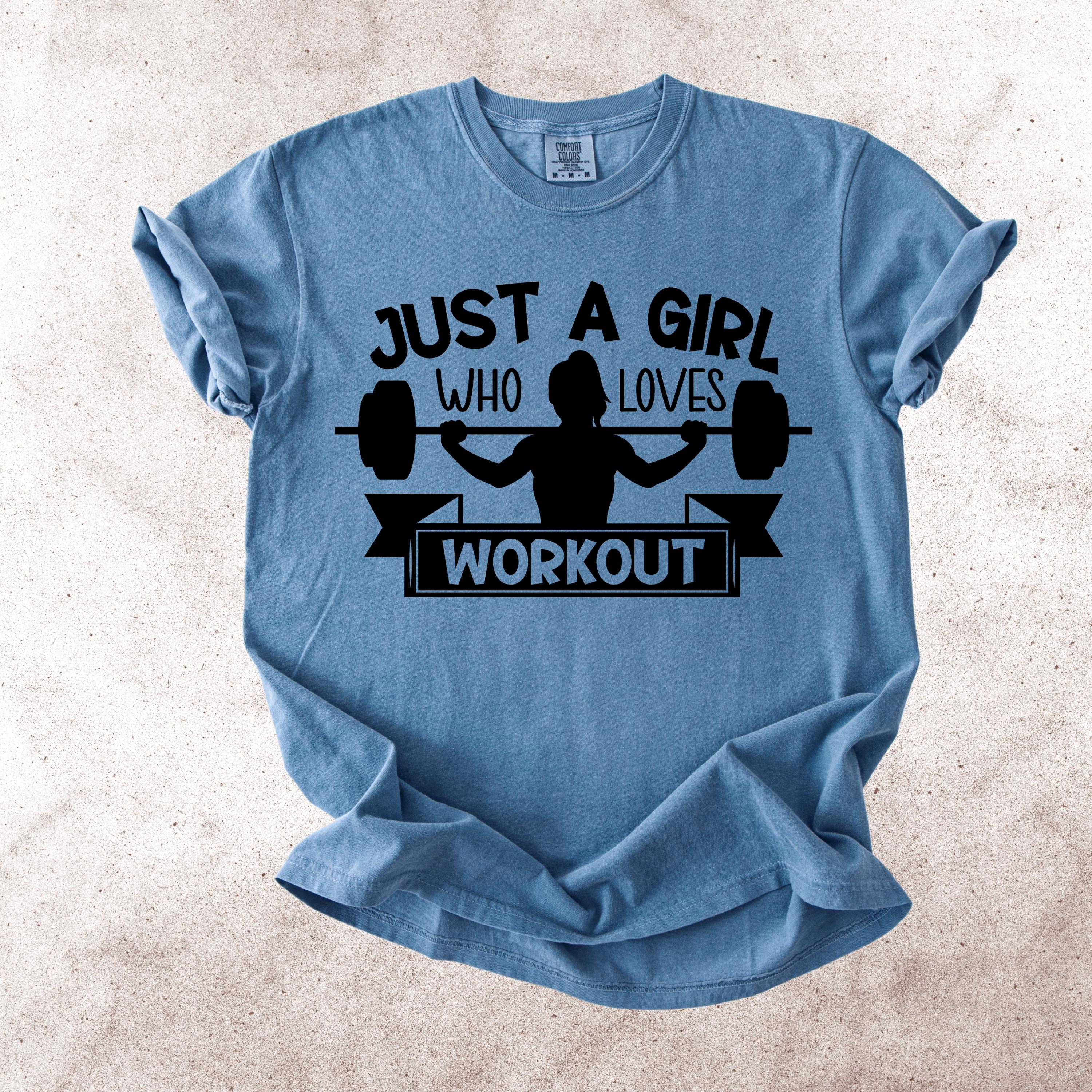 This Just A Girl Who Loves Workout Comfort Colors tee is made for women who love lifting, training, and living the gym lifestyle. Featuring a bold weightlifting silhouette with a fun fitness quote, this shirt is perfect for gym girls, workout lovers, and anyone who enjoys strong, sporty style.